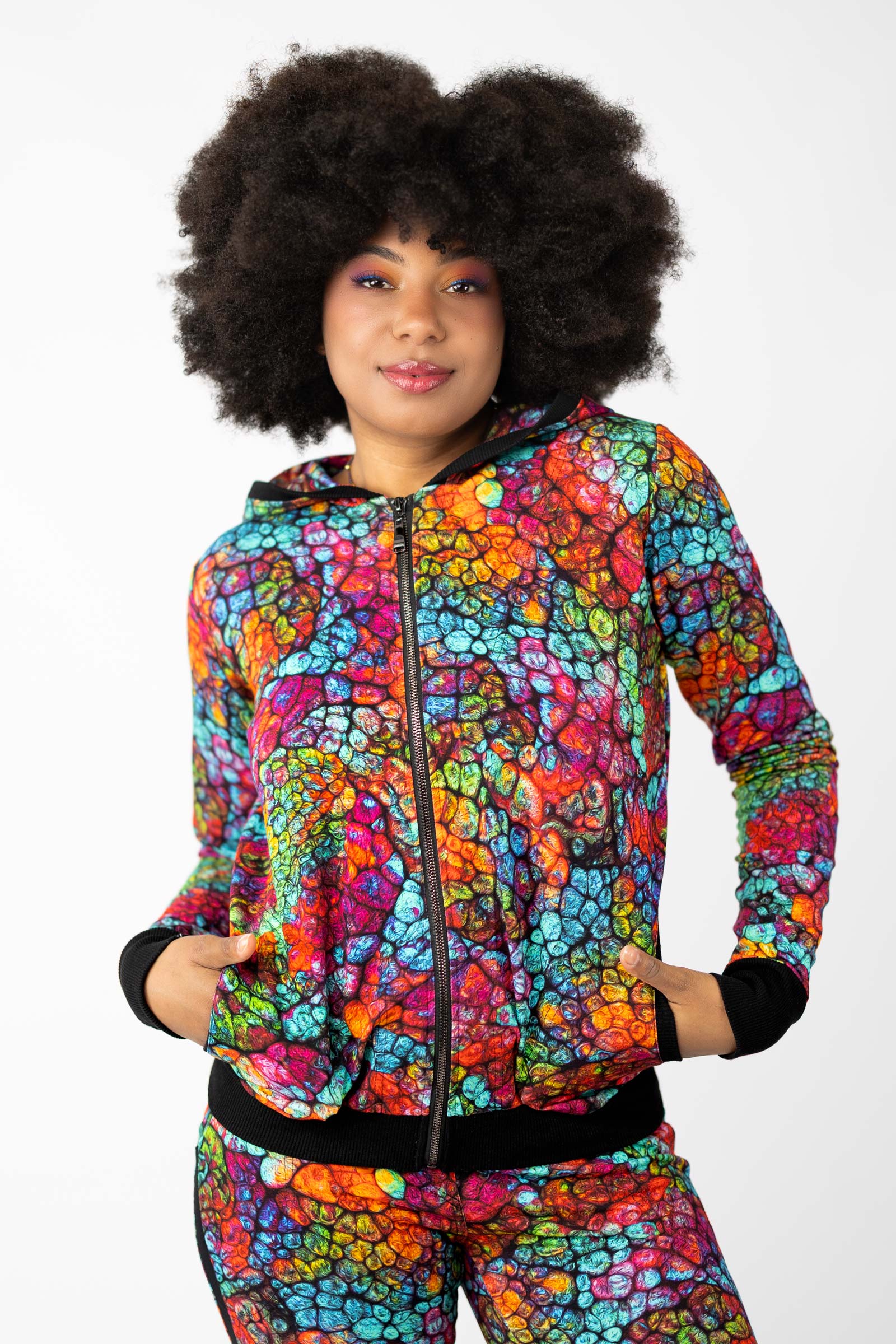 Bluza bomberka, rozpinana z kapturem "SHINY" INNY ODCIEŃ
