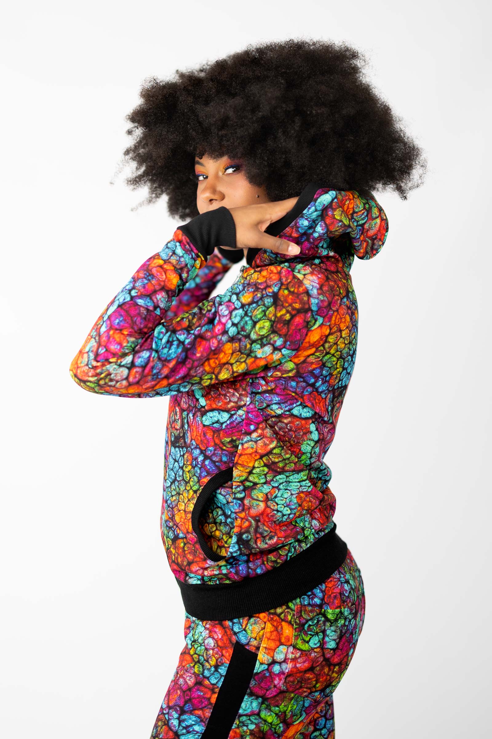 Bluza jak każdy nasz produkt została uszyta w naszej pracowni w Legionowie, a autorski wzór materiału zaprojektowała Katarzyna Gałaj - właścicielka i twórczyni marki. Dzięki temu jest nie tylko praktyczna i wygodna, ale również oryginalna i unikalna.