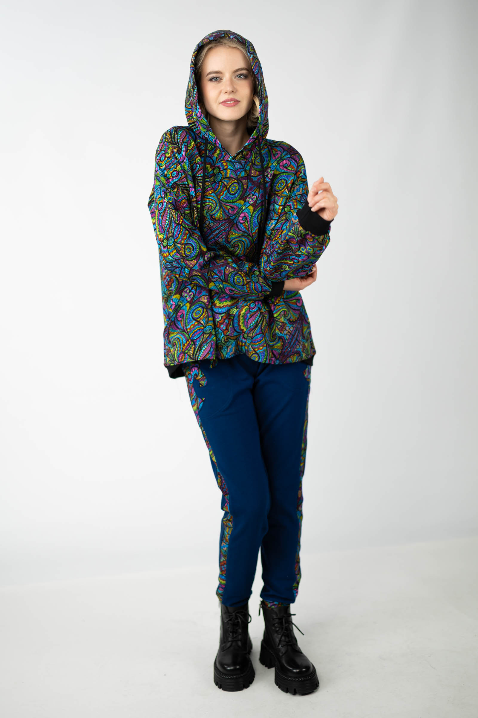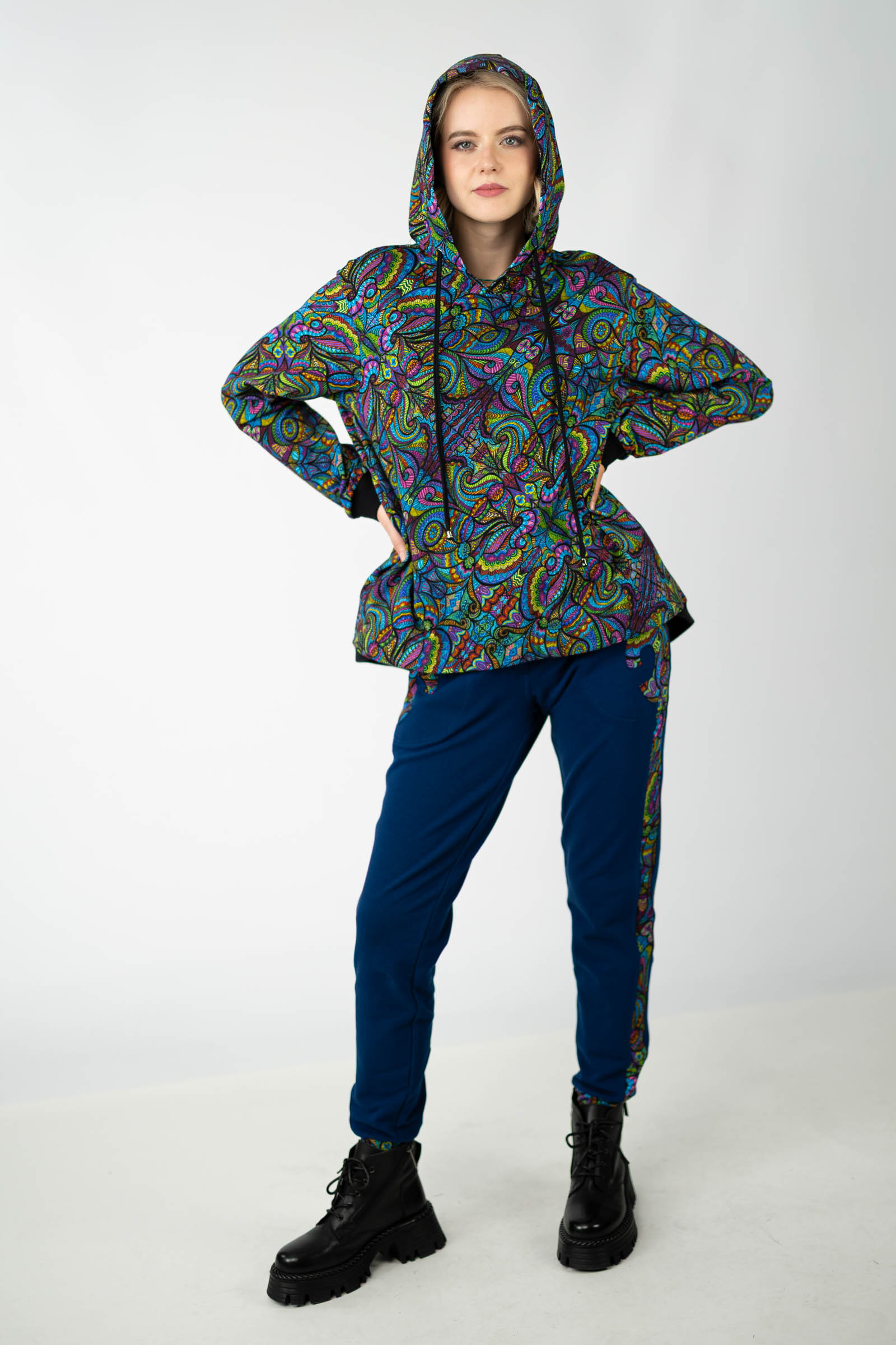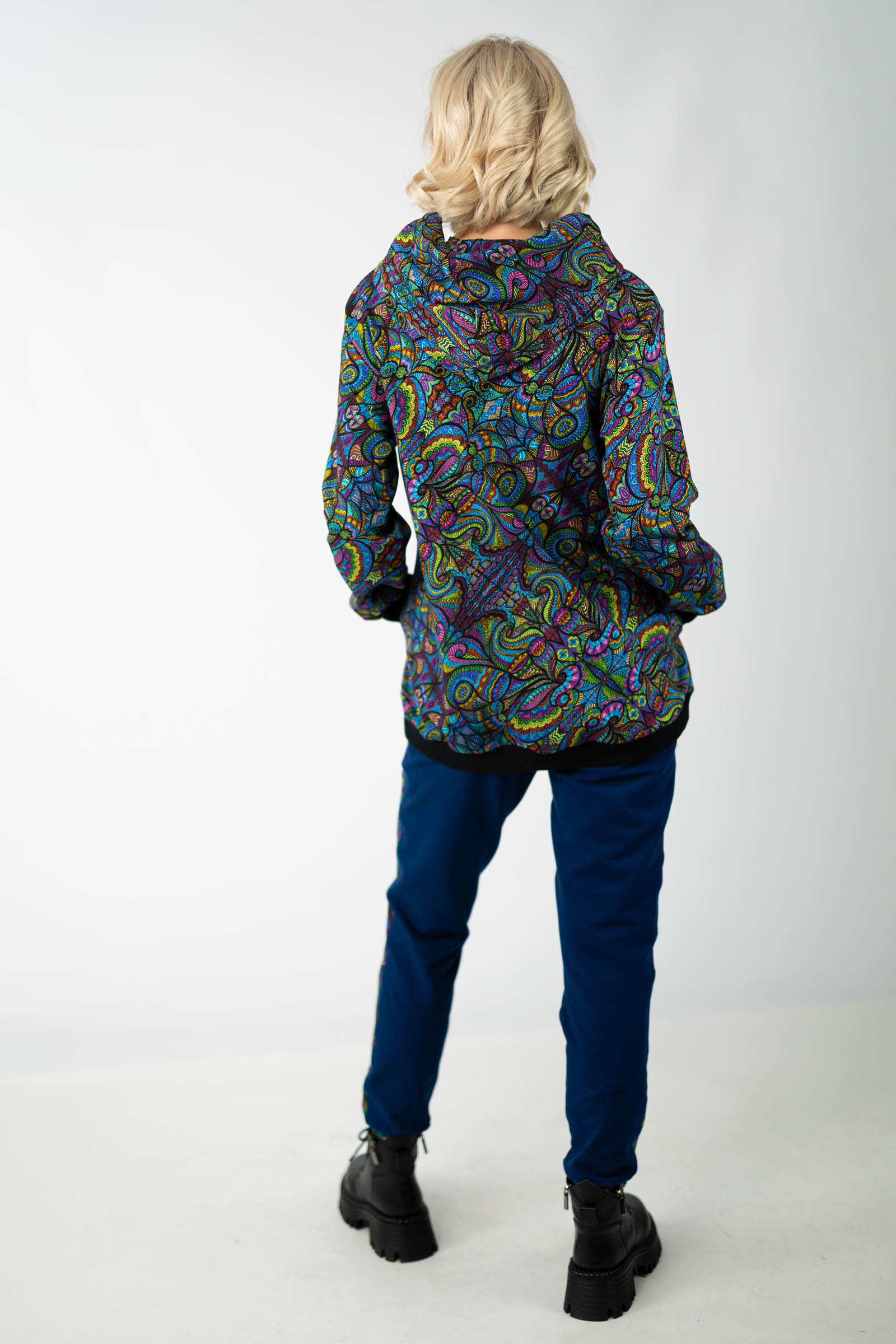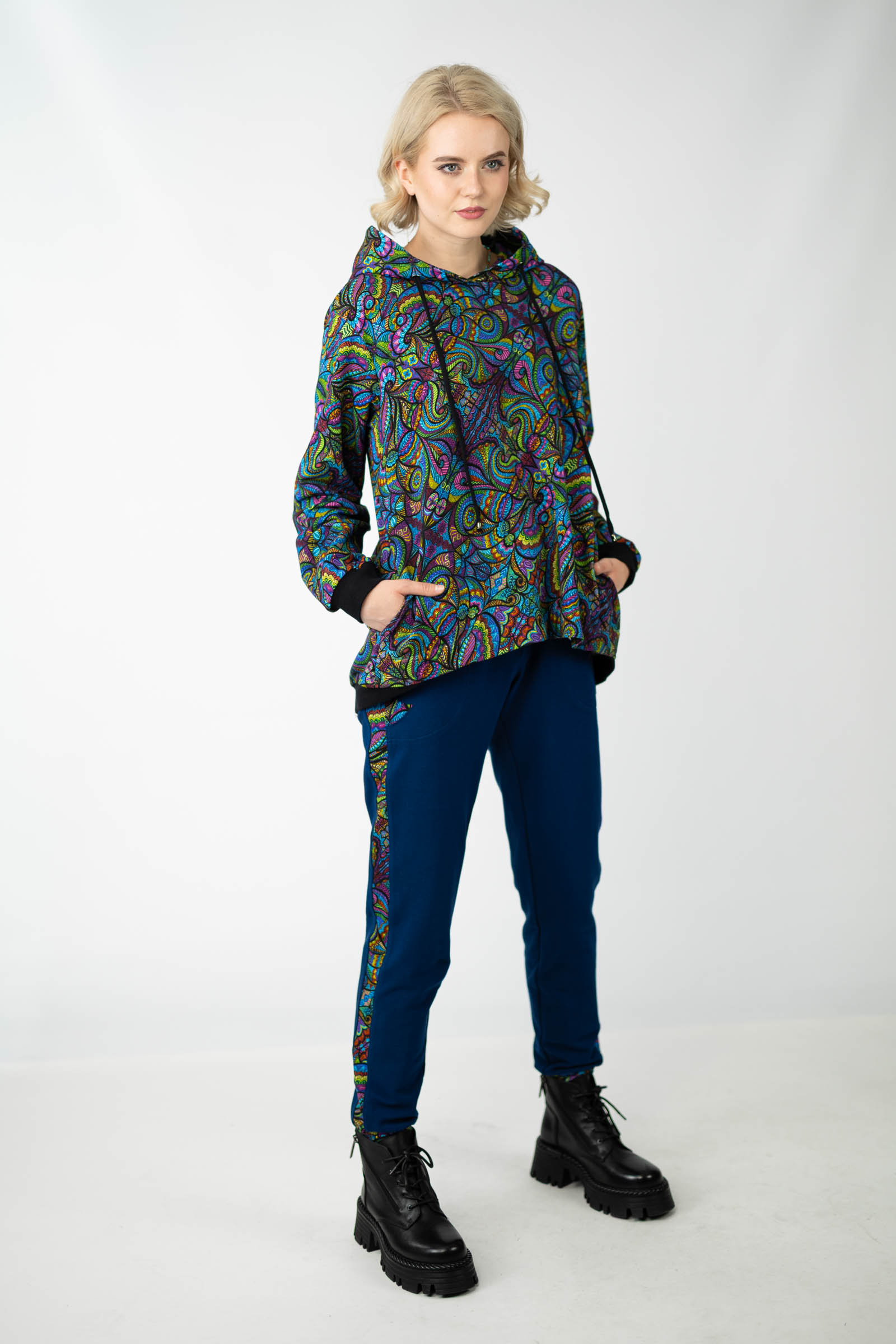 Autorski wzór nadruku nadaje bluzie niepowtarzalny wygląd, podkreślając Twoją indywidualność i wyjątkowy styl. Uszyta w naszej polskiej pracowni, każda bluza odznacza się wysoką jakością wykonania i dbałością o detale.