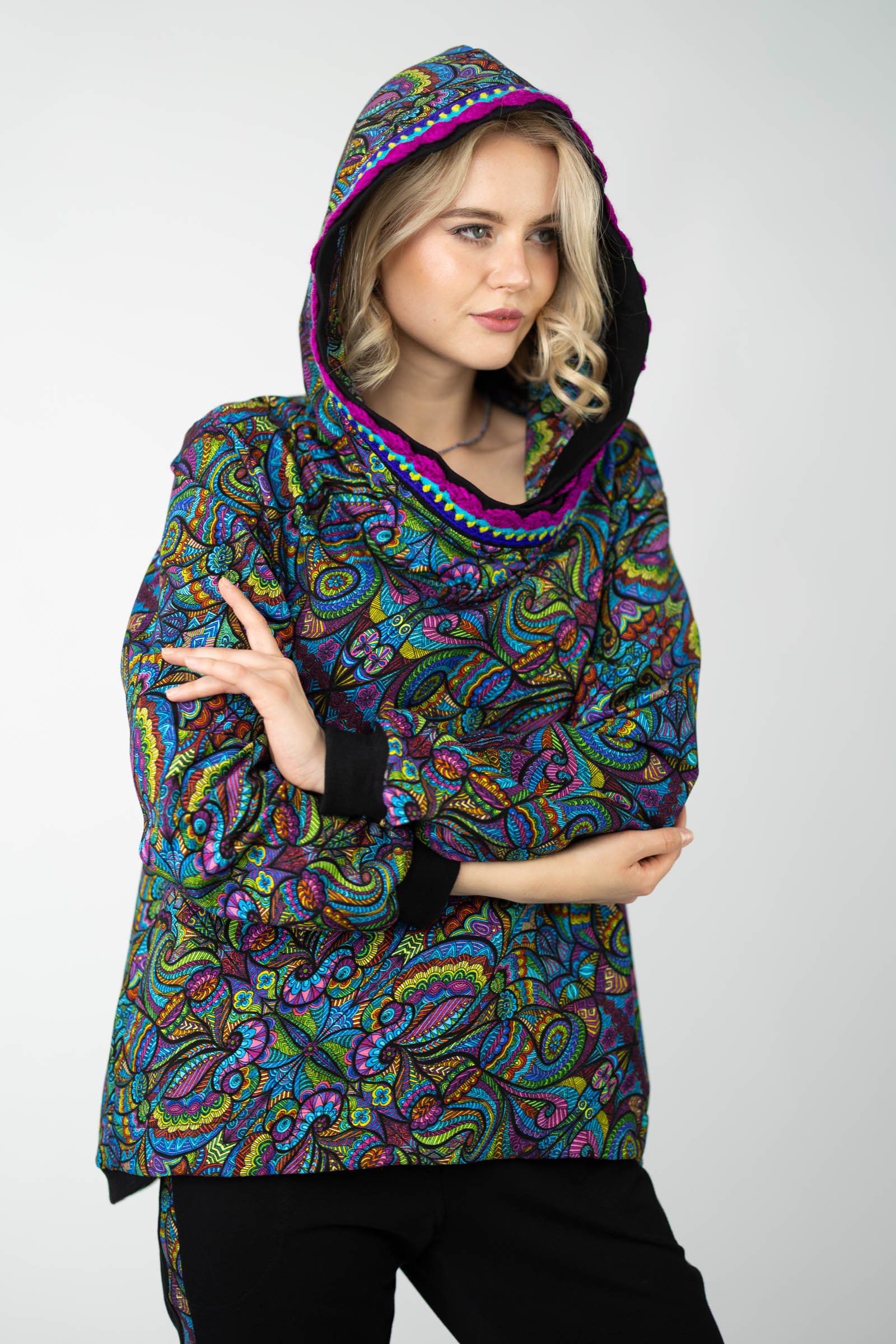 Bluza luźna z kapturem i szydełkową koronką "MIST"
