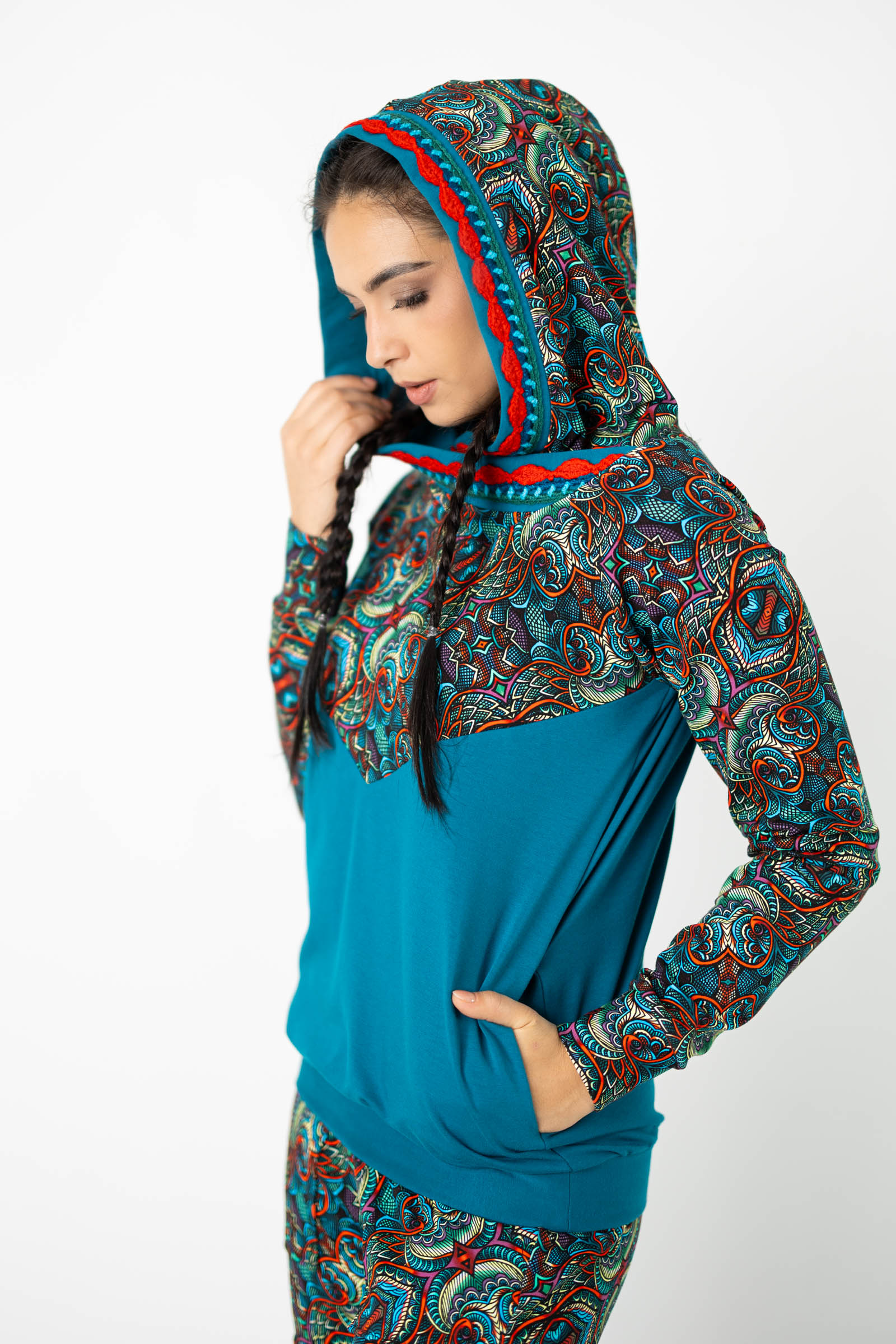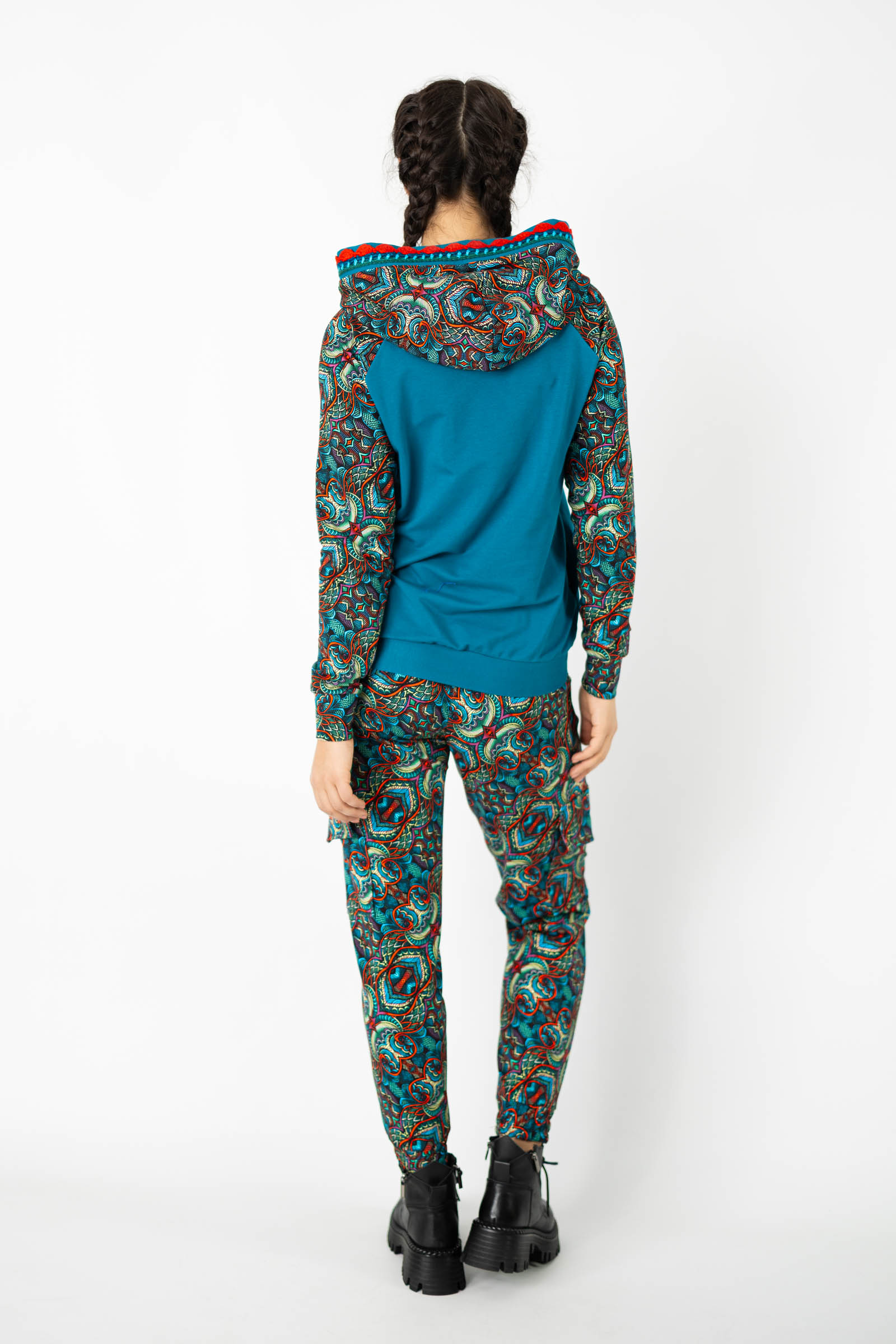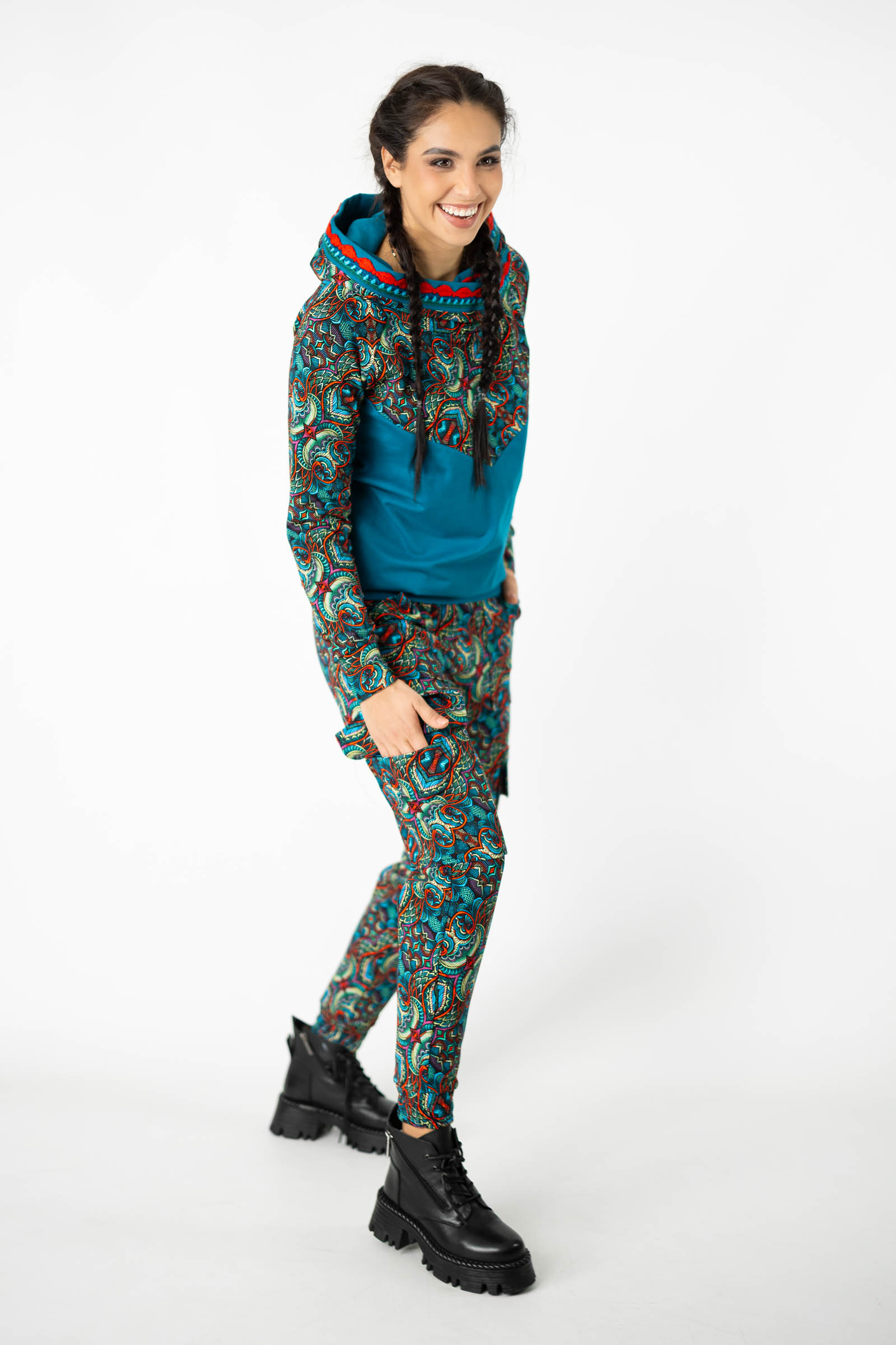 Warto podkreślić, że ta bluza została uszyta w naszej pracowni w Legionowie, co świadczy o polskiej jakości i dbałości o detale. Autorski wzór materiału został zaprojektowany przez właścicielkę i twórczynię marki Katarzynę Gałaj, co sprawia, że jest ona dostępna tylko u nas.