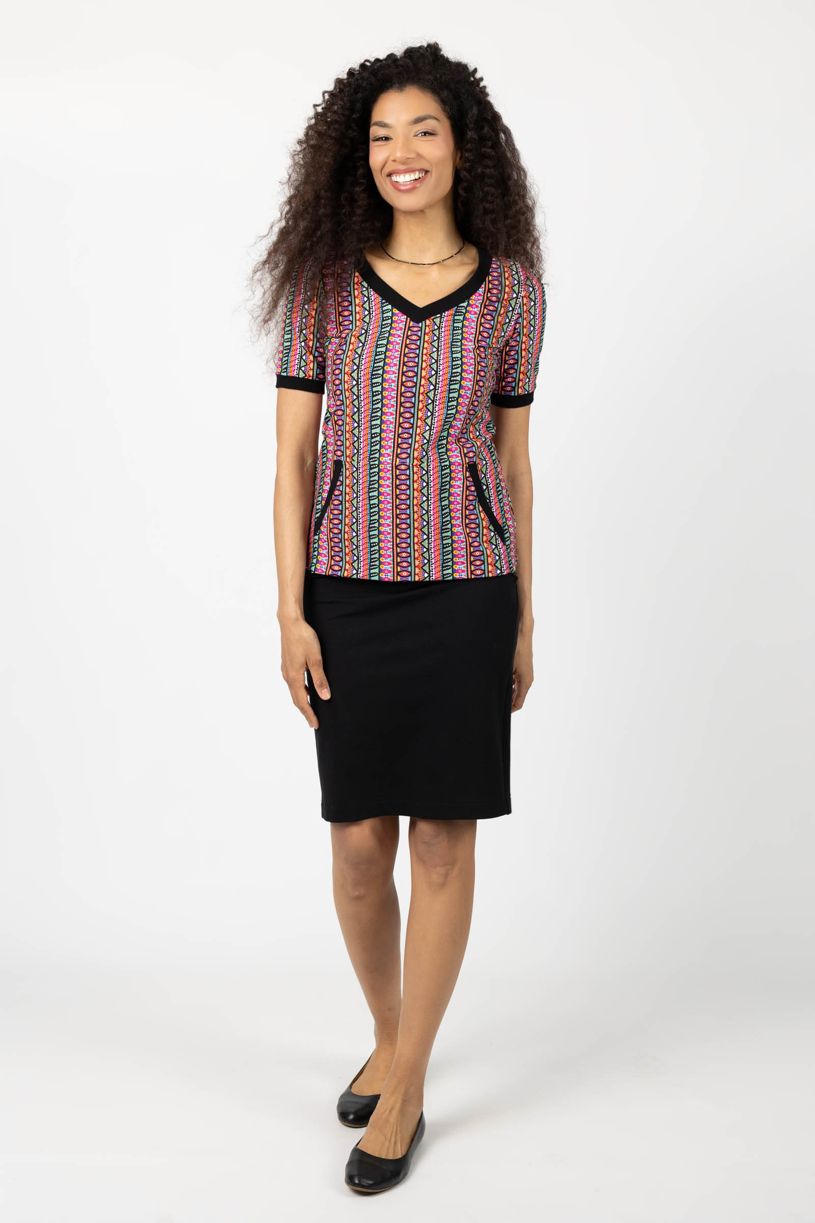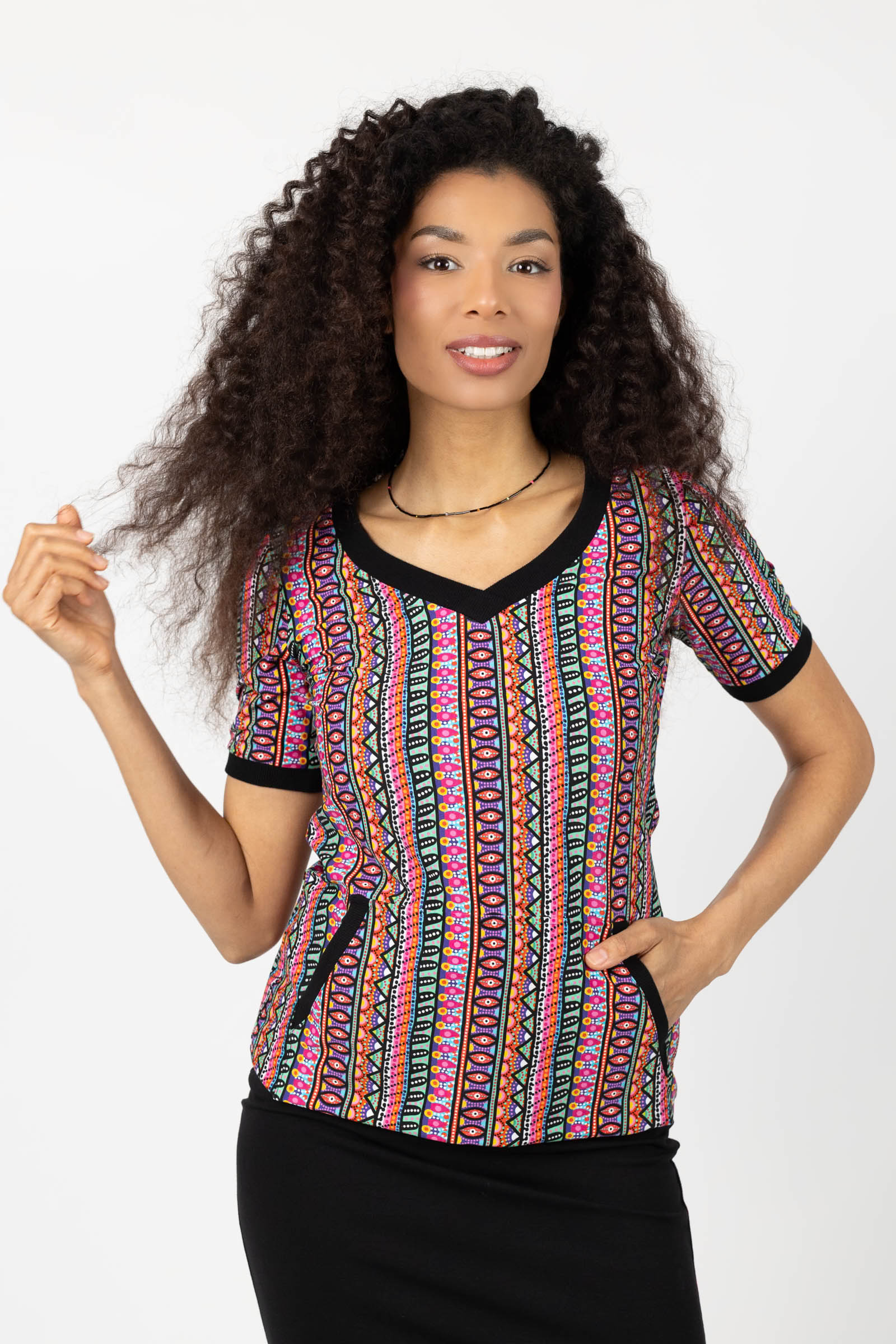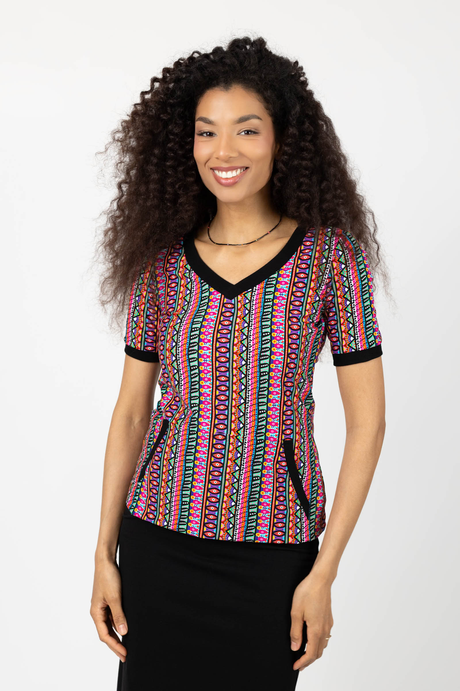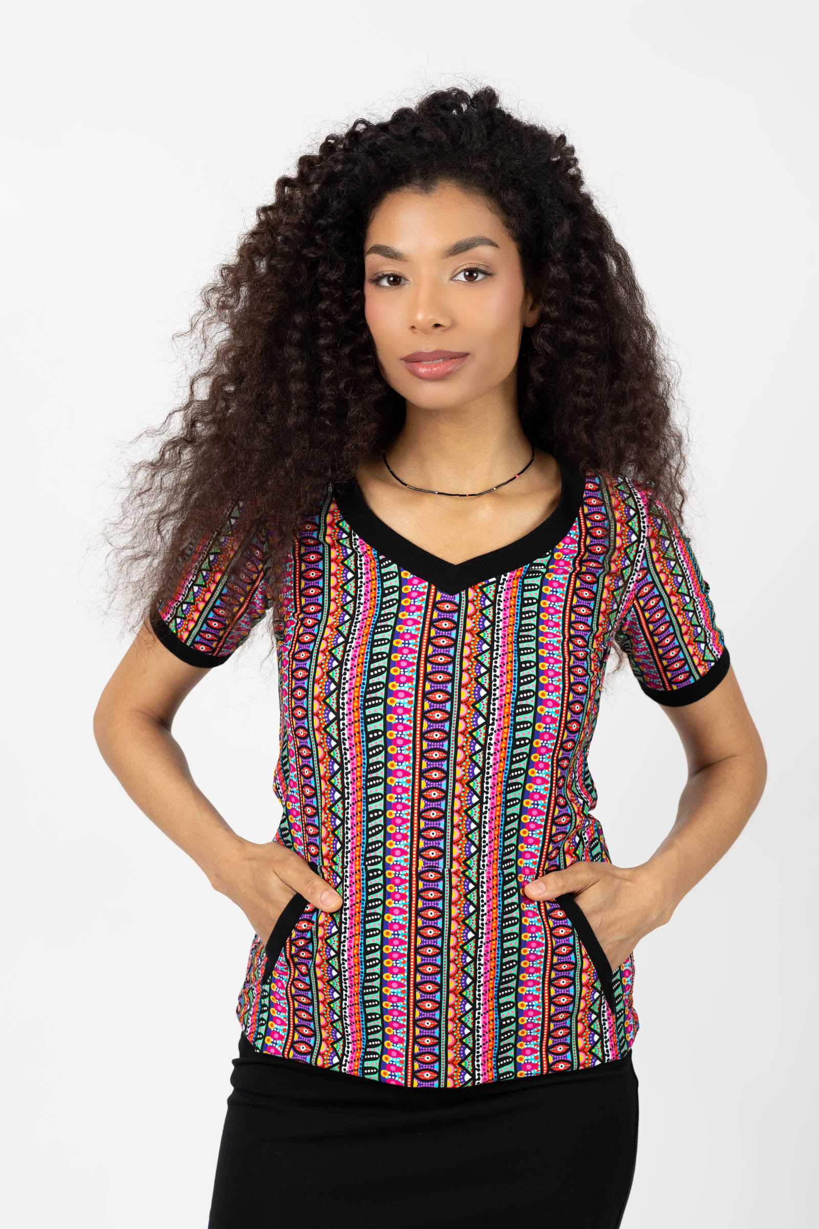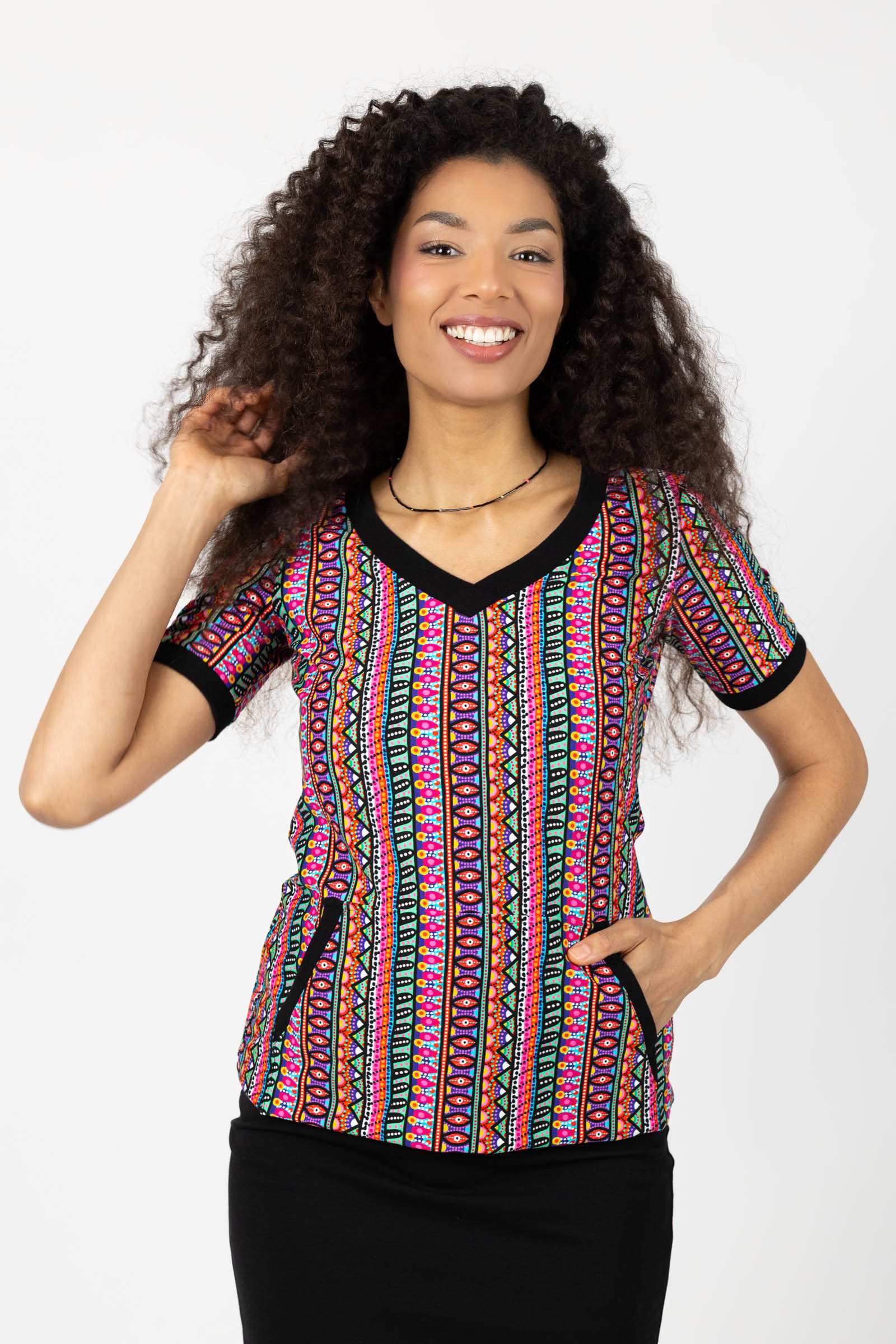 Bluzka sportowa V, krótki rękaw "CONFETTI" paski