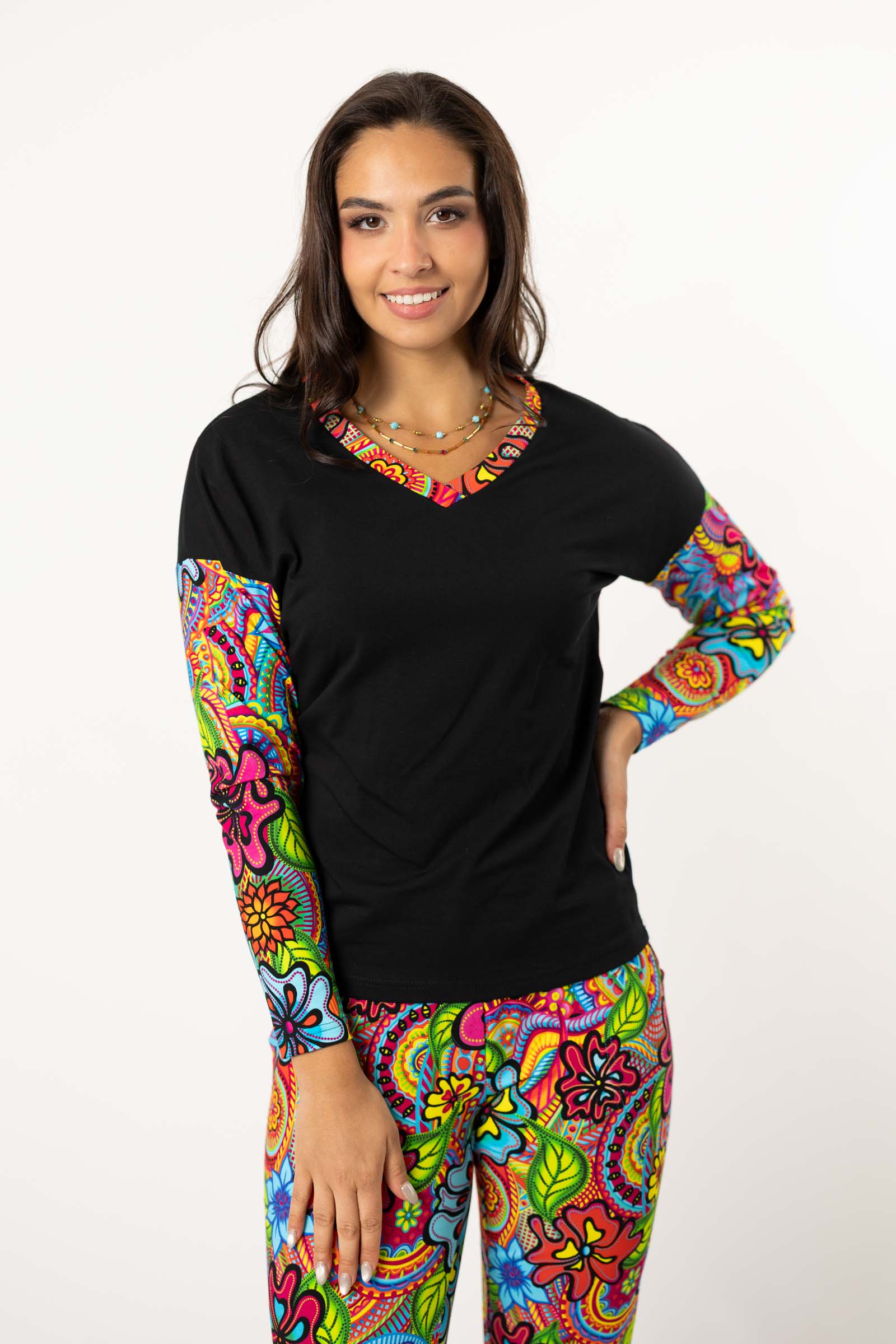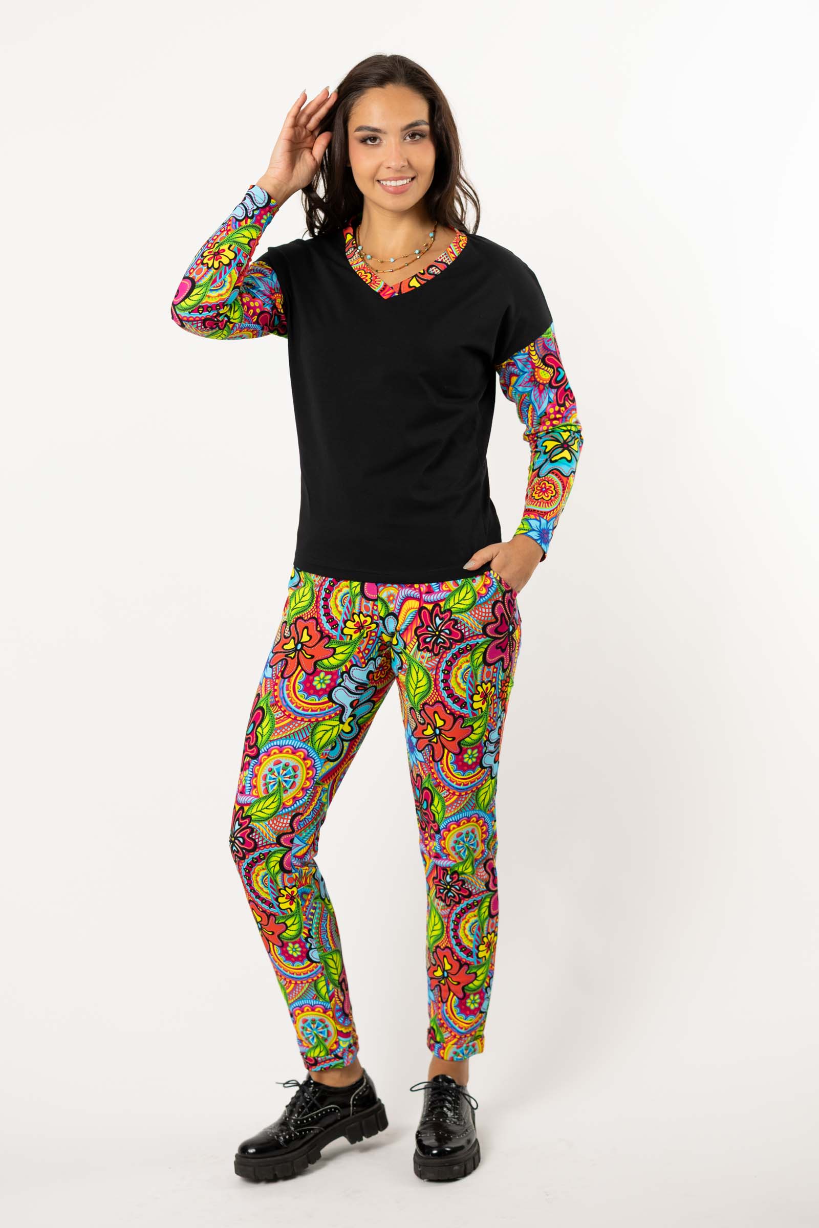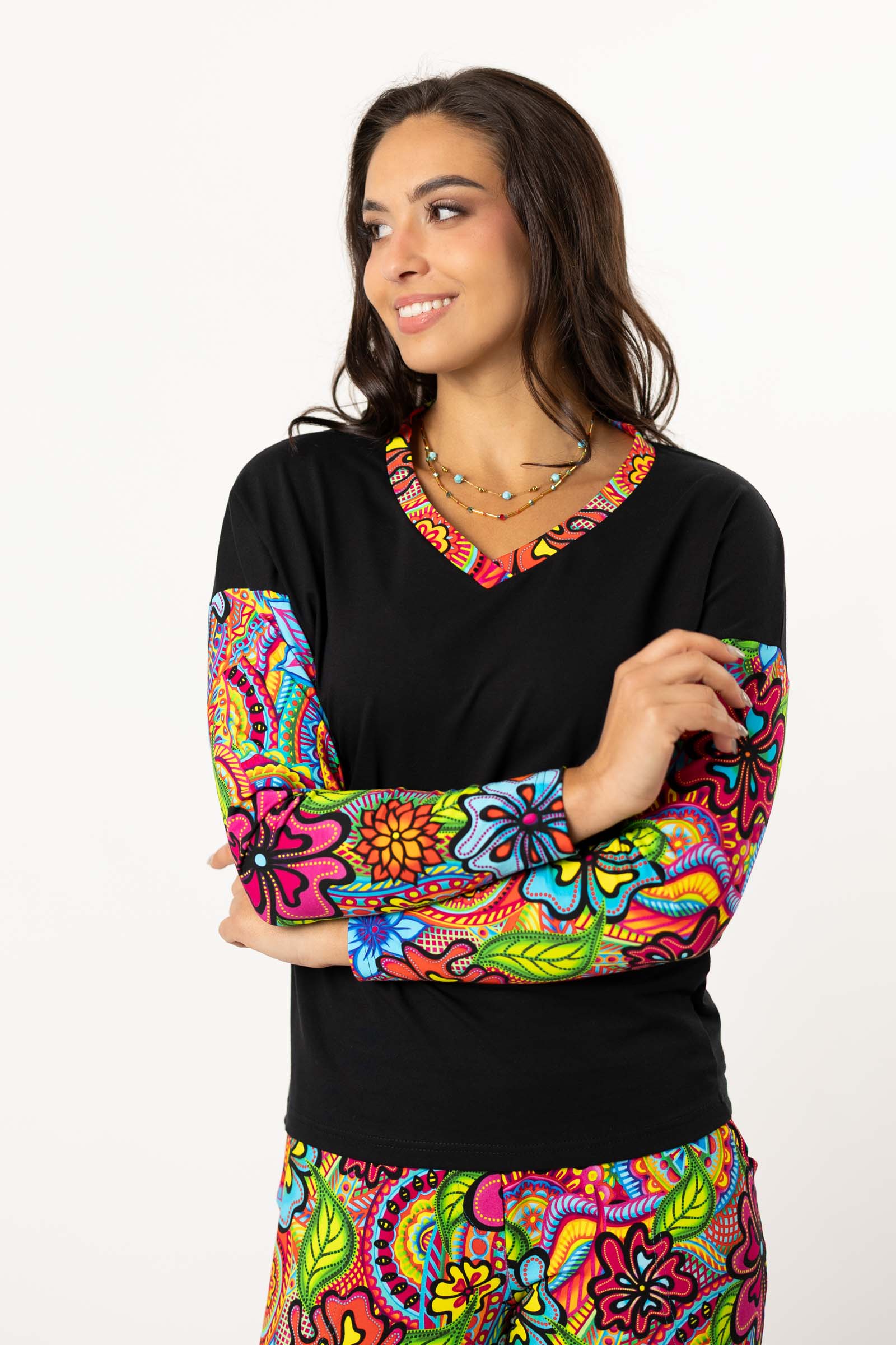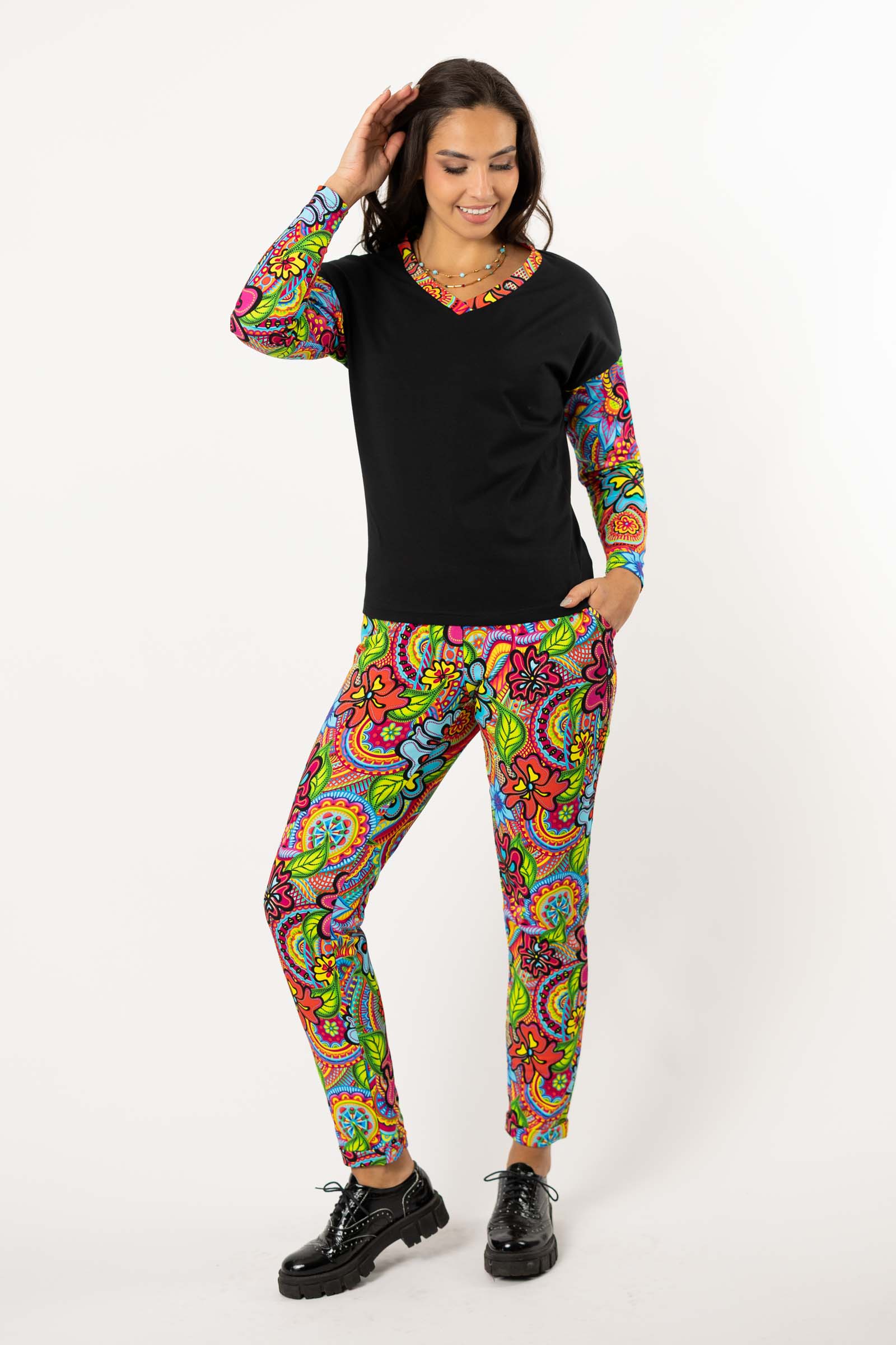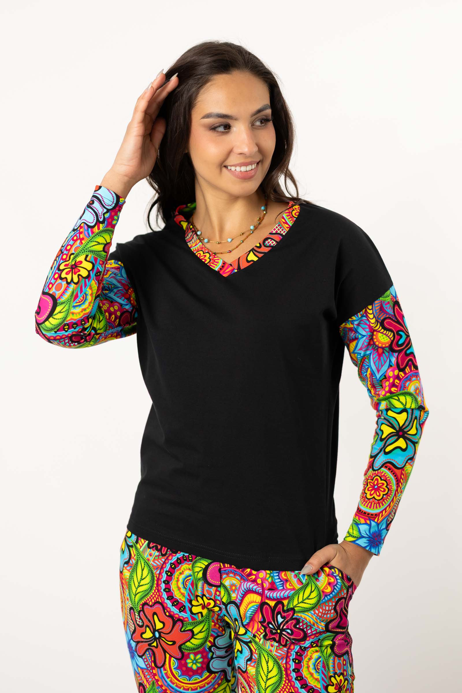 Podsumowując, bluzka o kroju trapezowym z dekoltem serek to wygodna, luźna propozycja, która zapewni Ci zarówno komfort, jak i styl w różnych okolicznościach.