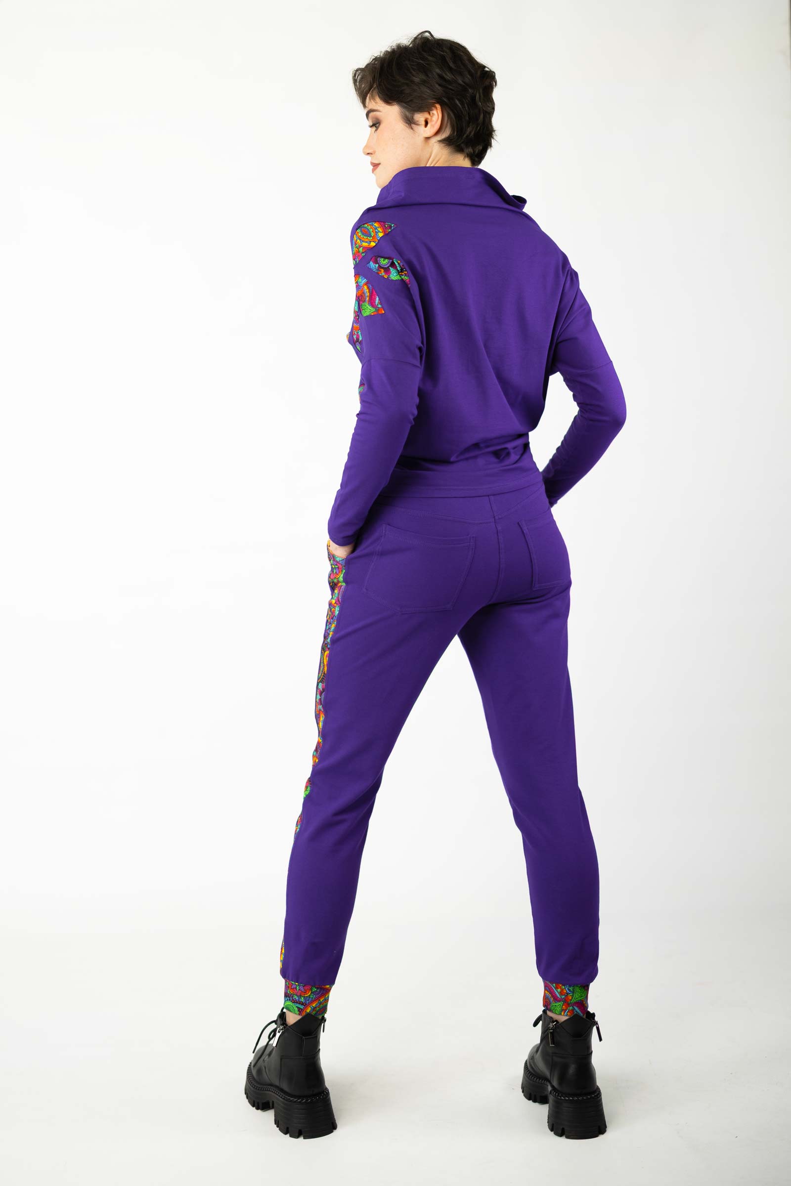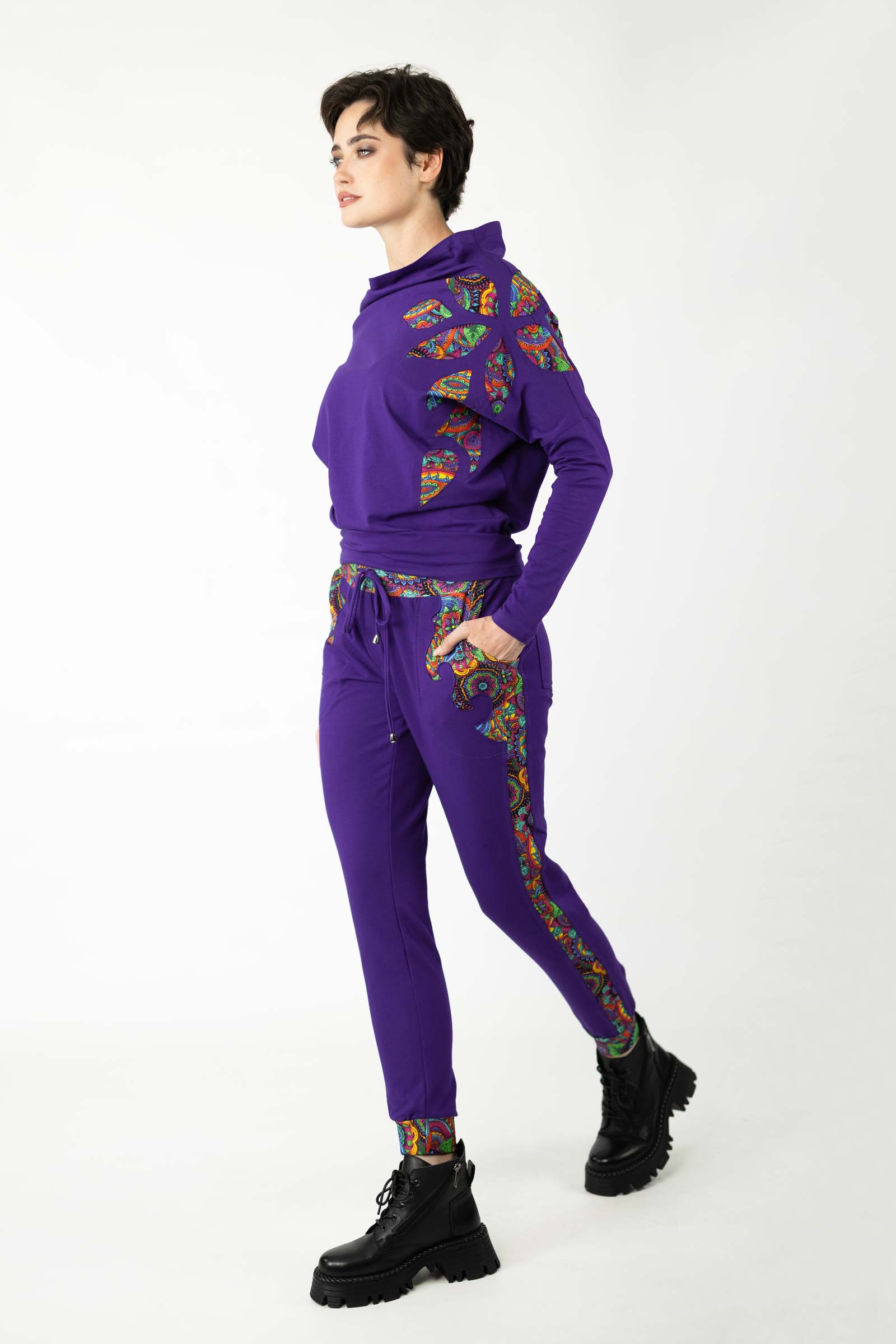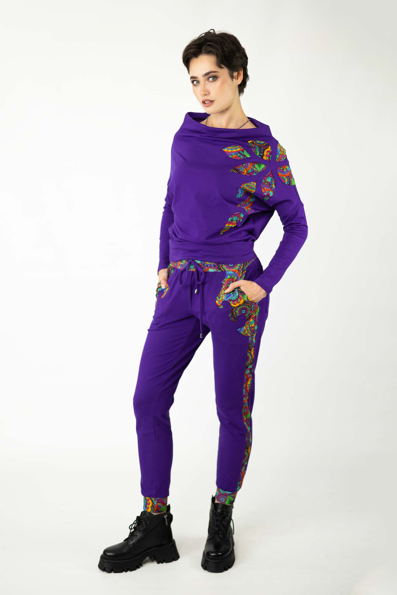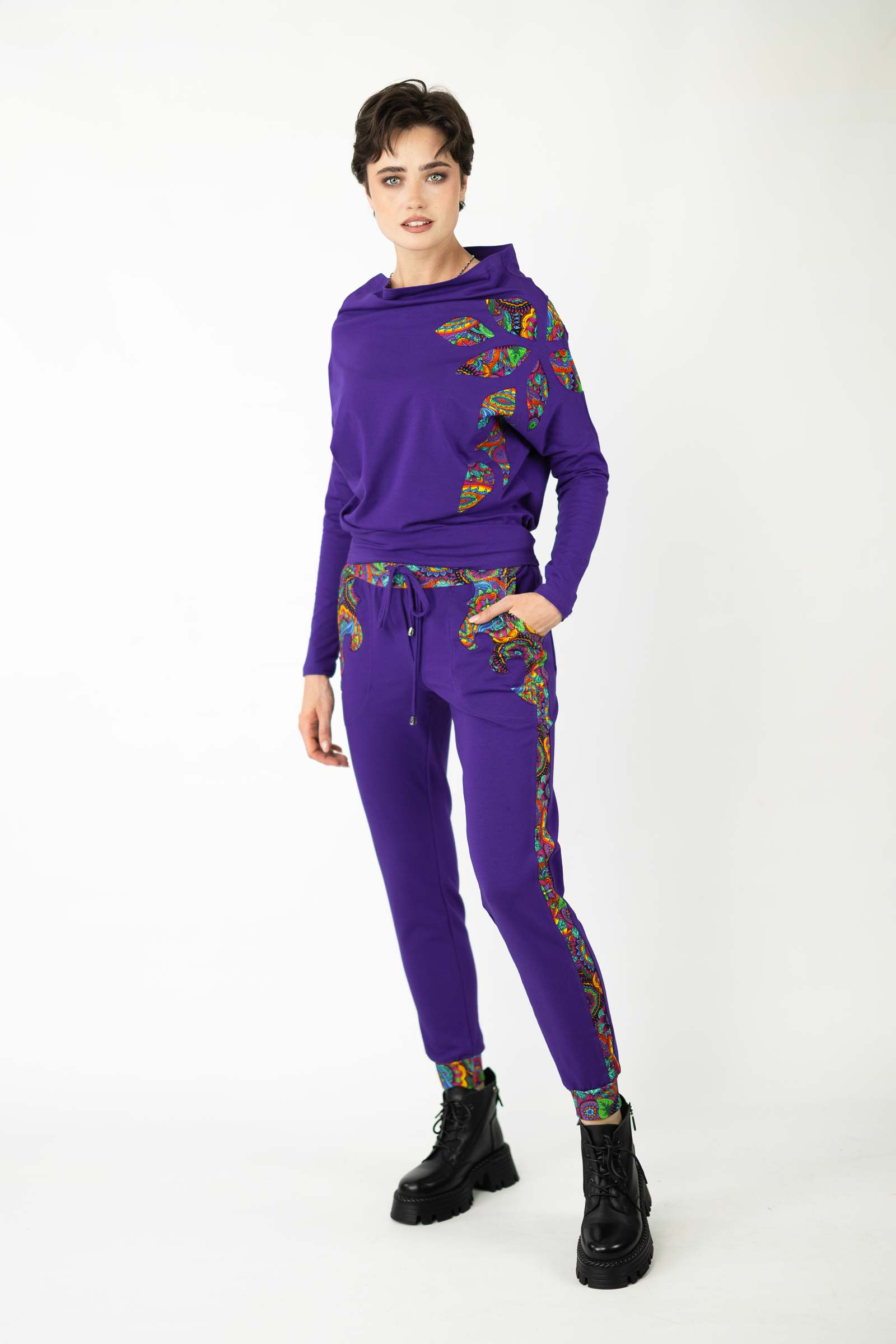 Bluzka została uszyta w naszej pracowni w Legionowie z miękkiej, elastycznej dzianiny bawełnianej – oddychającej, komfortowej i przyjemnej w dotyku. To propozycja dla kobiet, które cenią kreatywne podejście do mody, wygodę i wyjątkowe, ręcznie wykonane detale.