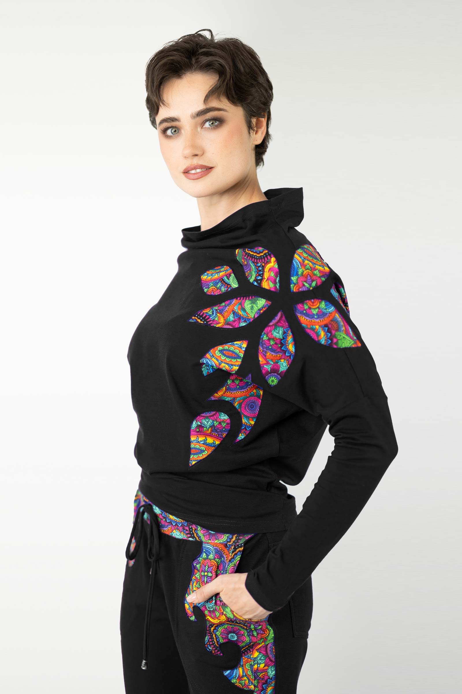Bluzka z luźnym golfem i aplikacjami "BLISS"
