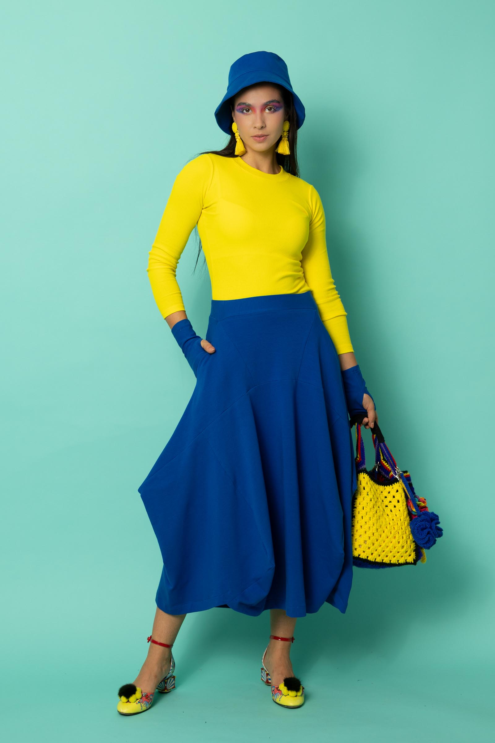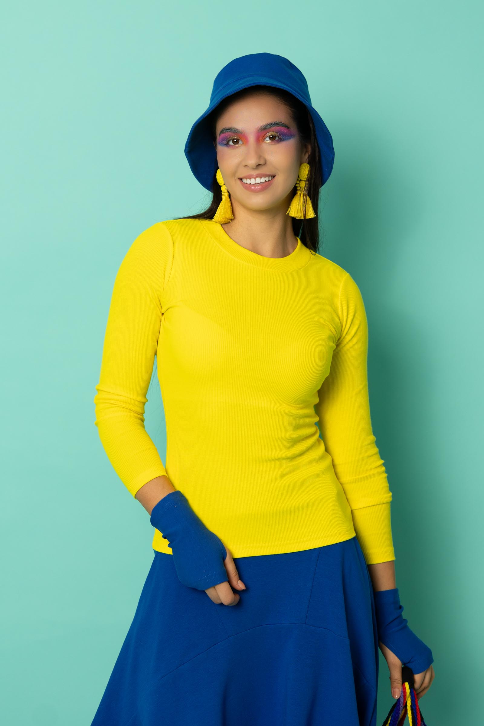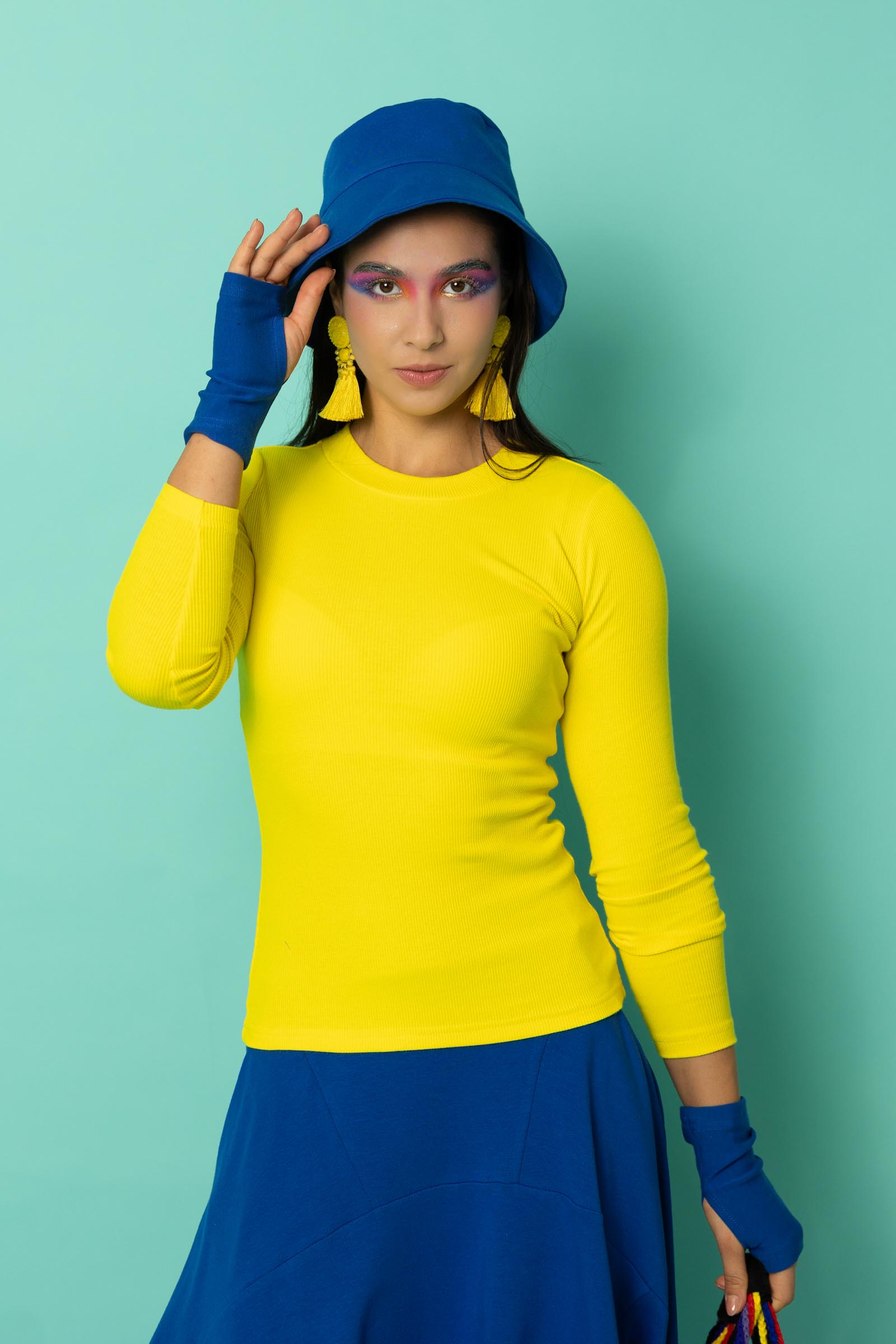 Bluzka żółta z dzianiny prążek "CRAZY BASIC" NIEIDEALNE