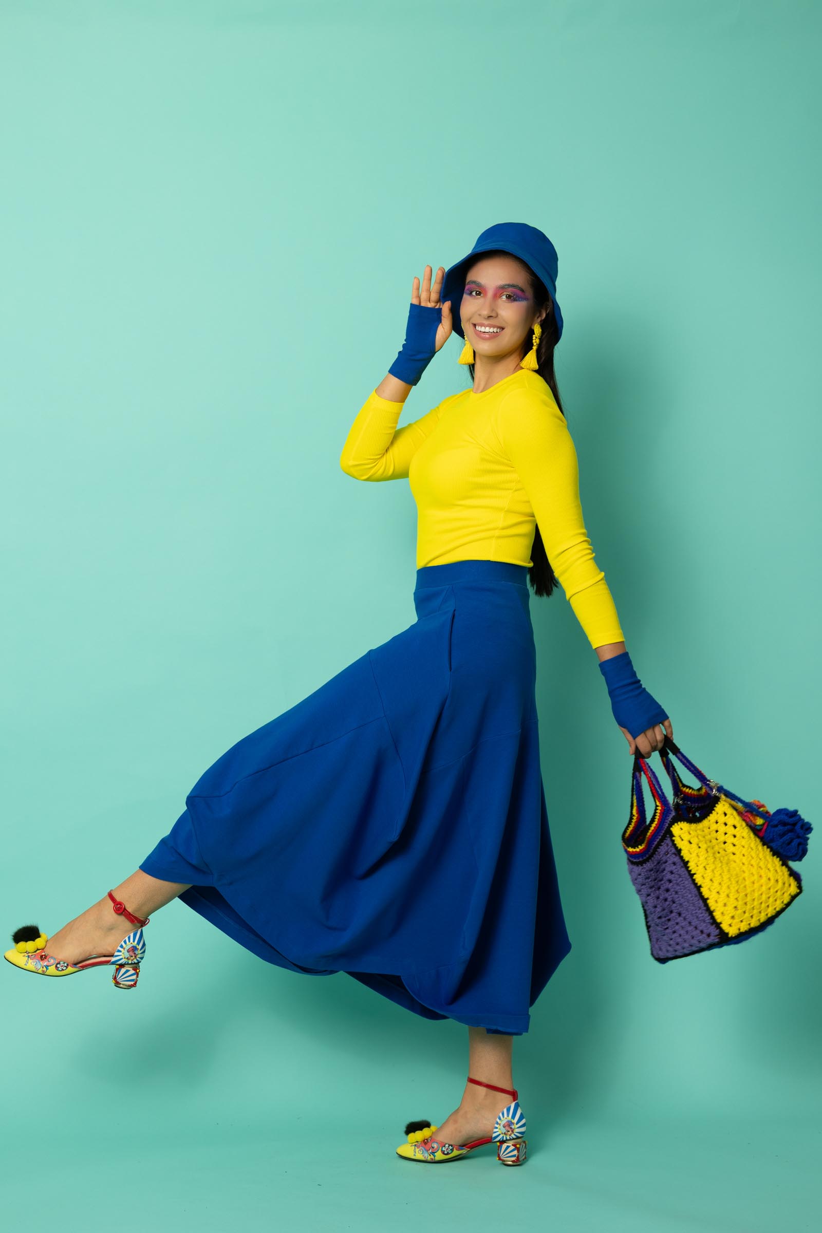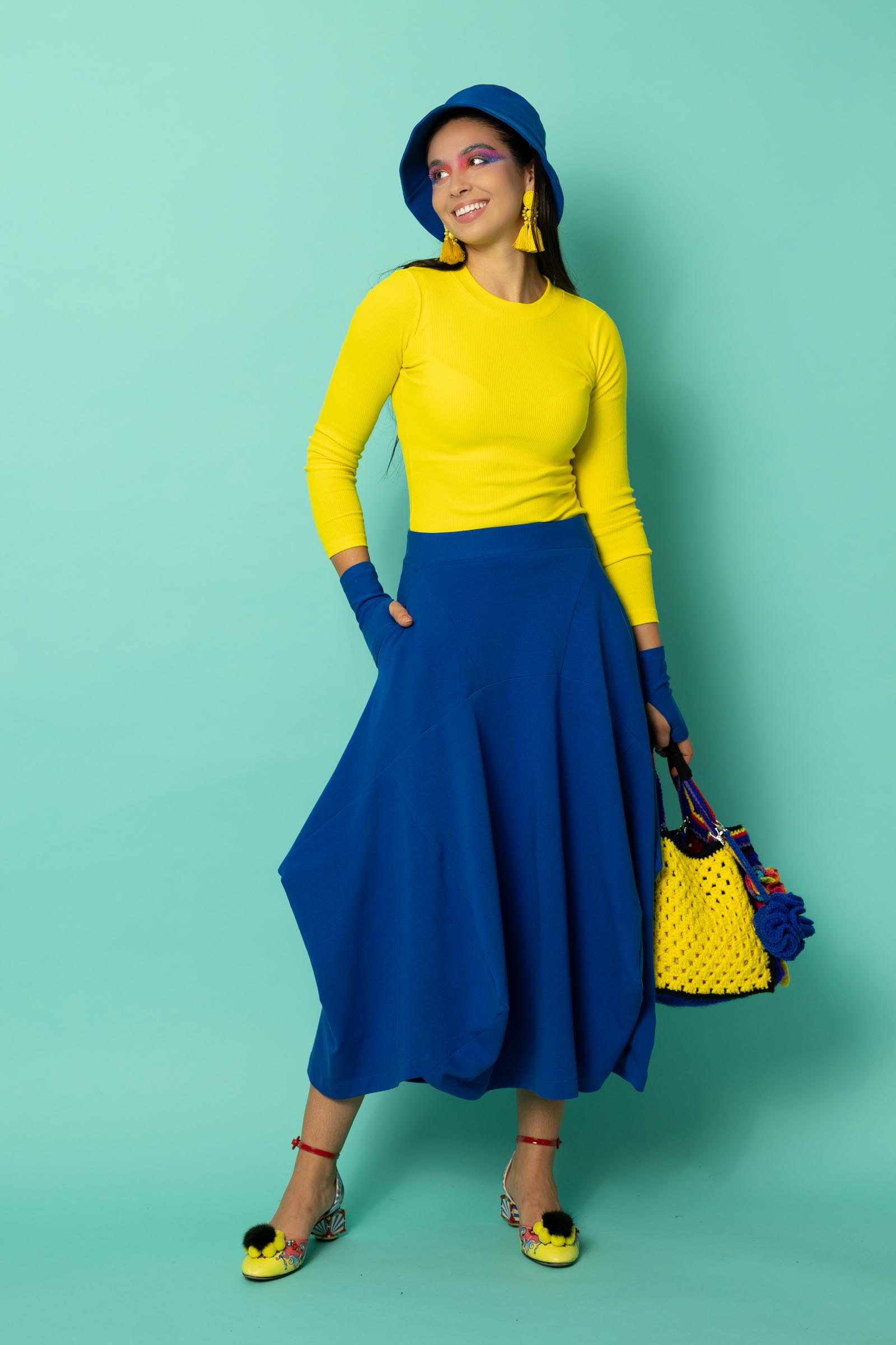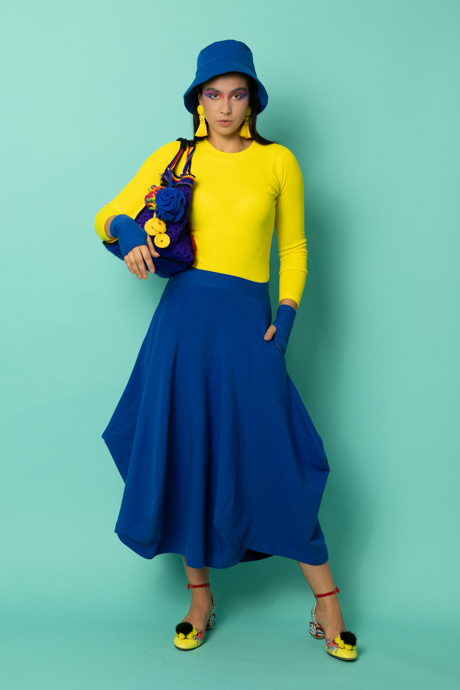 Bluzka żółta z dzianiny prążek "CRAZY BASIC" NIEIDEALNE
