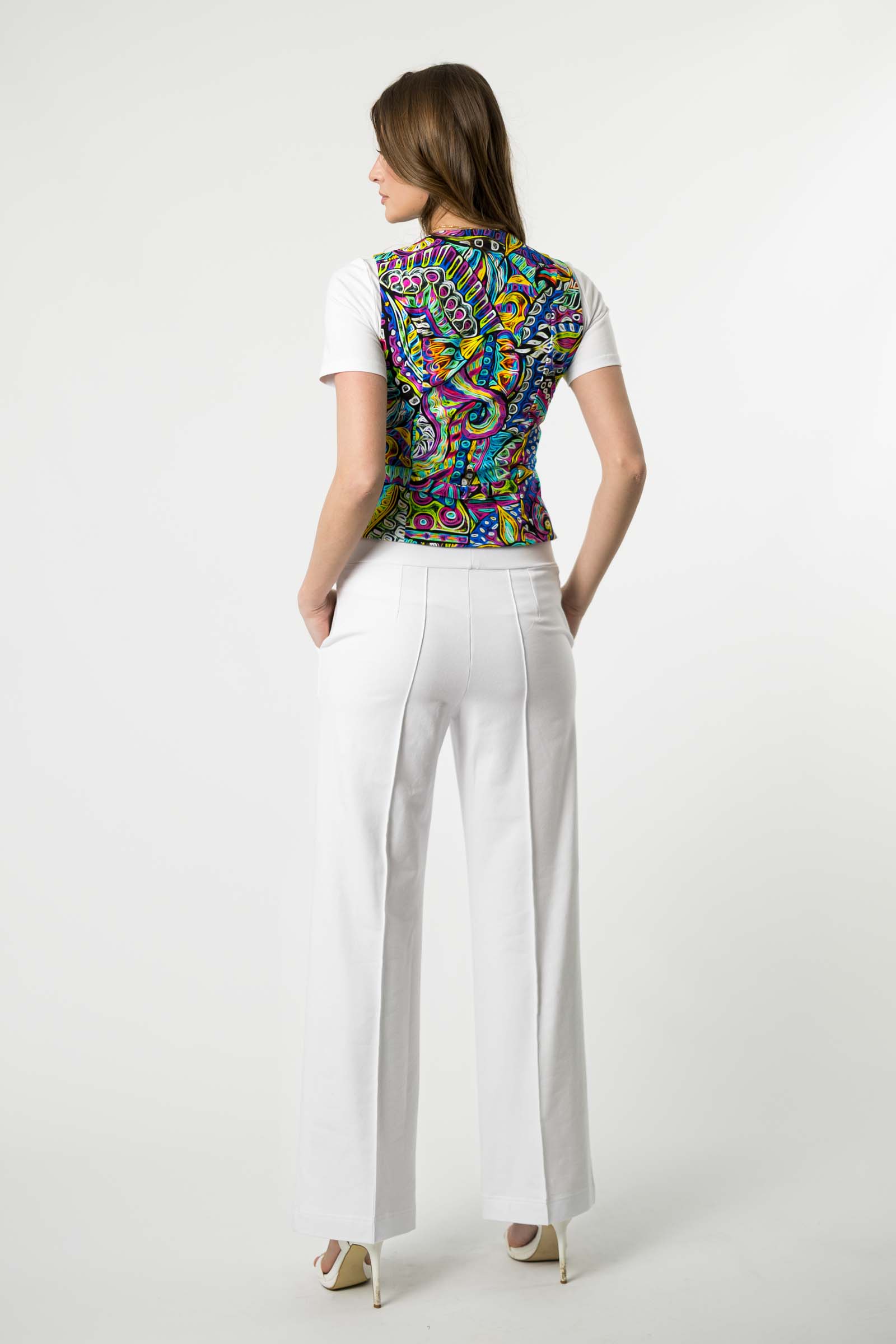 Kamizelka ta ma imitację kieszeni, co nadaje jej subtelny, elegancki wygląd. Trzy zatrzaski pozwalają na łatwe i szybkie zapięcie, co sprawia, że jest to wygodna opcja na różne okazje. Jej głęboki wycięty dekolt dodaje elegancji i kobiecości, jednocześnie pozwalając na wyeksponowanie koszuli lub bluzki, którą nosisz pod nią.