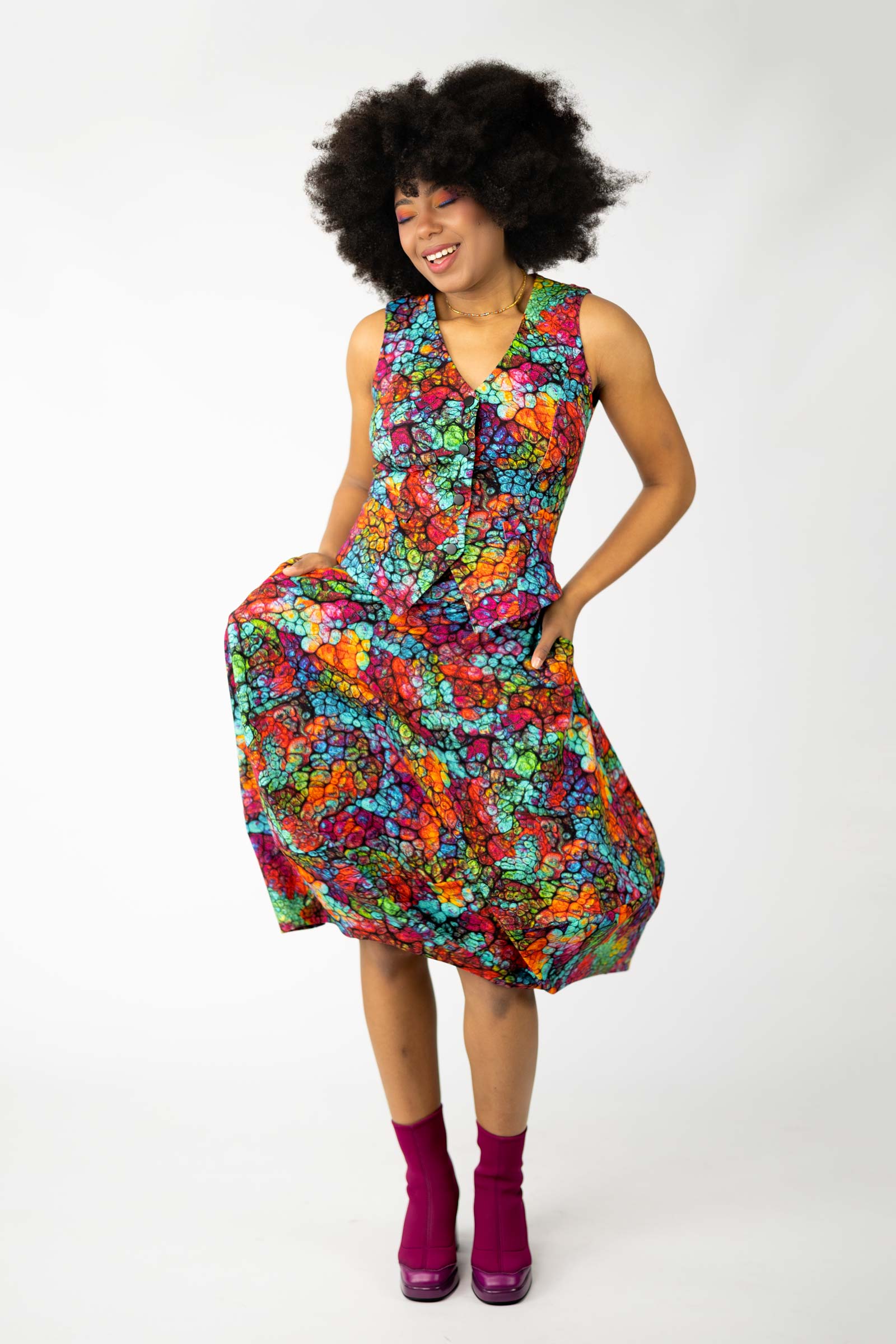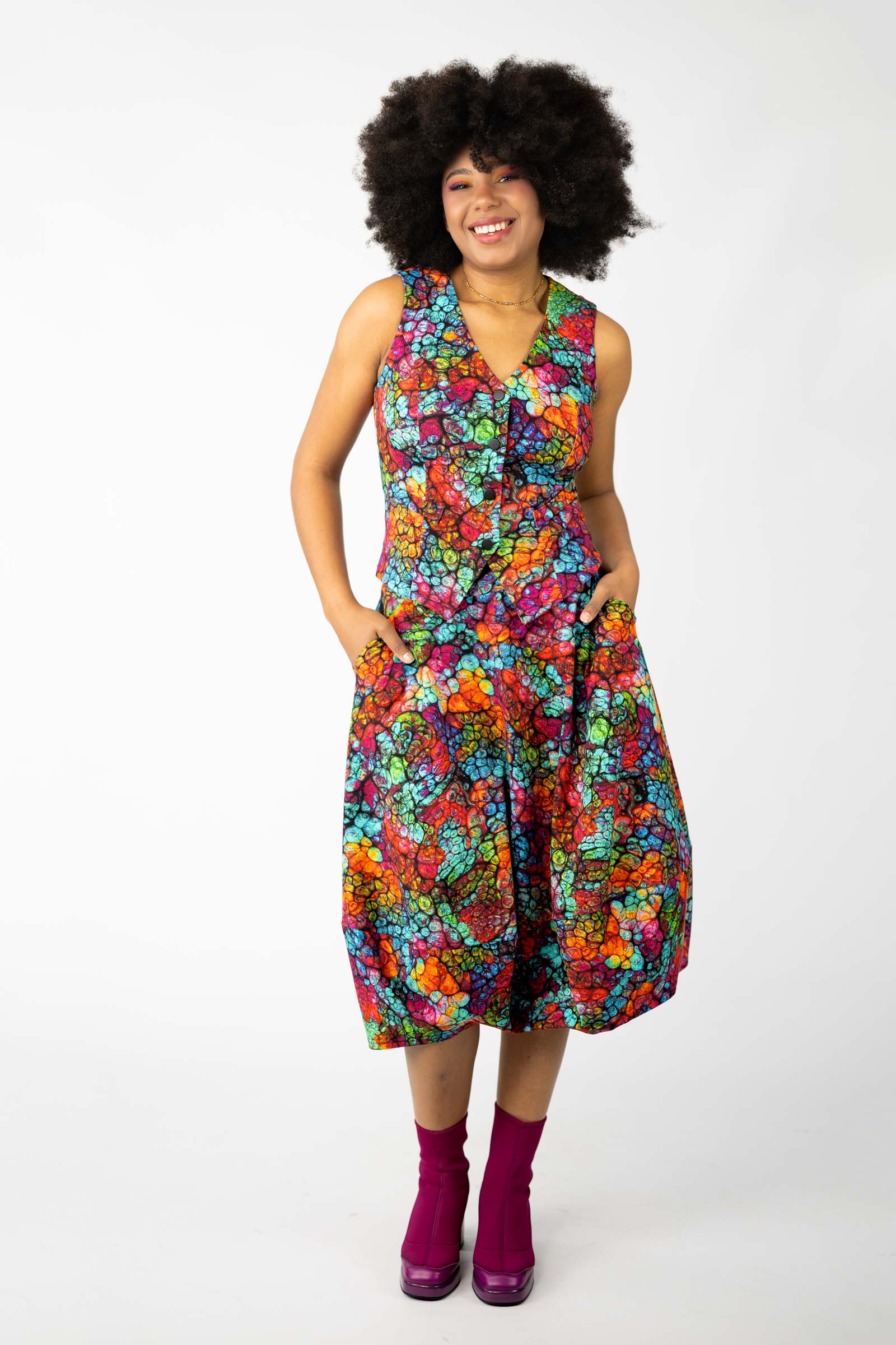Niezwykle ważnym elementem tej kamizelki/bluzki jest jej autorski wzór, który został zaprojektowany przez właścicielkę i twórczynię marki, Katarzynę Gałaj. Ten unikalny wzór nadaje indywidualności i sprawia, że staje się ona wyjątkową częścią Twojej garderoby. To nie tylko ubranie, to także wyraz artystycznego podejścia do mody.