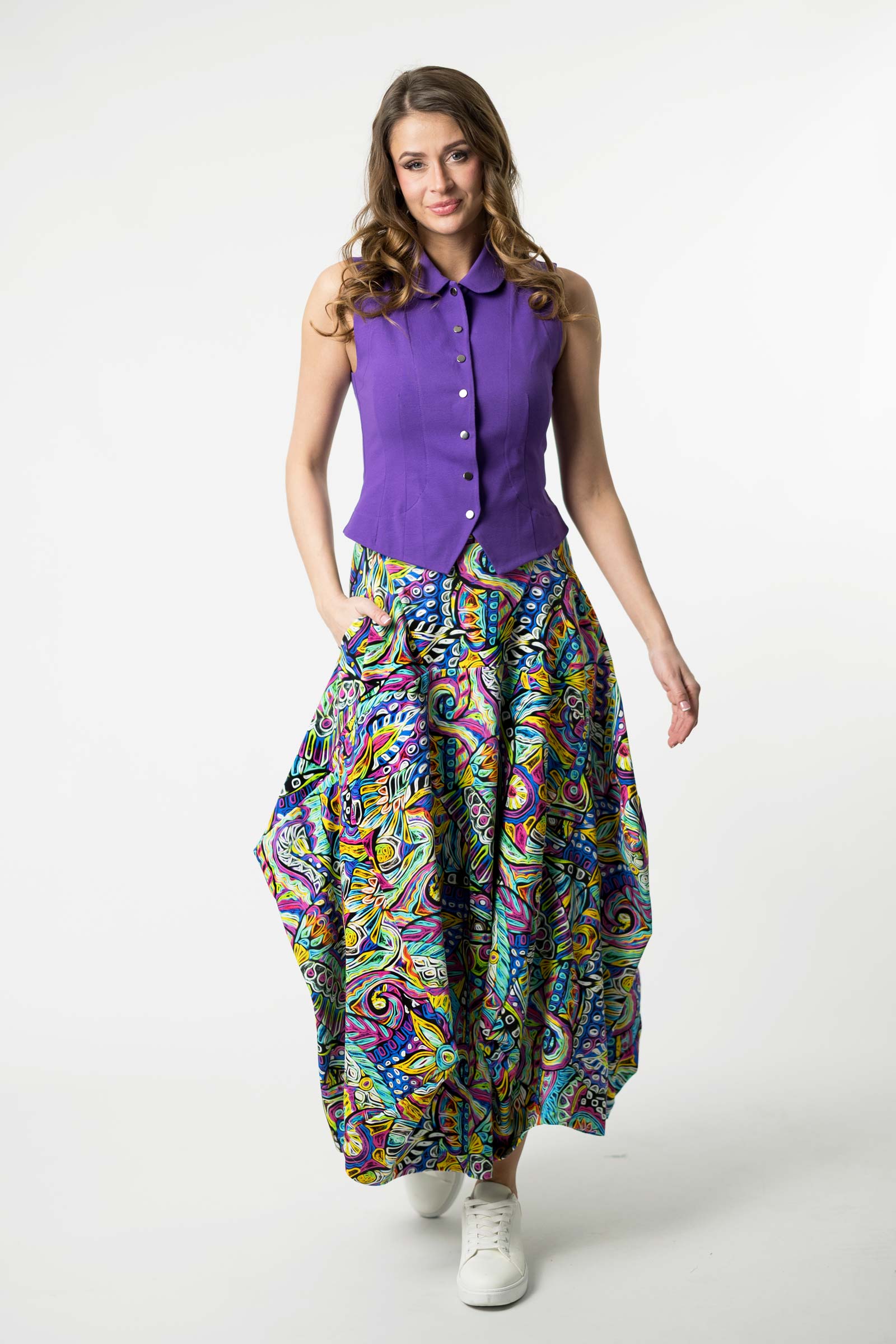 Uszyta z miękkiej, elastycznej dzianiny dresowej, zapewnia komfort noszenia przez cały dzień. Autorski wzór zaprojektowany przez Katarzynę Gałaj sprawia, że każda sztuka wyróżnia się indywidualnym, artystycznym wyrazem.