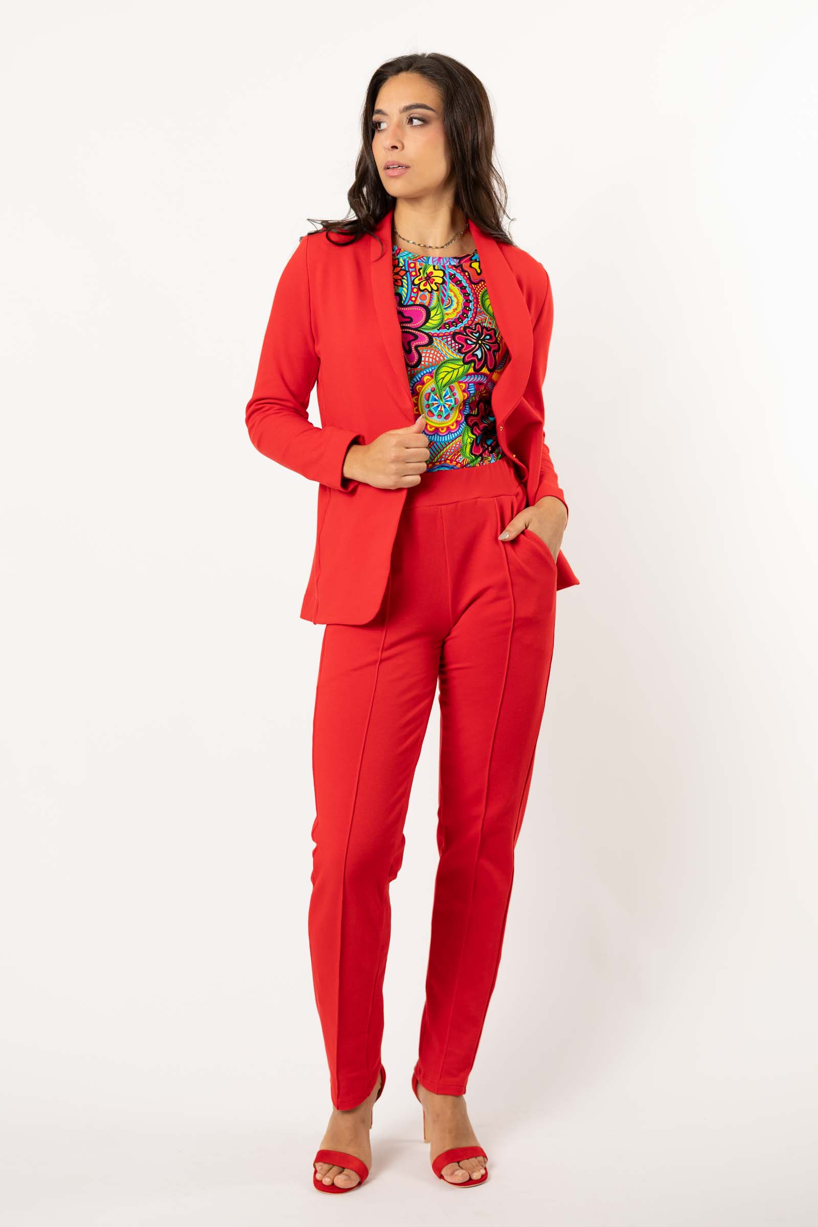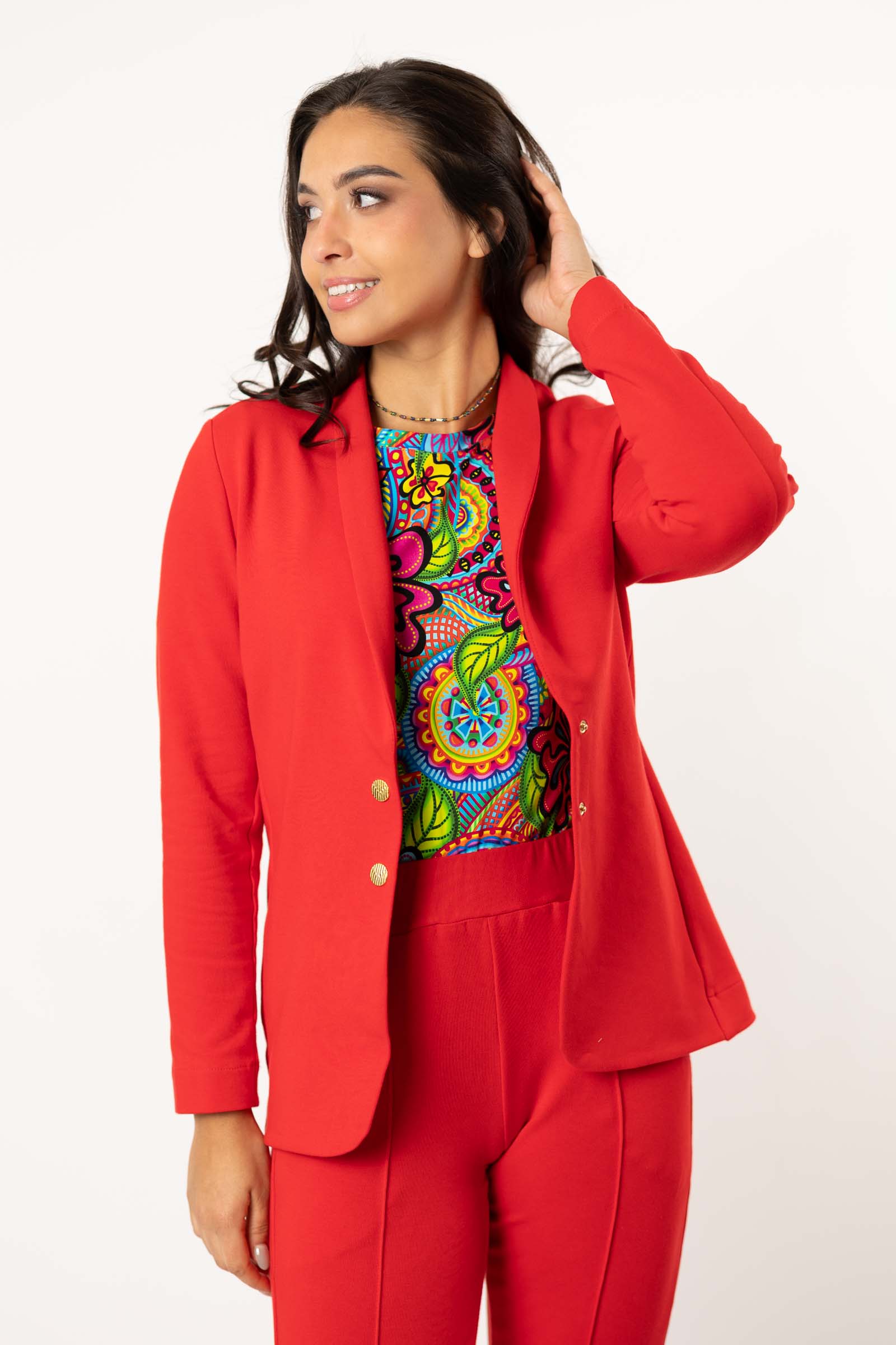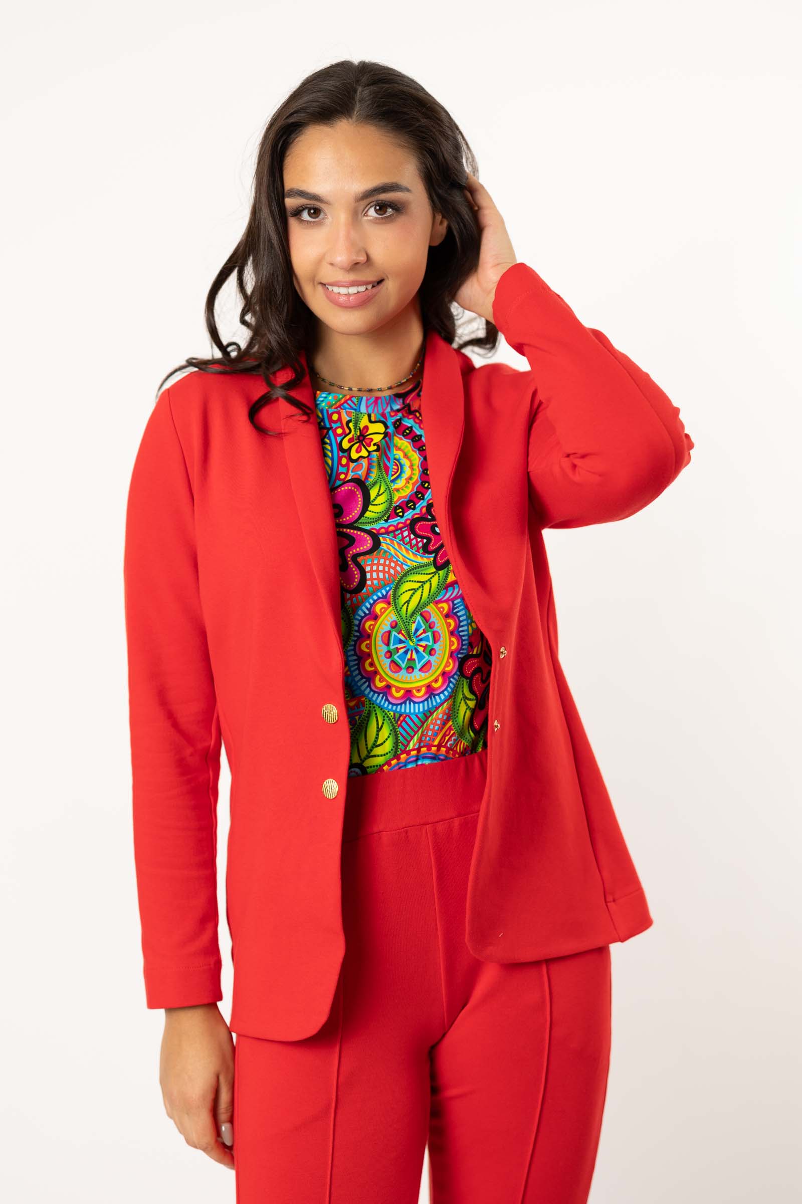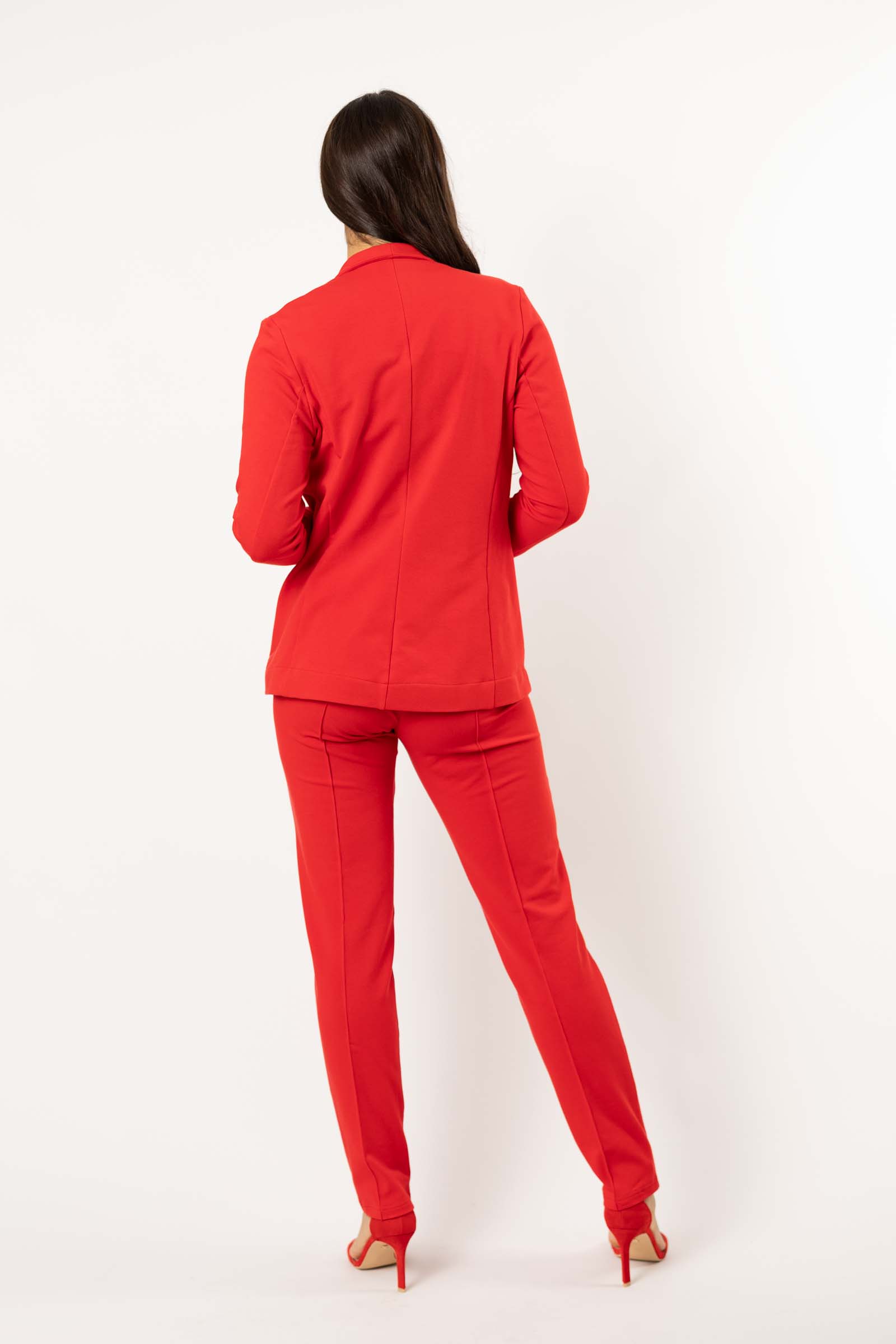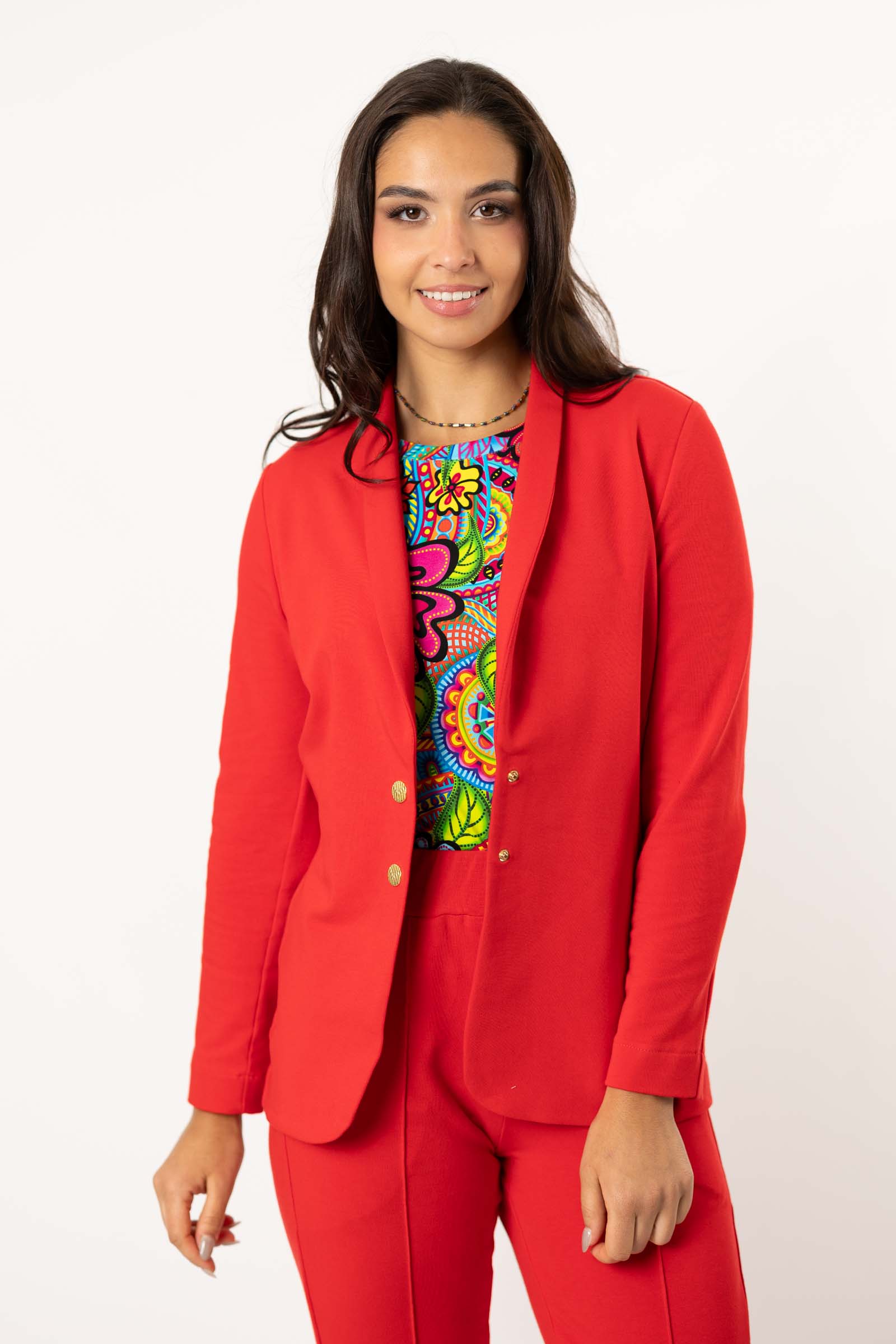 Krótka marynarka z elastycznej, bawełnianej dzianiny dresowej jest idealnym dodatkiem do Twojej garderoby. Taliowany krój podkreśla kobiecą sylwetkę, a kołnierz szalowy dodaje szyku i elegancji.