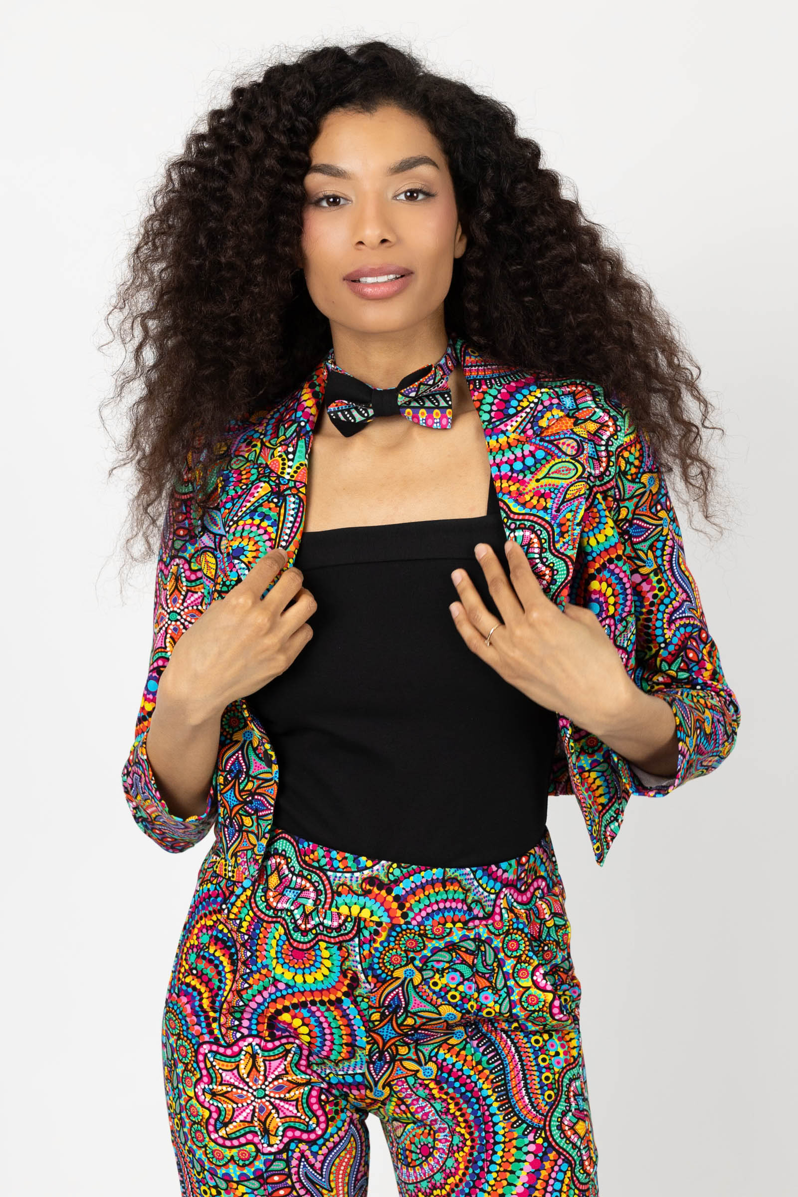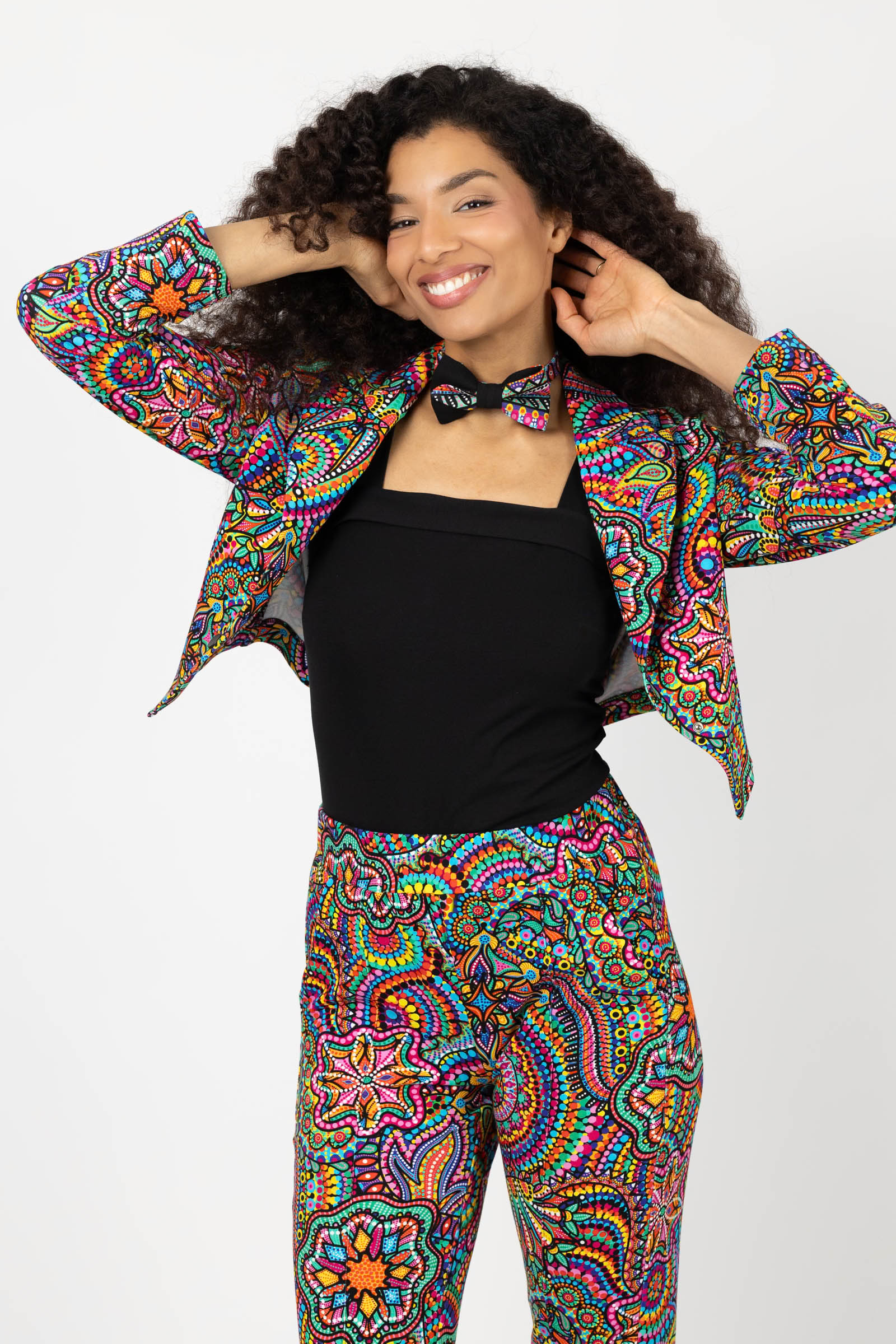 Mucha wykonana z dzianiny z autorskim wzorem zaprojektowanym przez właścicielkę marki, Katarzynę Gałaj. Wyrazista kolorystyka i oryginalny motyw nadają jej unikalnego charakteru, który wyróżnia się zarówno w damskich, jak i męskich stylizacjach.