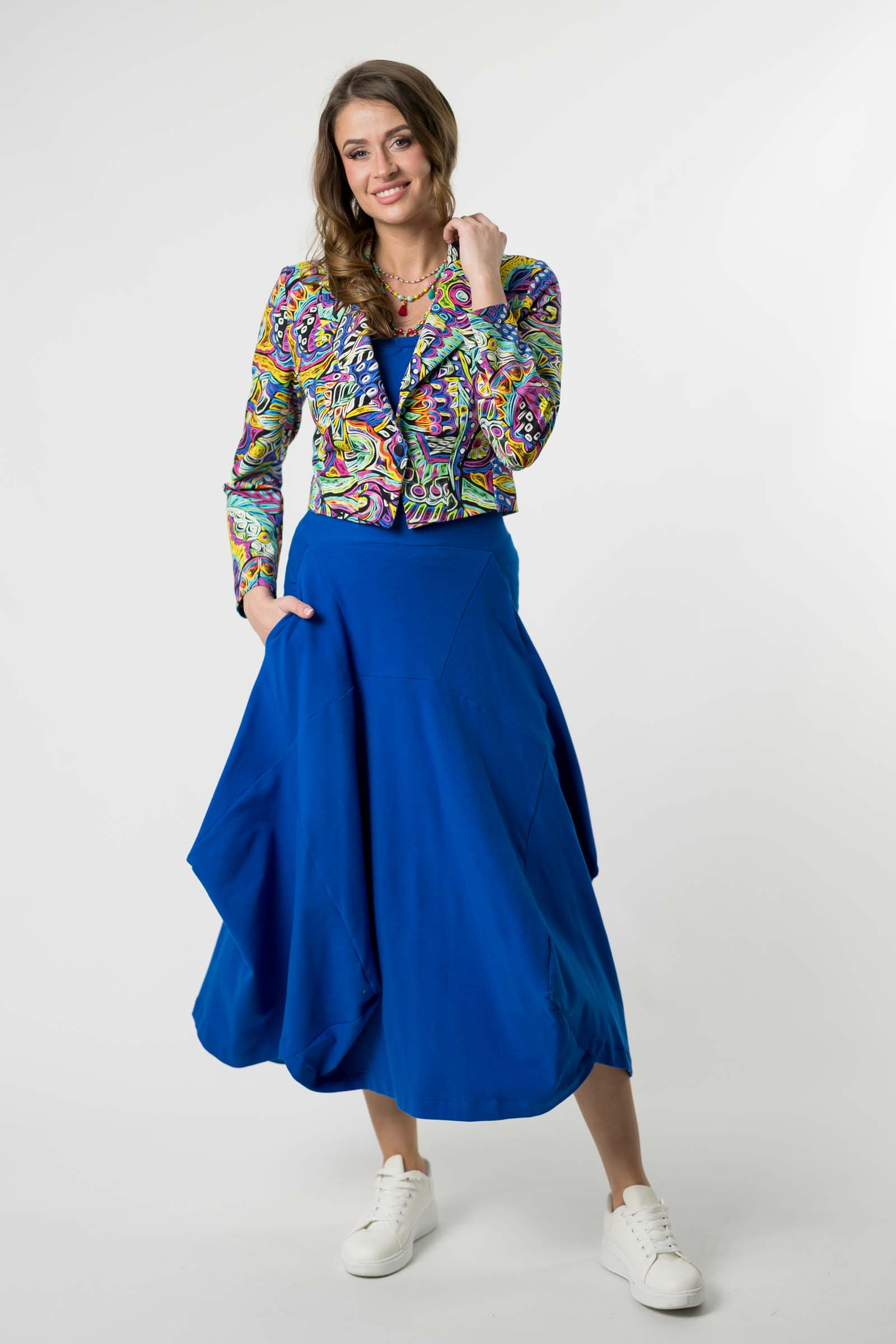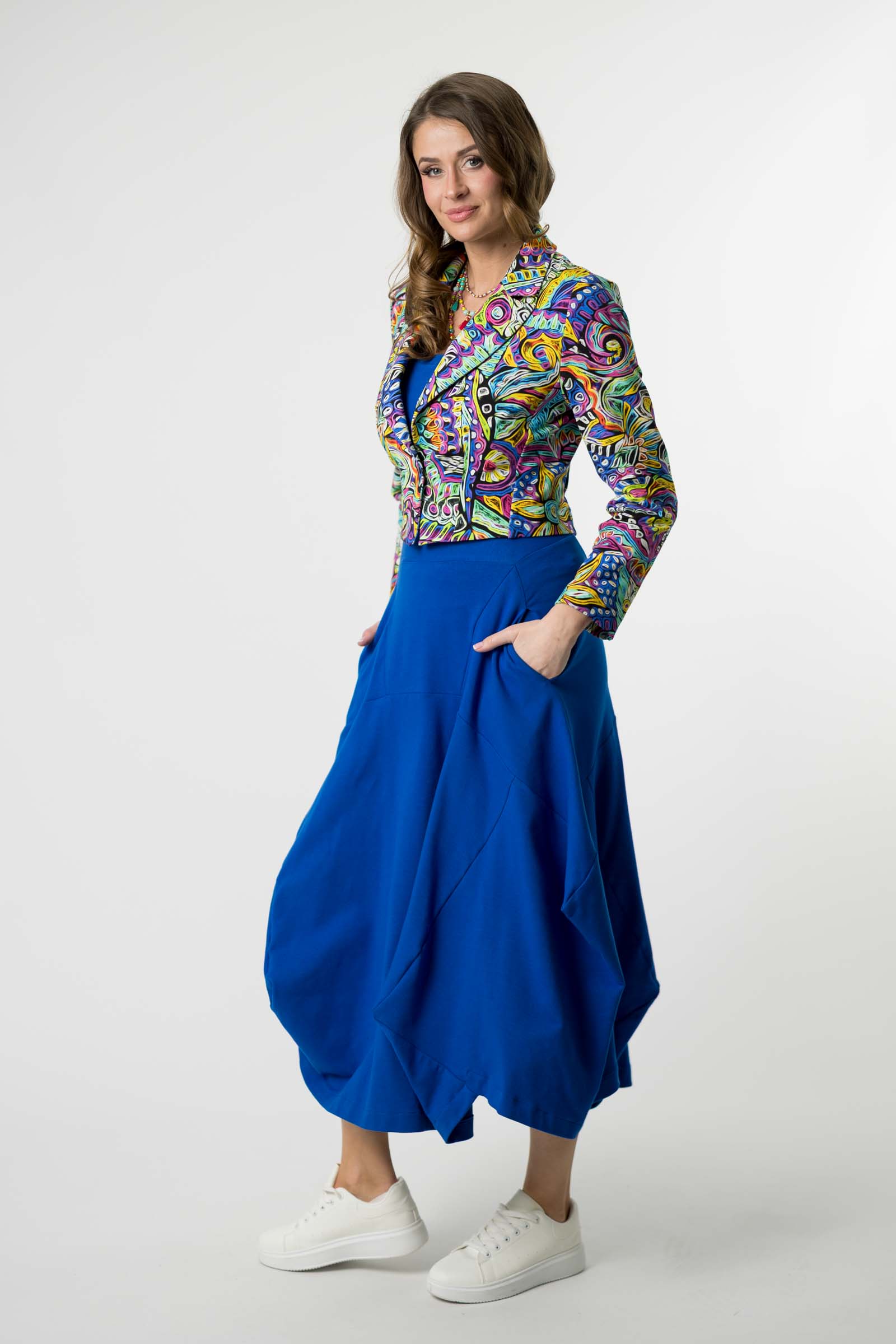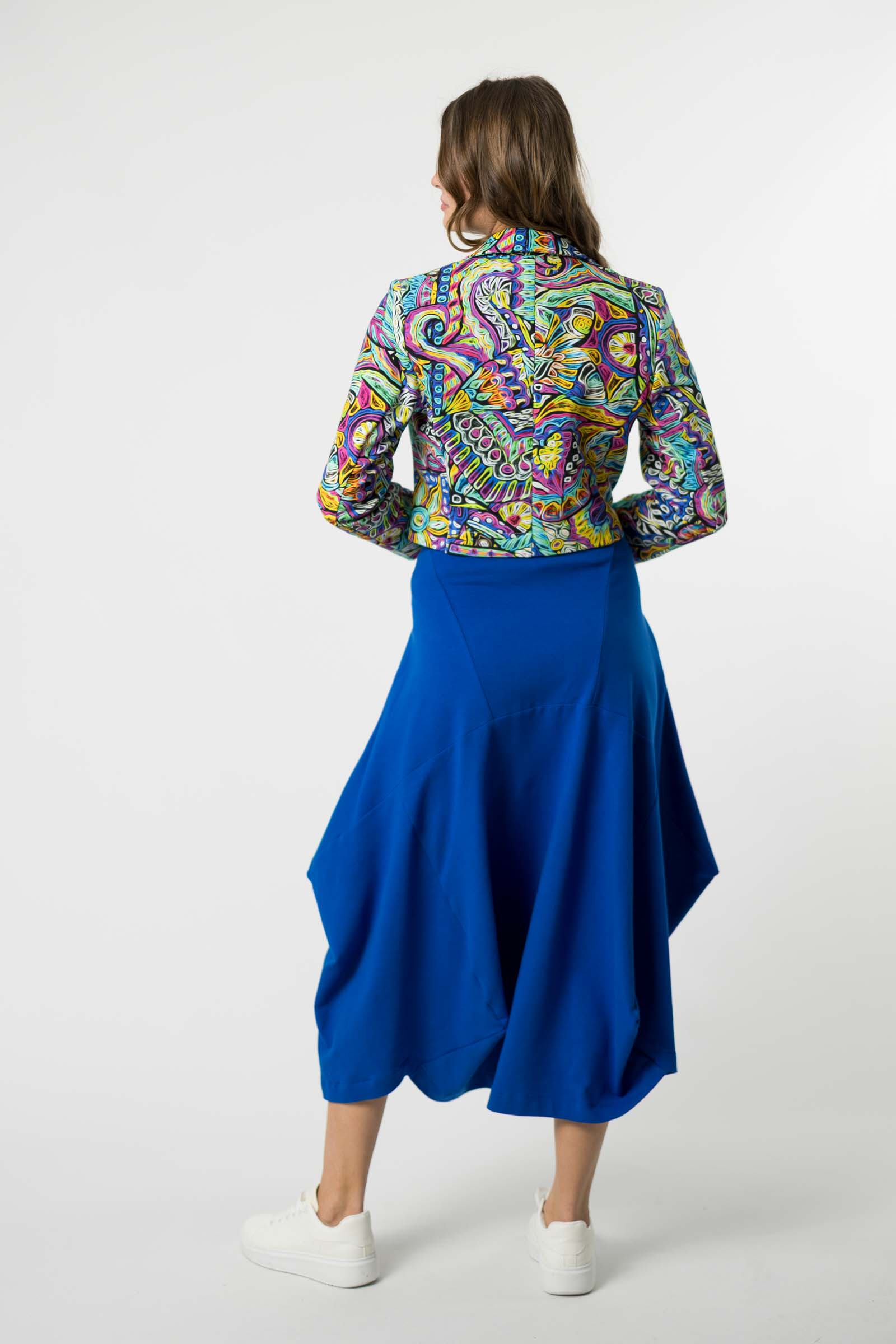 Ta spódnica to odważne połączenie oryginalnego designu i funkcjonalności. Jej awangardowy krój inspirowany sztuką origami przyciąga uwagę geometrycznymi załamaniami i nieregularnym dołem, który nadaje sylwetce dynamiki i lekkości. To propozycja dla kobiet, które lubią wychodzić poza schematy i eksperymentować z modą.