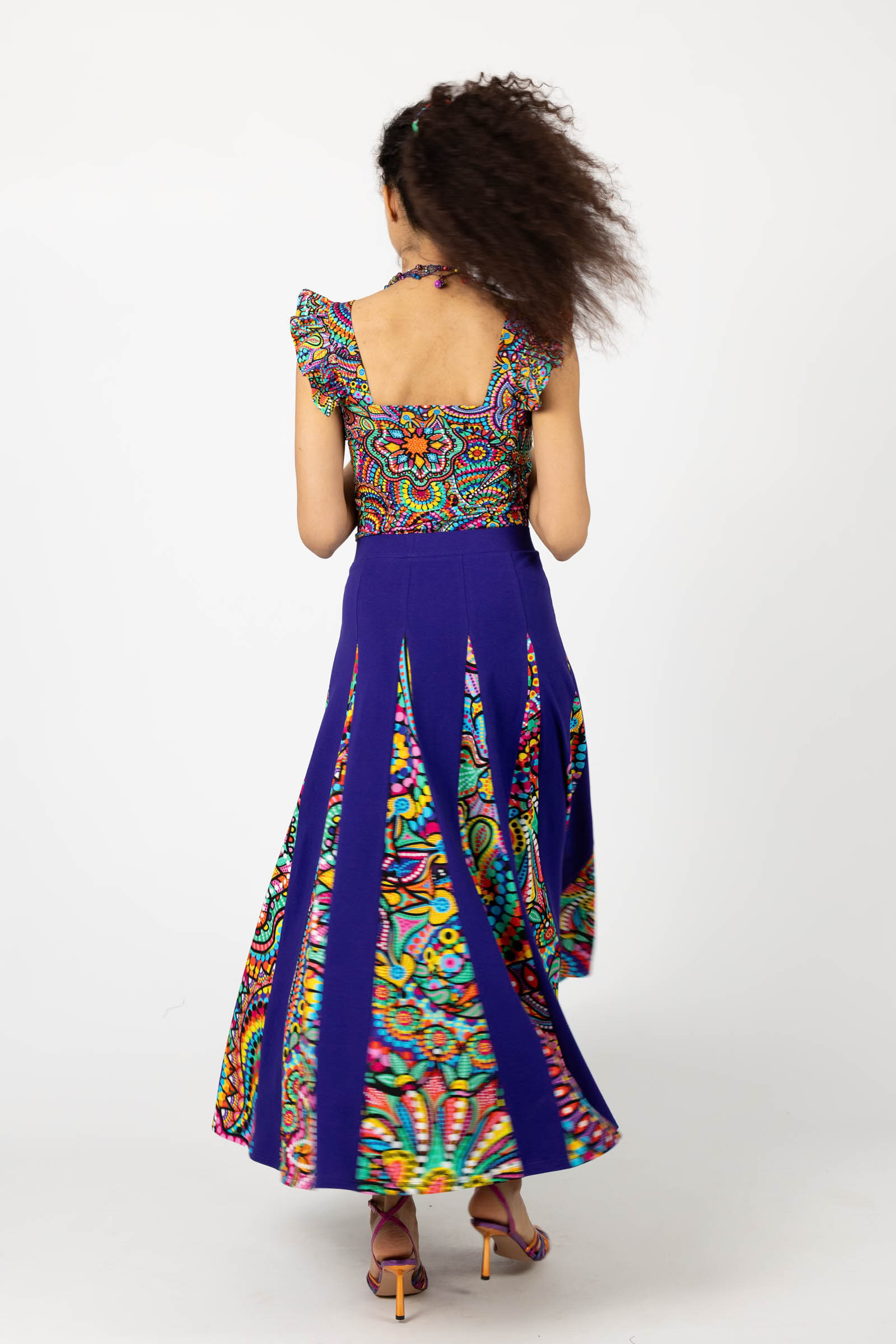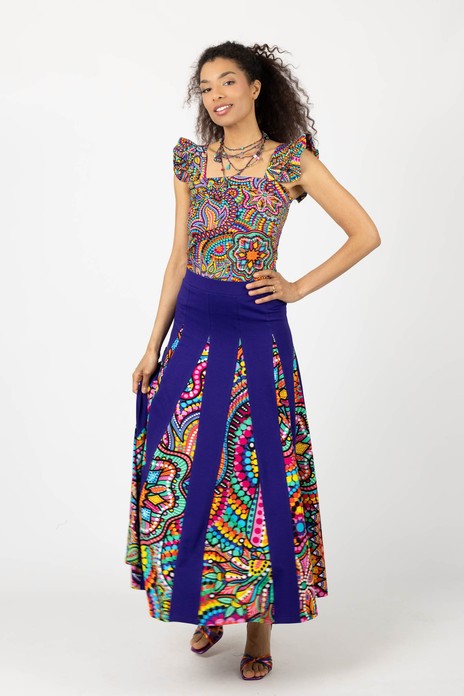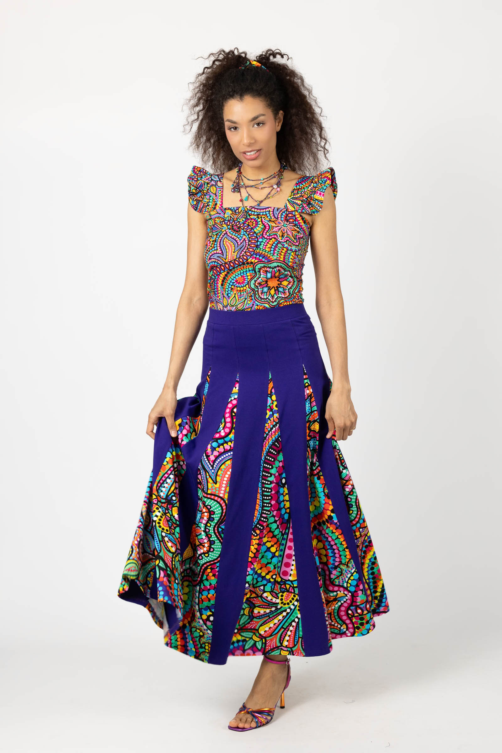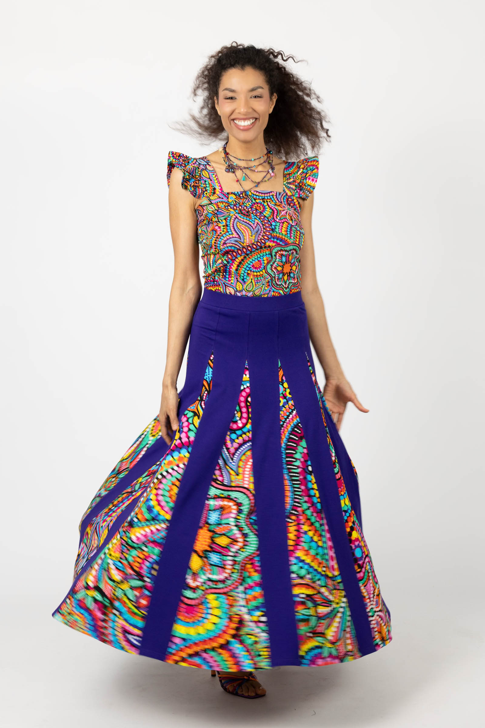 Spódnica długa z klinów fioletowa "CONFETTI" duży wzór