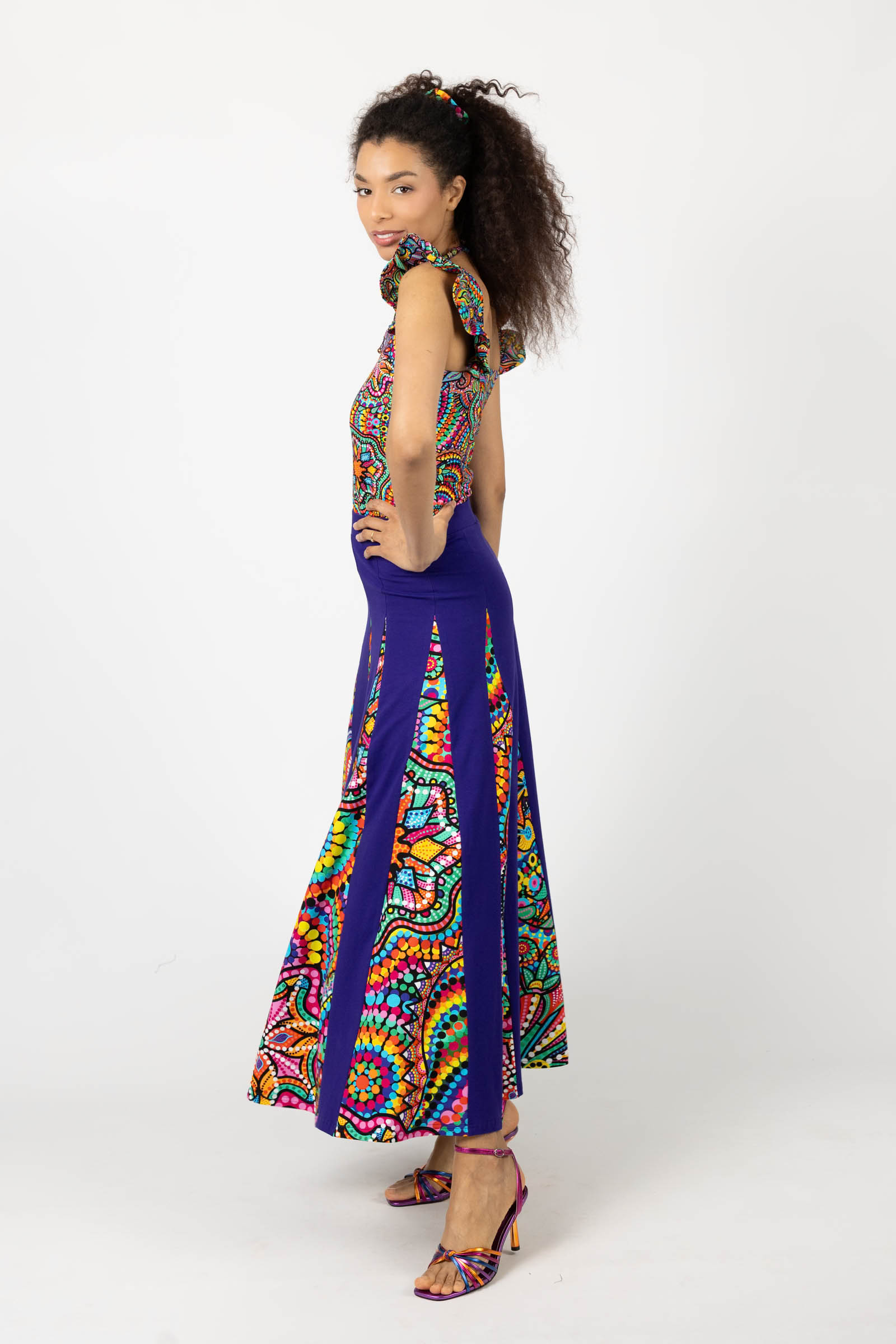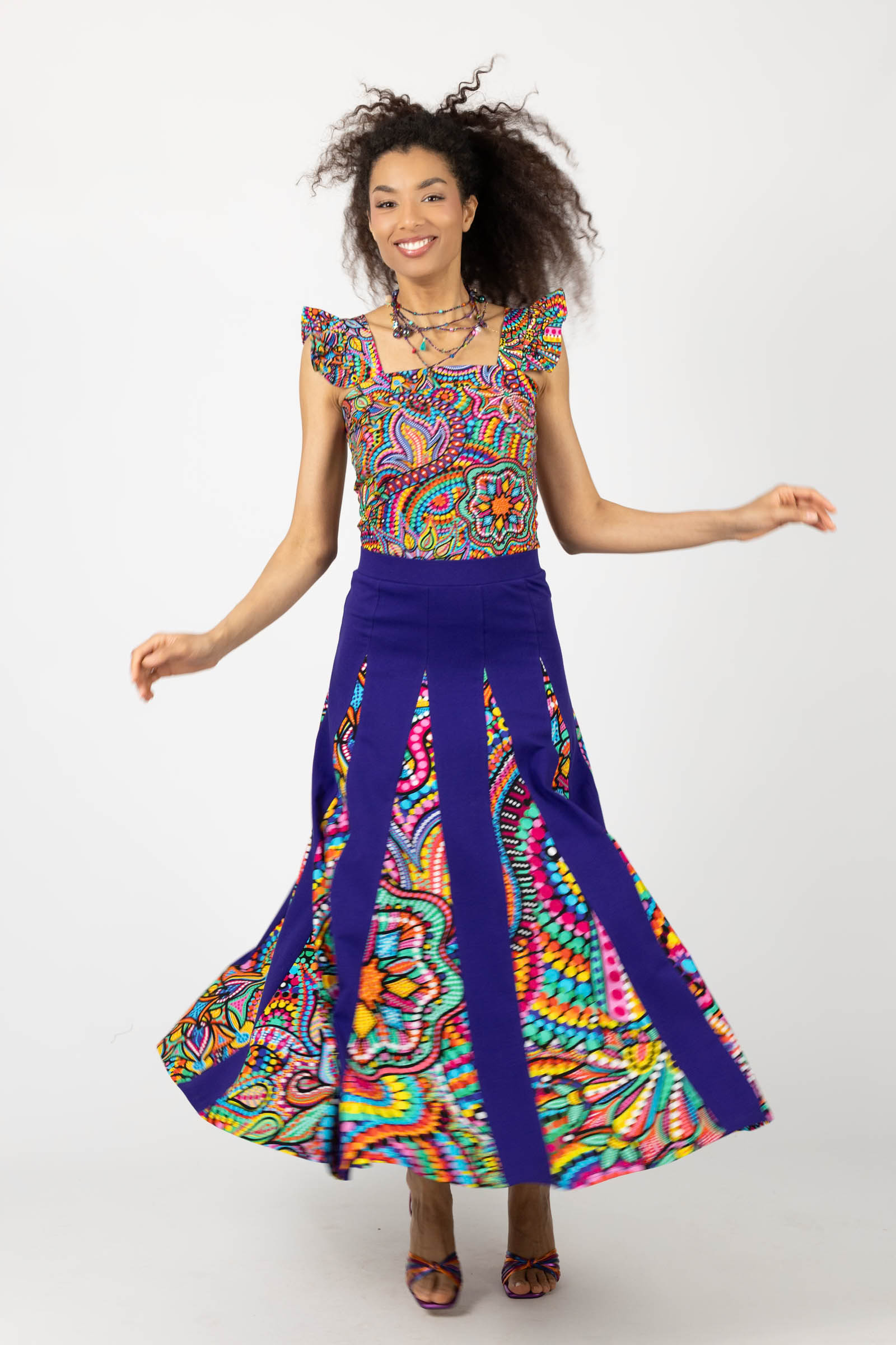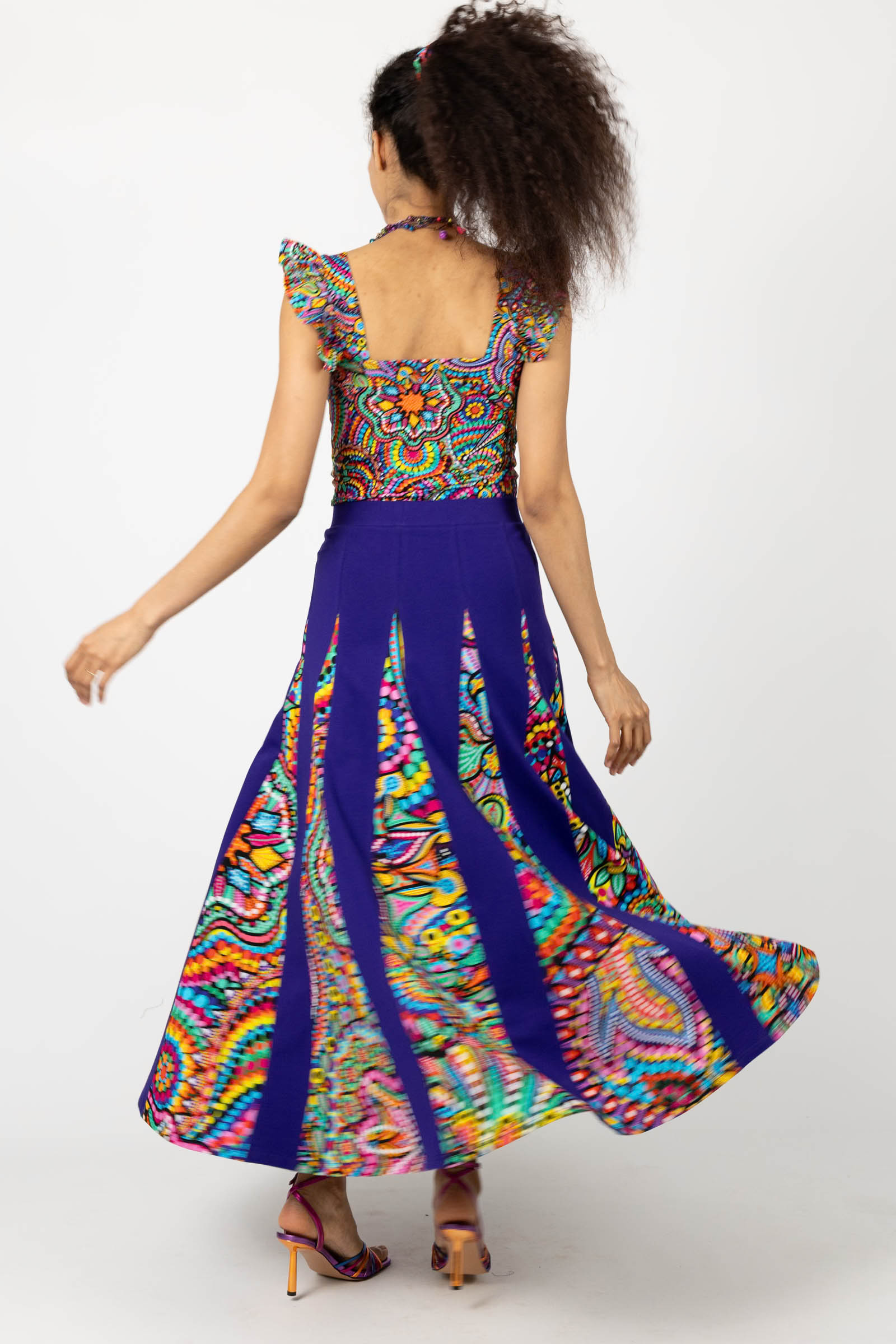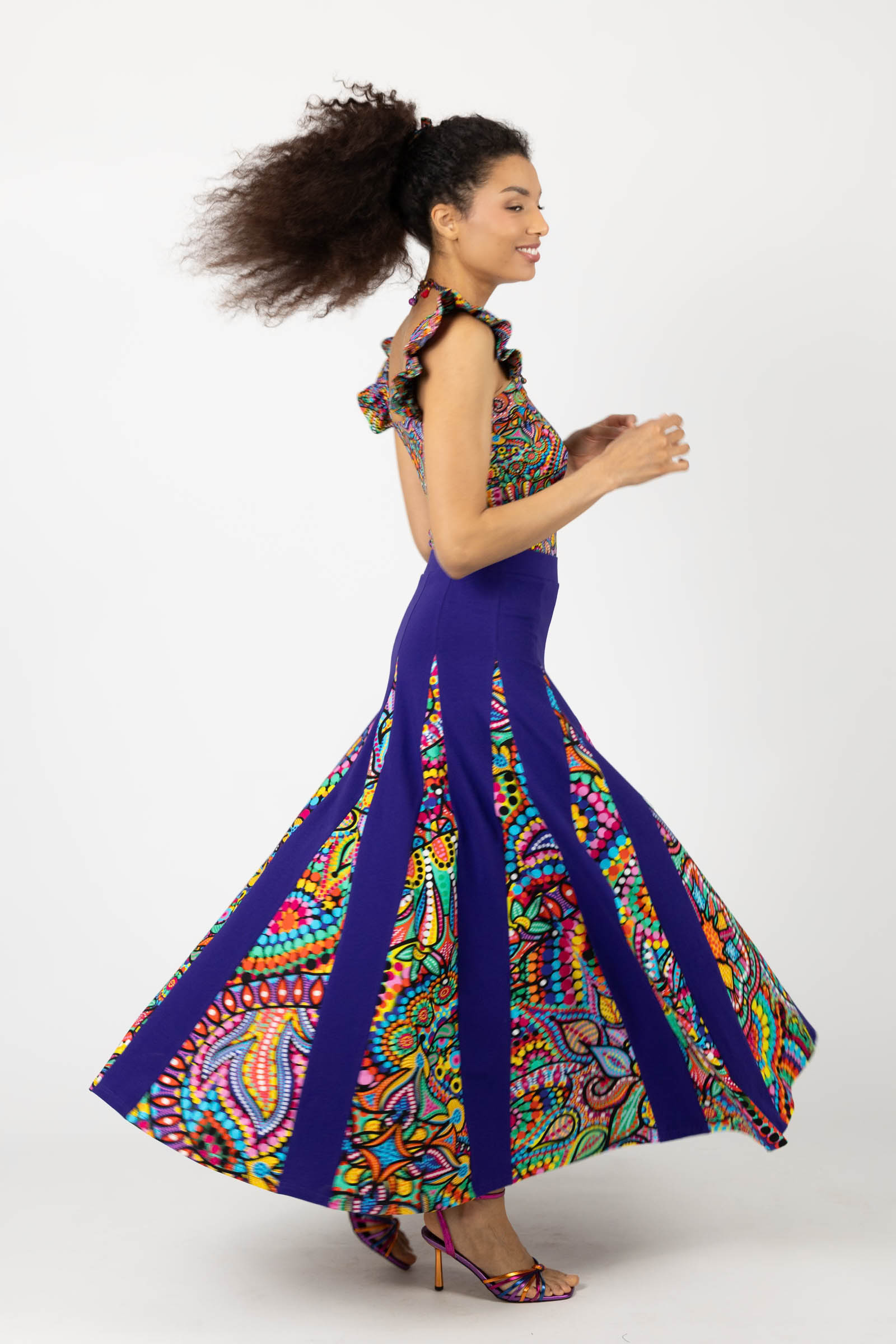 Spódnica długa z klinów fioletowa "CONFETTI" duży wzór