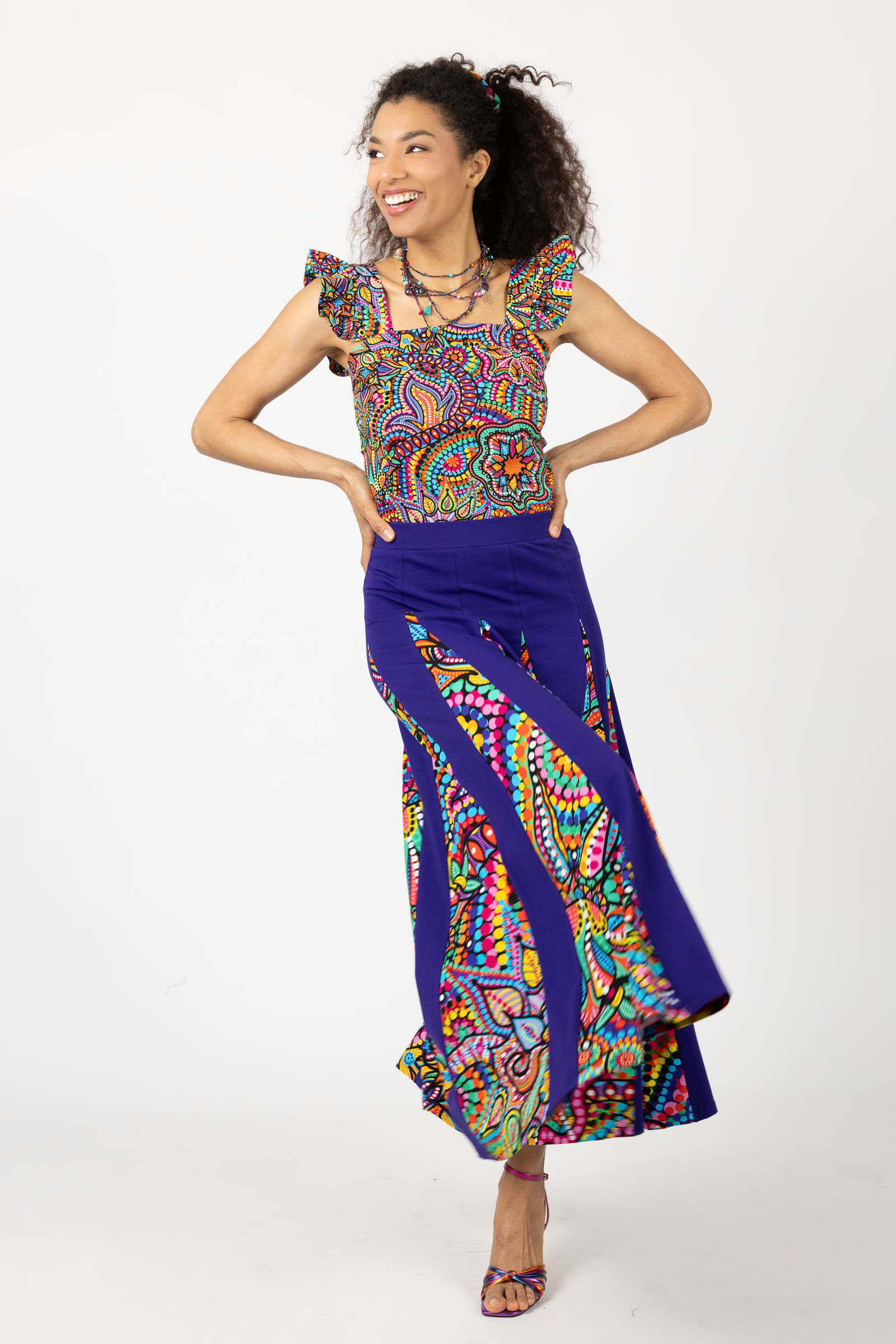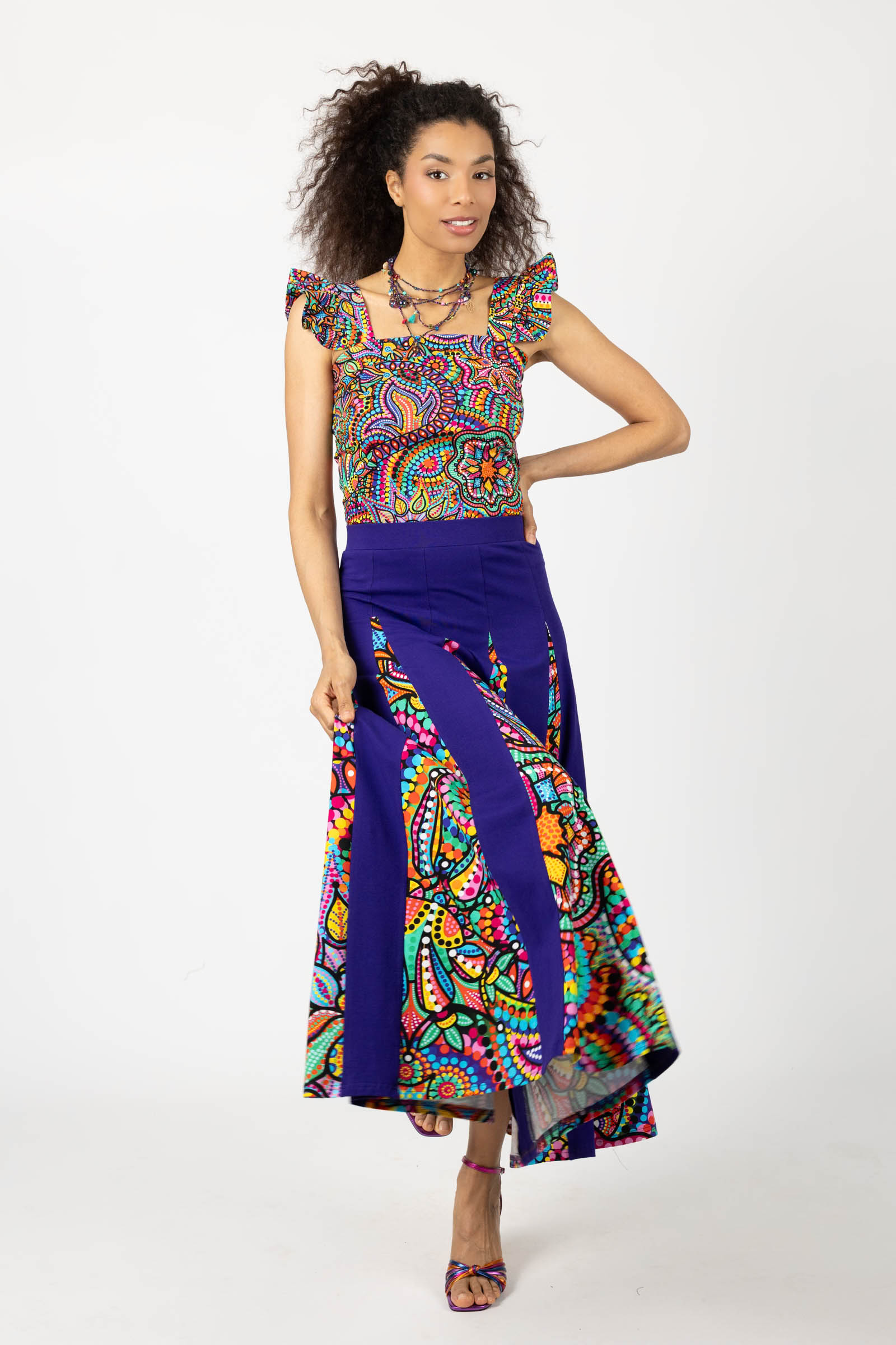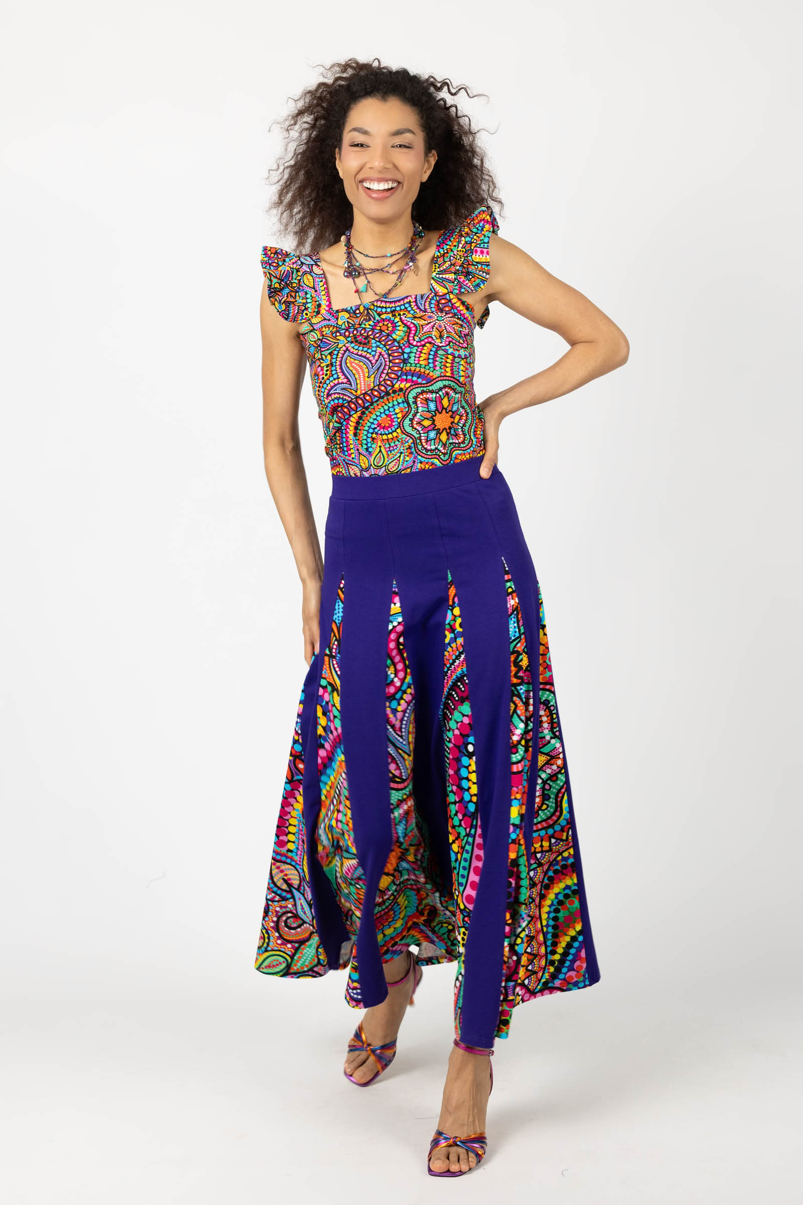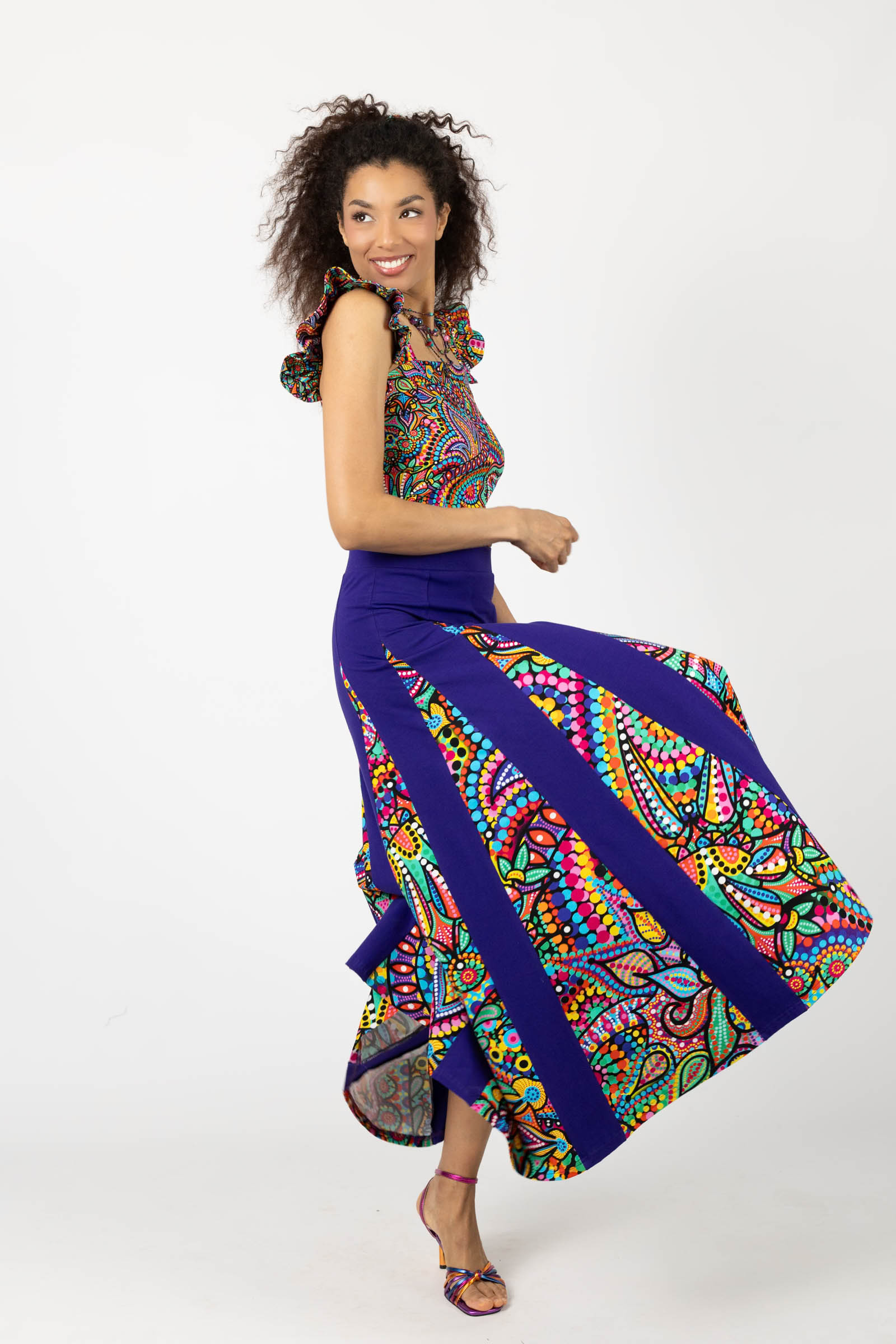 Spódnica długa z klinów fioletowa "CONFETTI" duży wzór