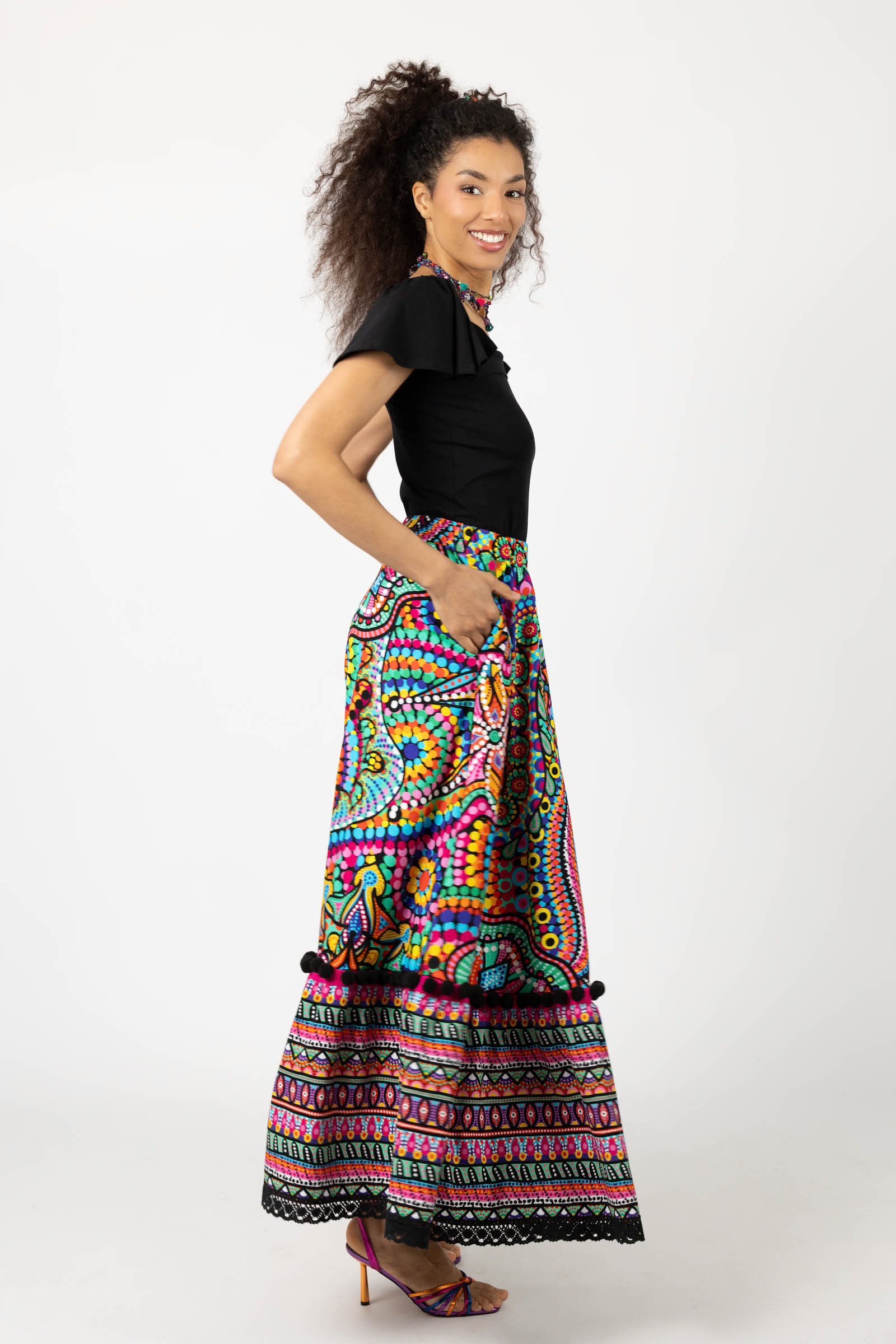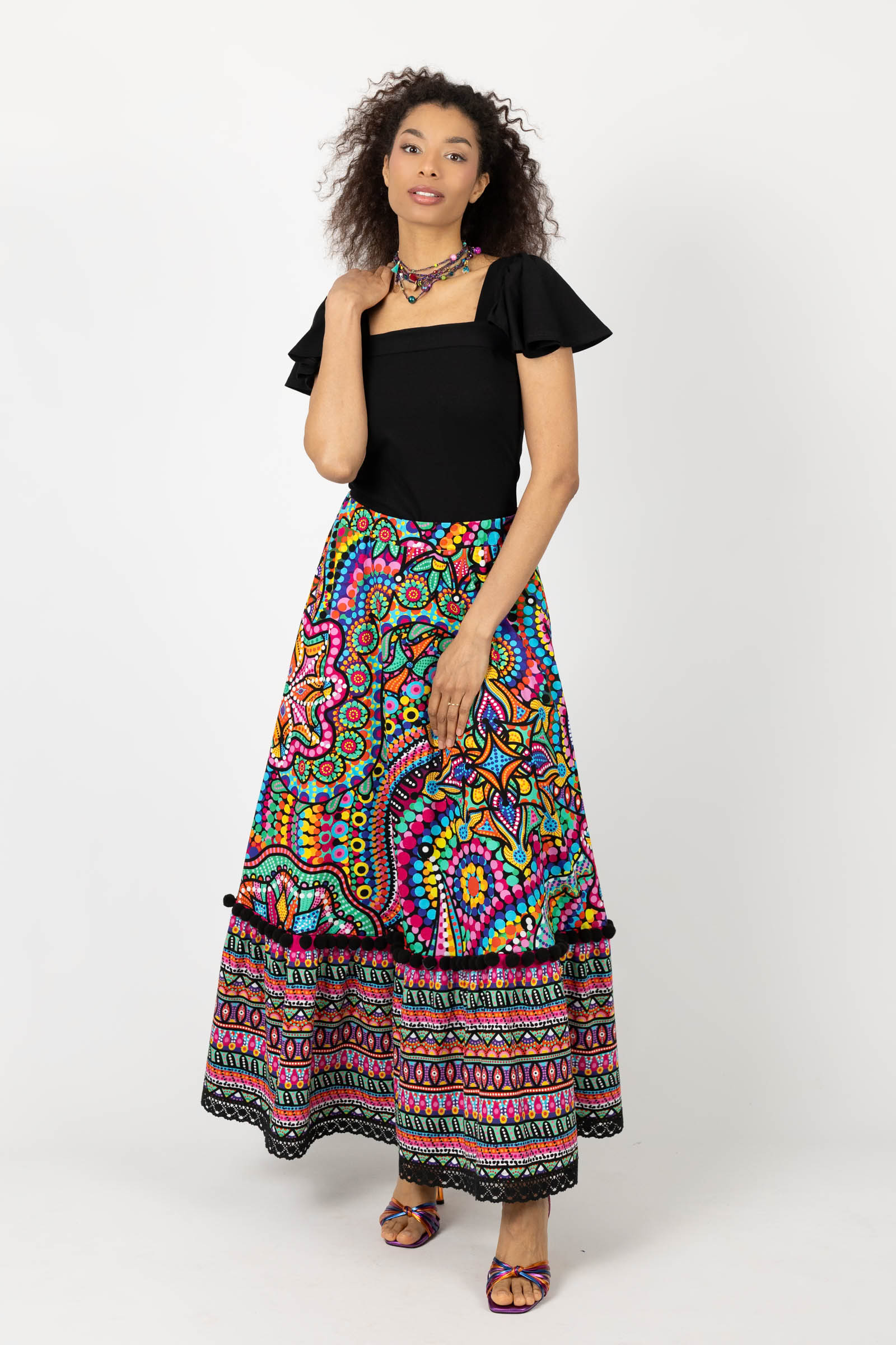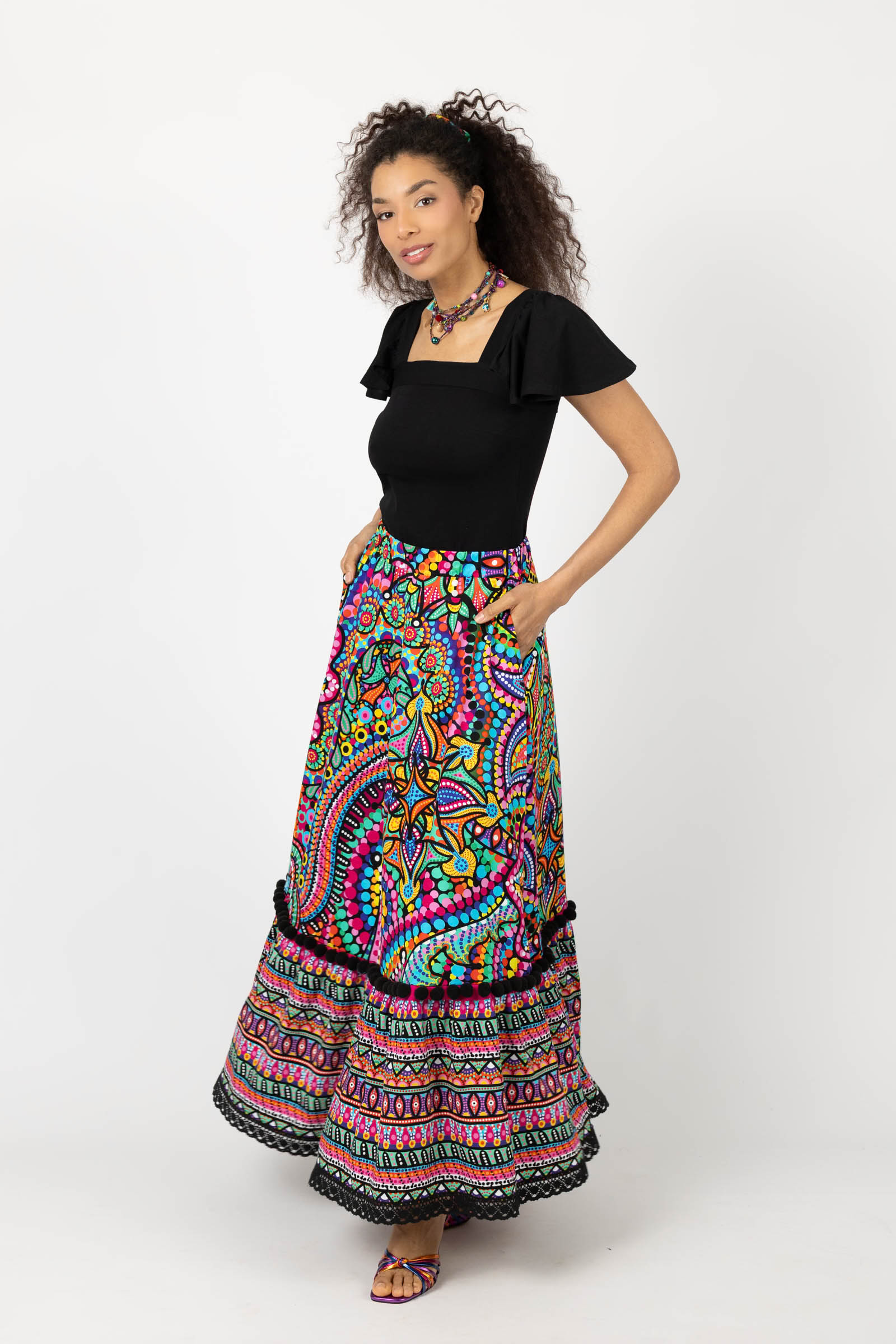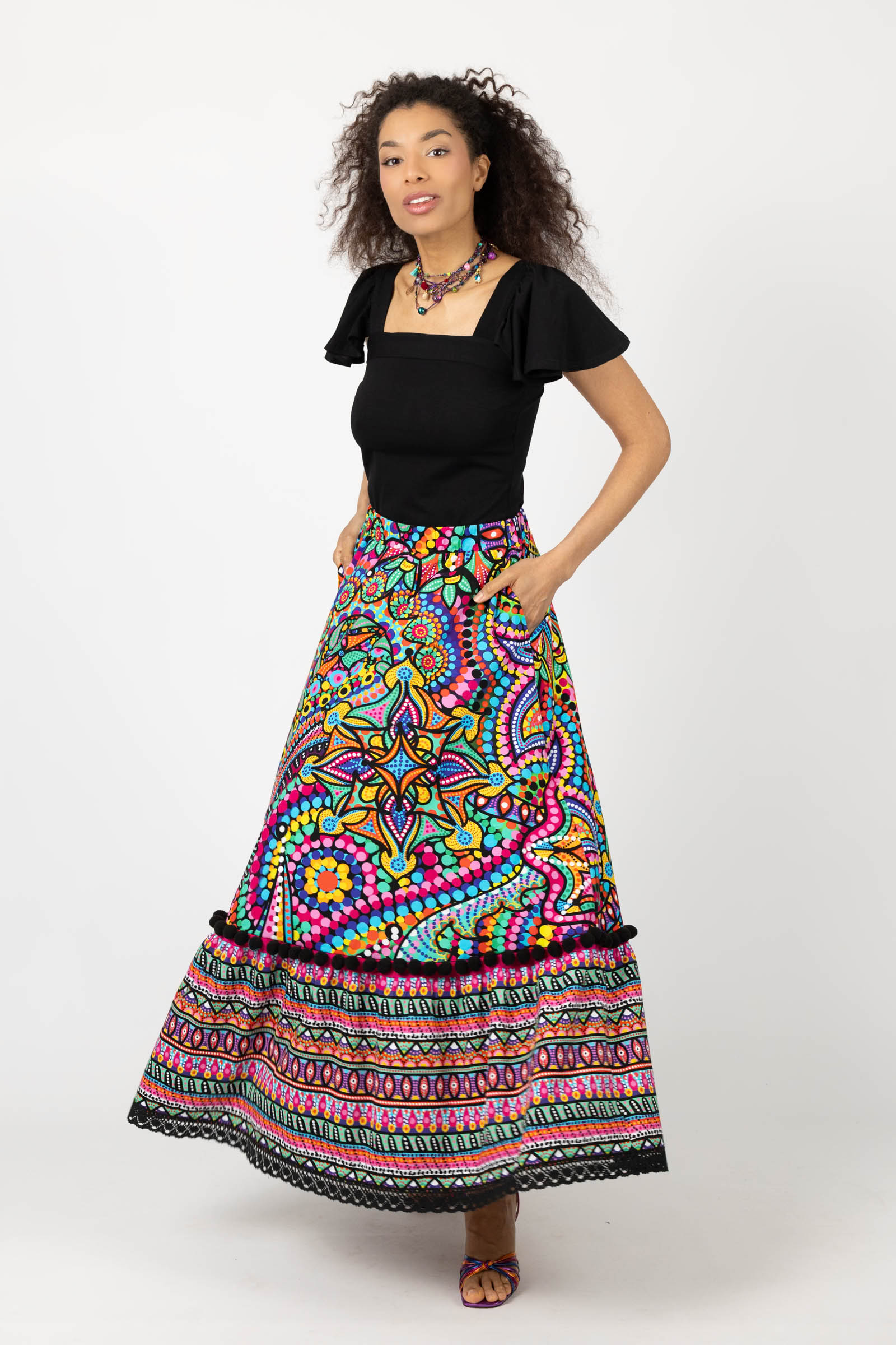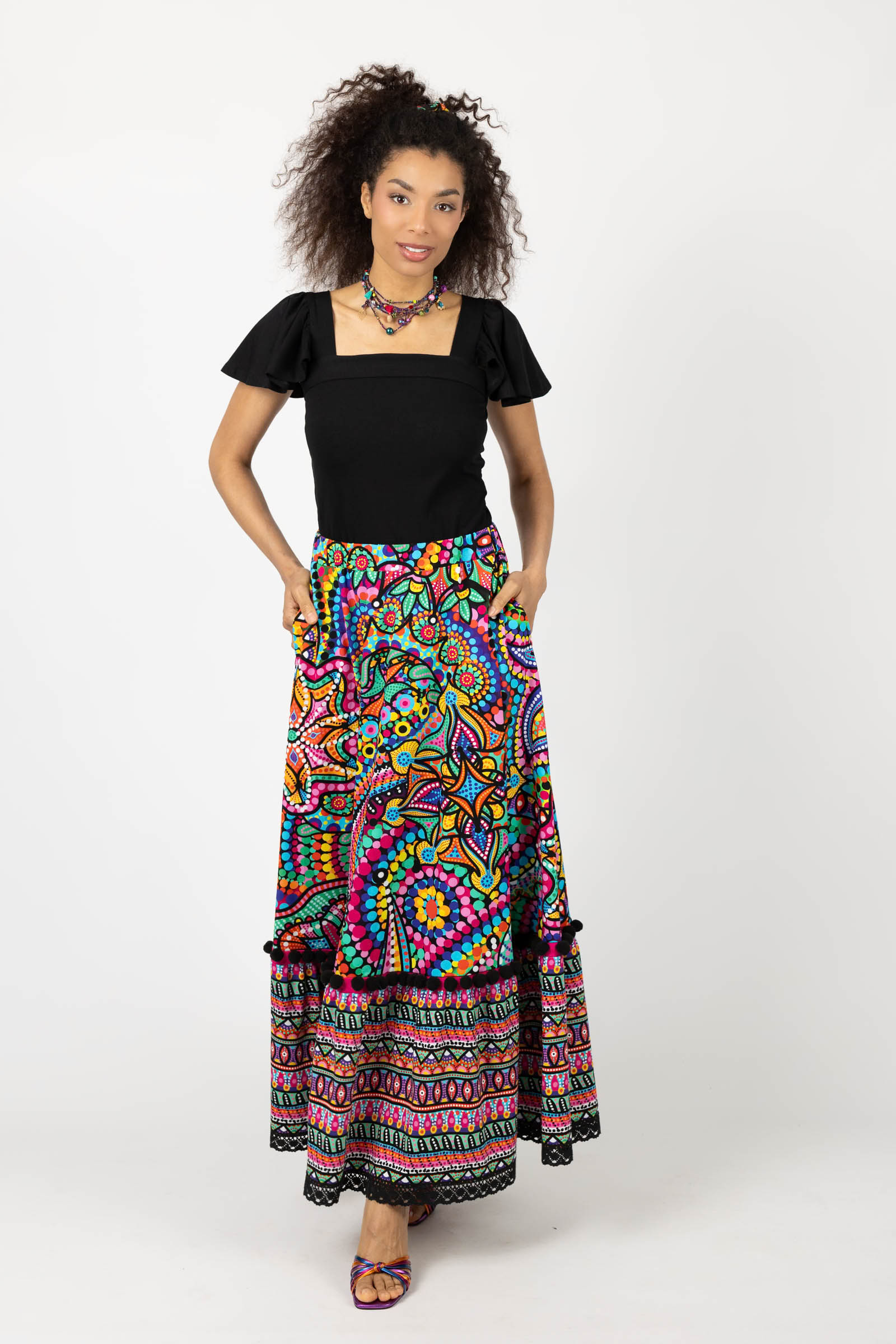 Spódnica długa z pomponami i koronką "CONFETTI" mix