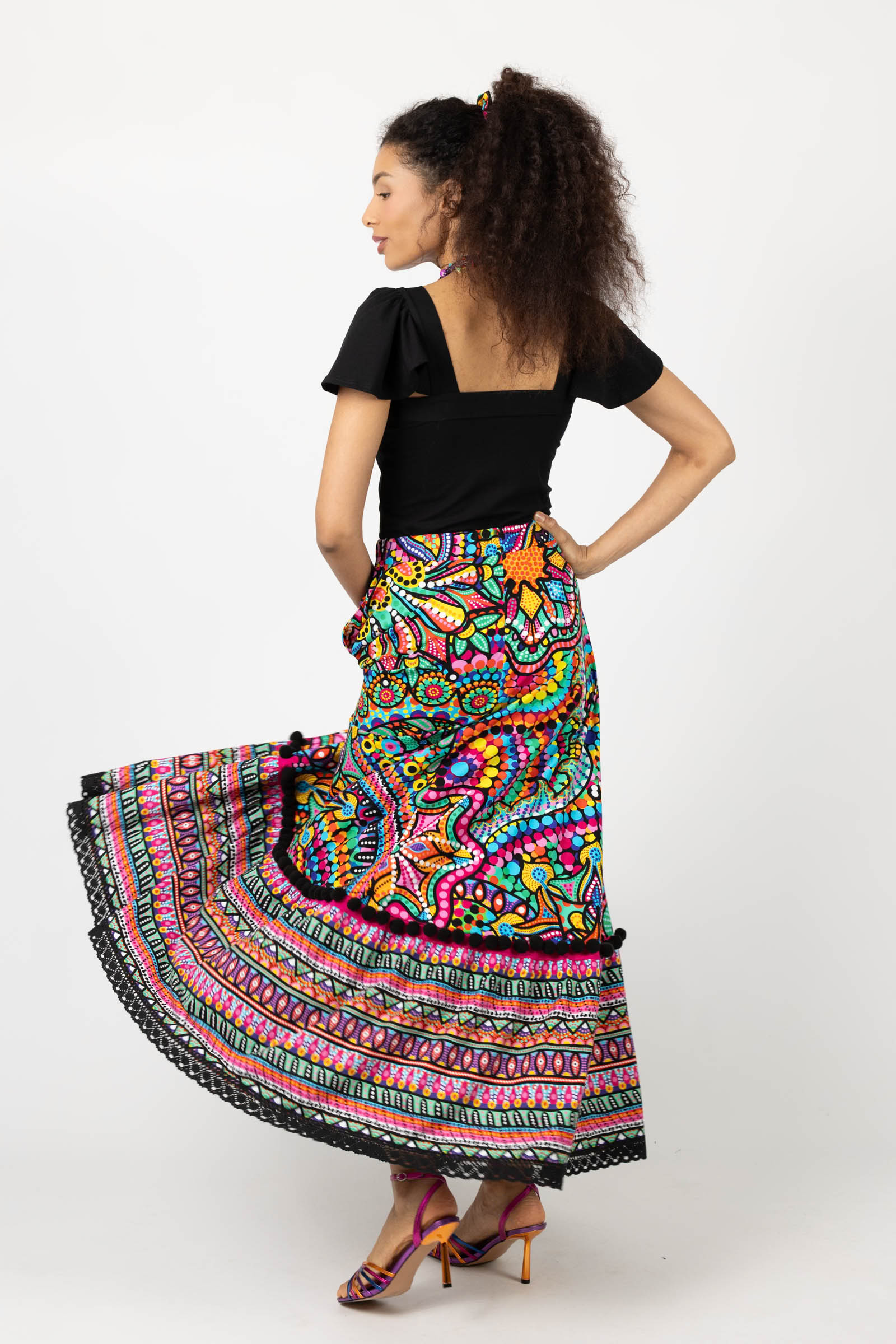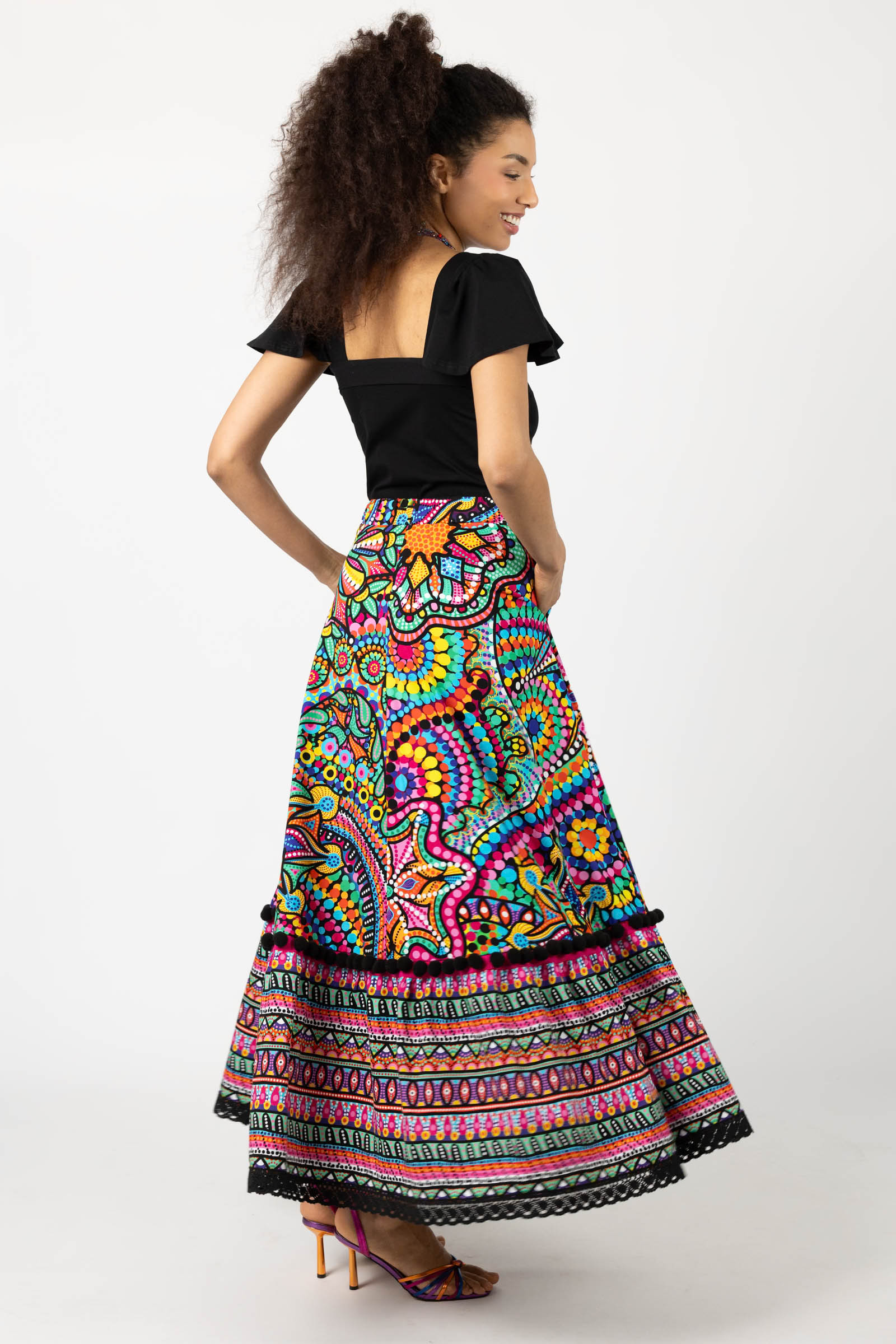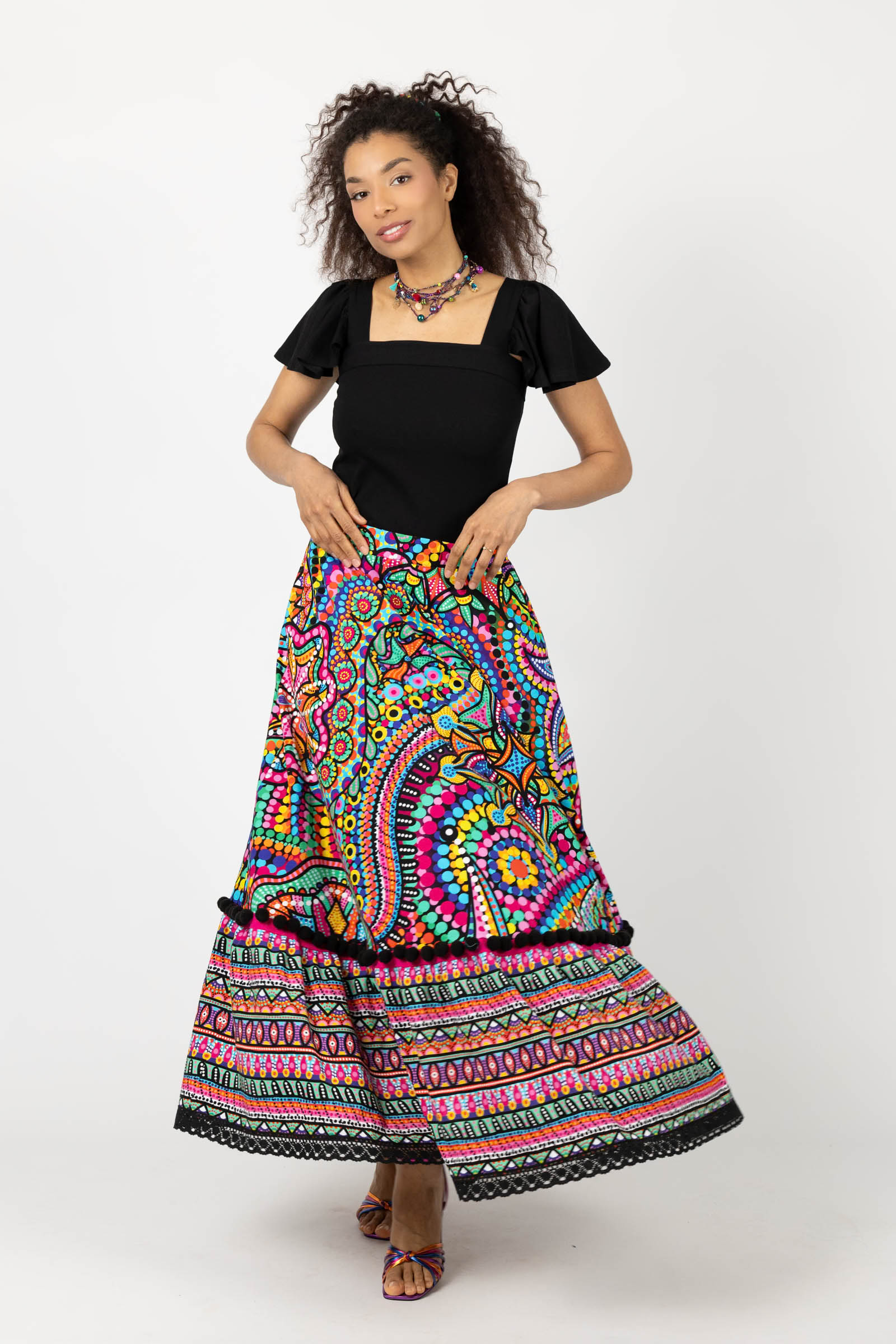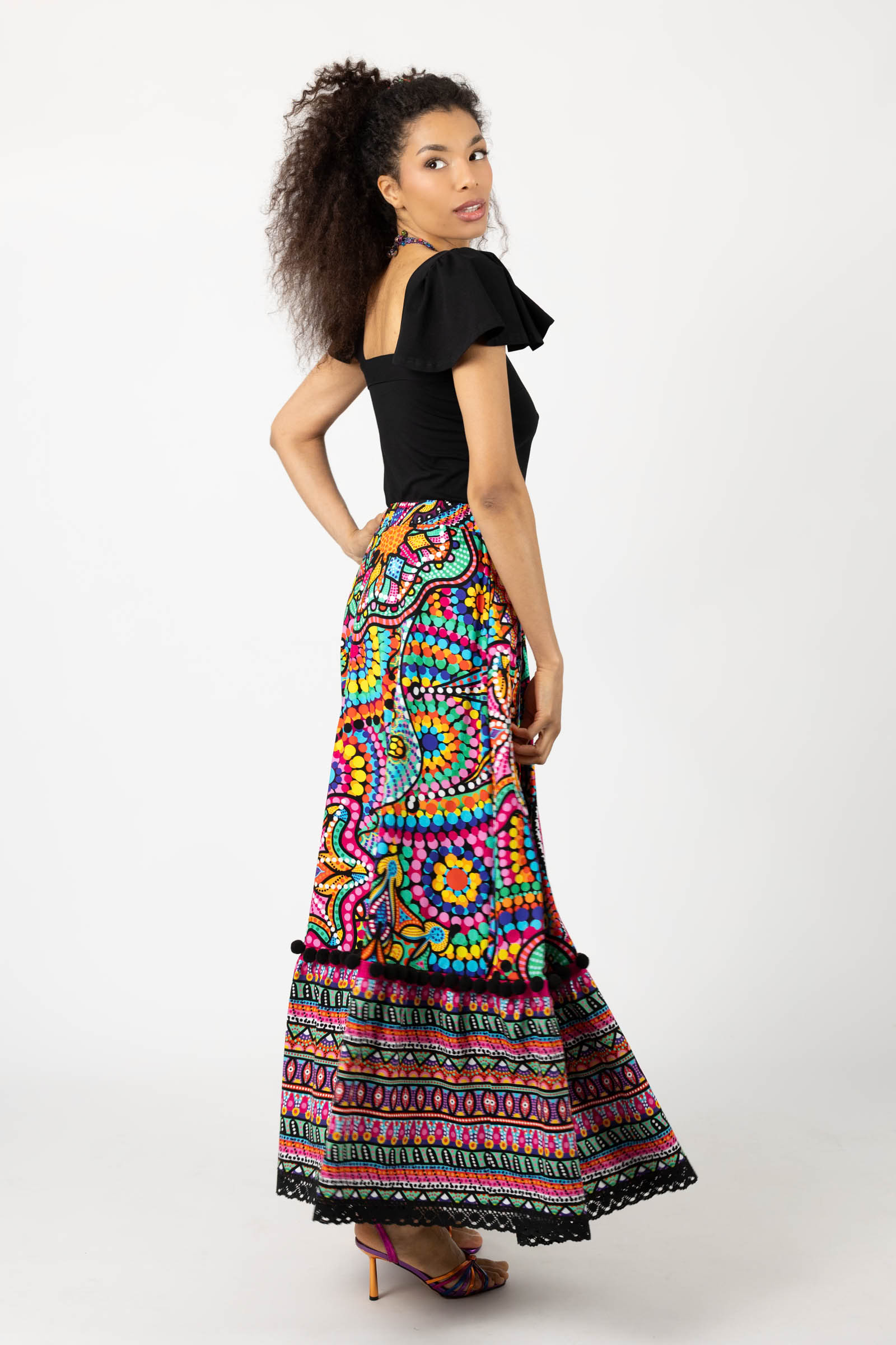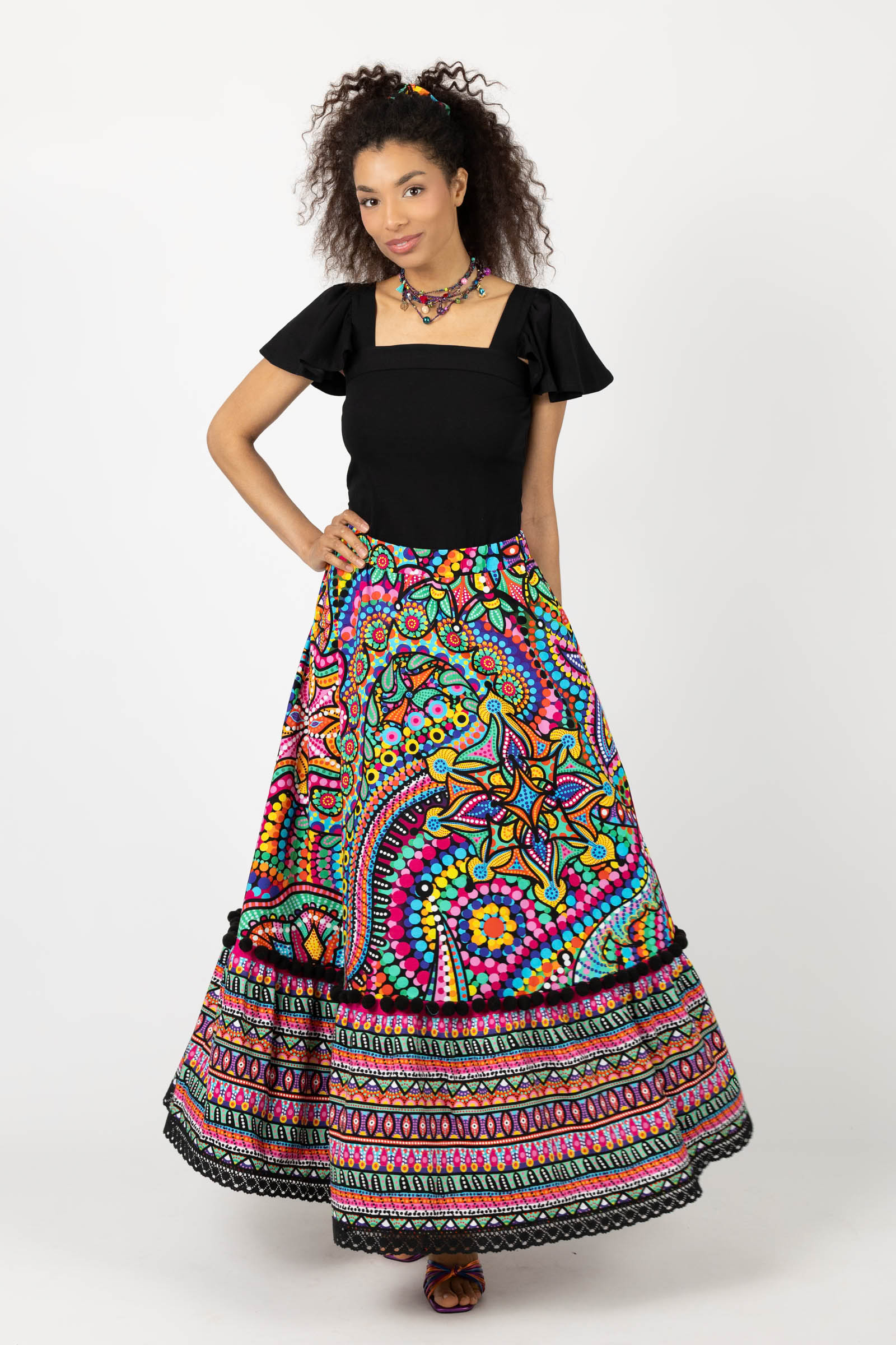 Spódnica długa z pomponami i koronką "CONFETTI" mix