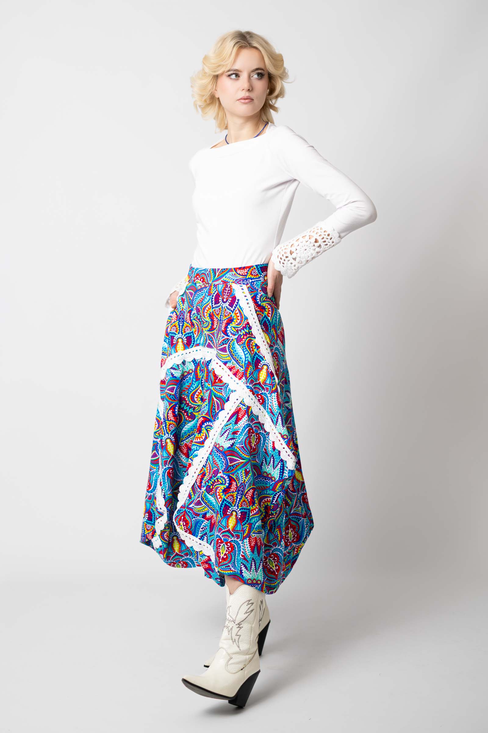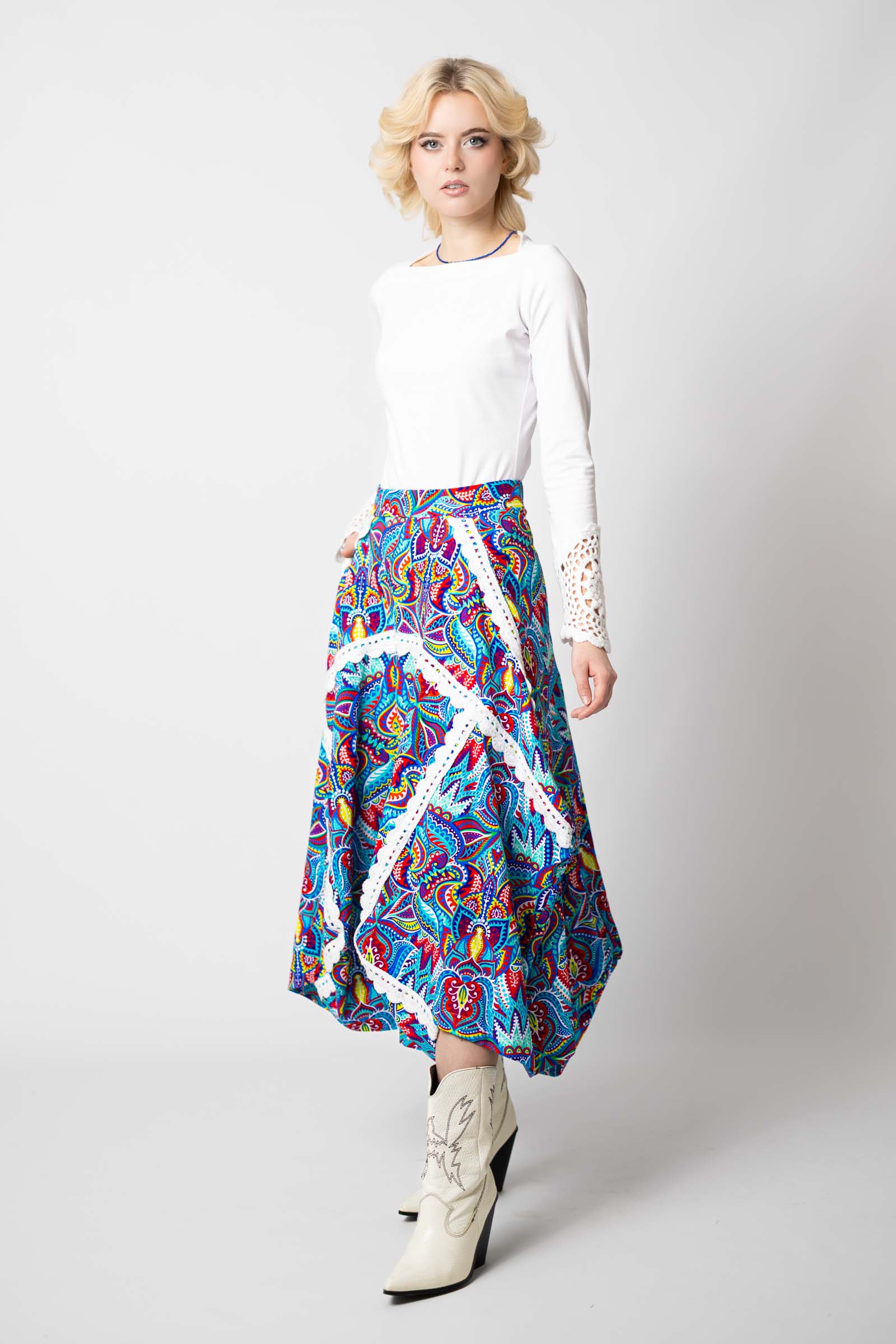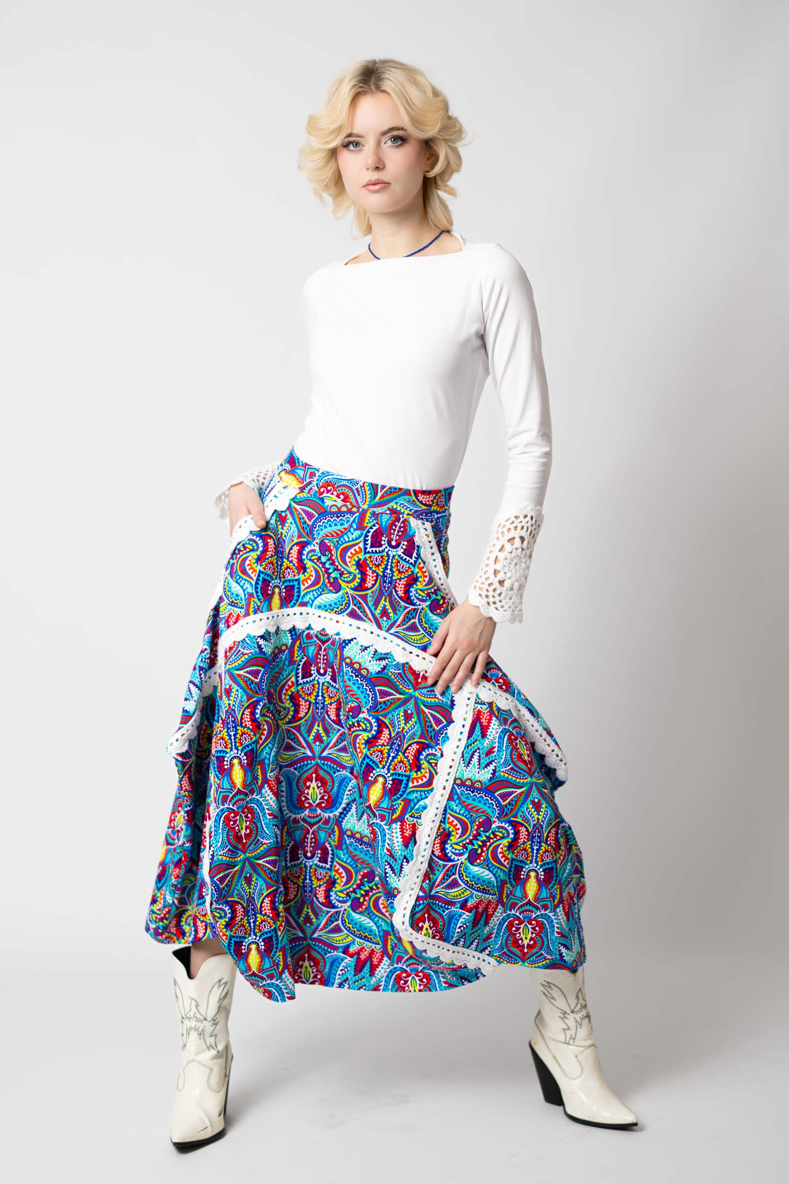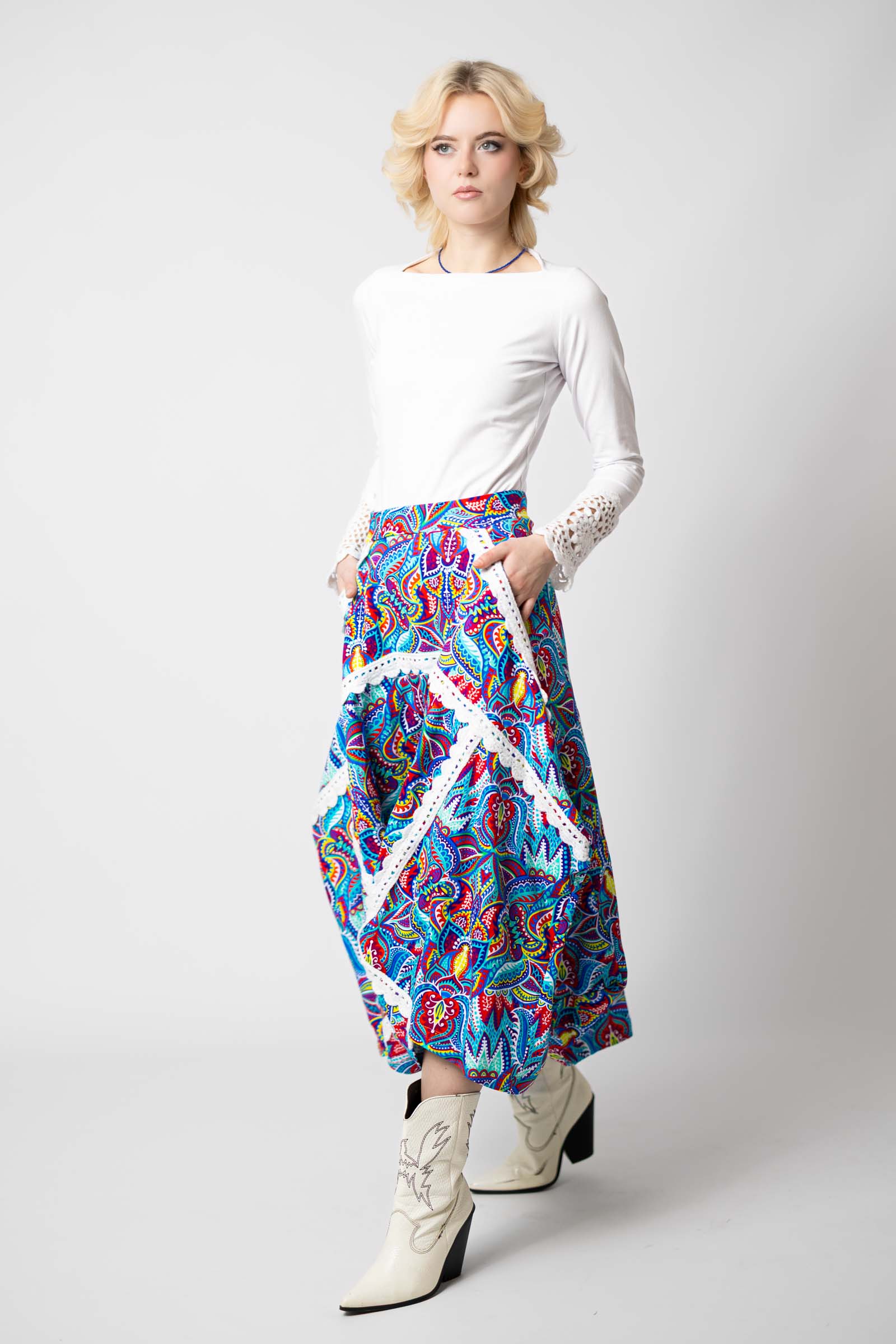 Spódnica midi origami z szydełkową koronką "MEXICO" white