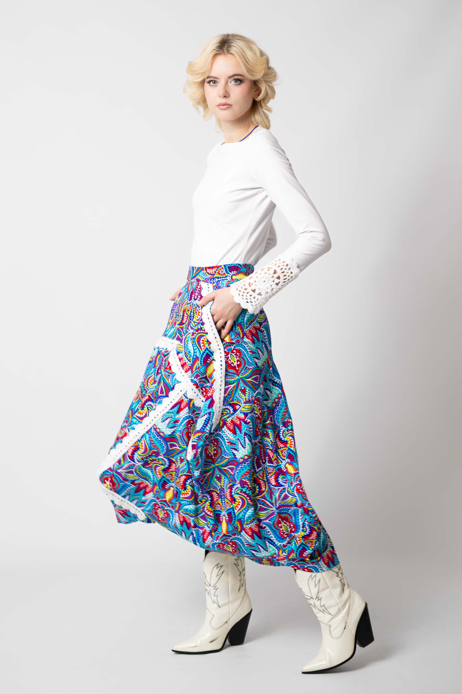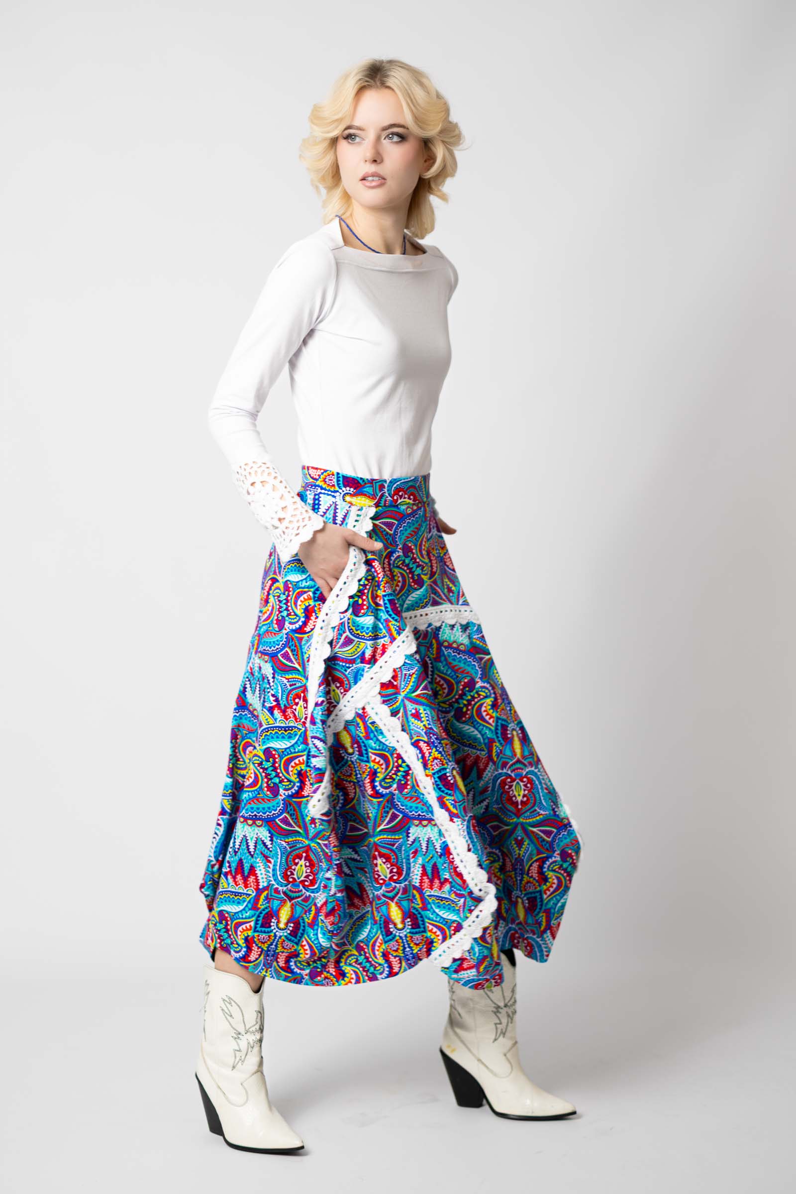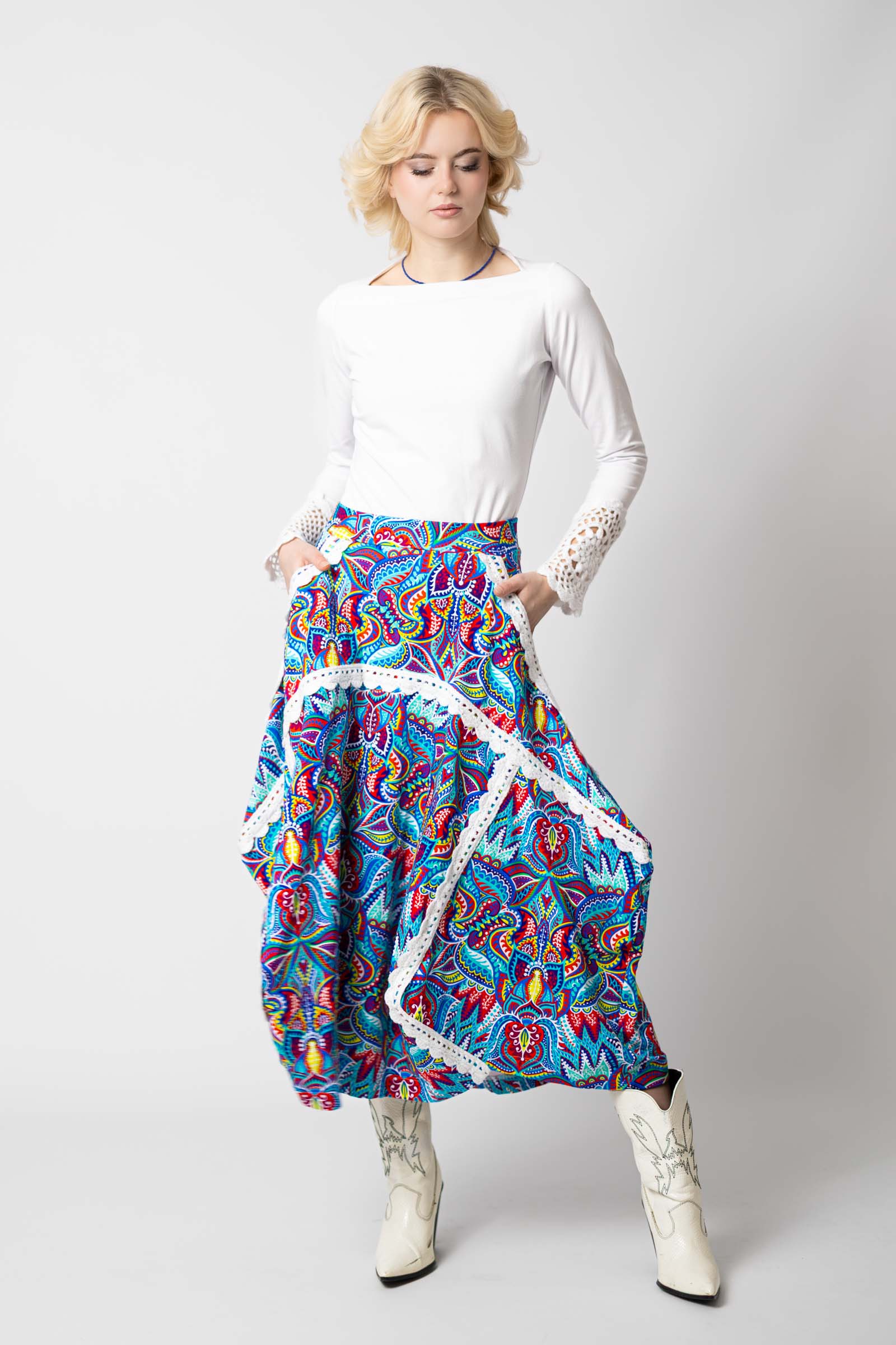 Spódnica midi origami z szydełkową koronką "MEXICO" white