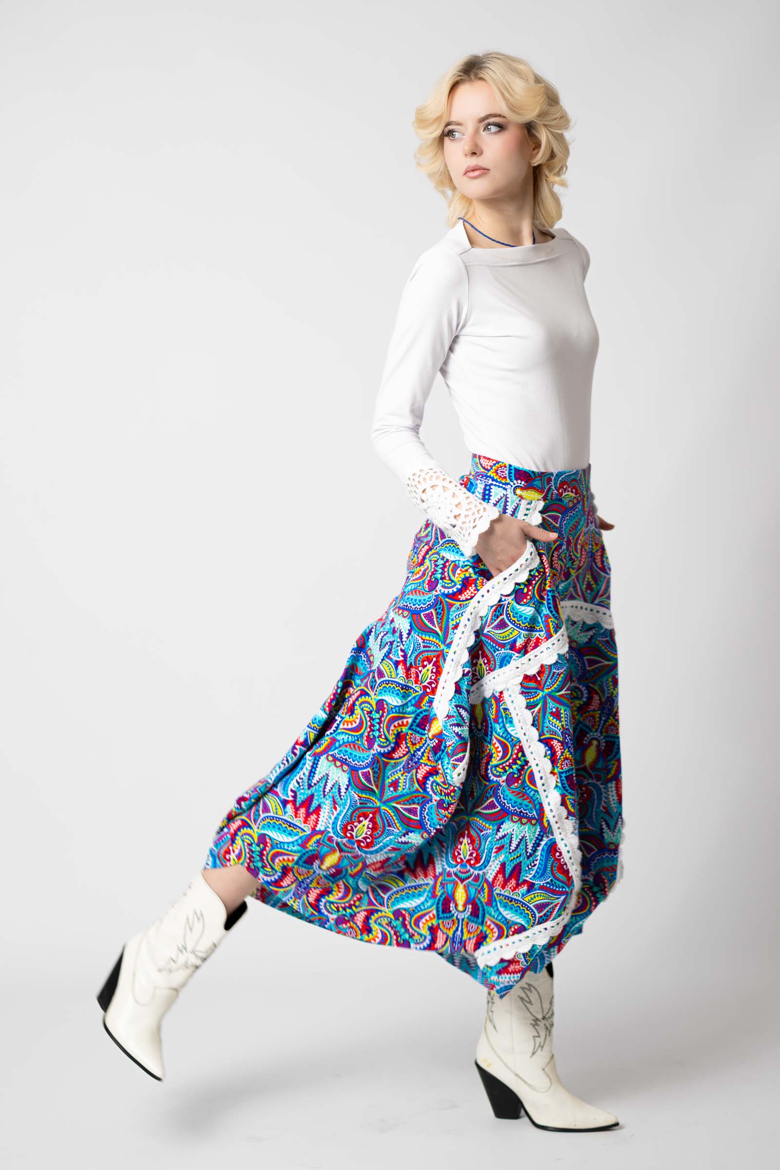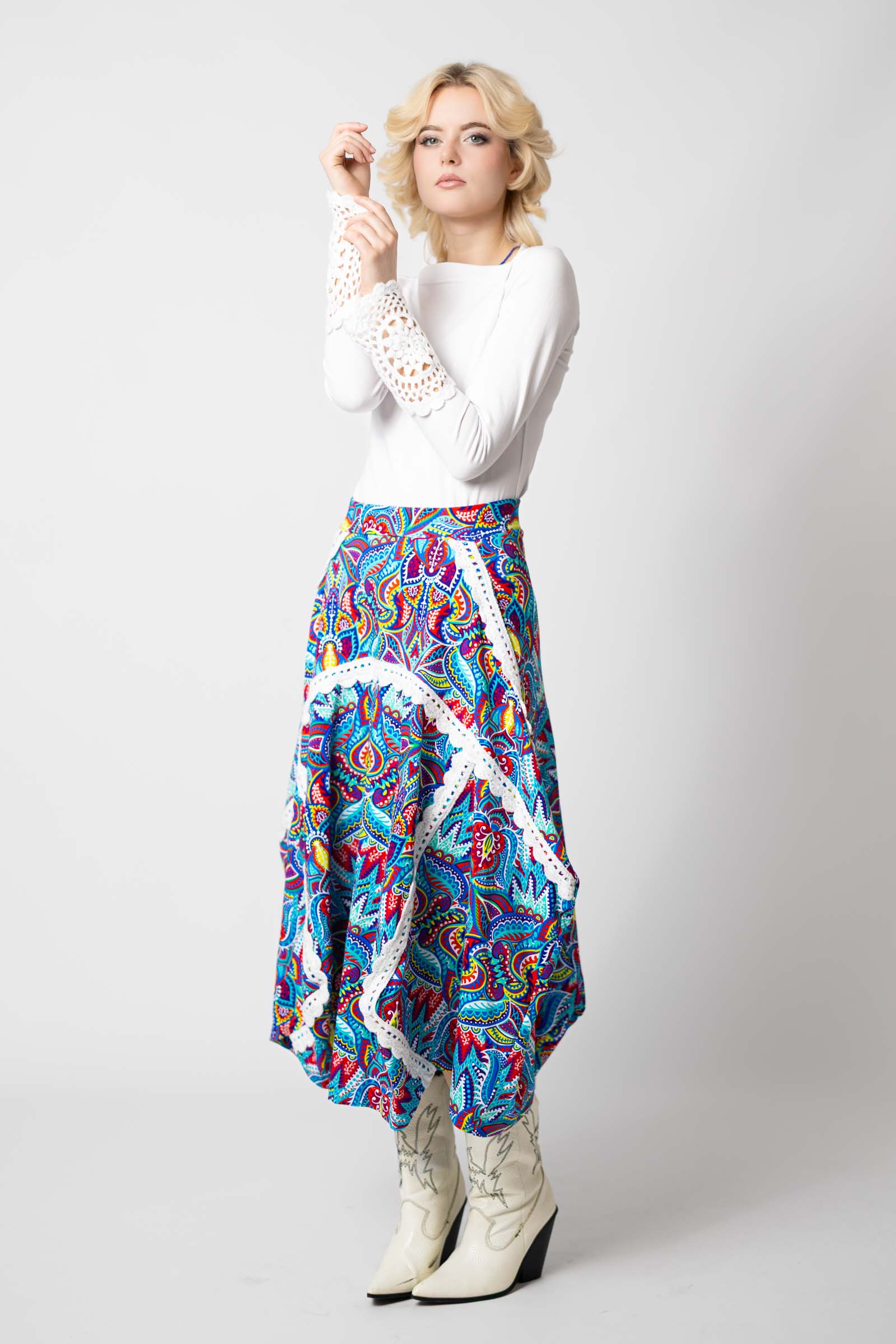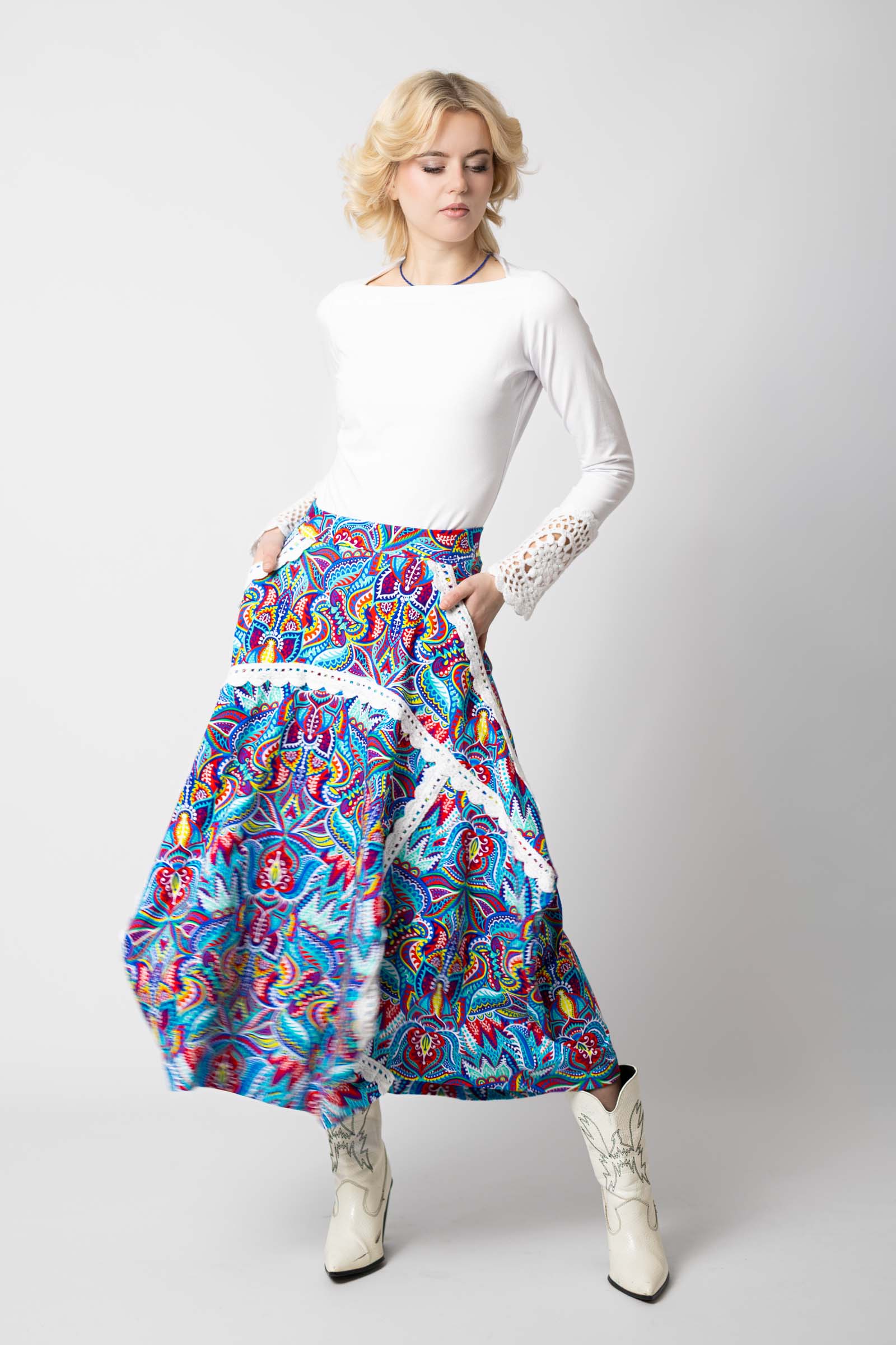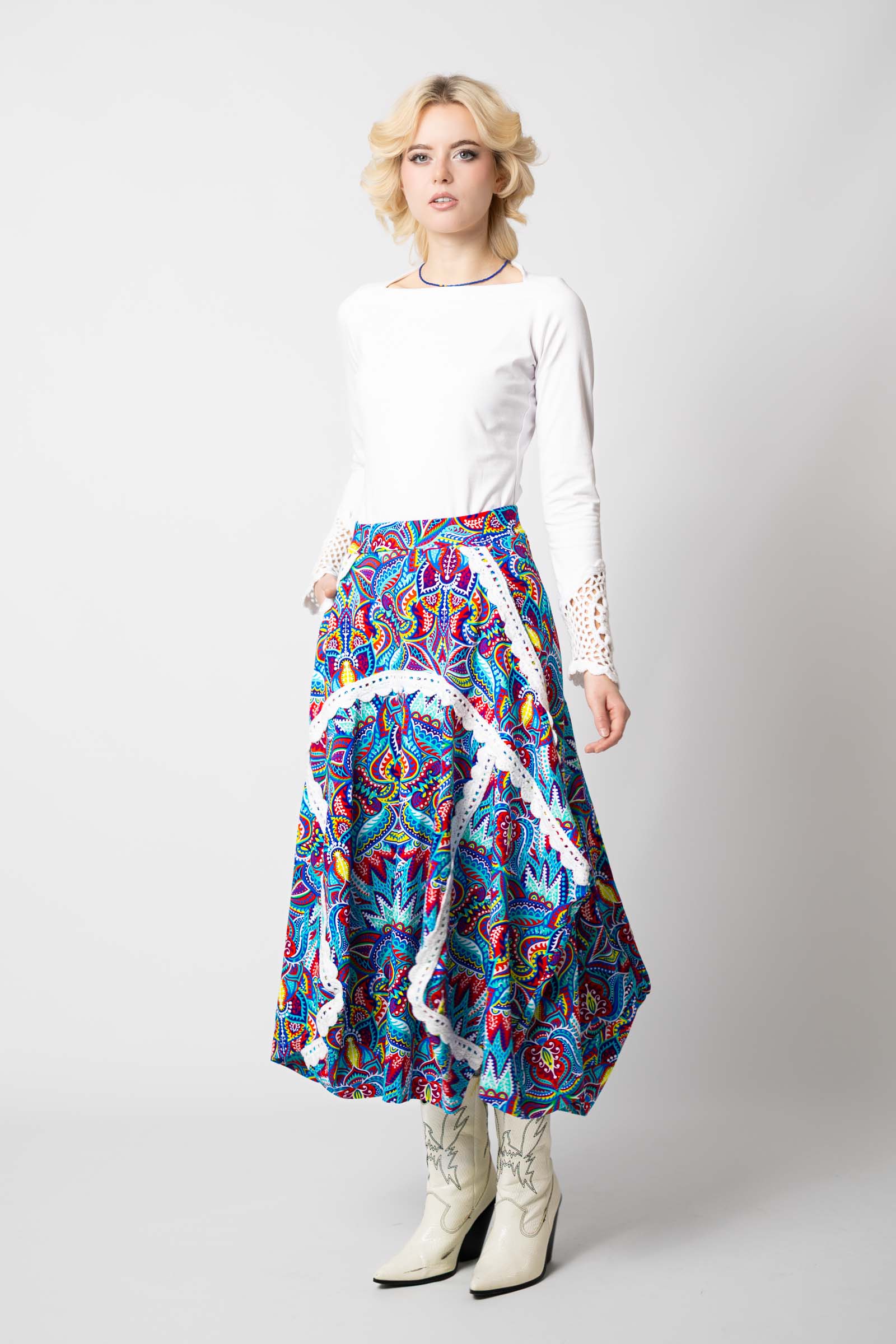 Spódnica midi origami z szydełkową koronką "MEXICO" white