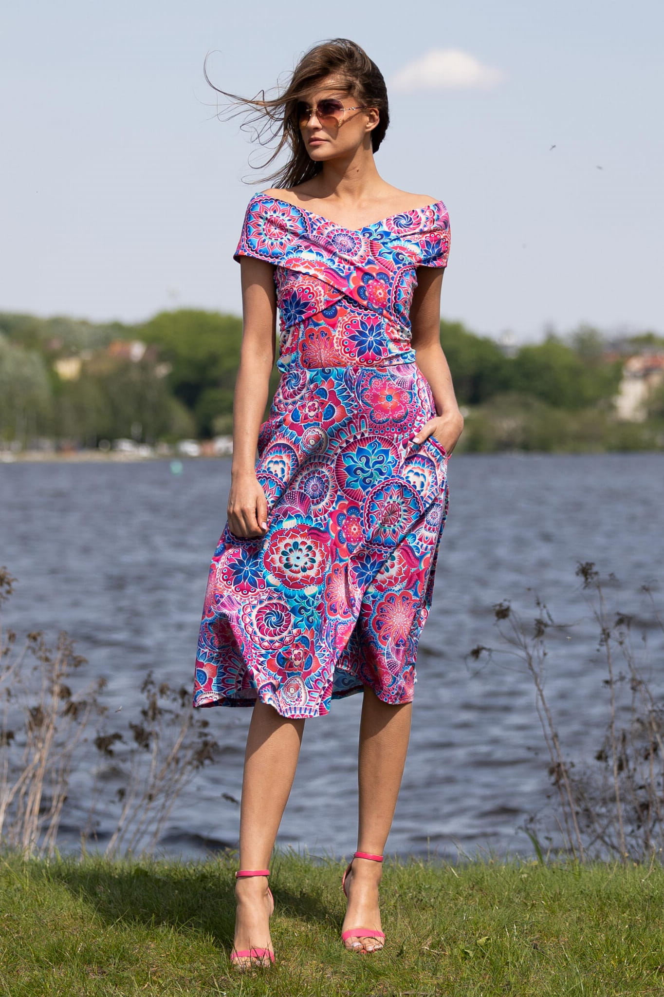 Ta spódnica midi to prawdziwy skarb w garderobie każdej kobiety. Jej rozkloszowany krój sprawia, że pięknie układa się na sylwetce. Dodatkowo, została wyposażona w kieszenie w szwach, co sprawia, że jest nie tylko stylowa, ale i praktyczna.