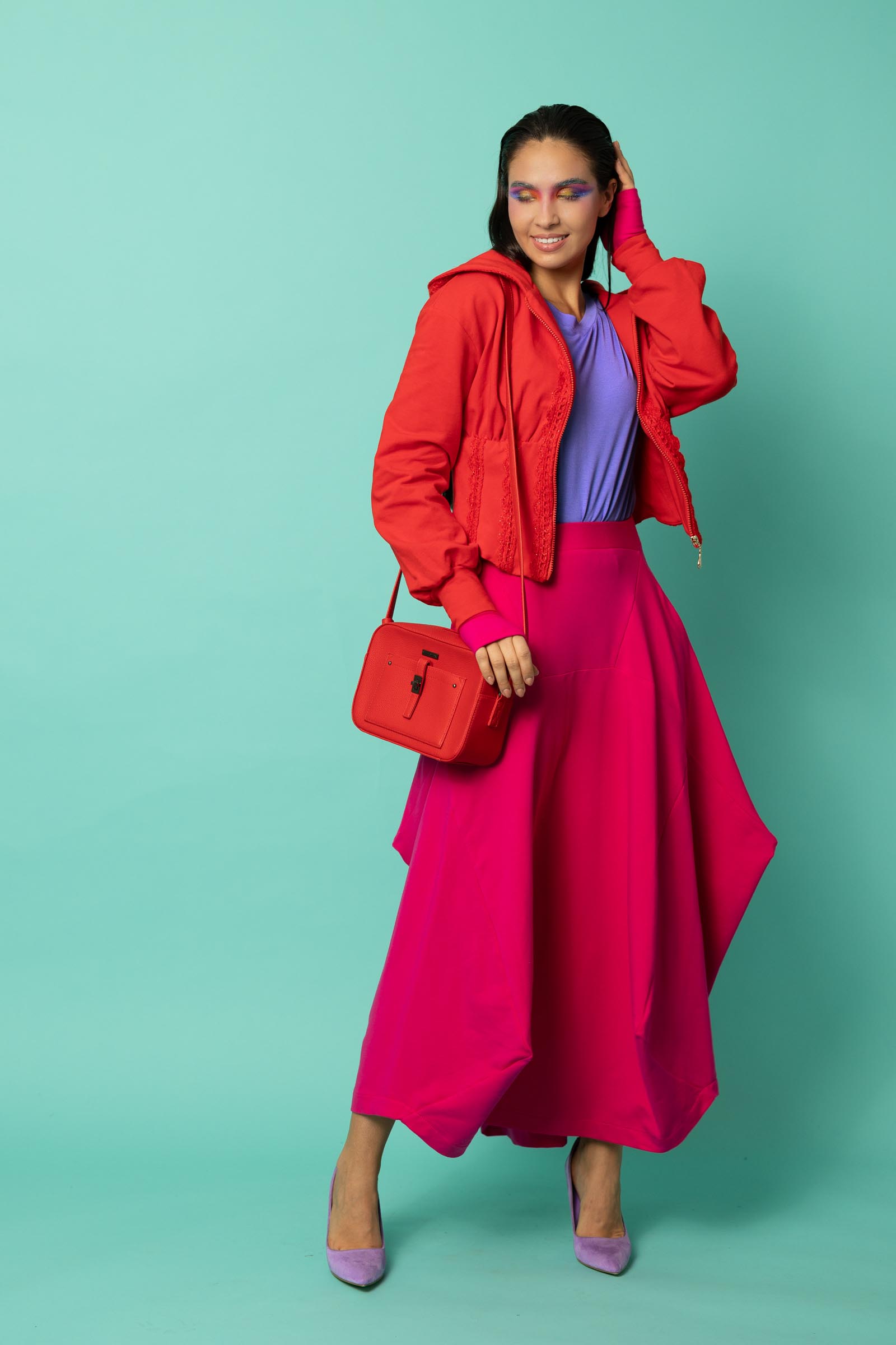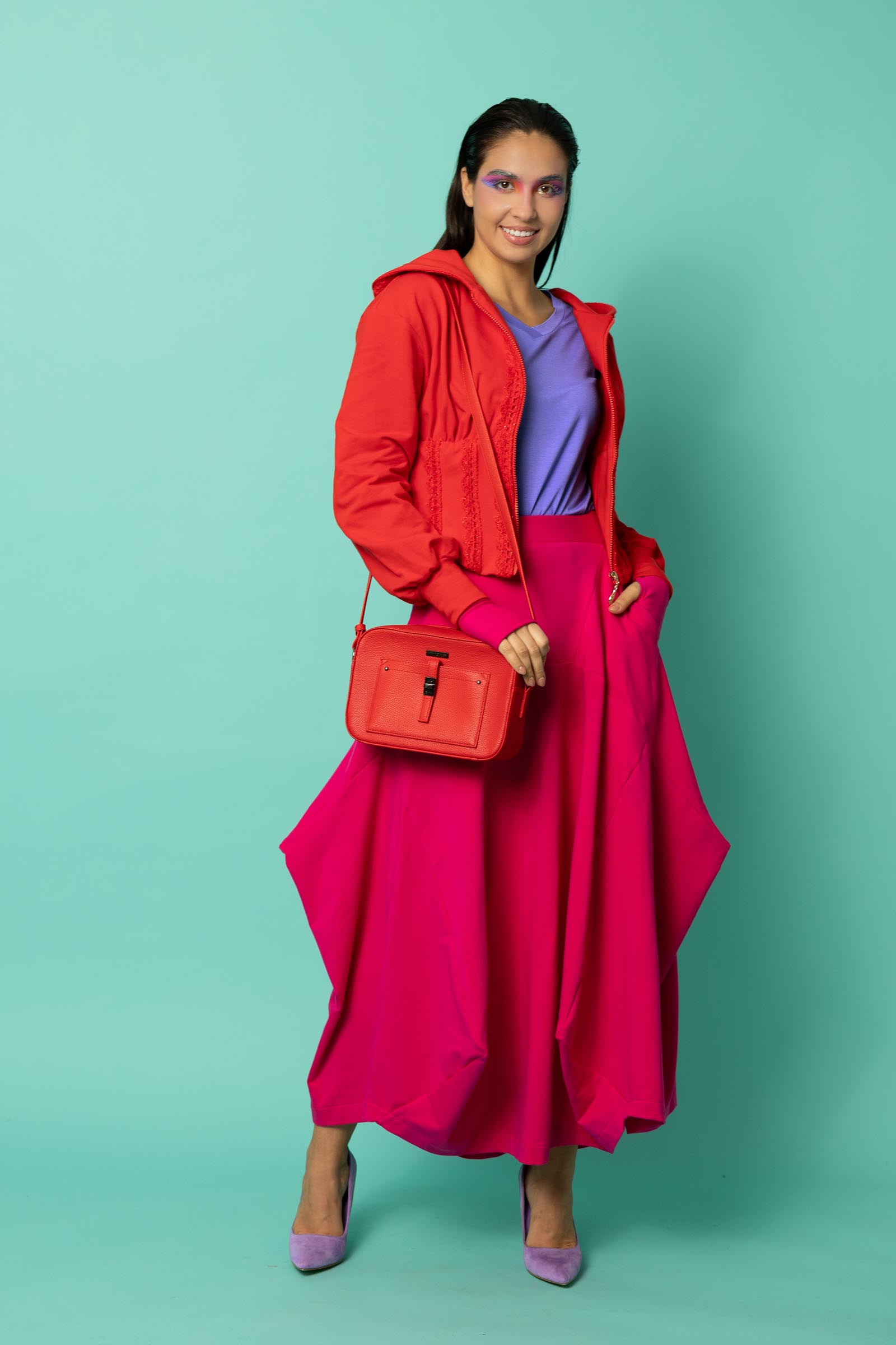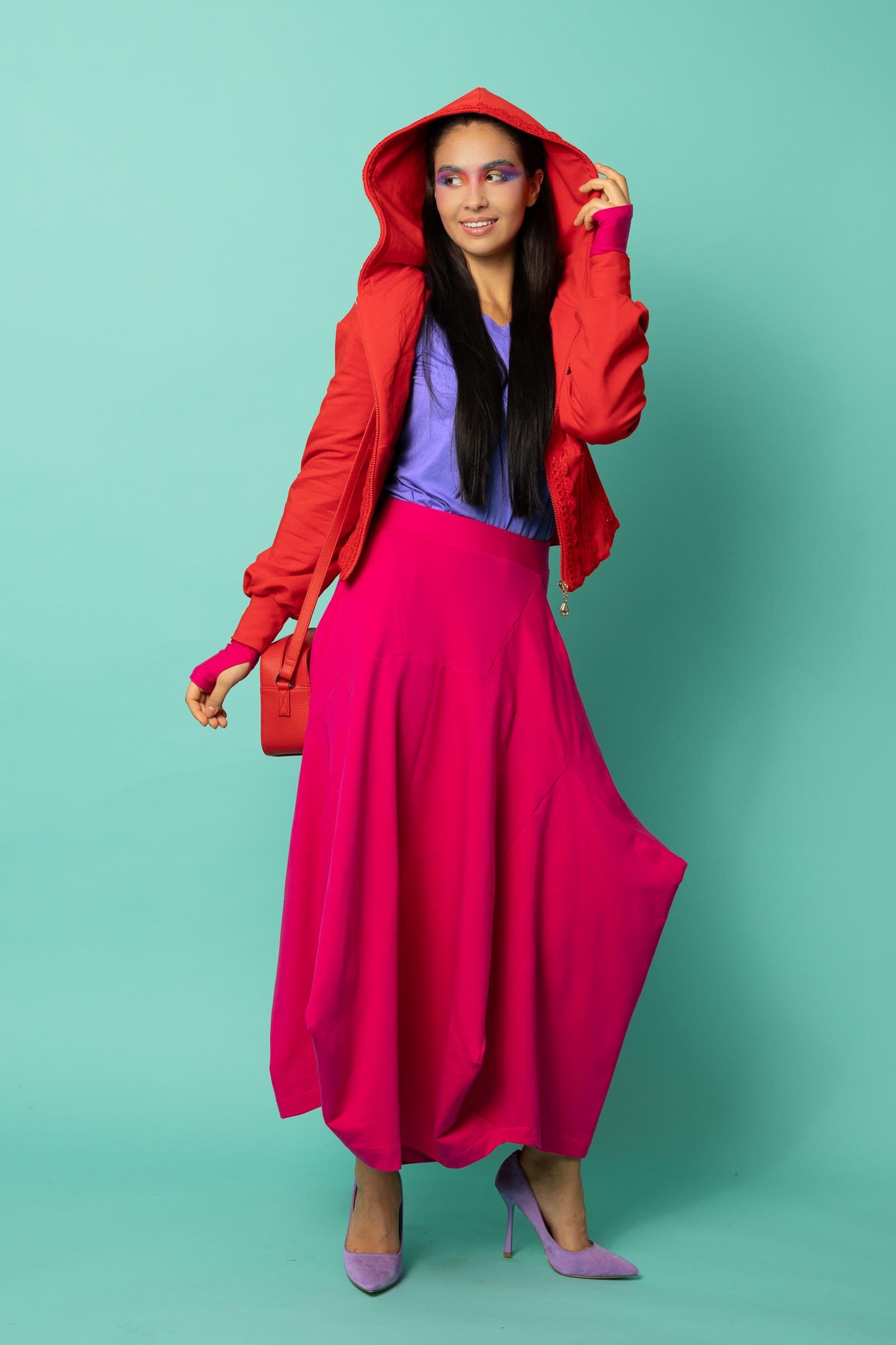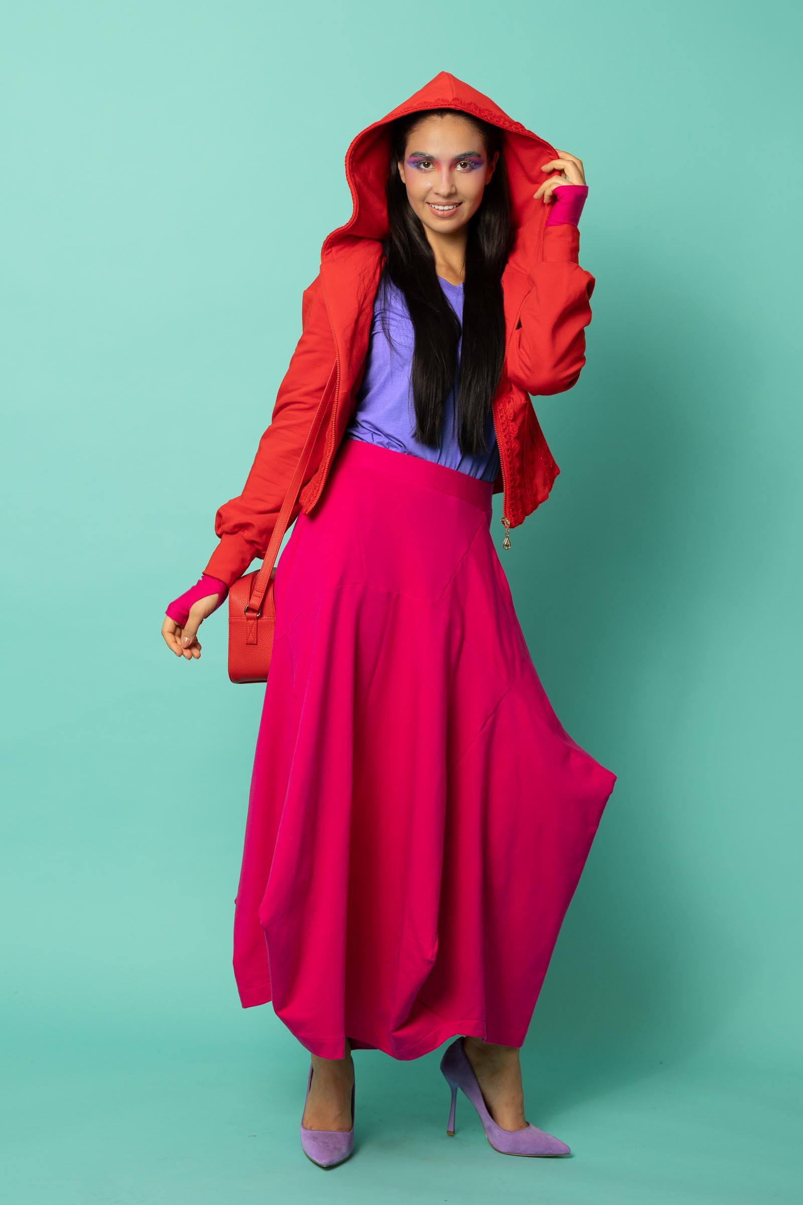 Ta spódnica to odważne połączenie oryginalnego designu i funkcjonalności. Jej awangardowy krój inspirowany sztuką origami przyciąga uwagę geometrycznymi załamaniami i nieregularnym dołem, który nadaje sylwetce dynamiki i lekkości. To propozycja dla kobiet, które lubią wychodzić poza schematy i eksperymentować z modą.