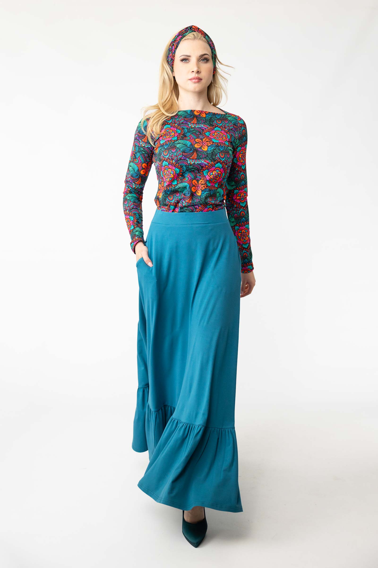 Spódnica wiskozowa długa z falbaną "BASIC"