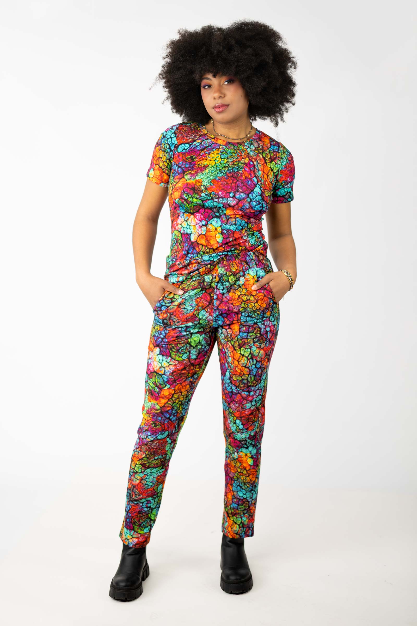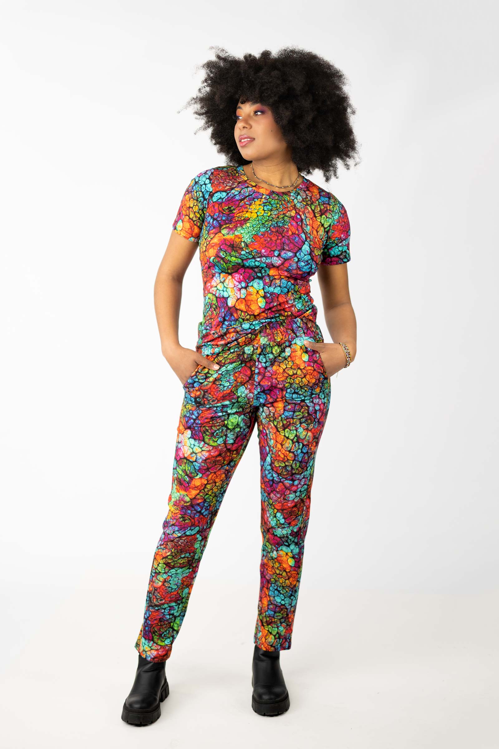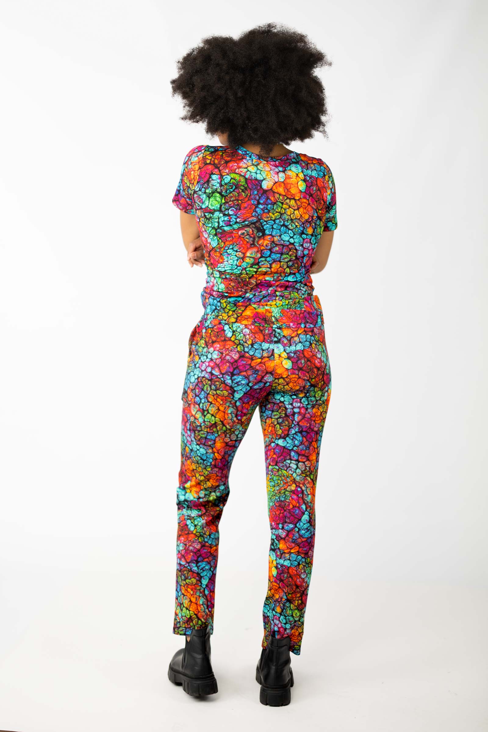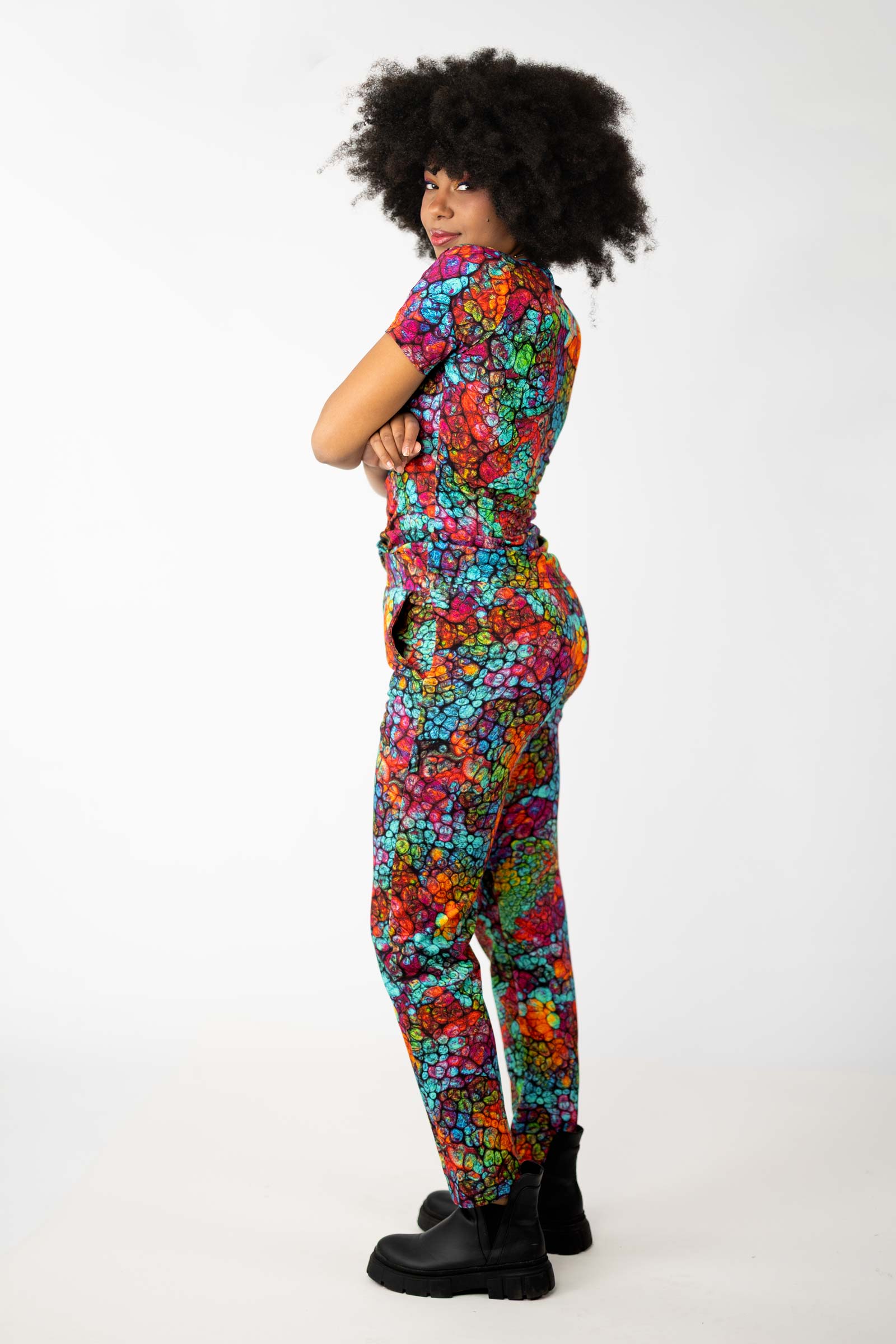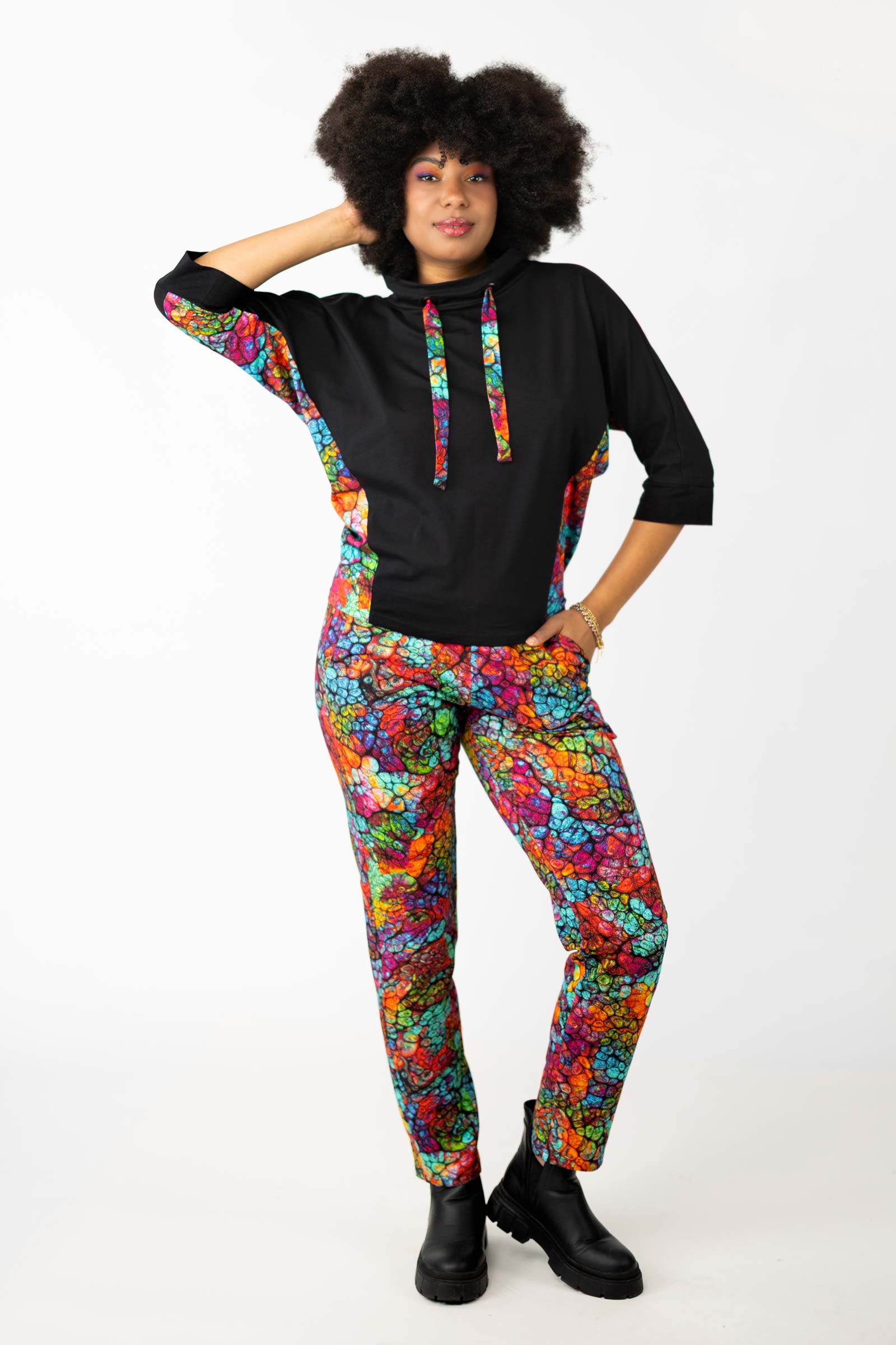 Spodnie o luźnym kroju to świetna propozycja dla osób, które cenią sobie wygodę i swobodę ruchów. Te łączą w sobie sportowy styl i funkcjonalność. Ich autorski wzór został zaprojektowany przez właścicielkę i twórczynię marki Katarzynę Gałaj.