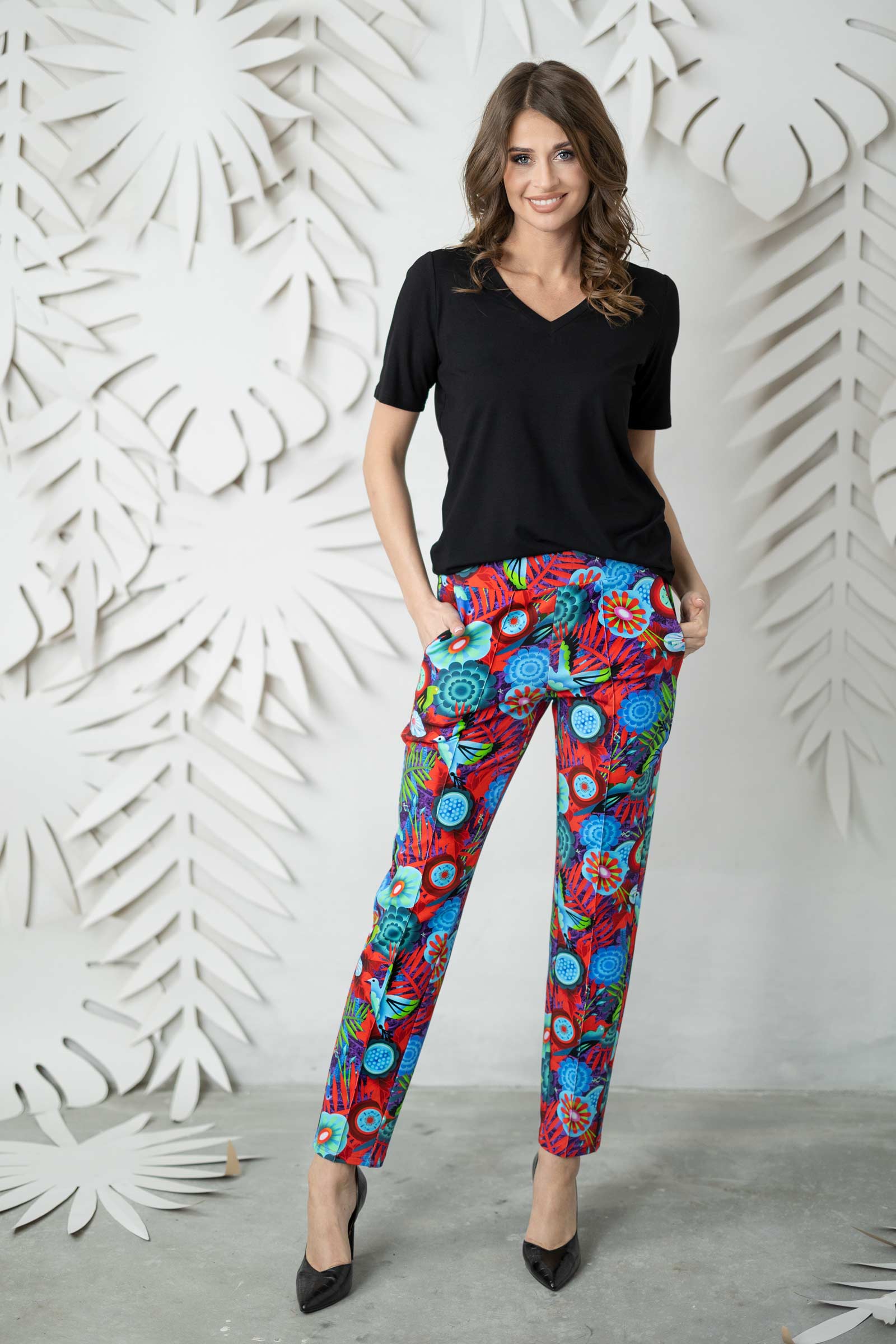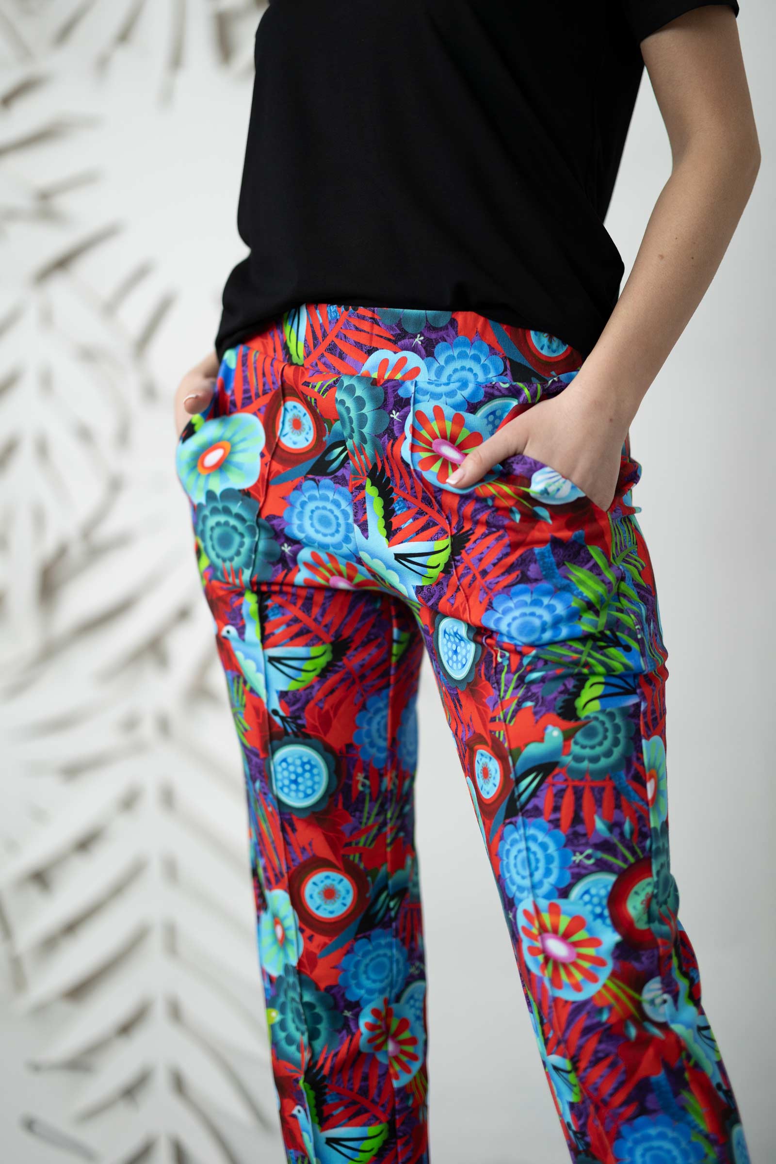 Oryginalny, autorski wzór materiału został zaprojektowany przez założycielkę i właścicielkę marki Katarzynę Gałaj, co sprawia, że spodnie są unikalne. Uszyte ręcznie w naszej pracowni w Legionowie, dzięki czemu gwarantujemy najwyższą jakość wykonania.