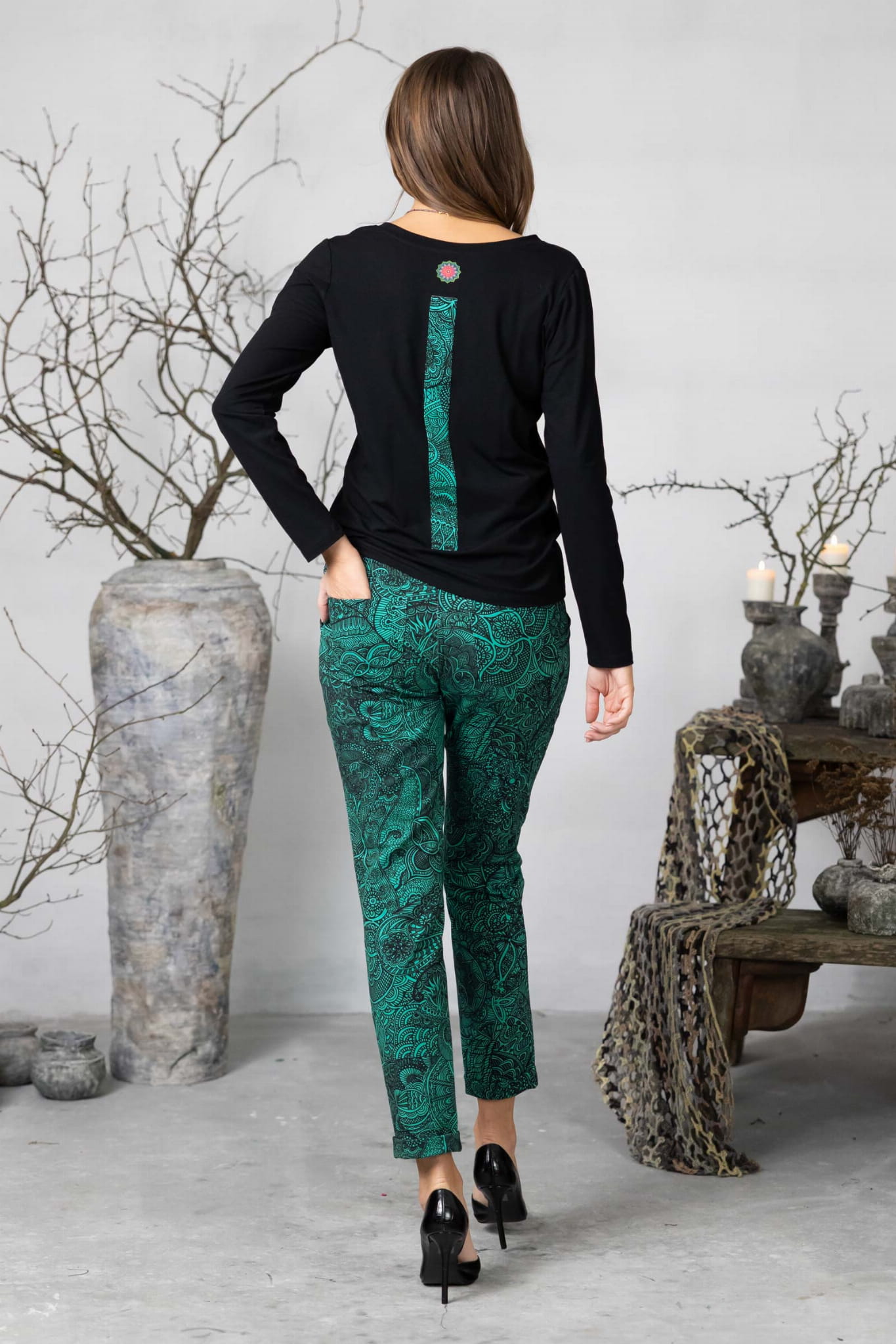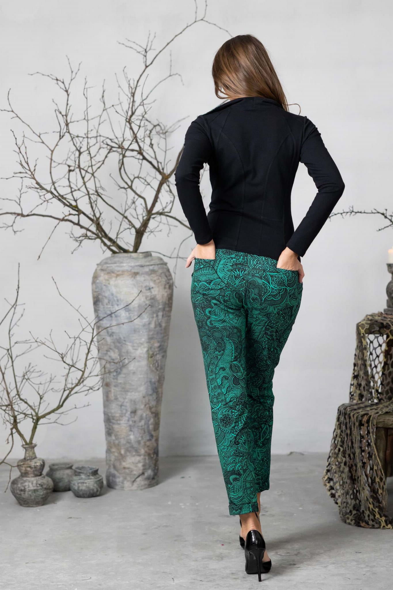 Spodnie zostały uszyte w Polsce, a konkretnie w naszej pracowni w Legionowie, co gwarantuje wysoką jakość wykonania. Autorski wzór materiału zaprojektowany przez właścicielkę i twórczynię marki Katarzynę Gałaj sprawia, że spodnie są unikalne i niepowtarzalne.