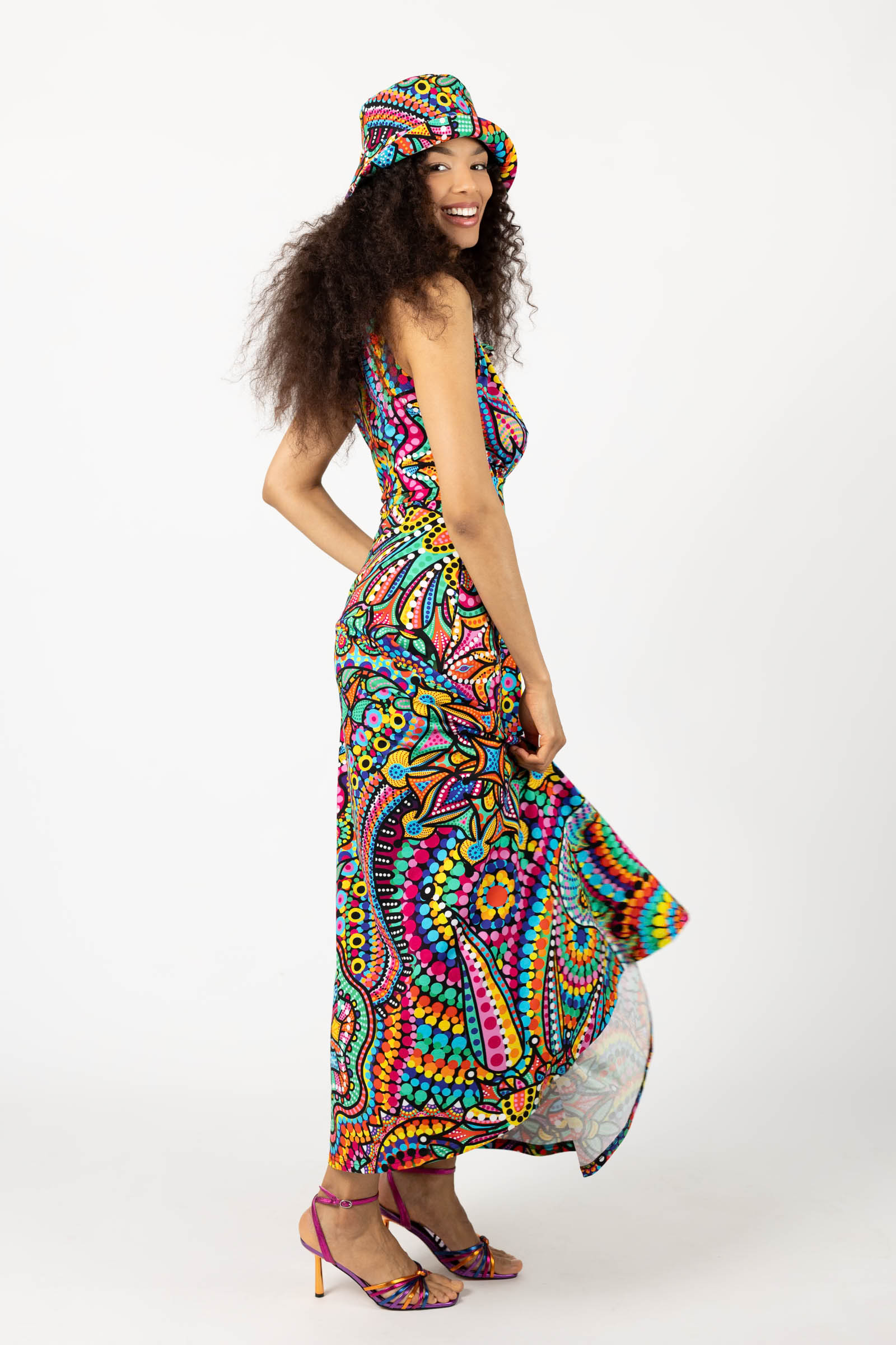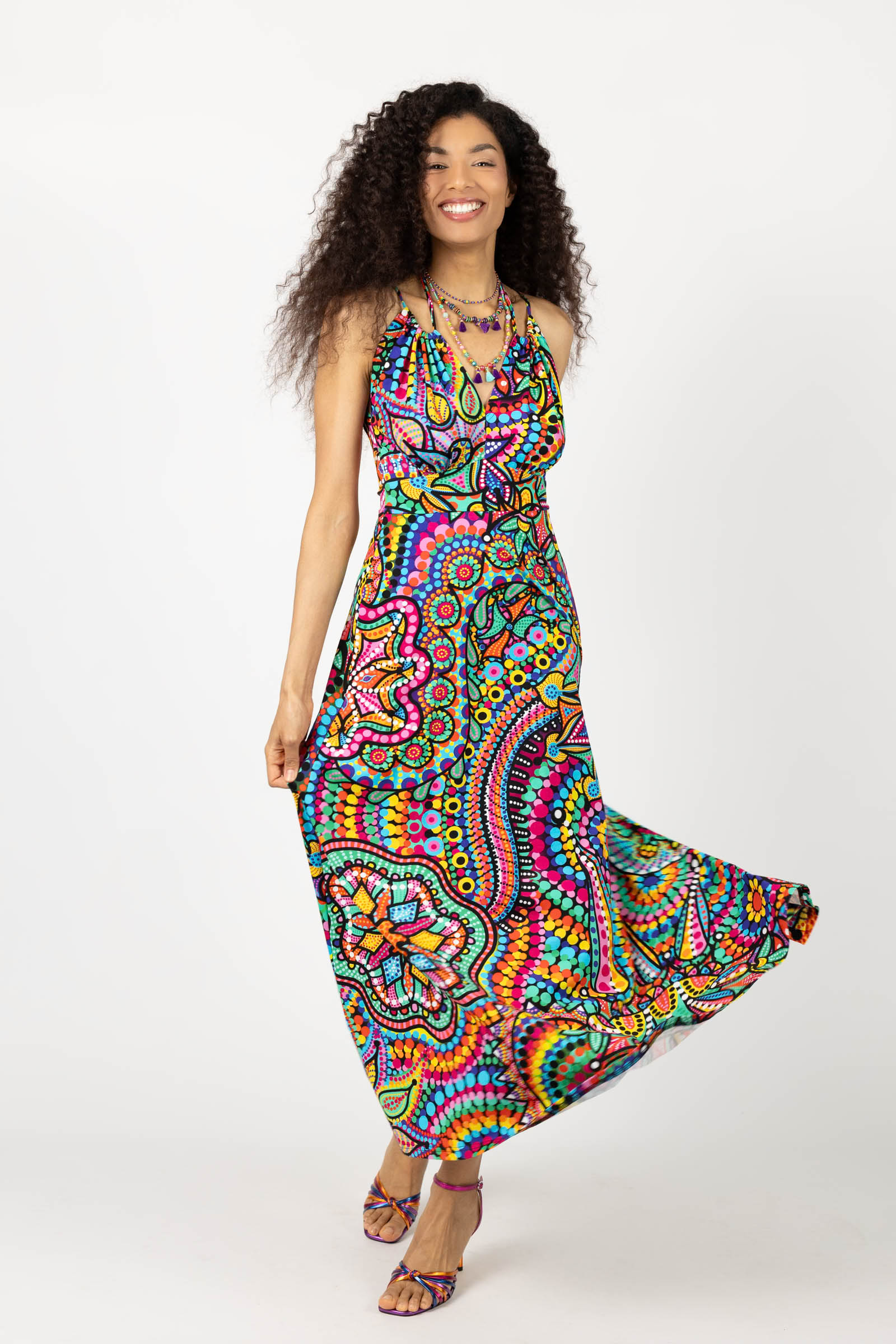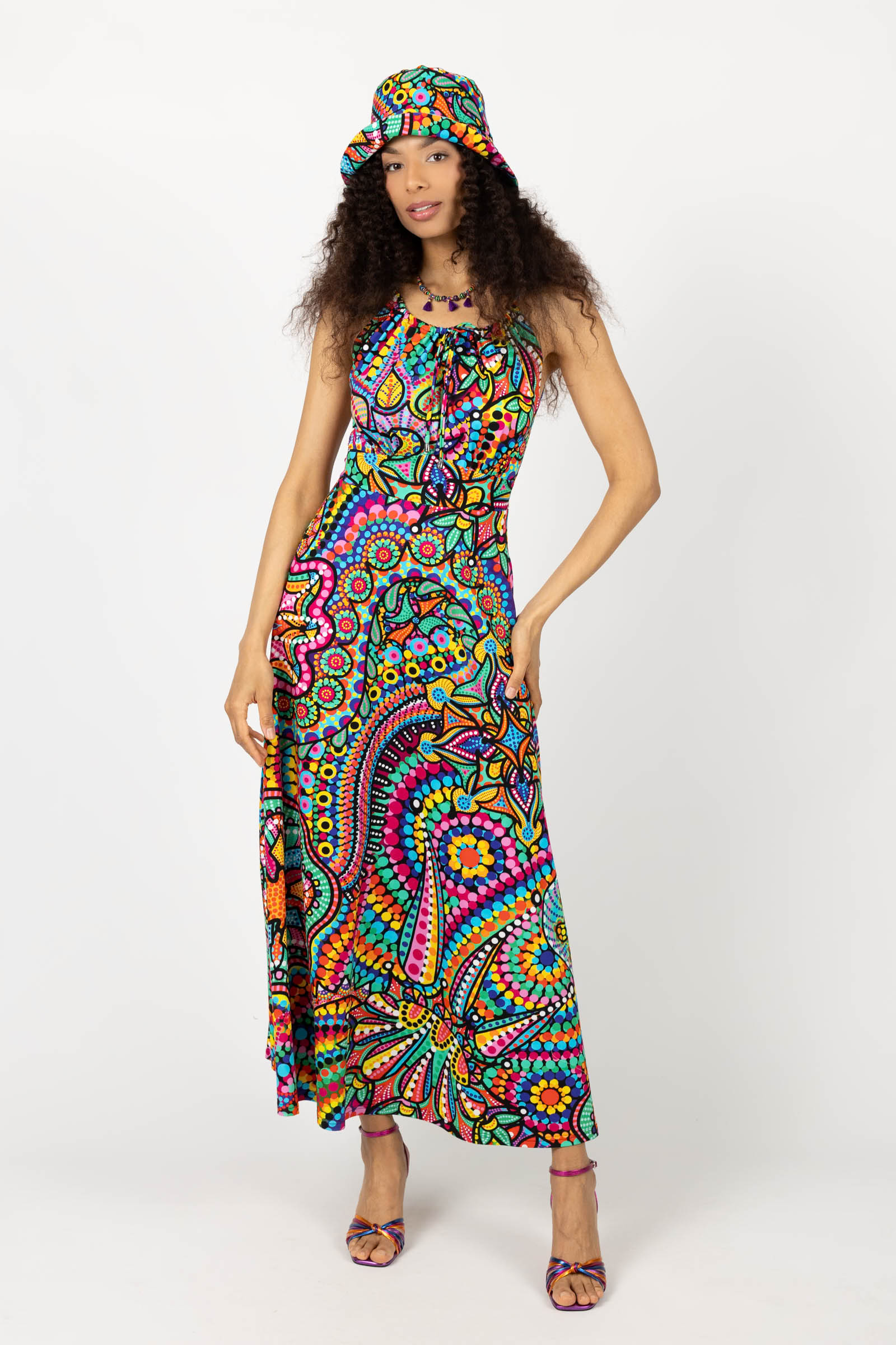 Sukienka długa, wiązana "CONFETTI" duży wzór