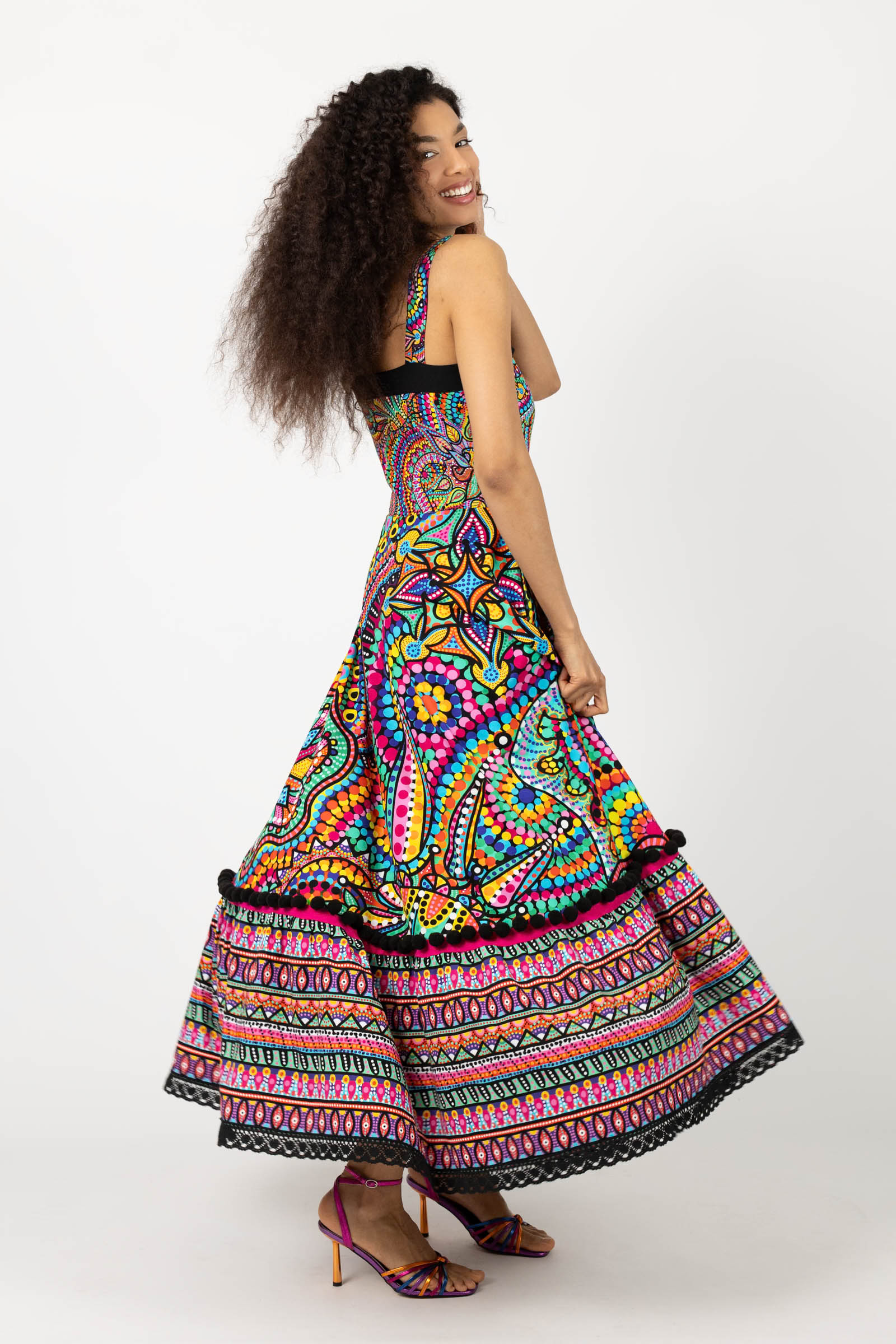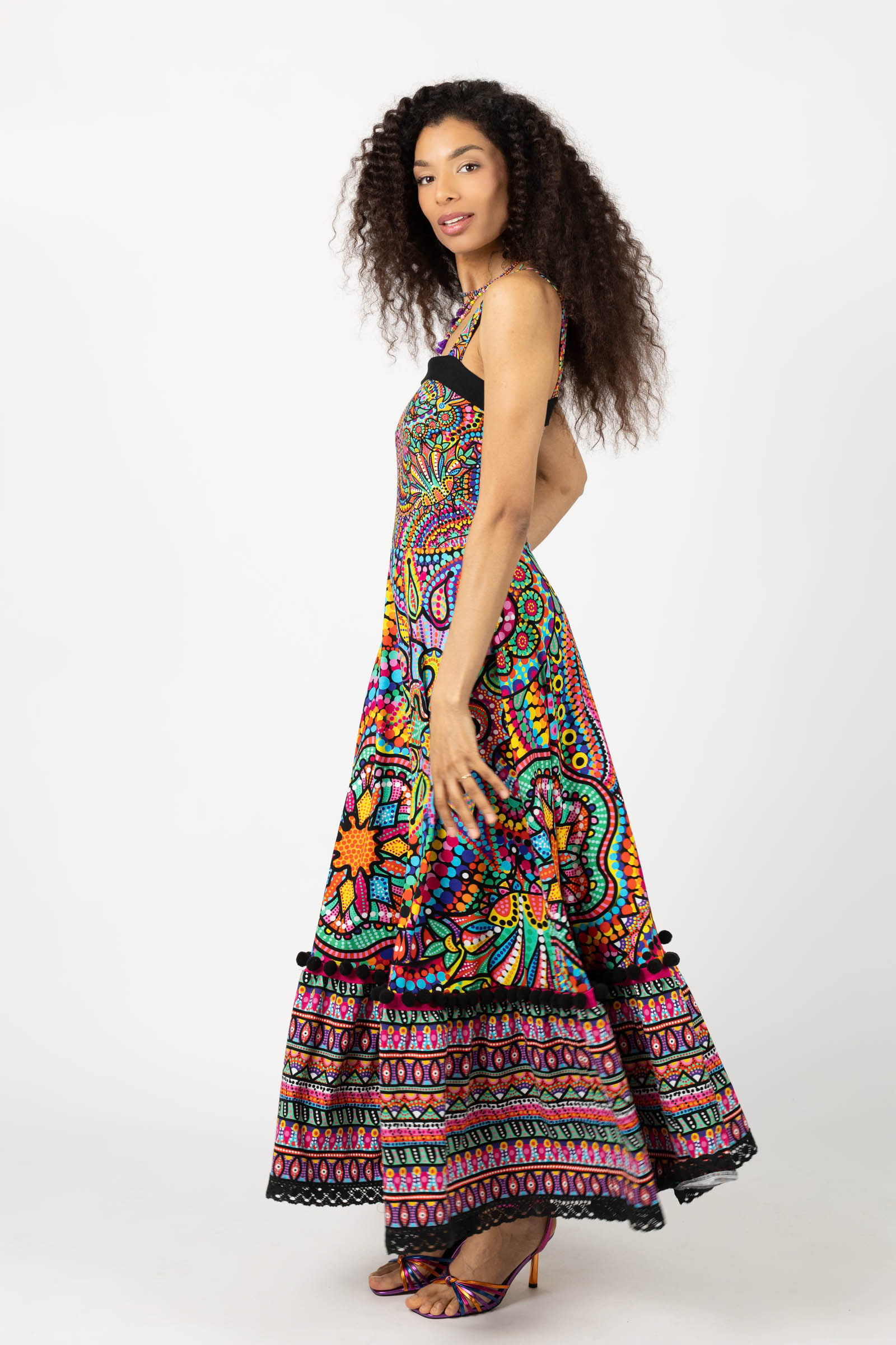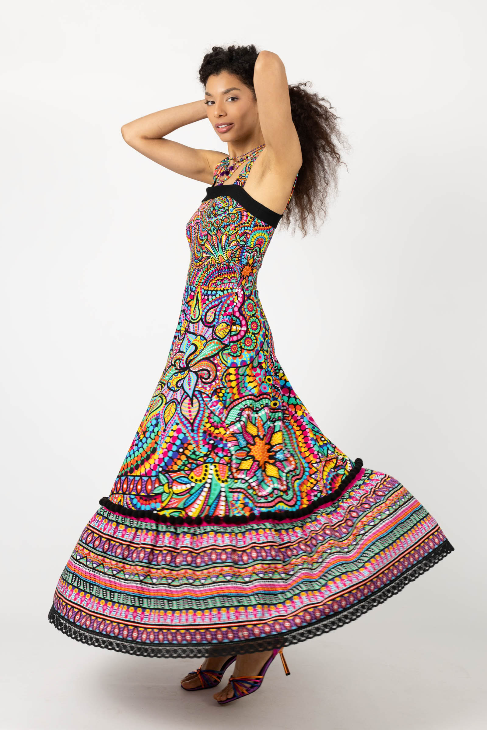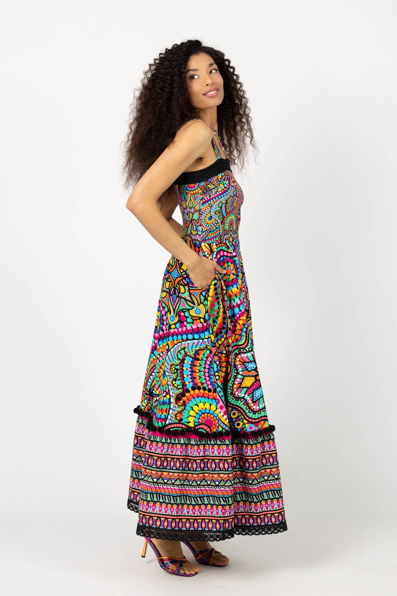 Sukienka długa z pomponami i koronką "CONFETTI" mix