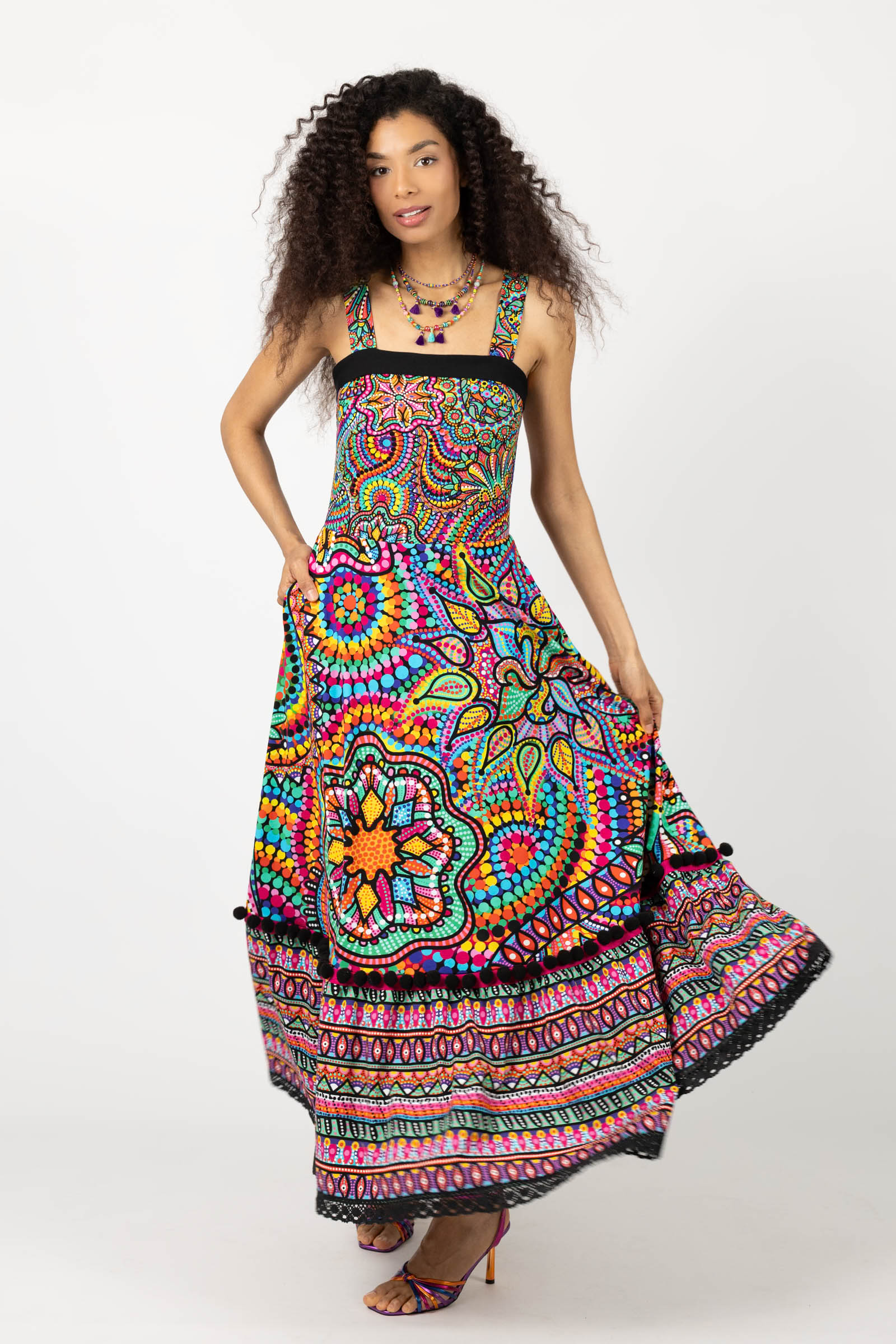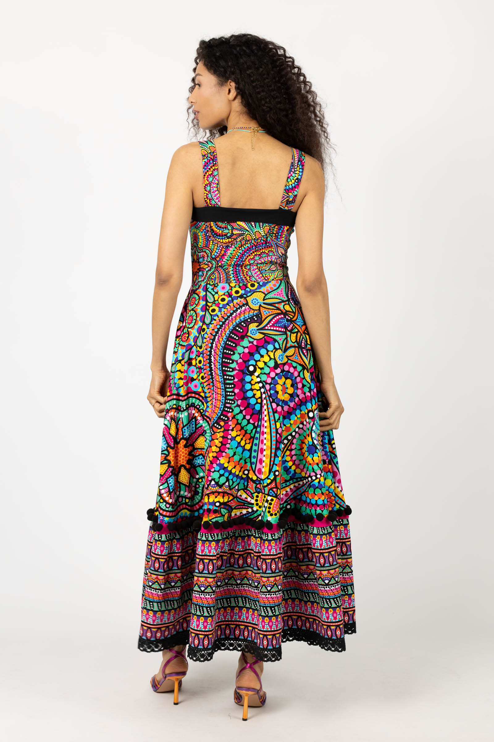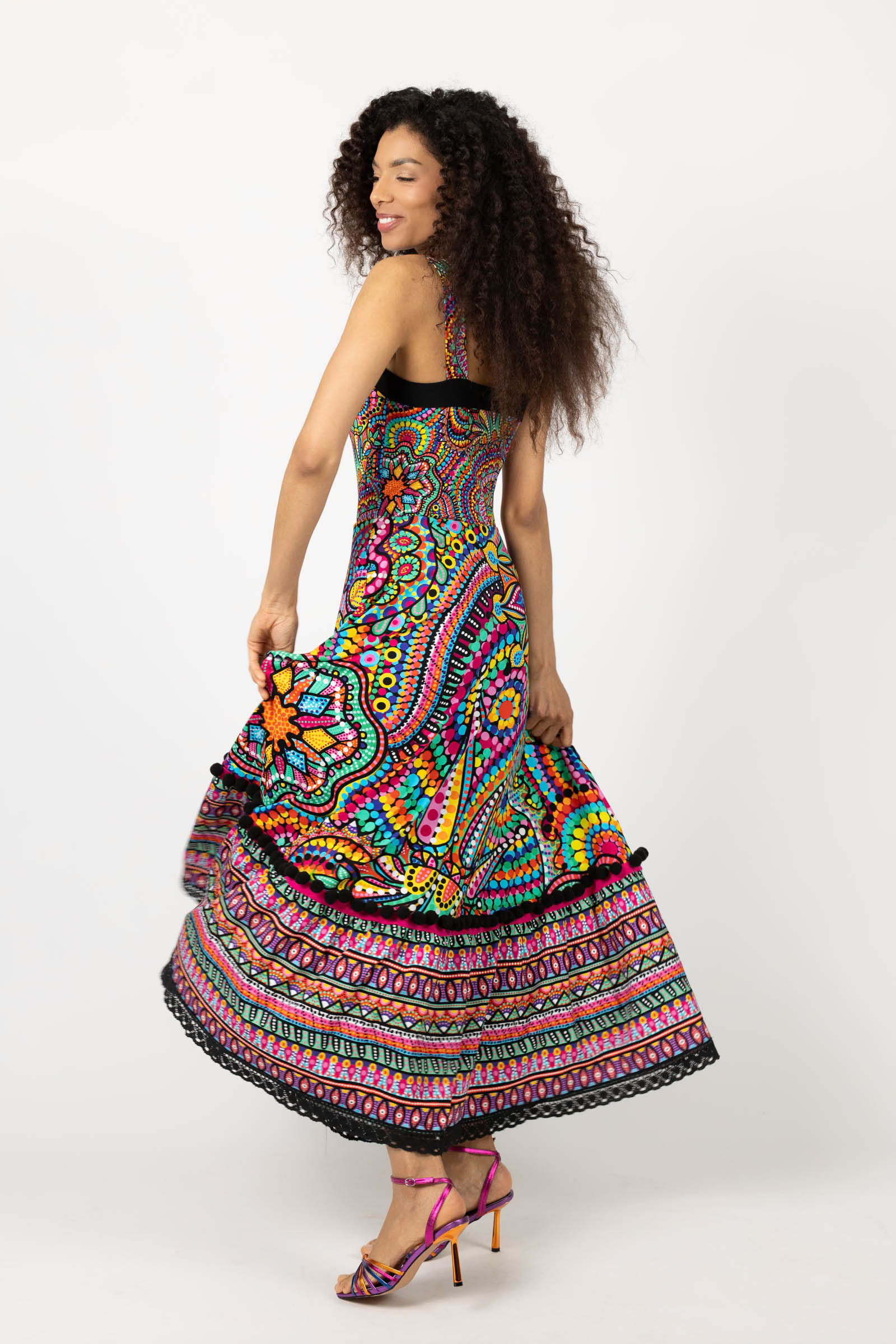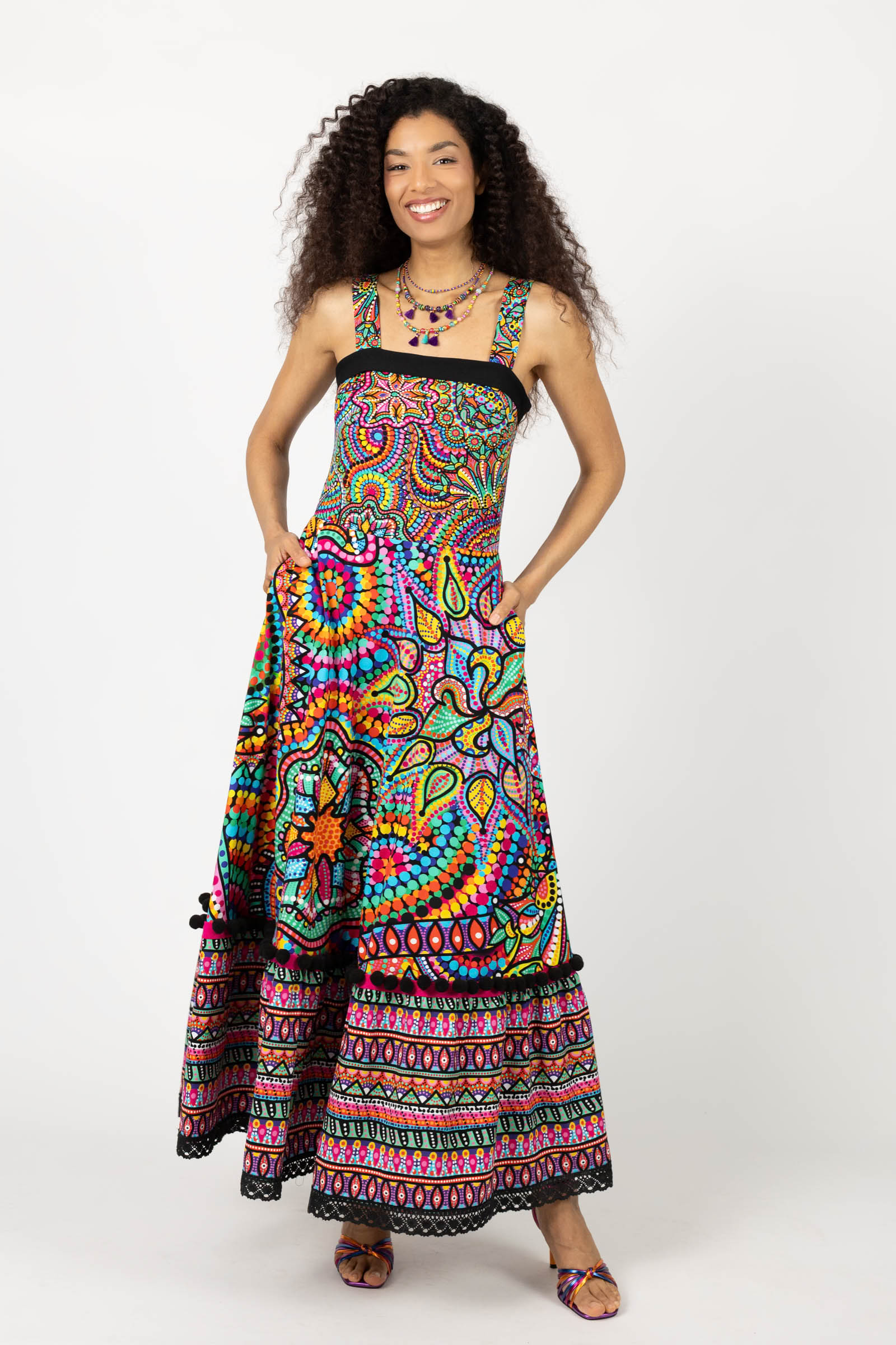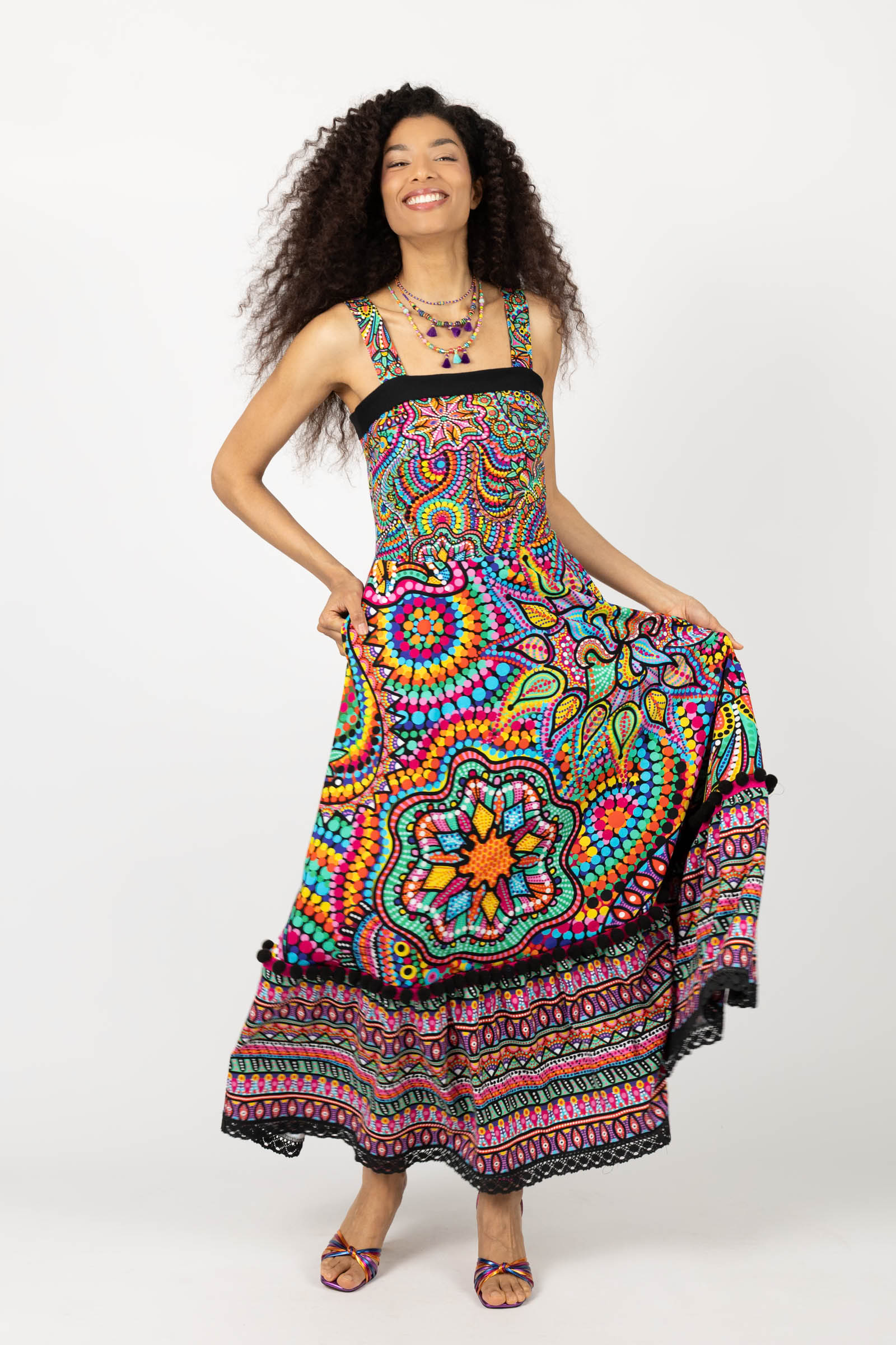 Sukienka długa z pomponami i koronką "CONFETTI" mix