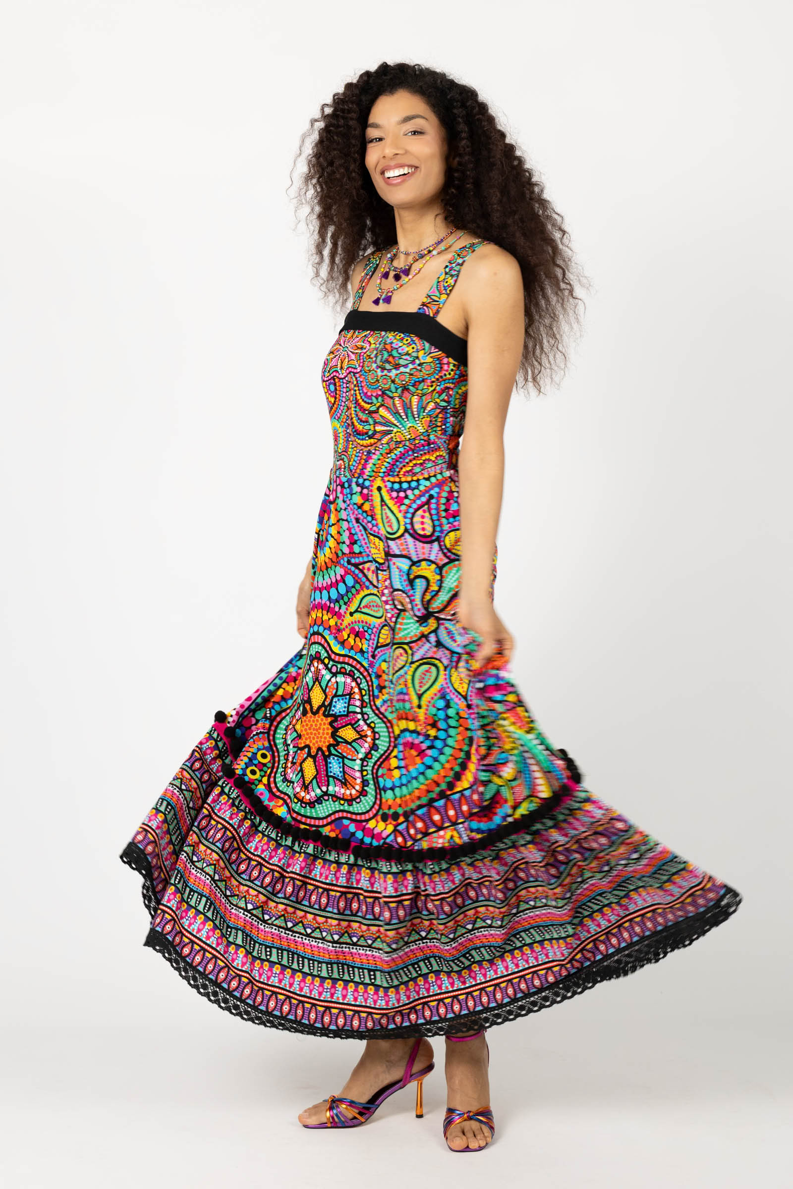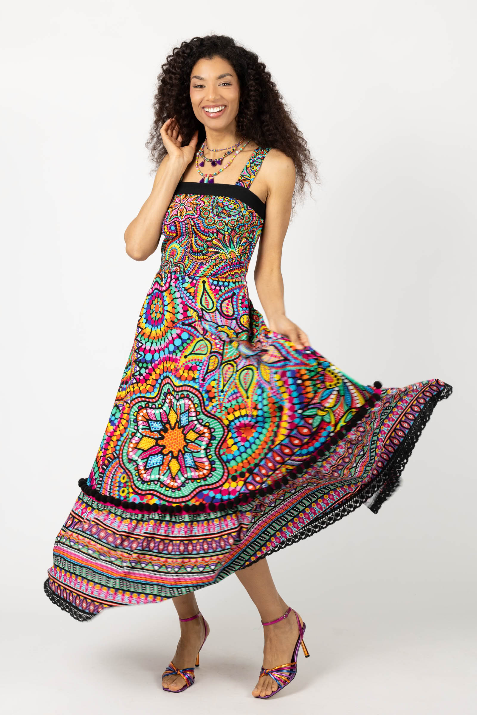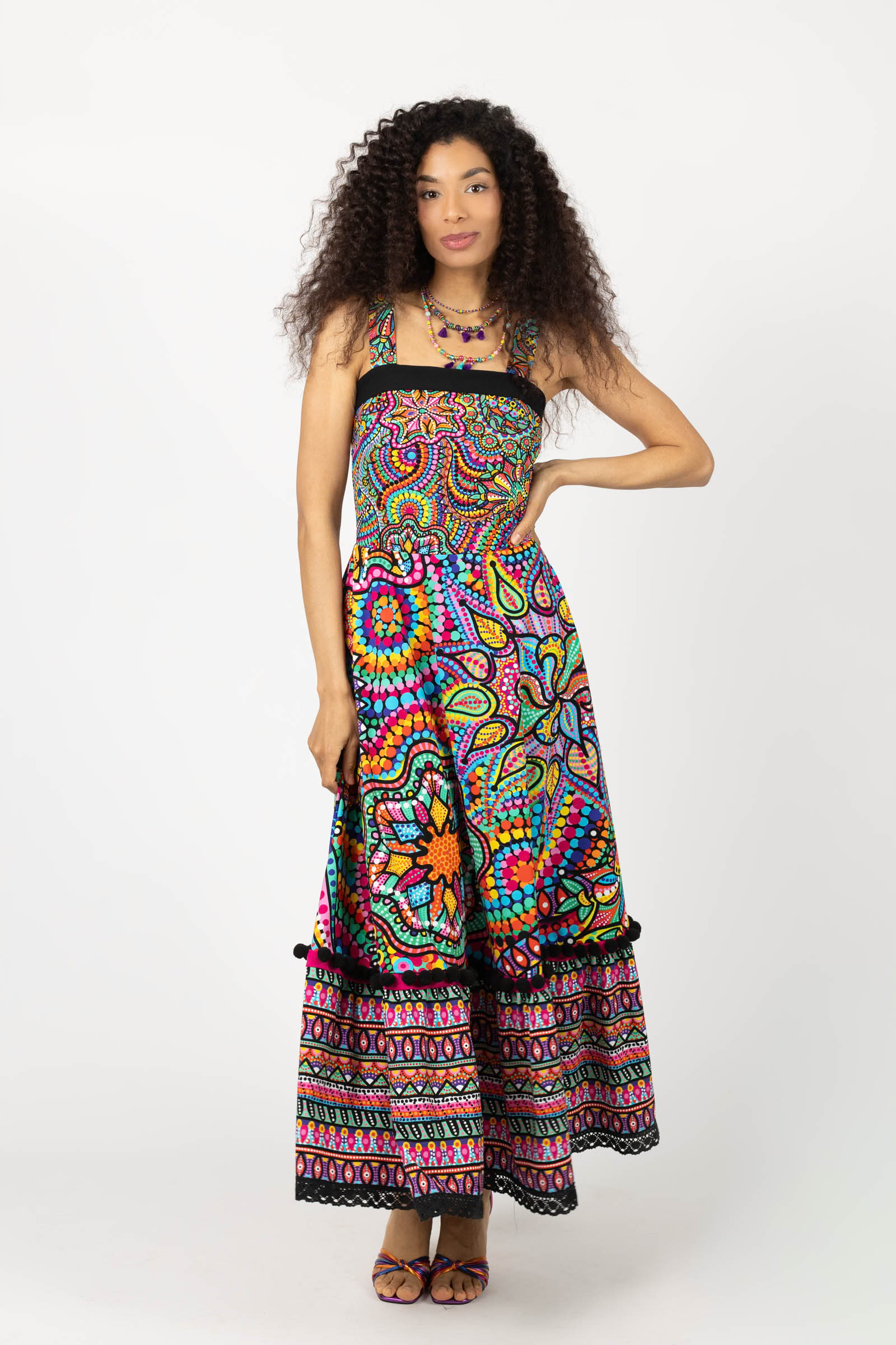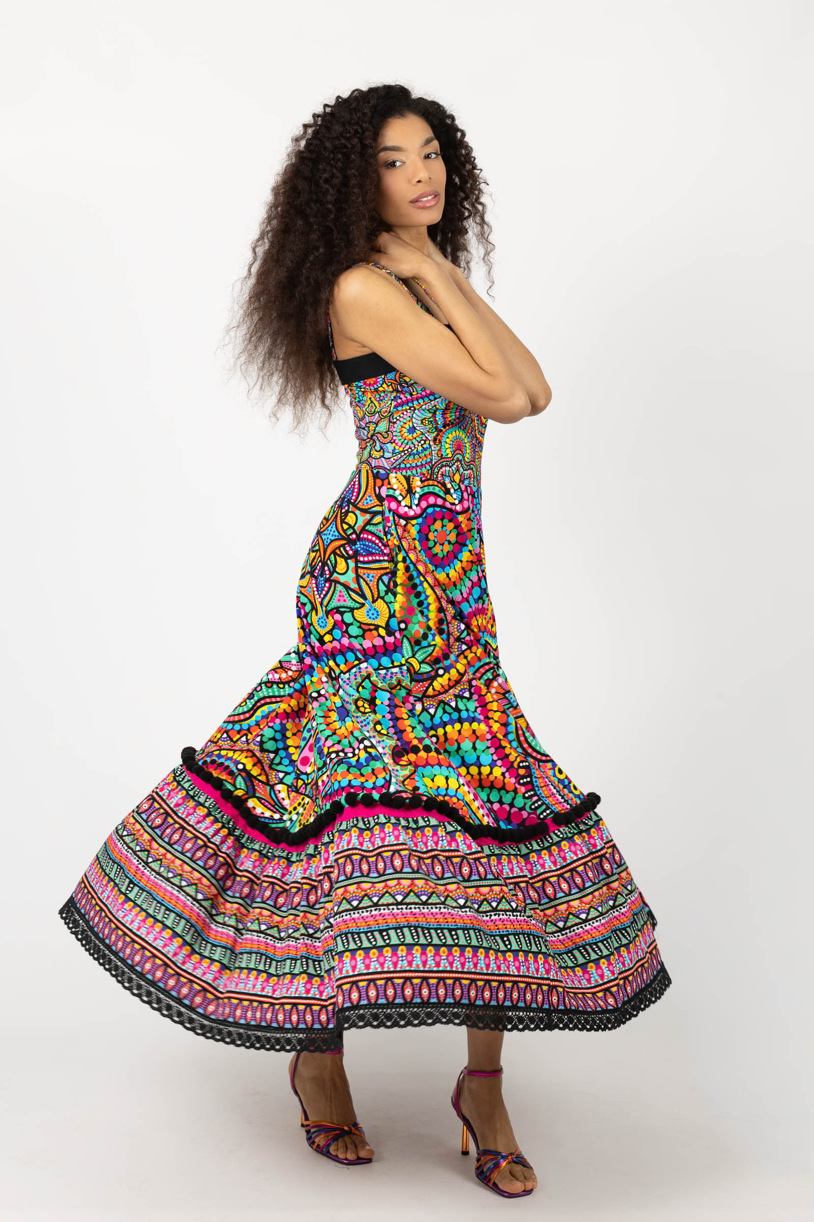 Sukienka długa z pomponami i koronką "CONFETTI" mix