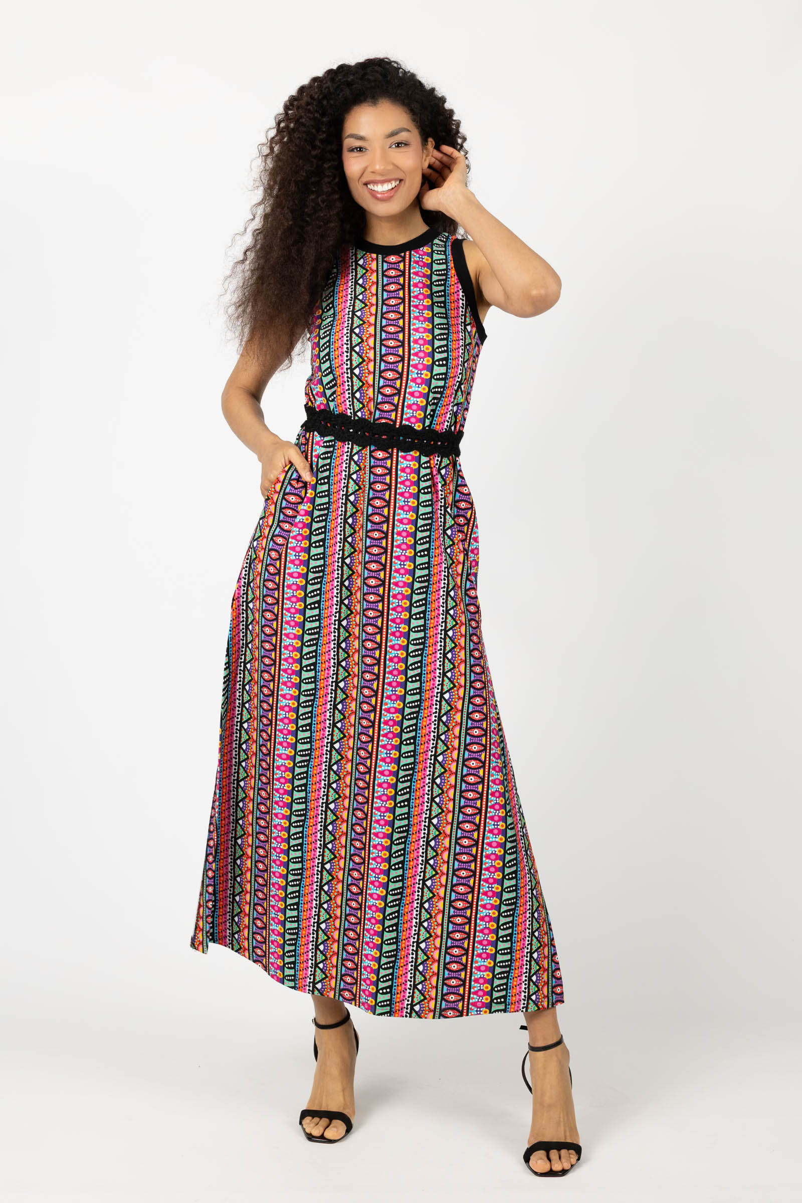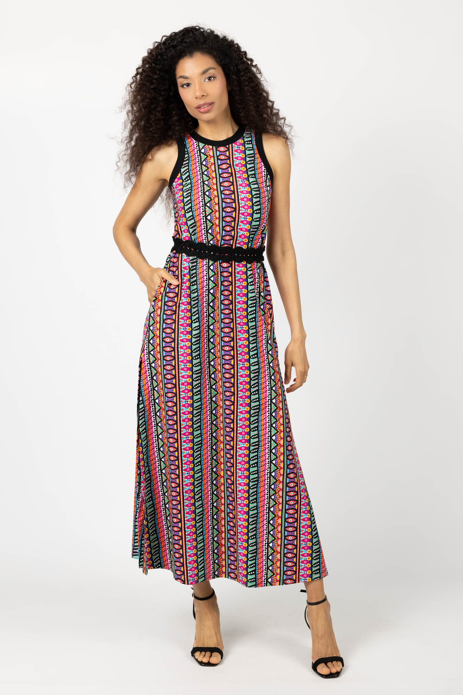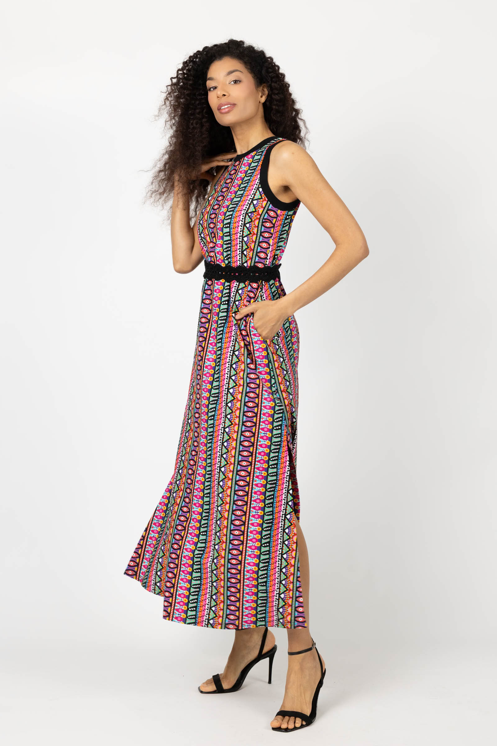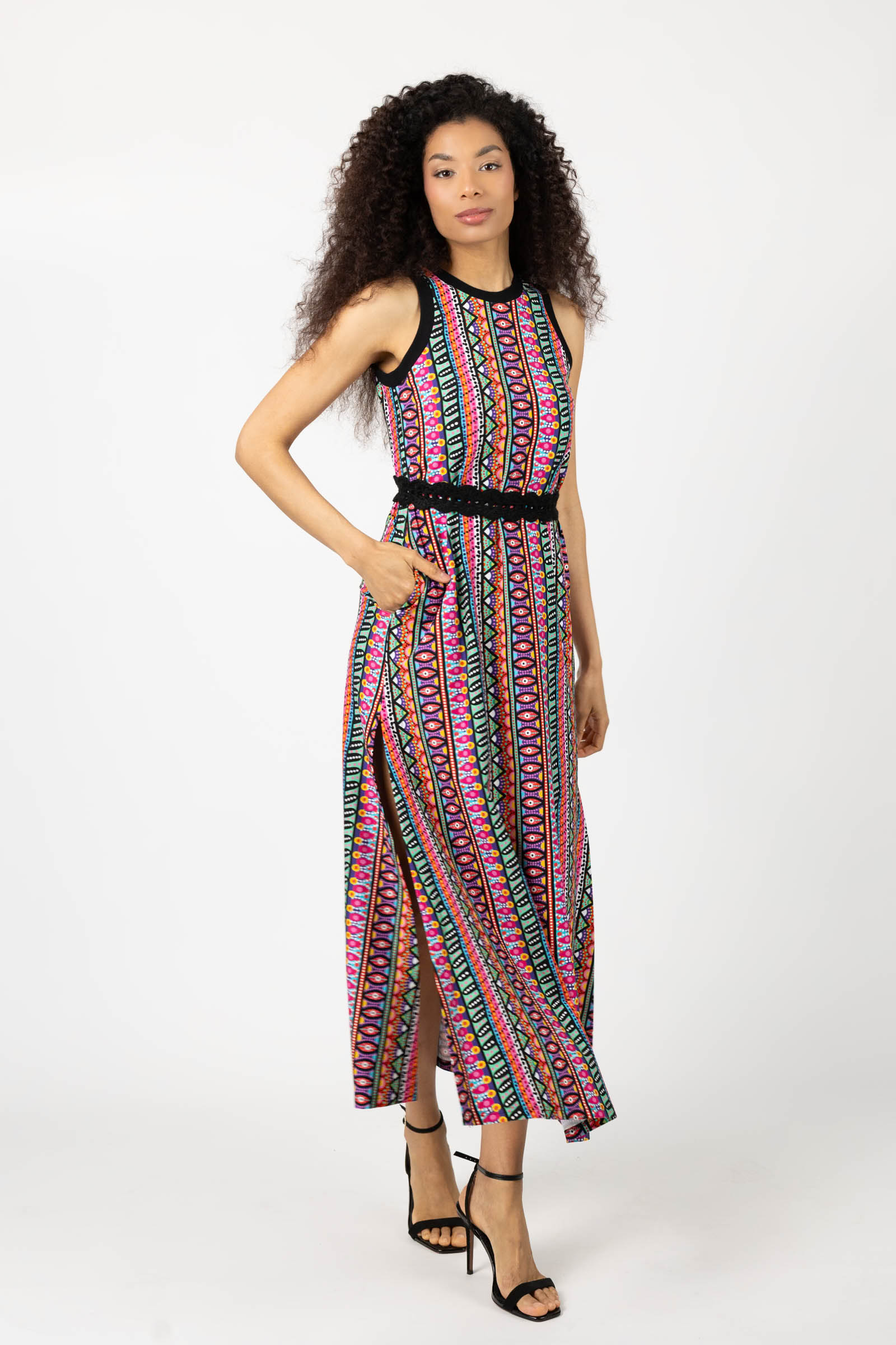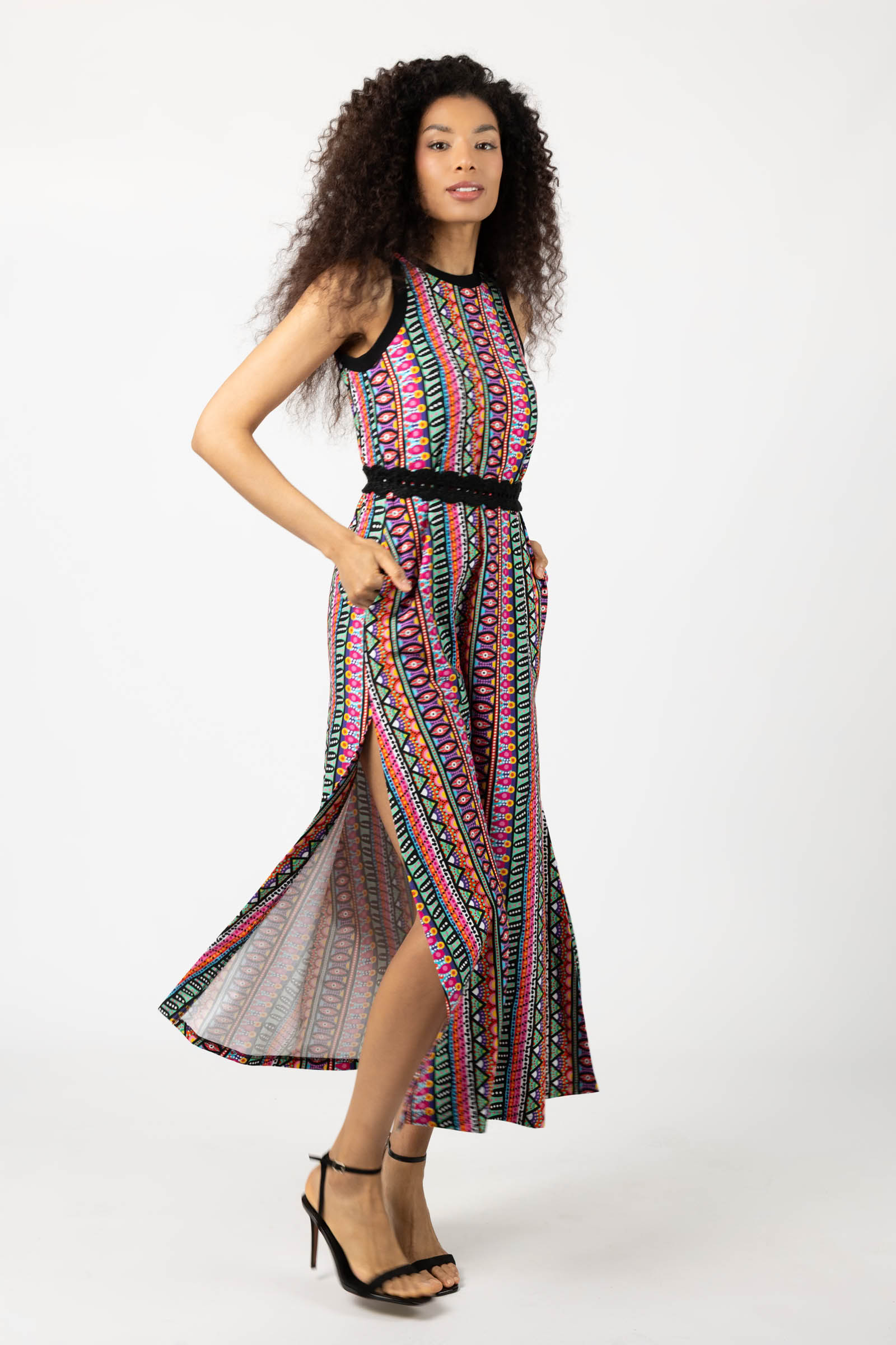 Sukienka długa z szydełkowym paskiem "CONFETTI" paski