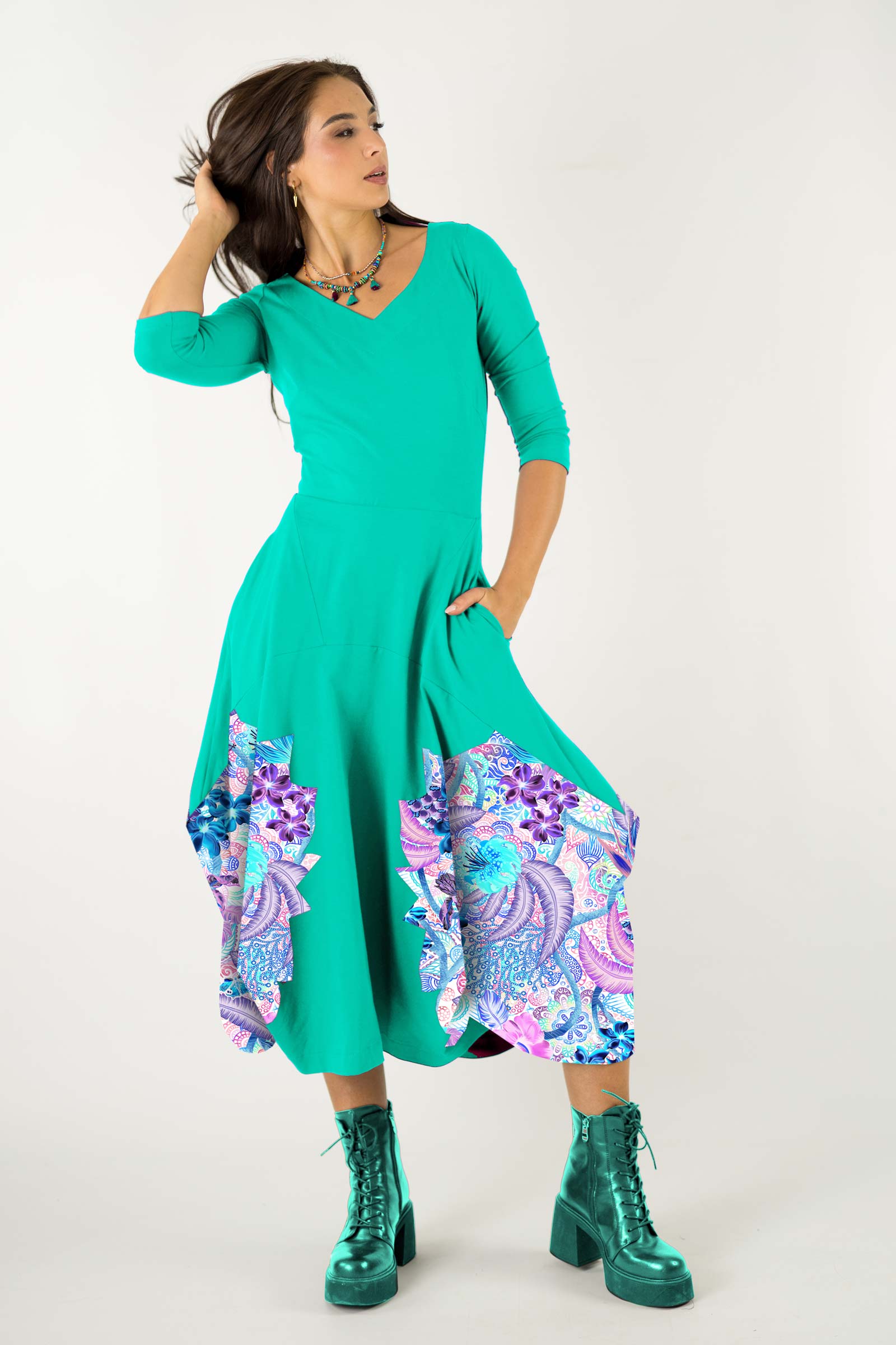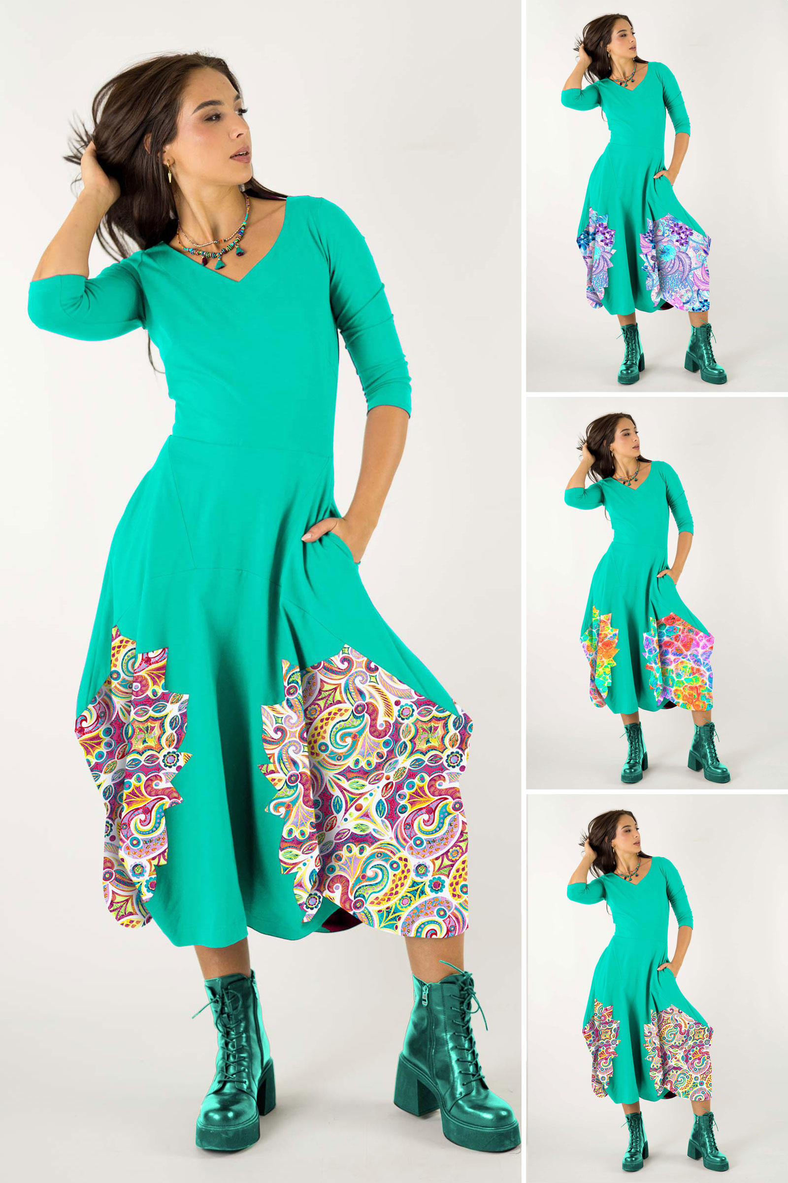 Sukienka midi origami miętowa z aplikacjami - WZÓR DO WYBORU