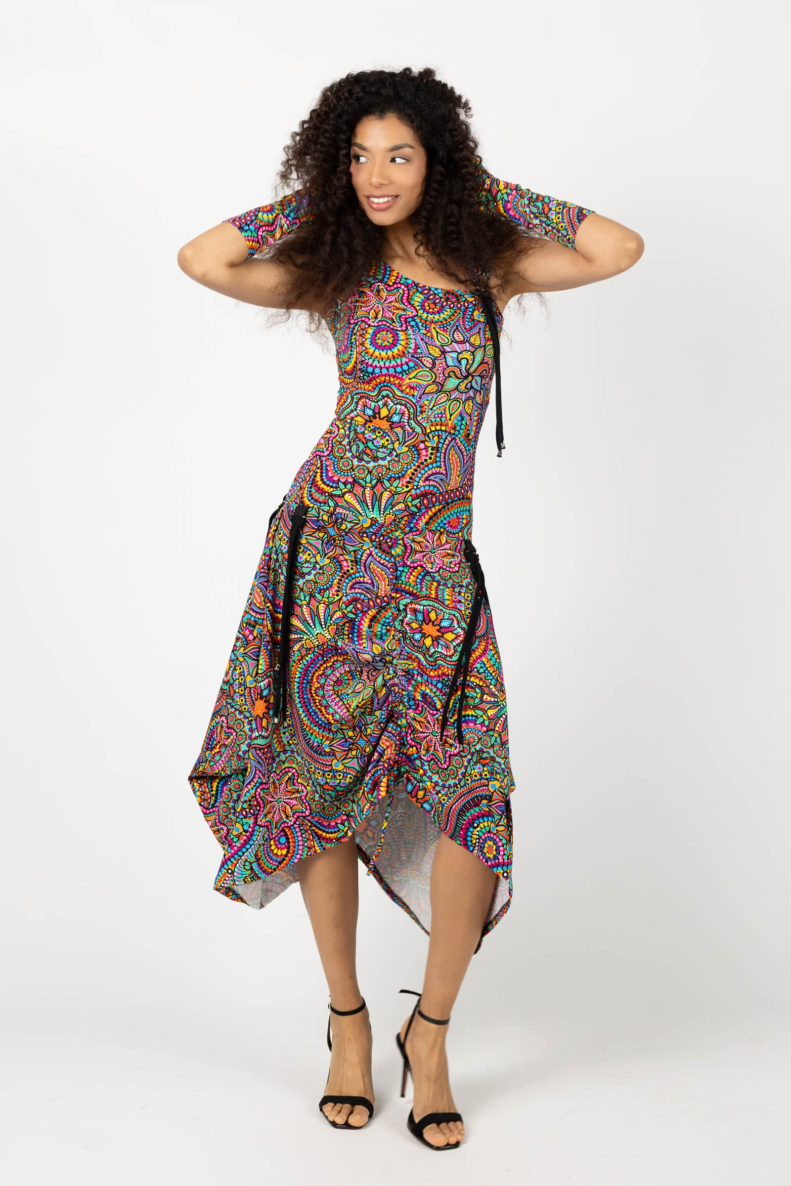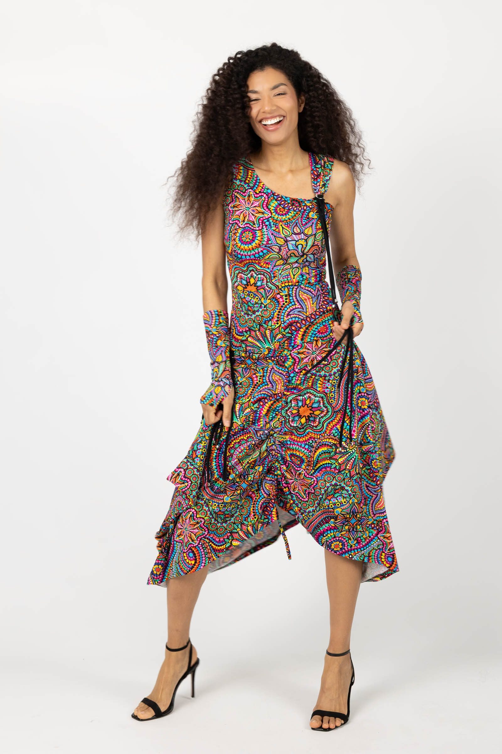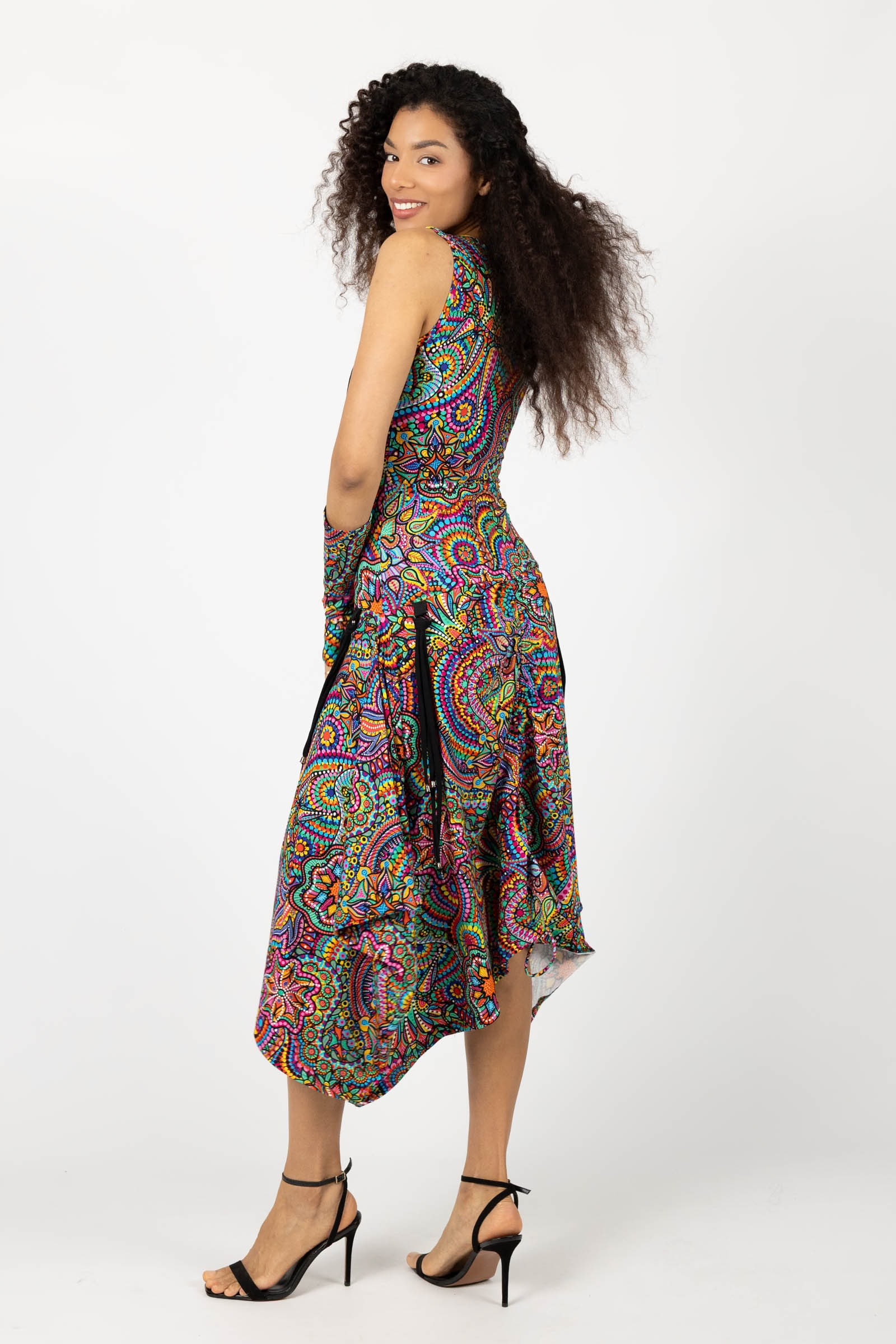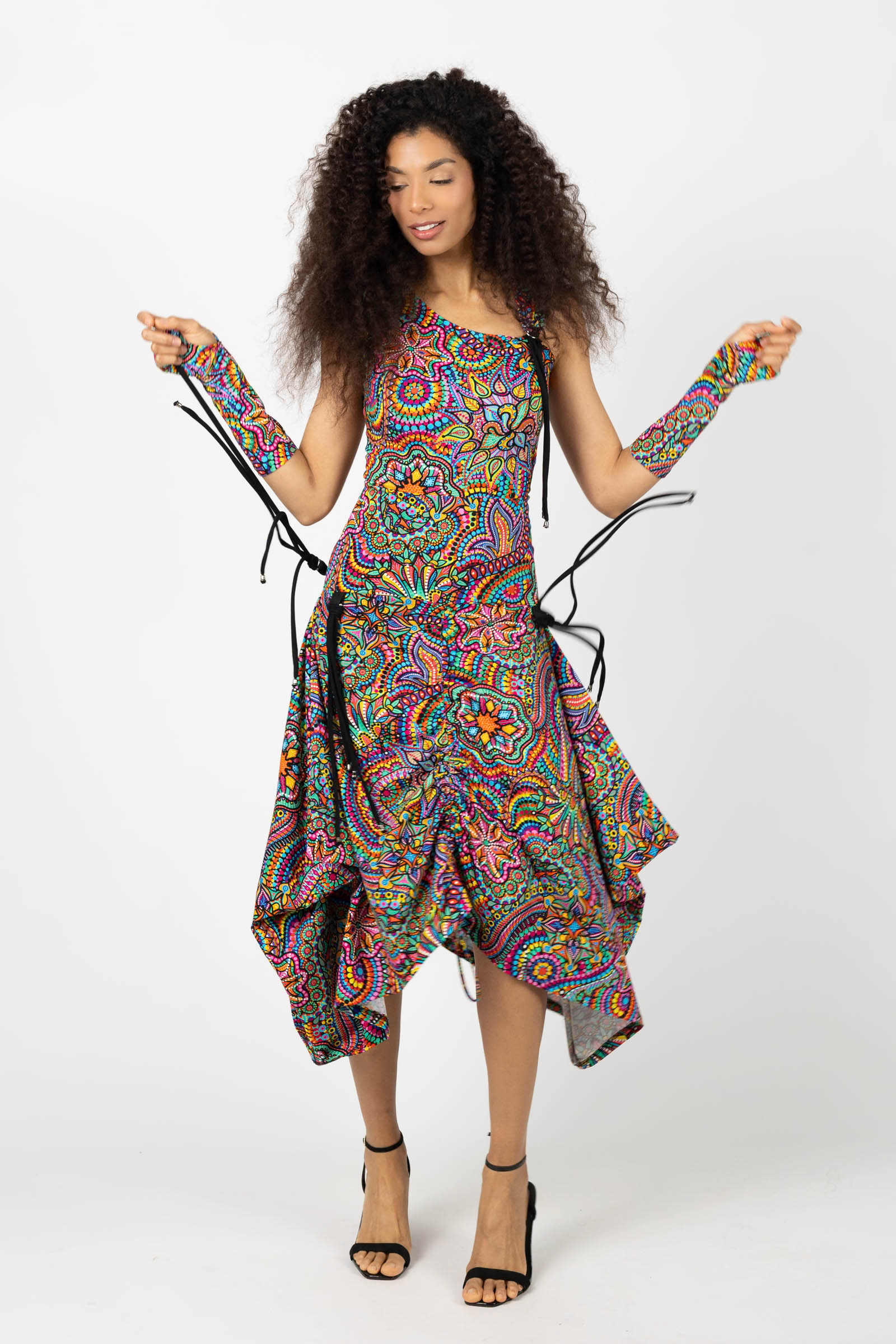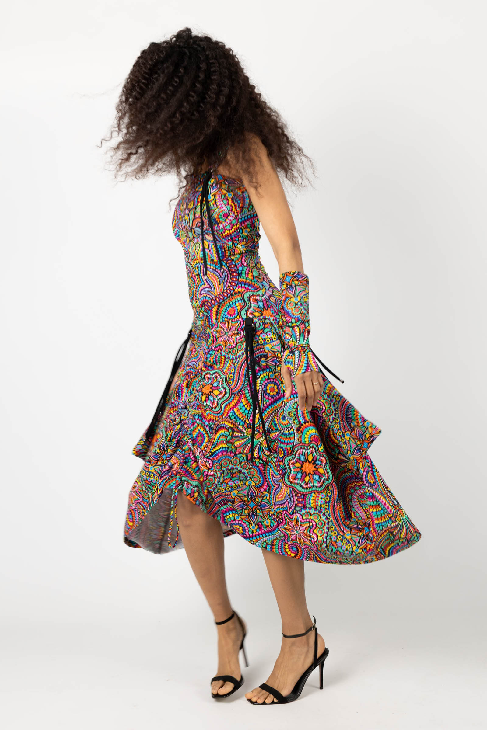 Sukienka midi origami z asymetryczną górą "CONFETTI" paski