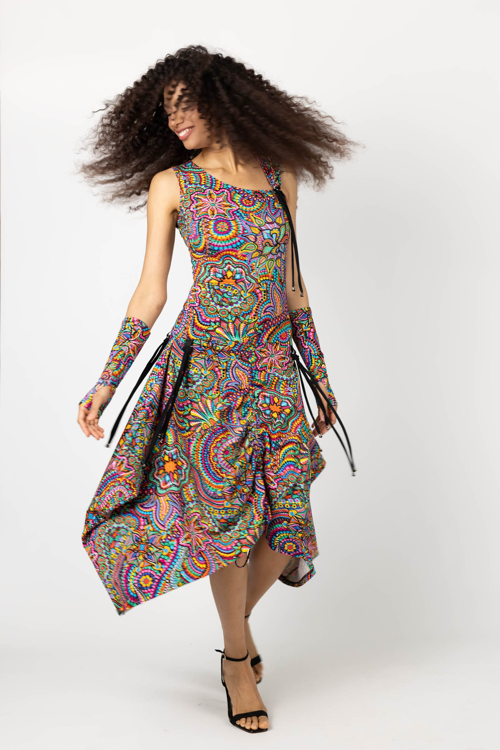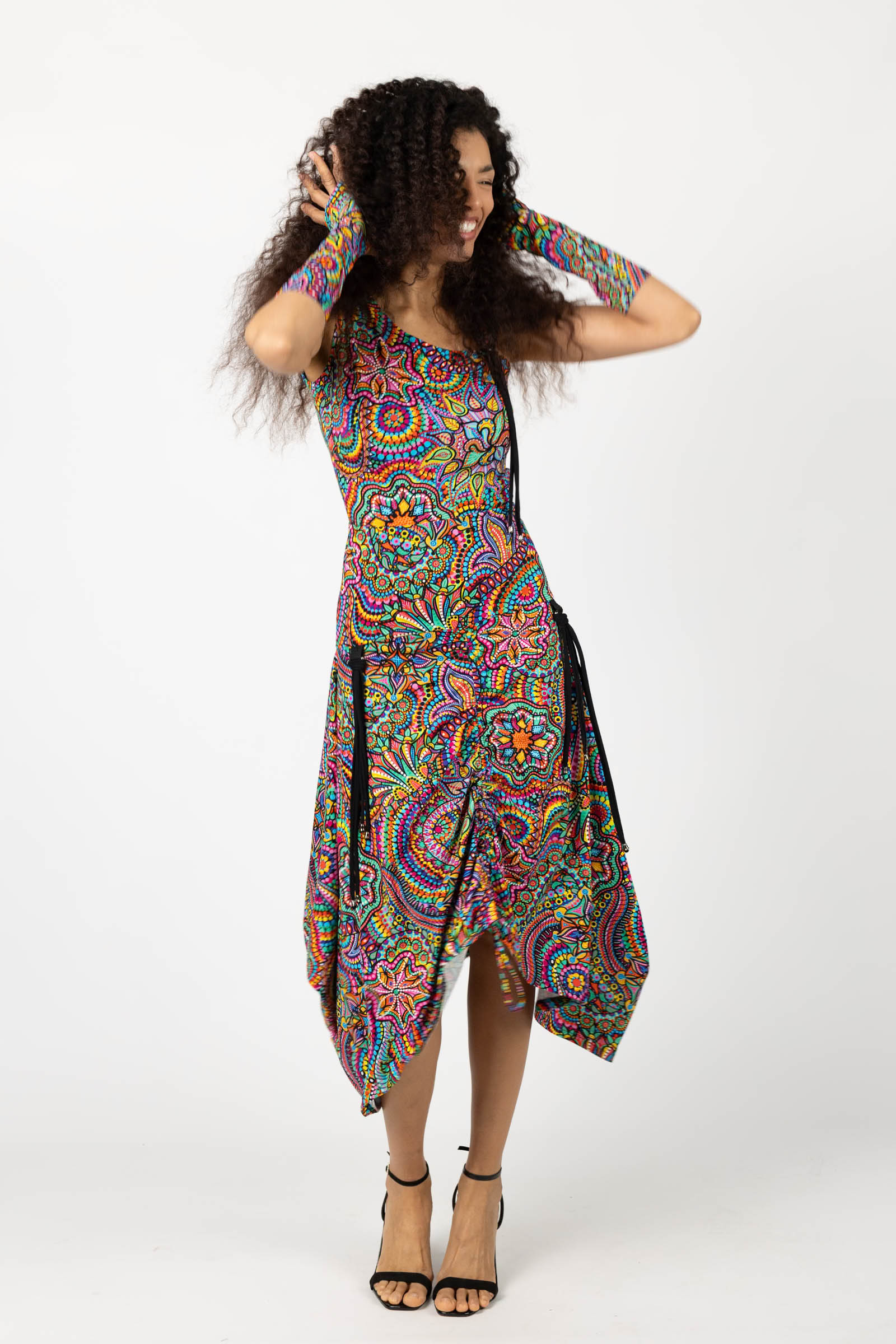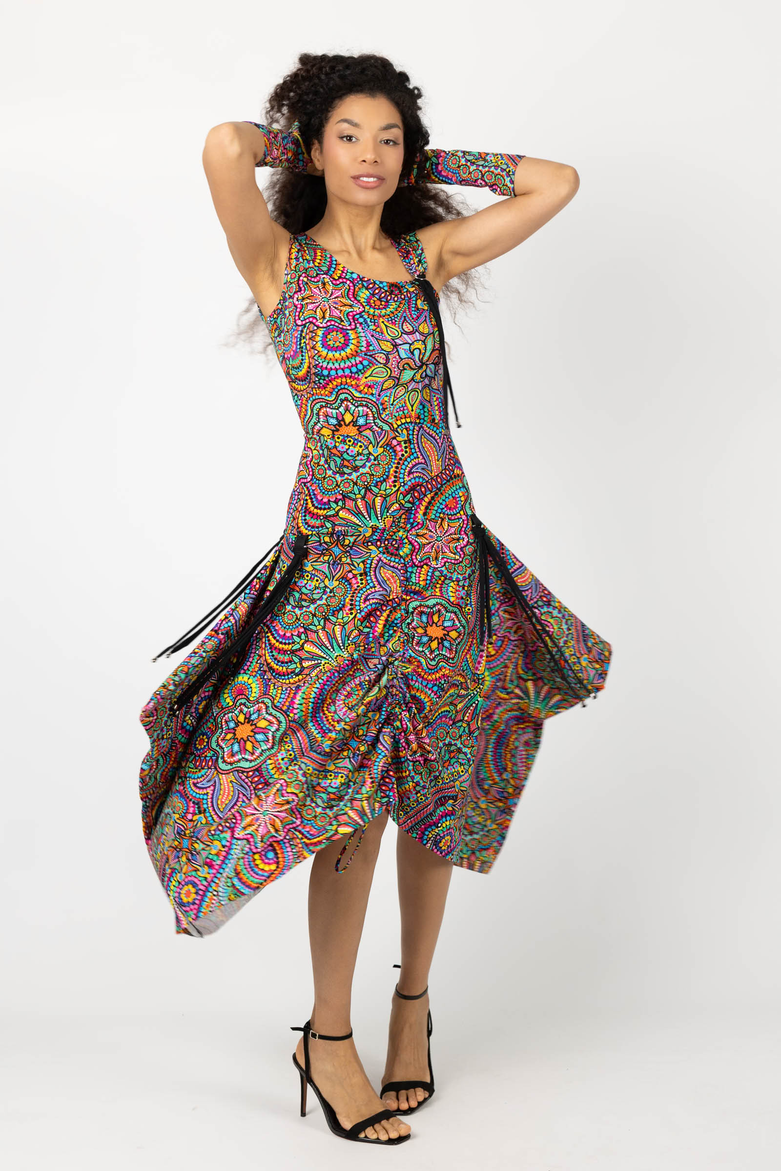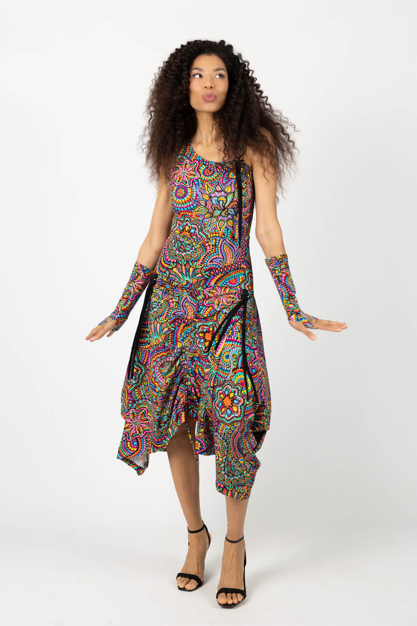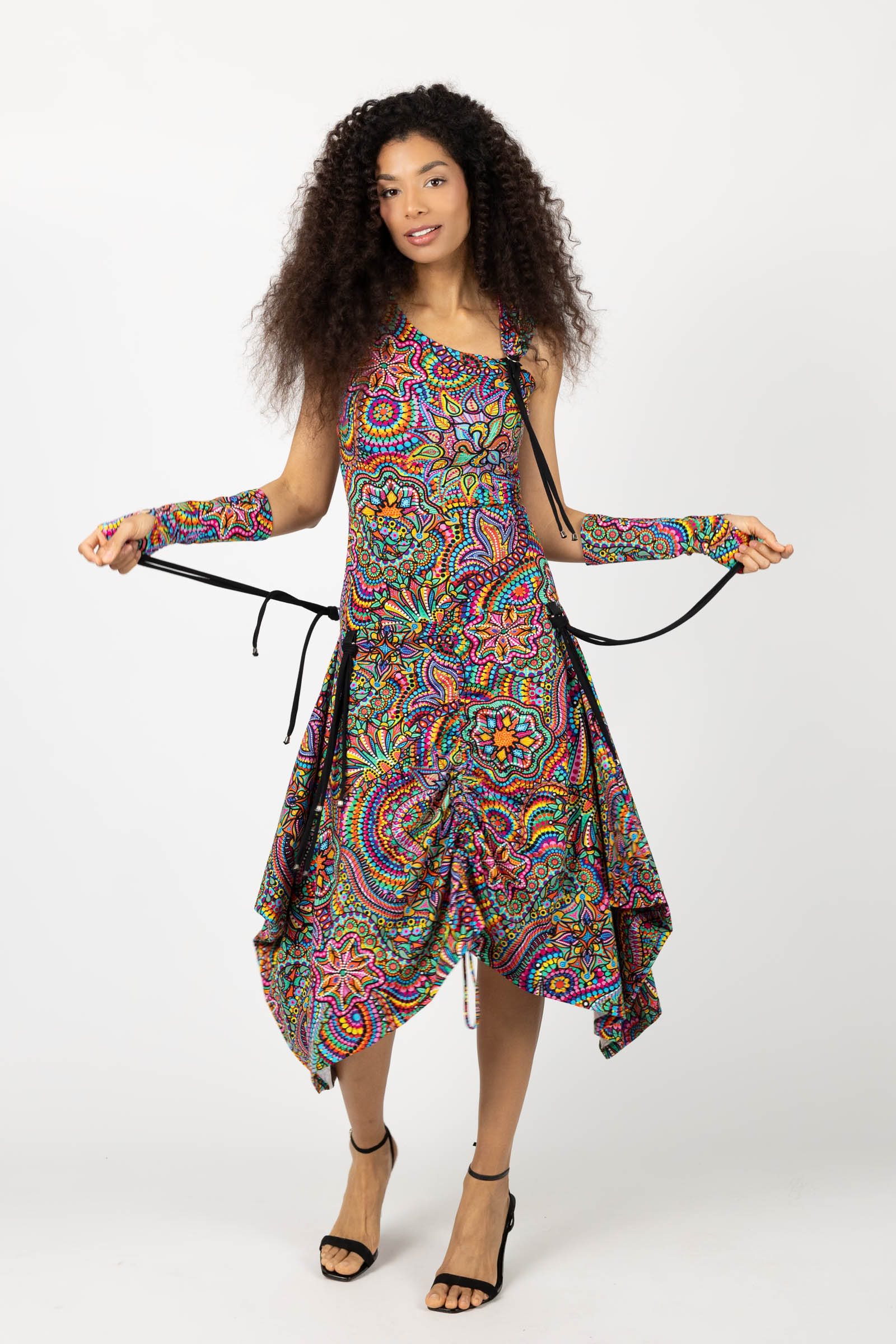 Sukienka midi origami z asymetryczną górą "CONFETTI" paski