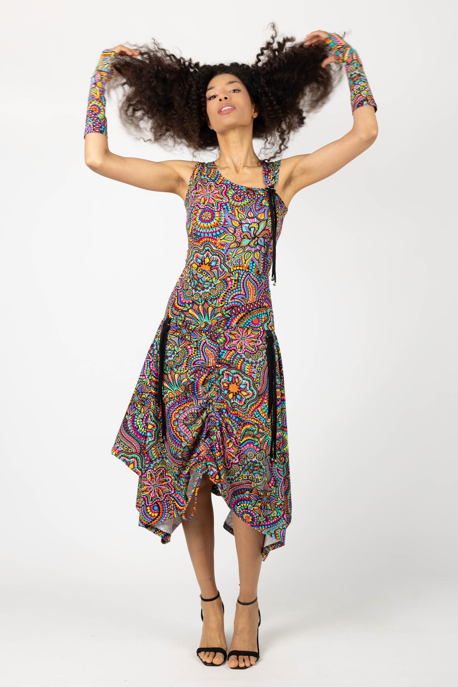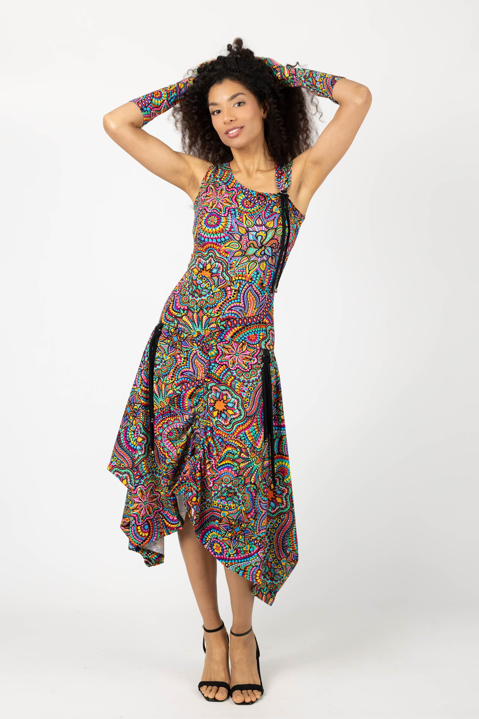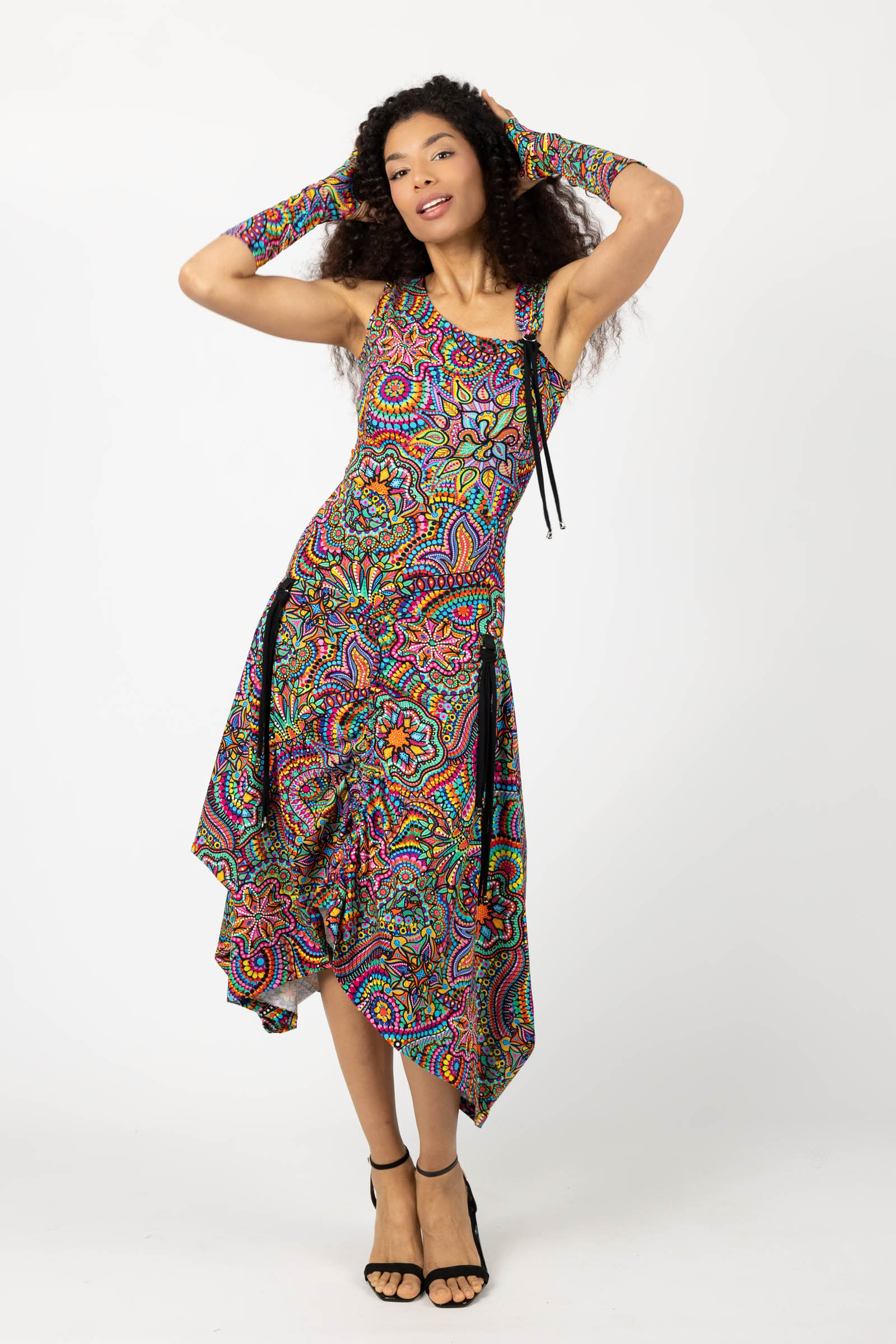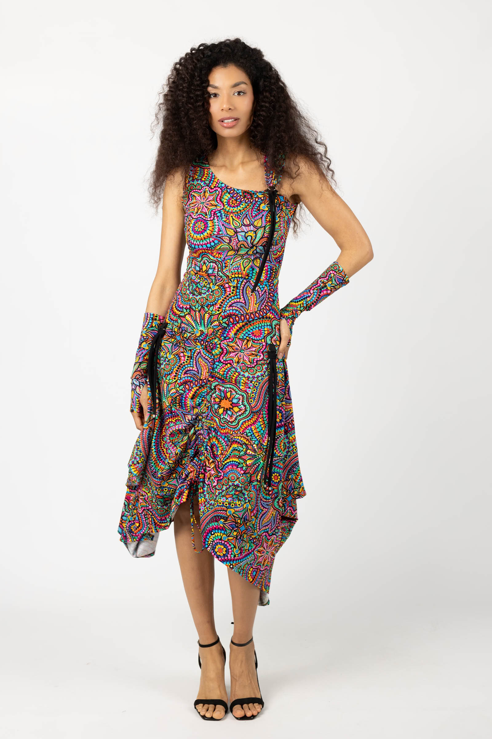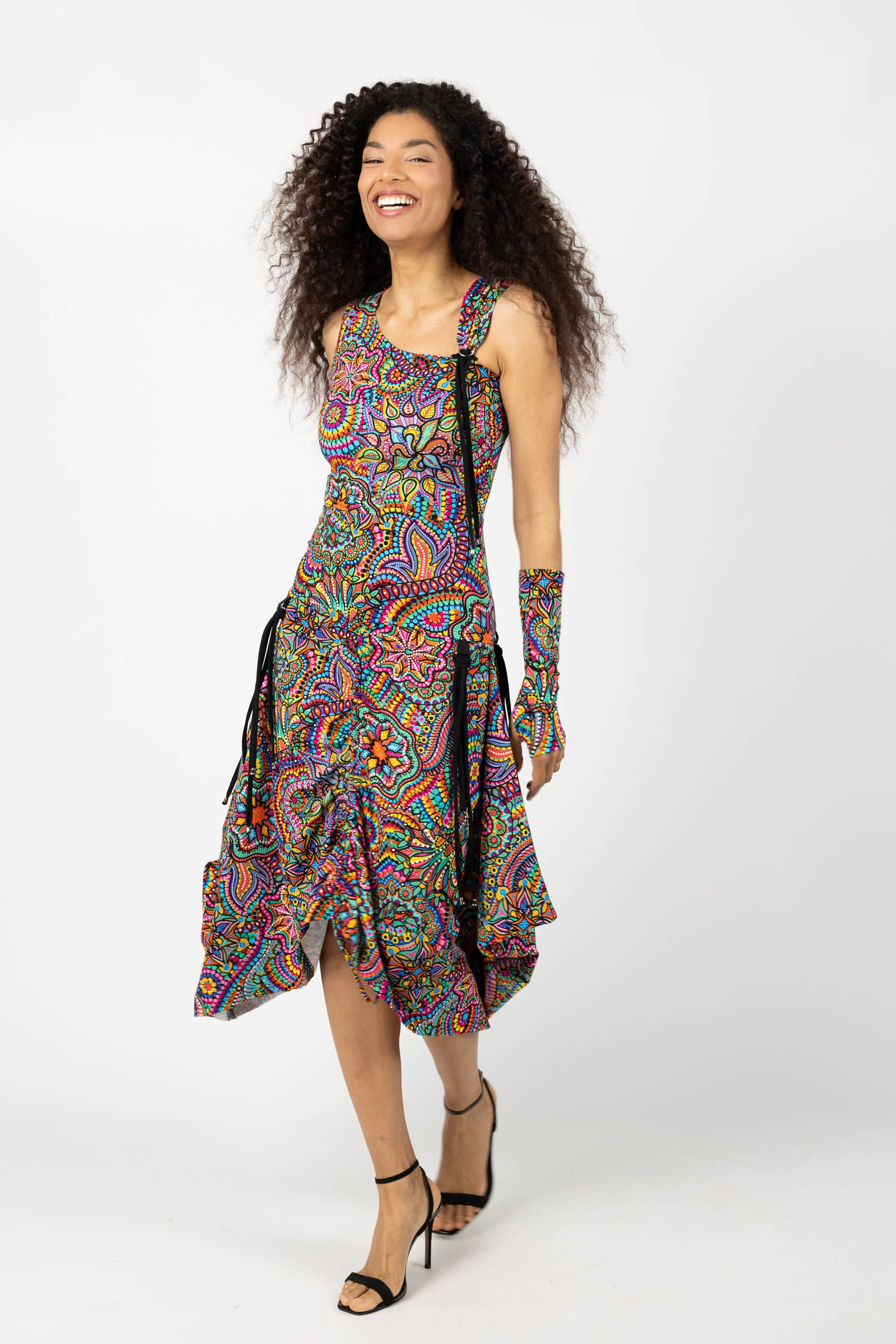 Sukienka midi origami z asymetryczną górą "CONFETTI" paski