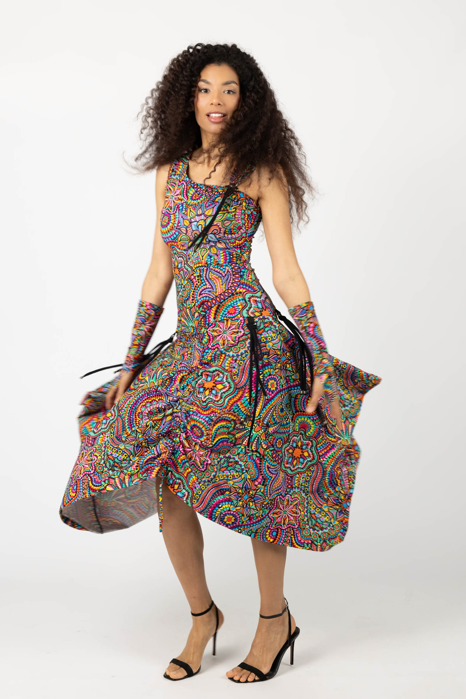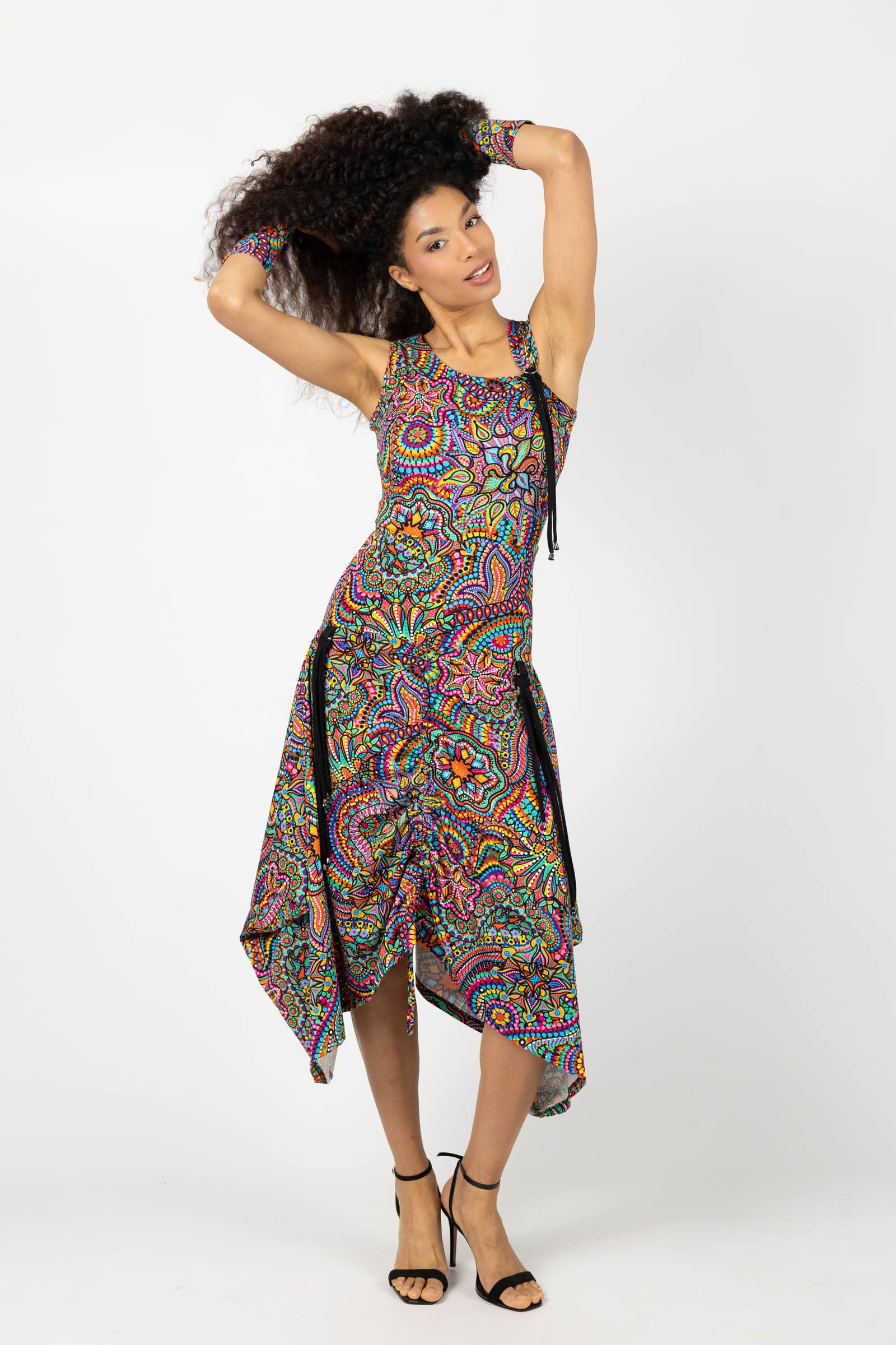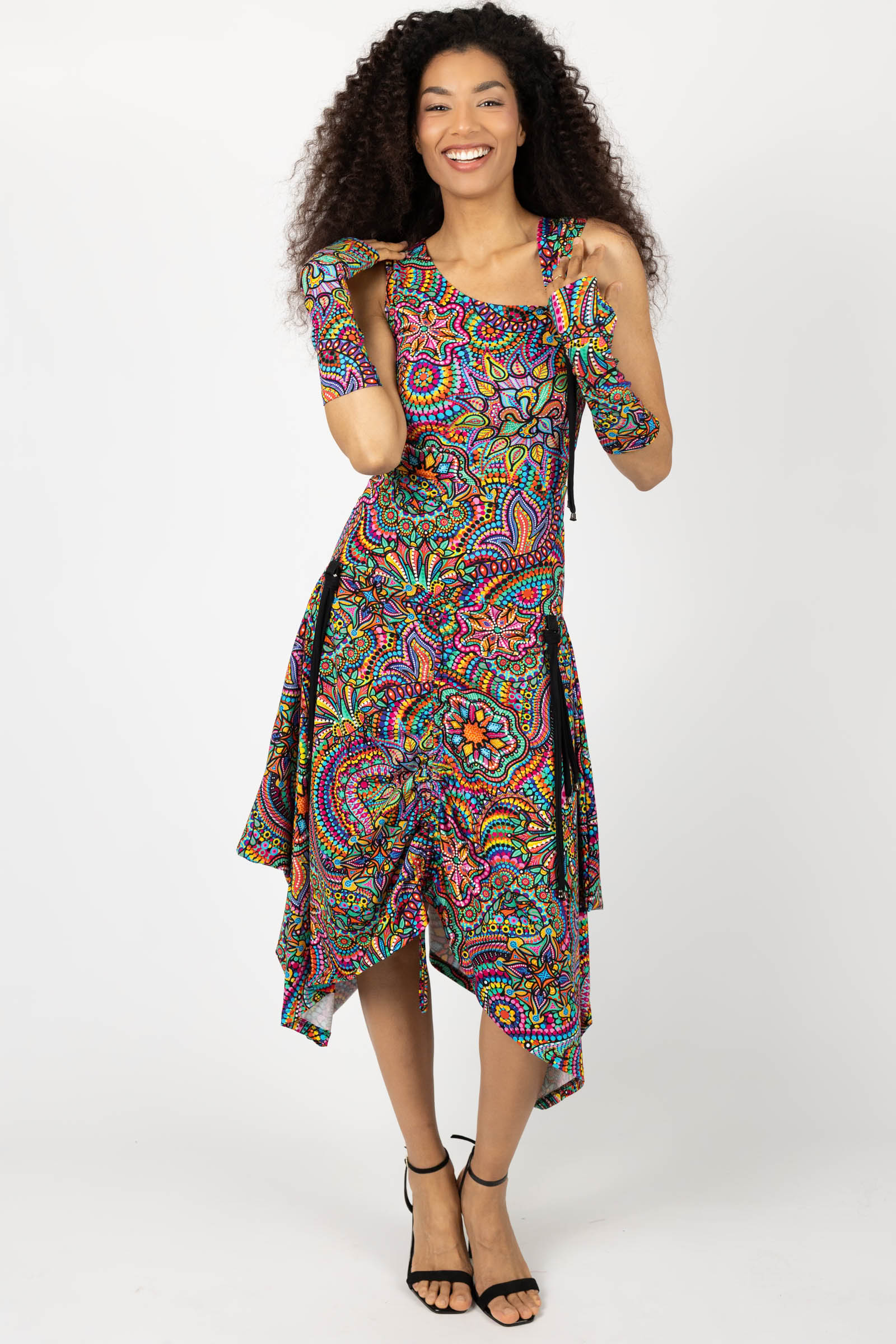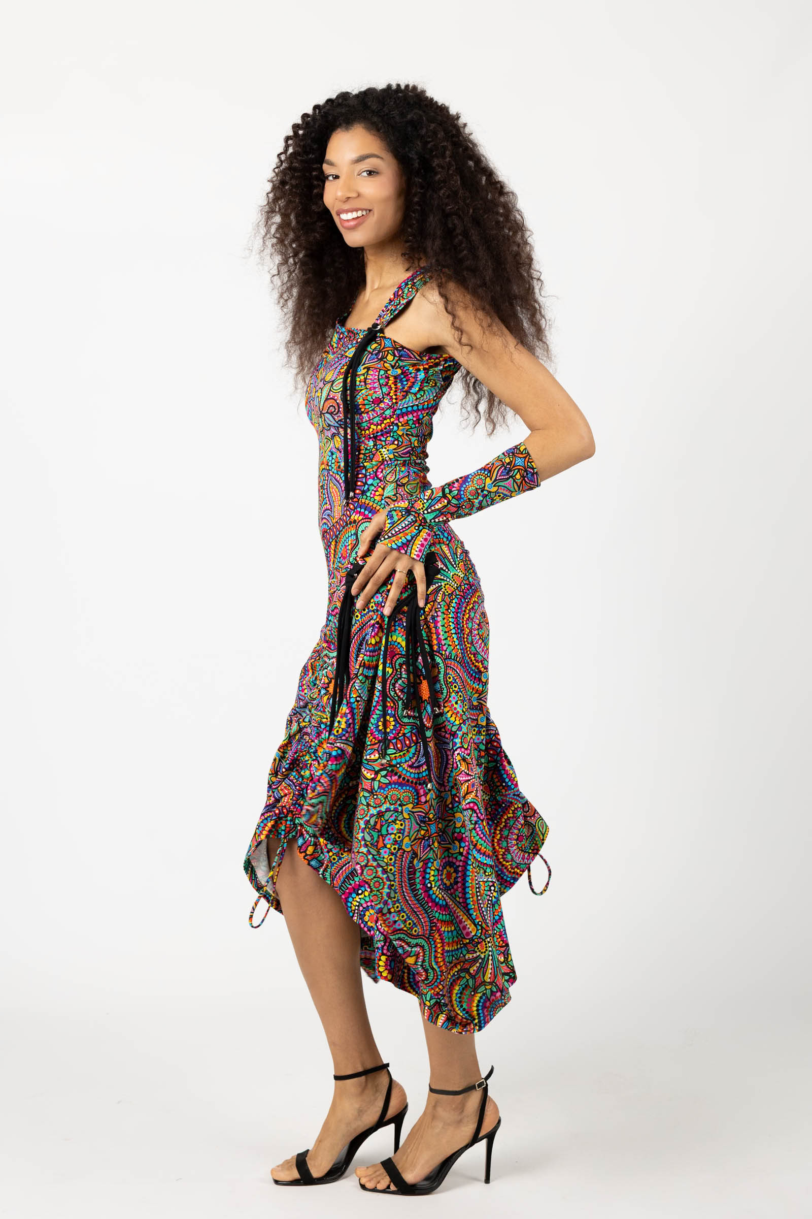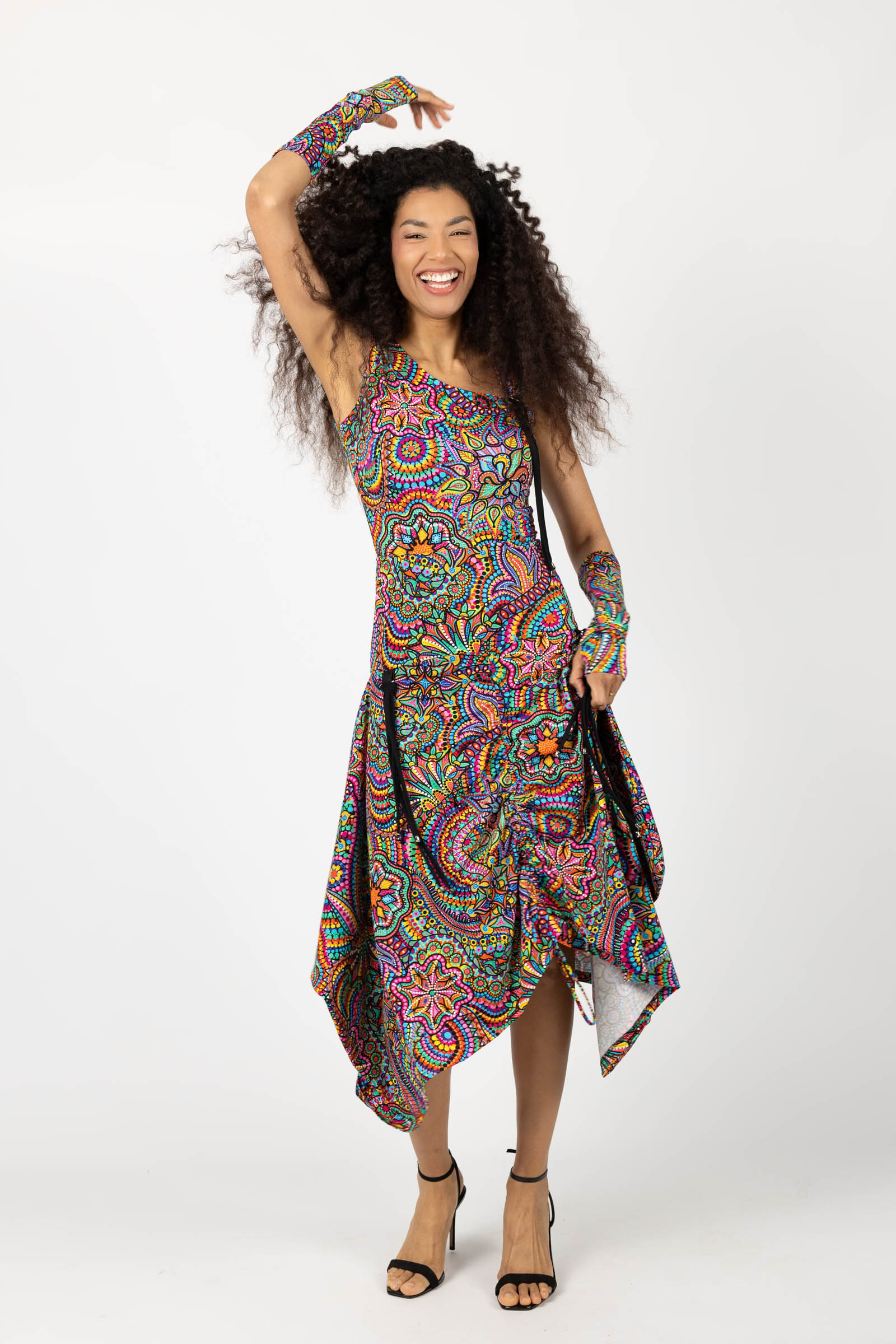 Sukienka midi origami z asymetryczną górą "CONFETTI" paski