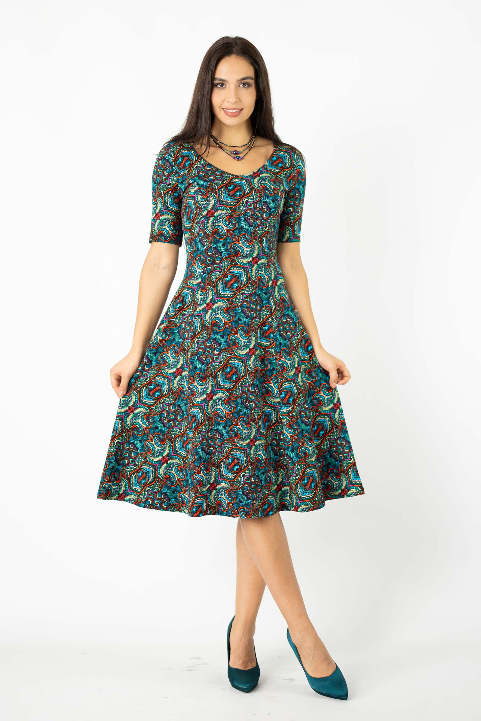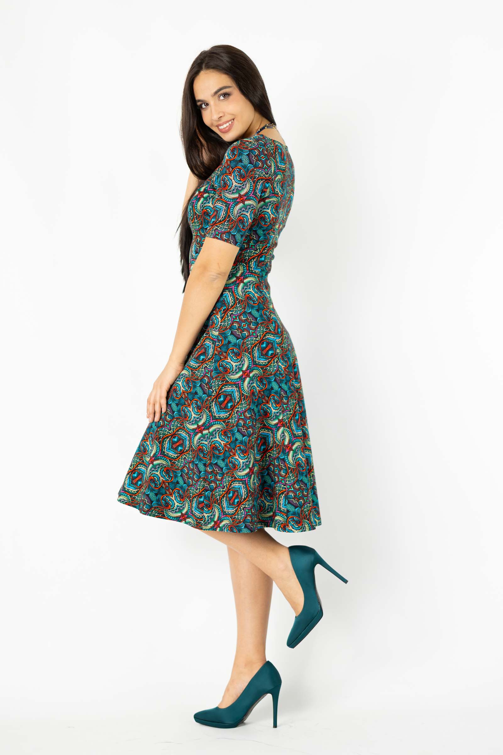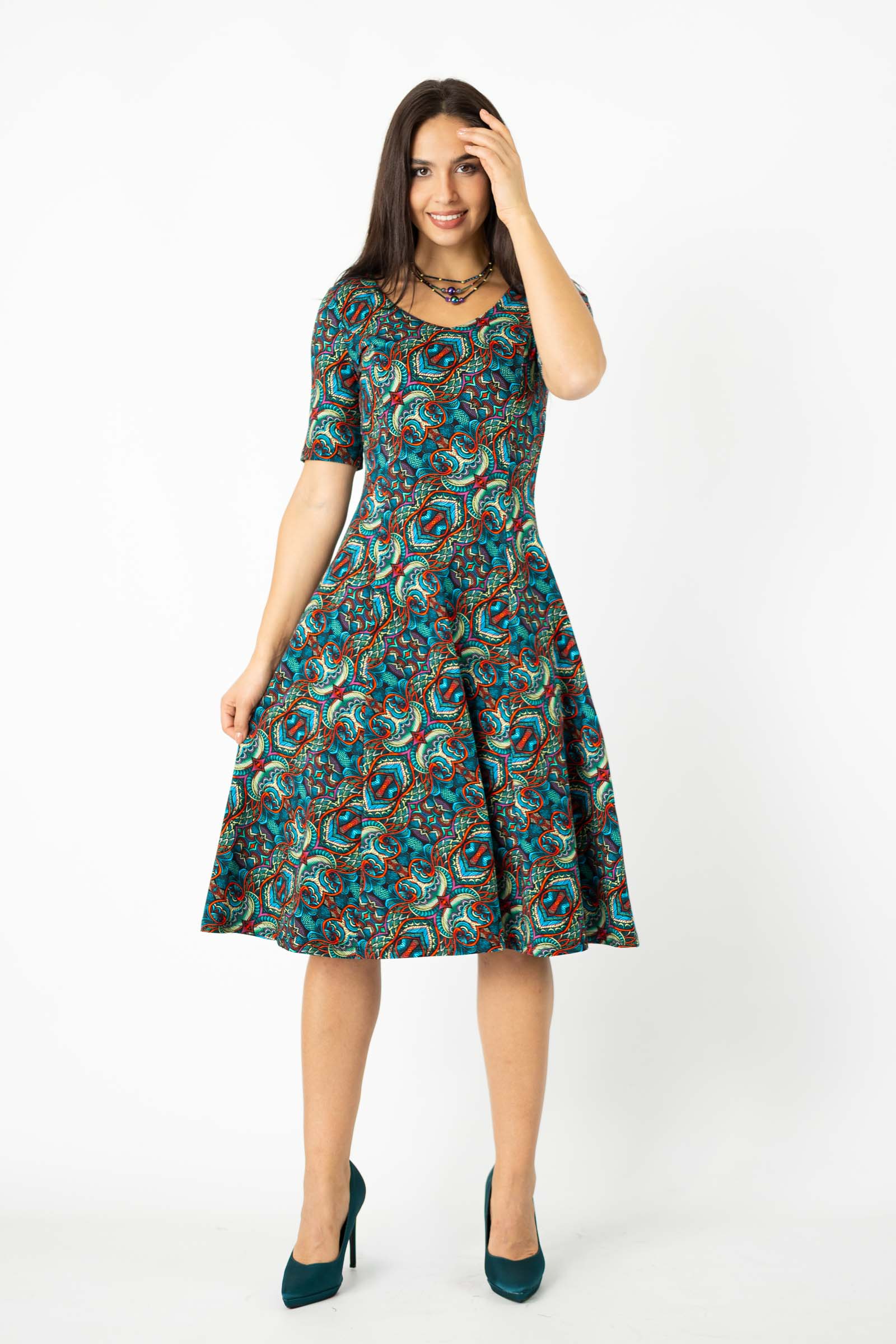 Sukienka midi rozkloszowana V krótki rękaw "INDI" blue