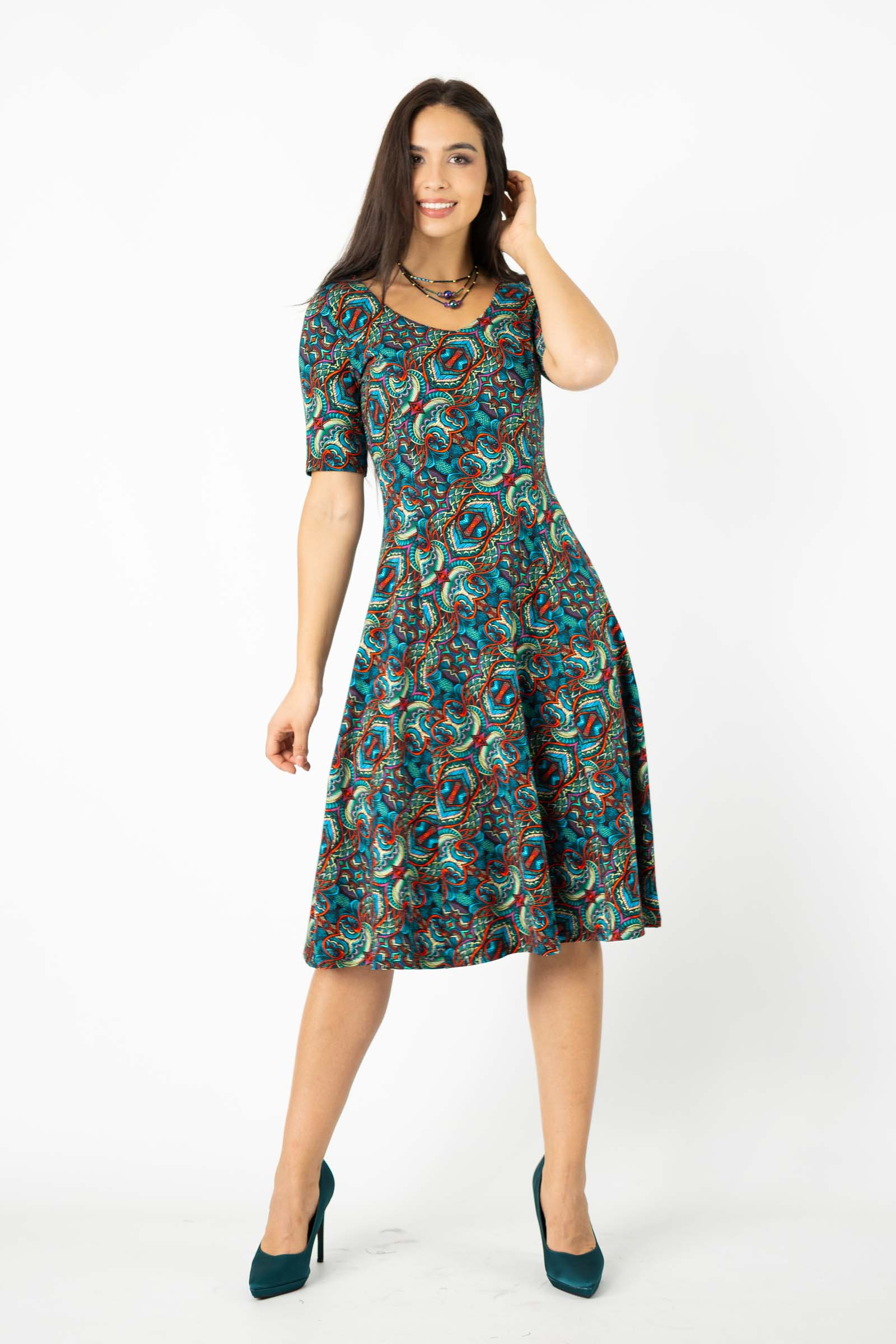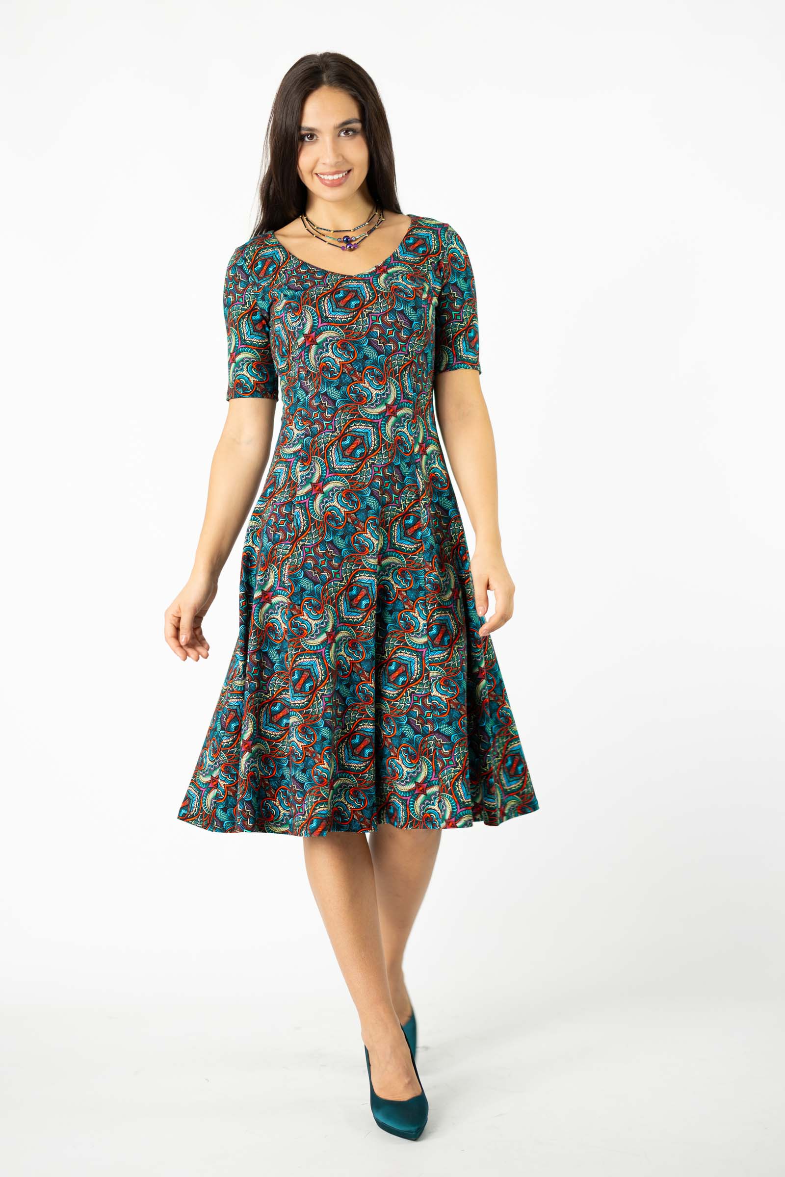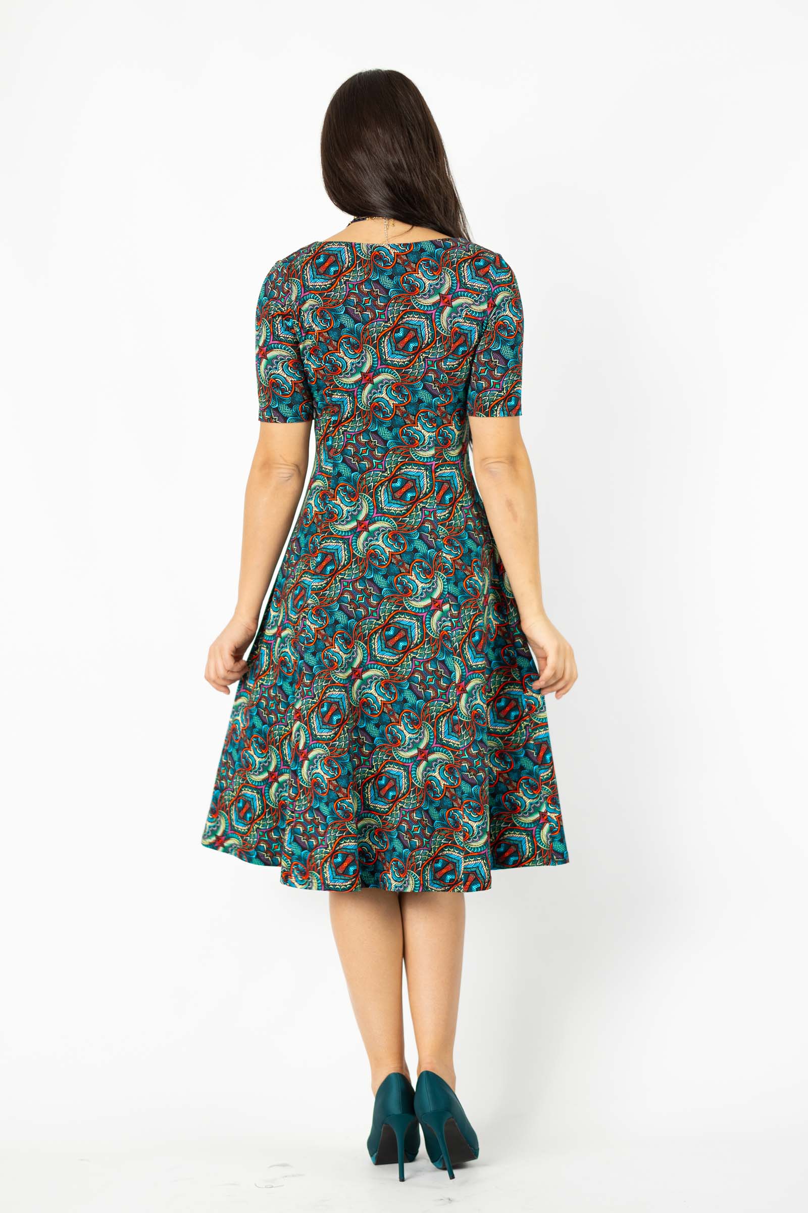 Sukienka midi rozkloszowana V krótki rękaw "INDI" blue