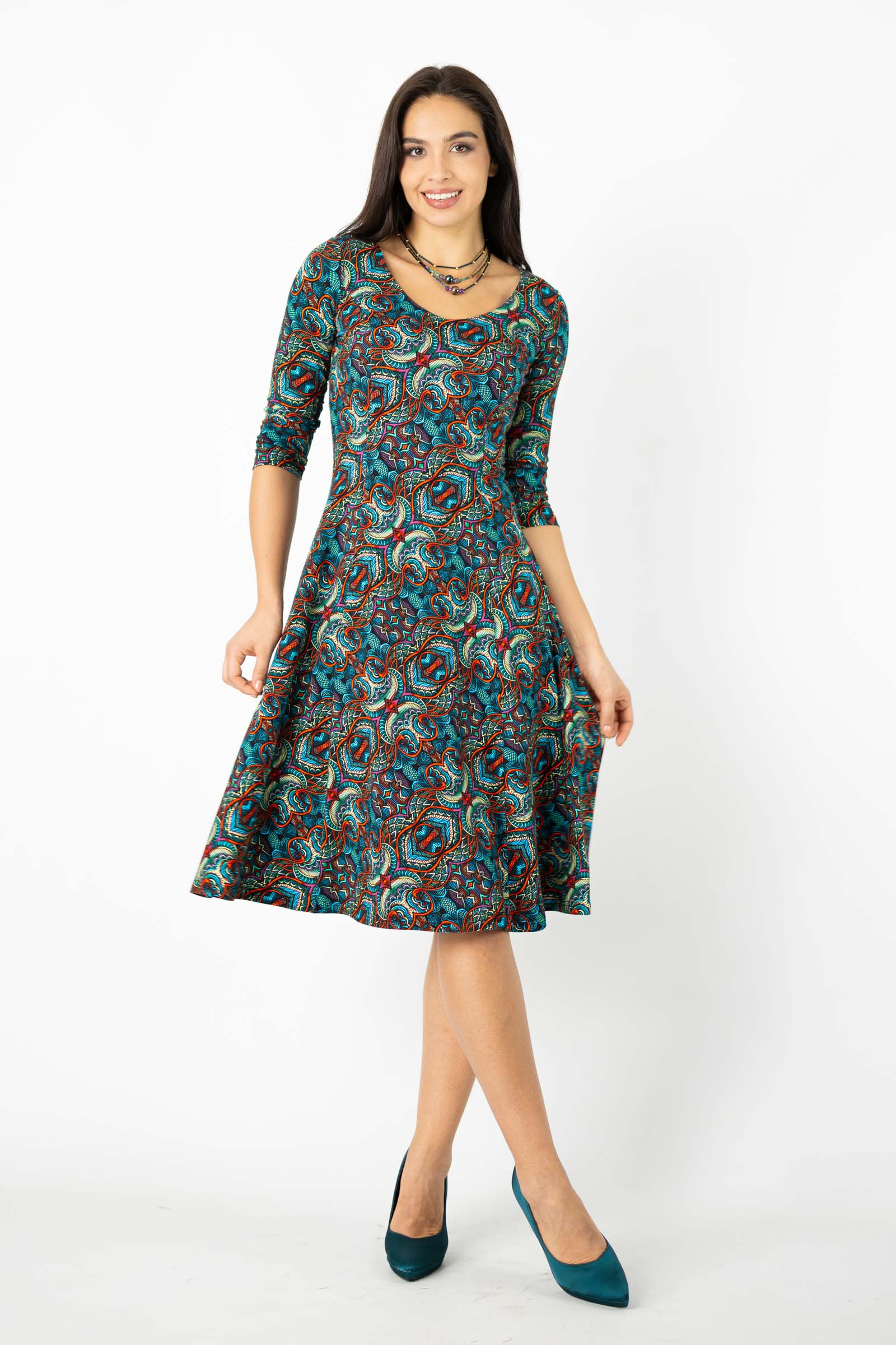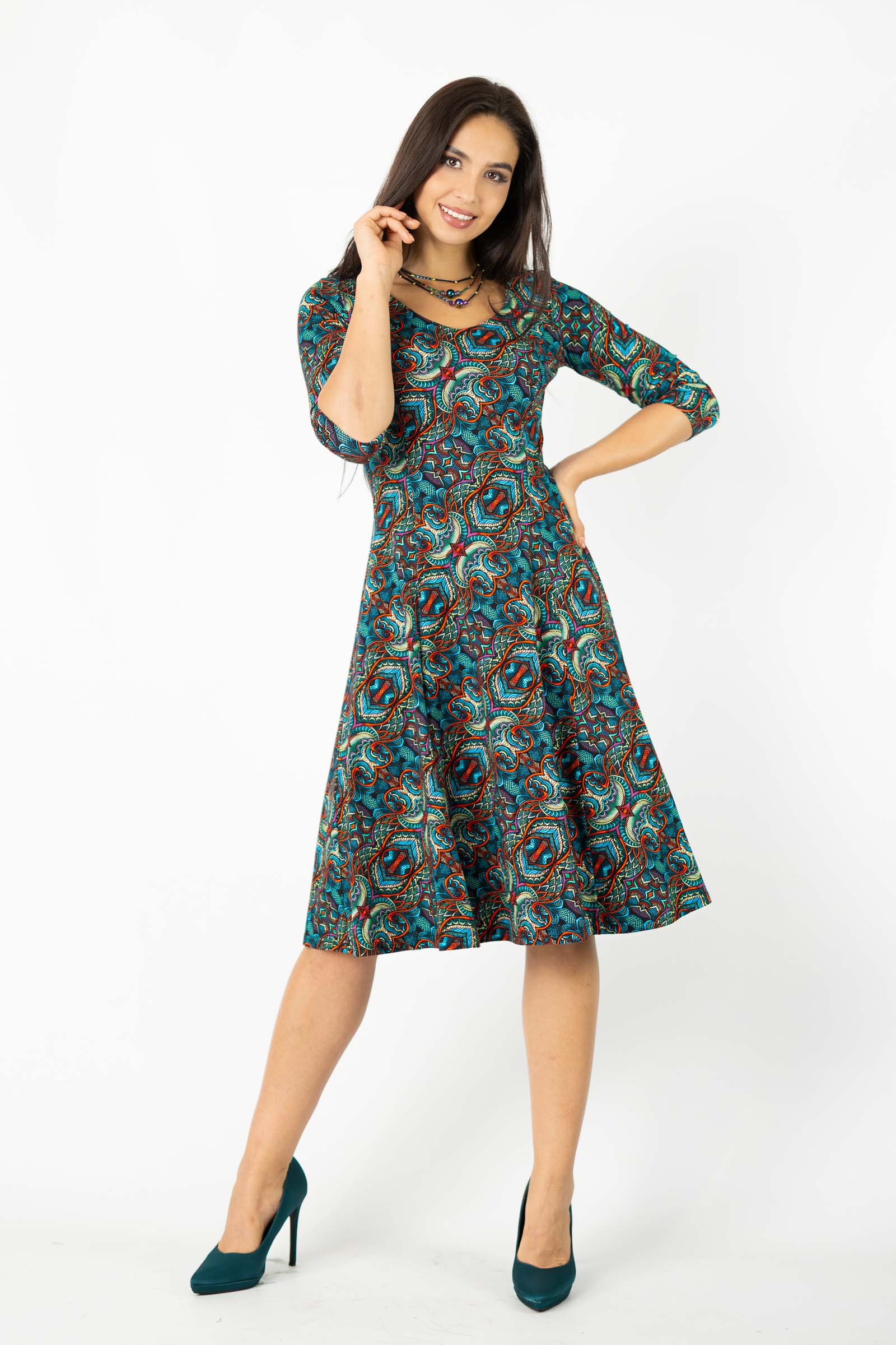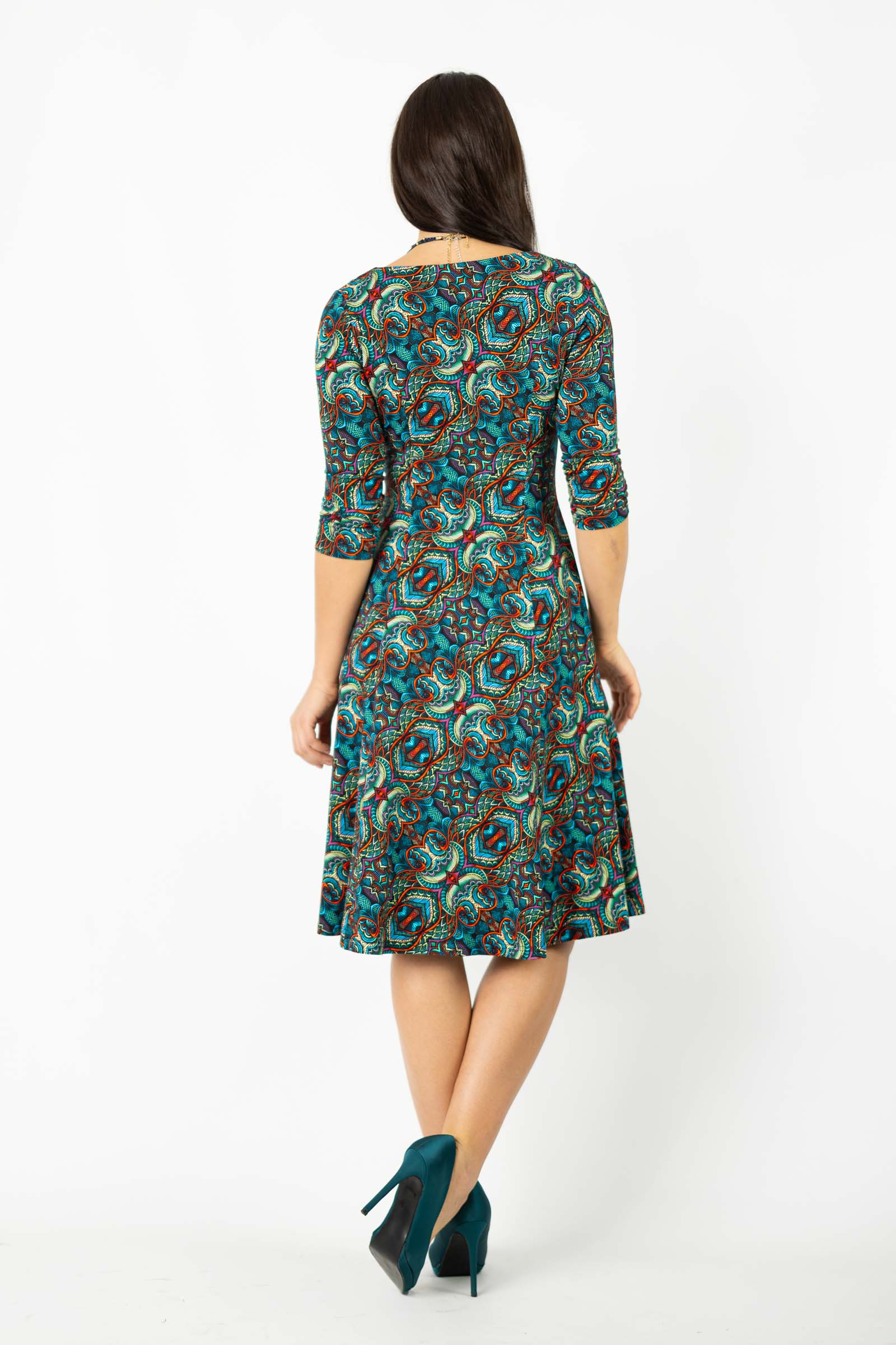 Sukienka midi rozkloszowana dekolt V "INDI" blue