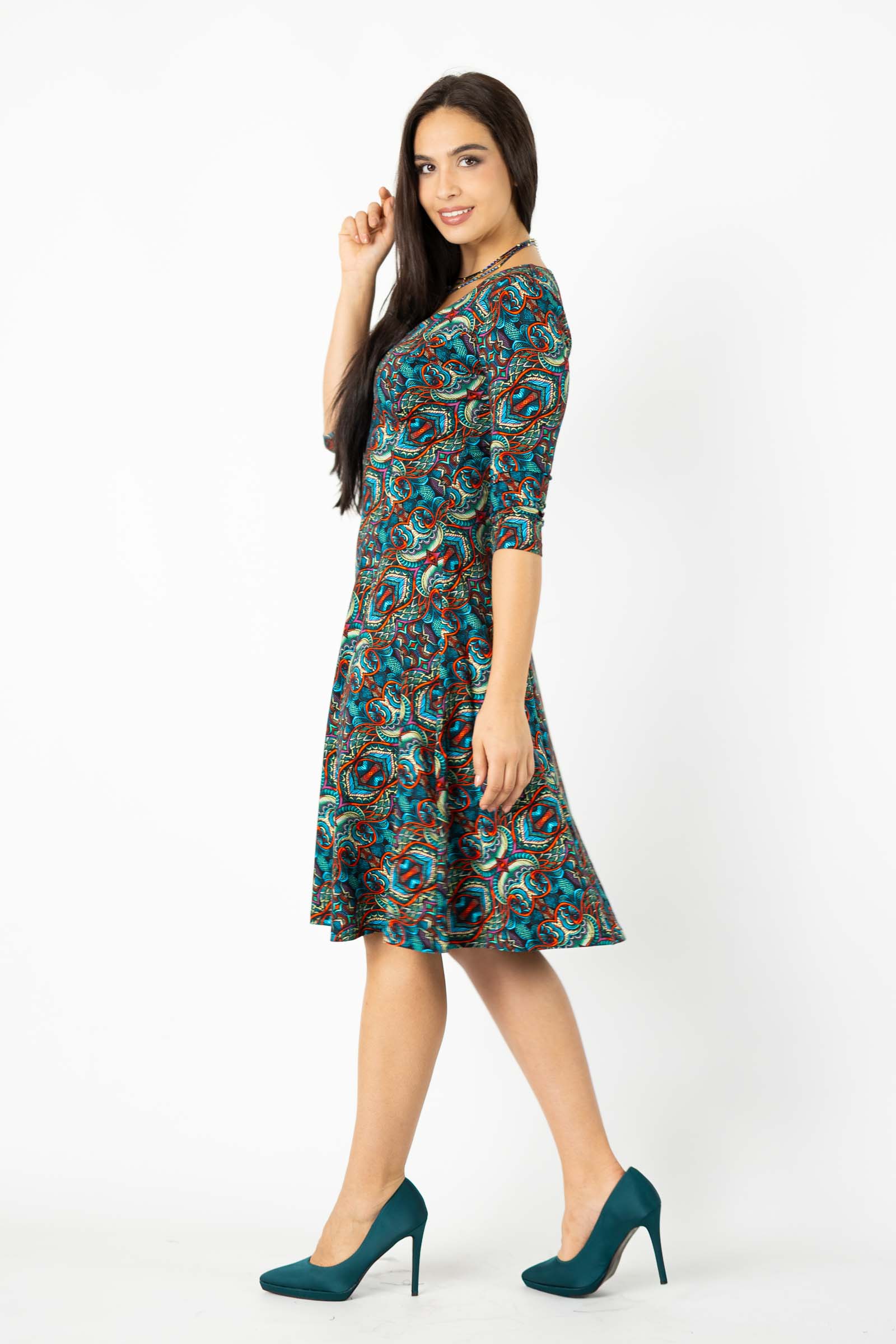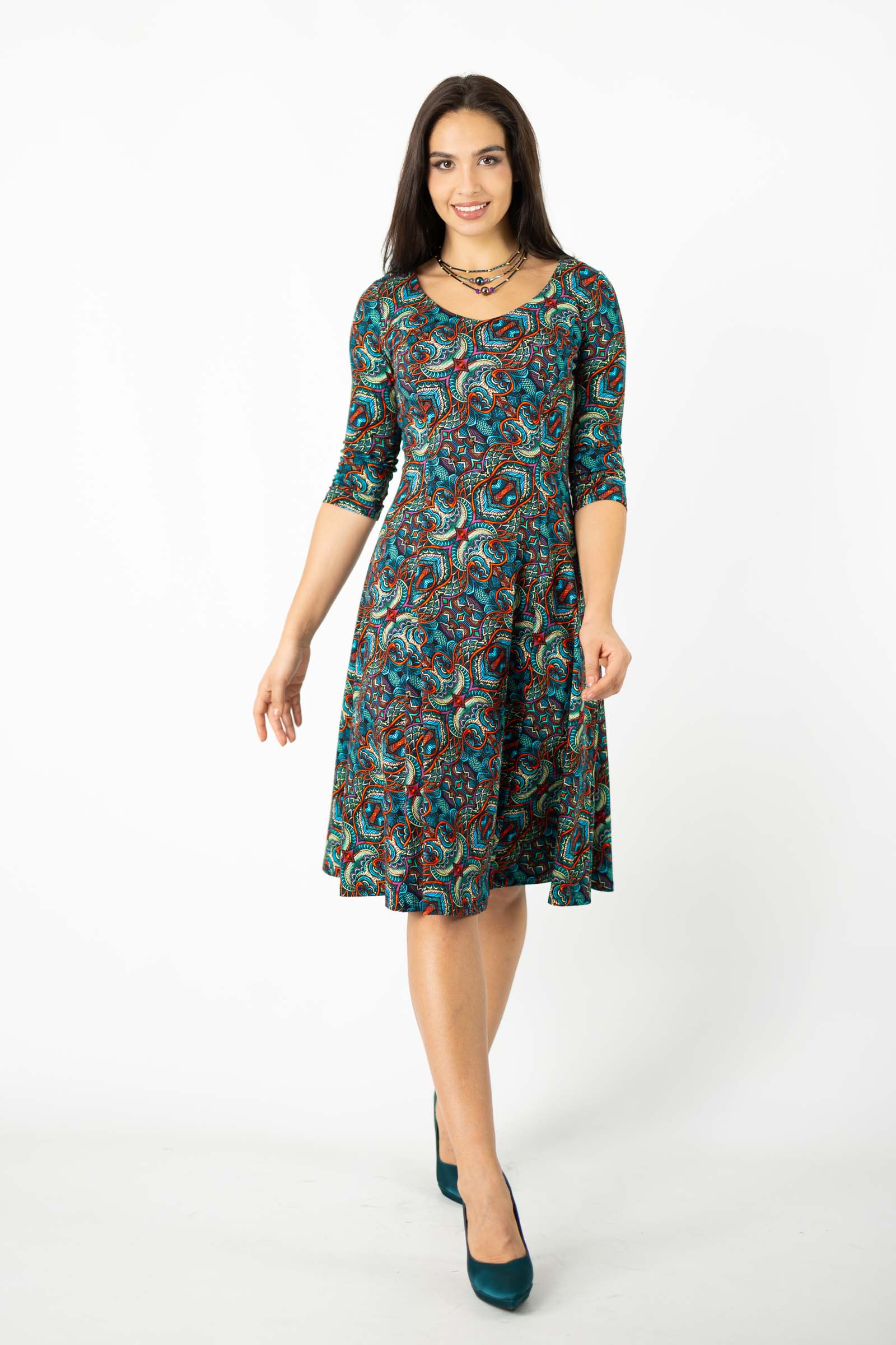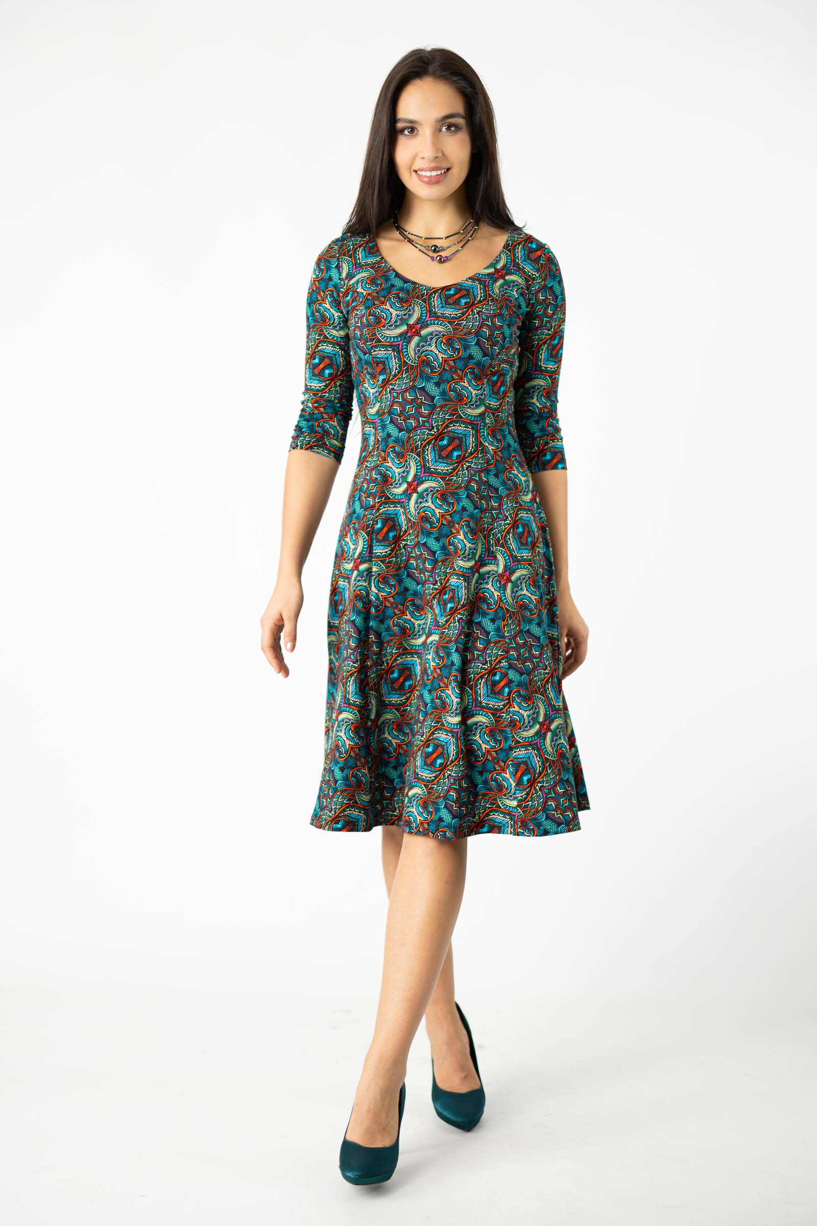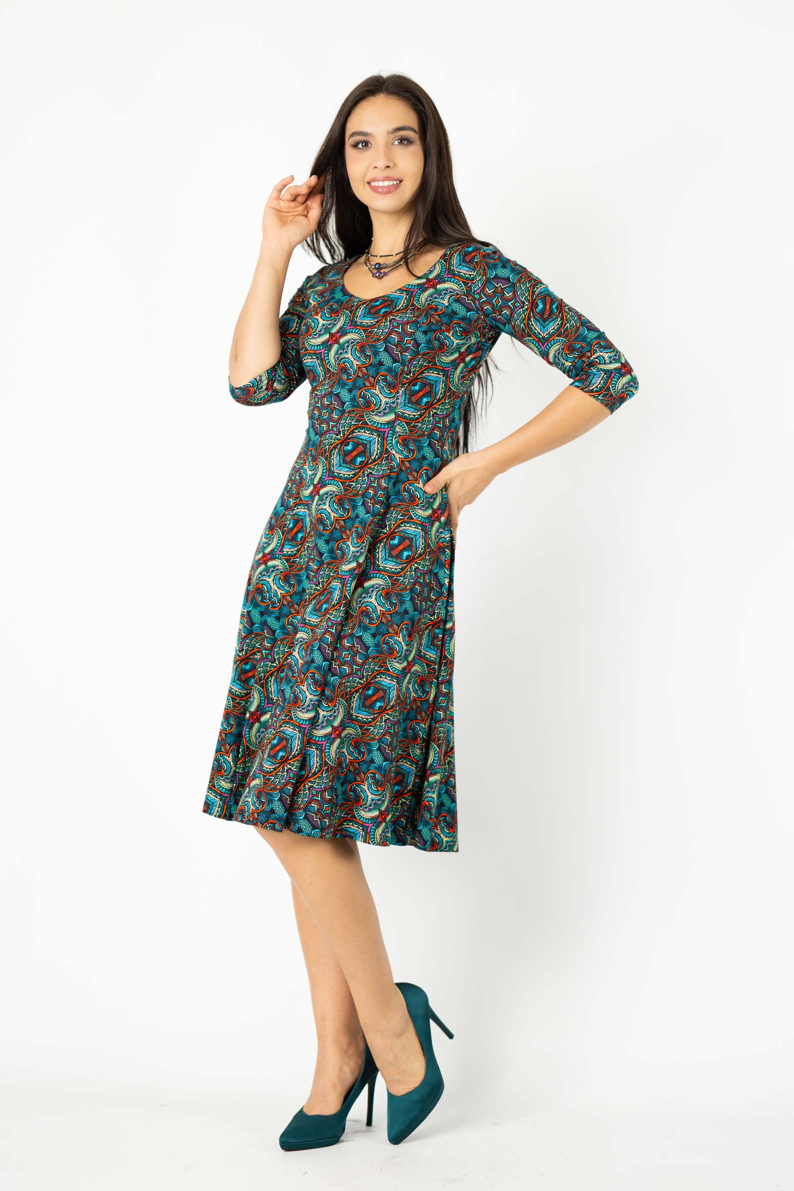 Sukienka midi rozkloszowana dekolt V "INDI" blue