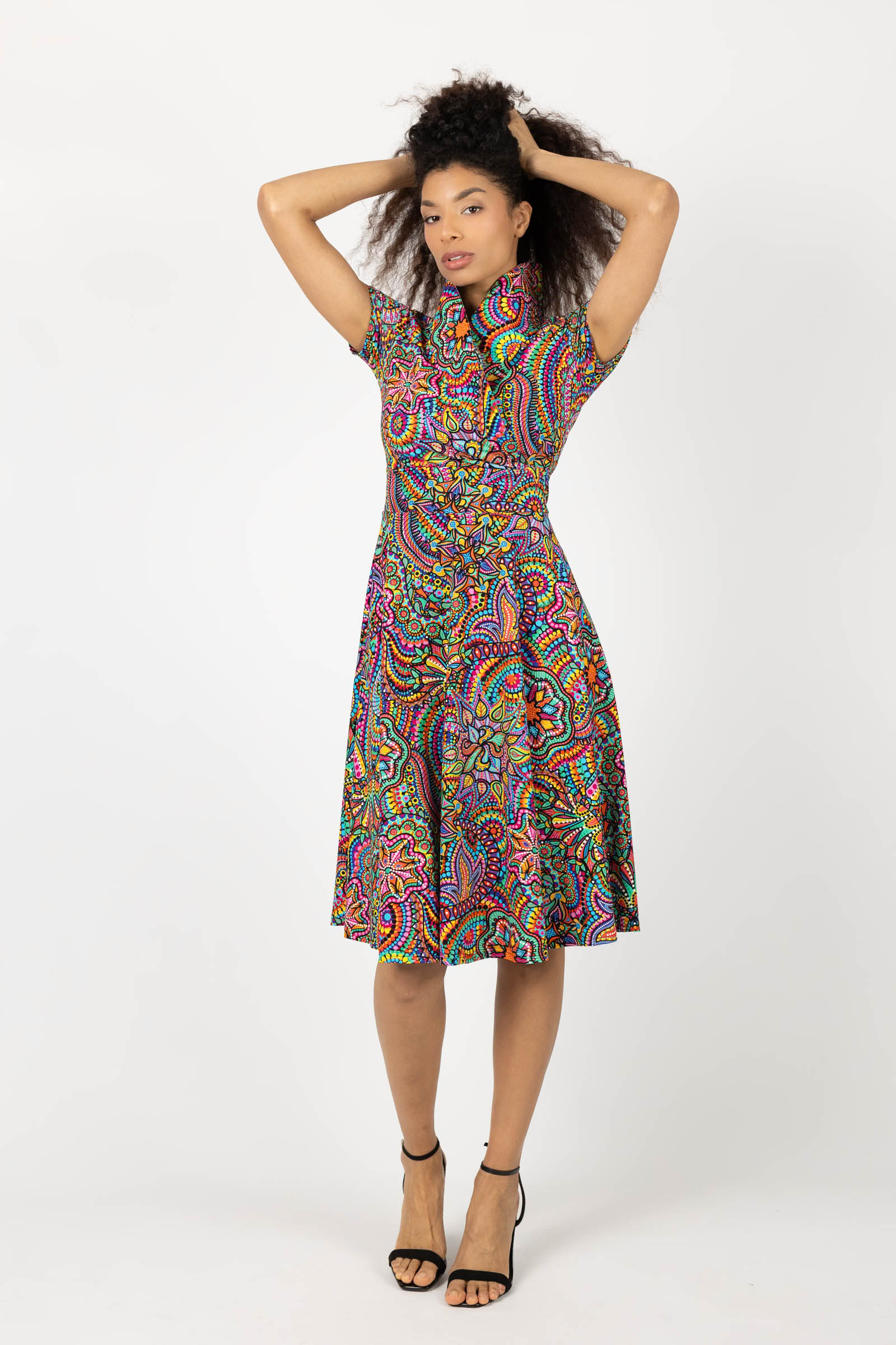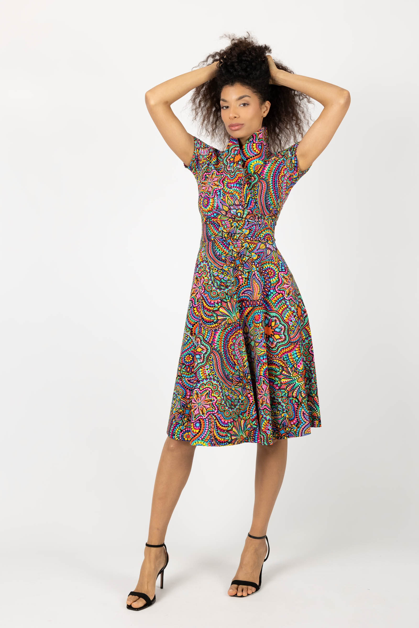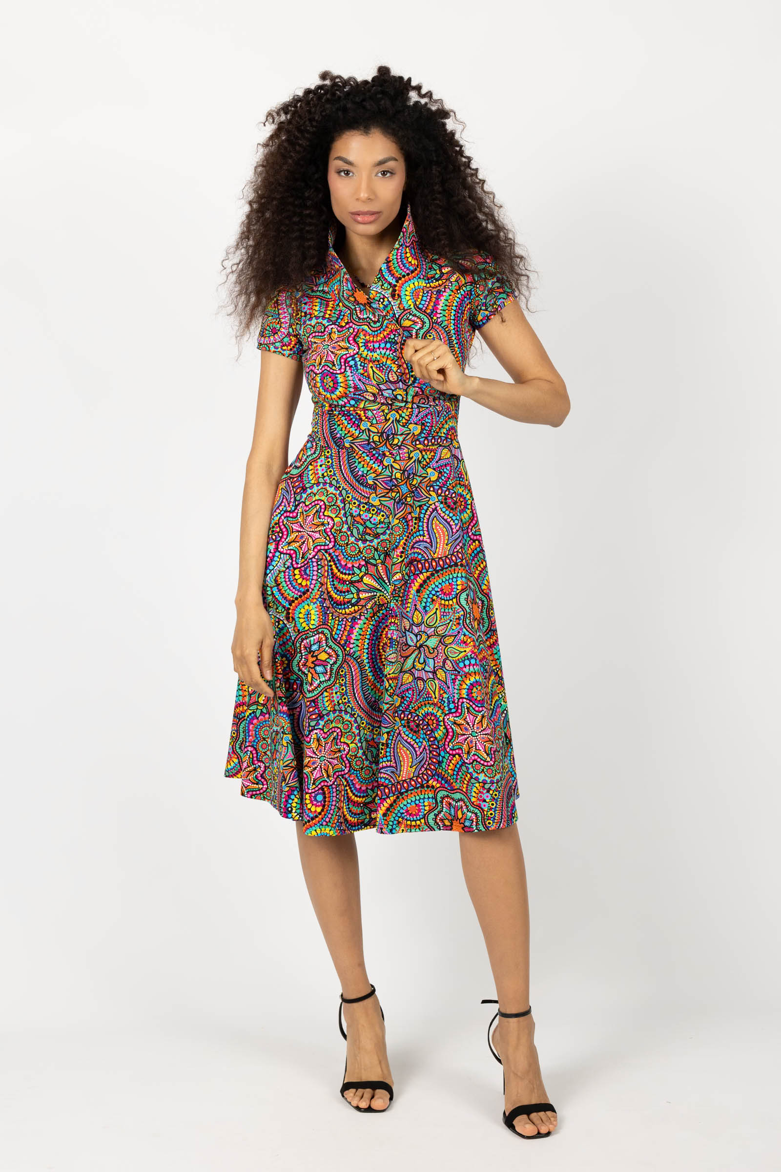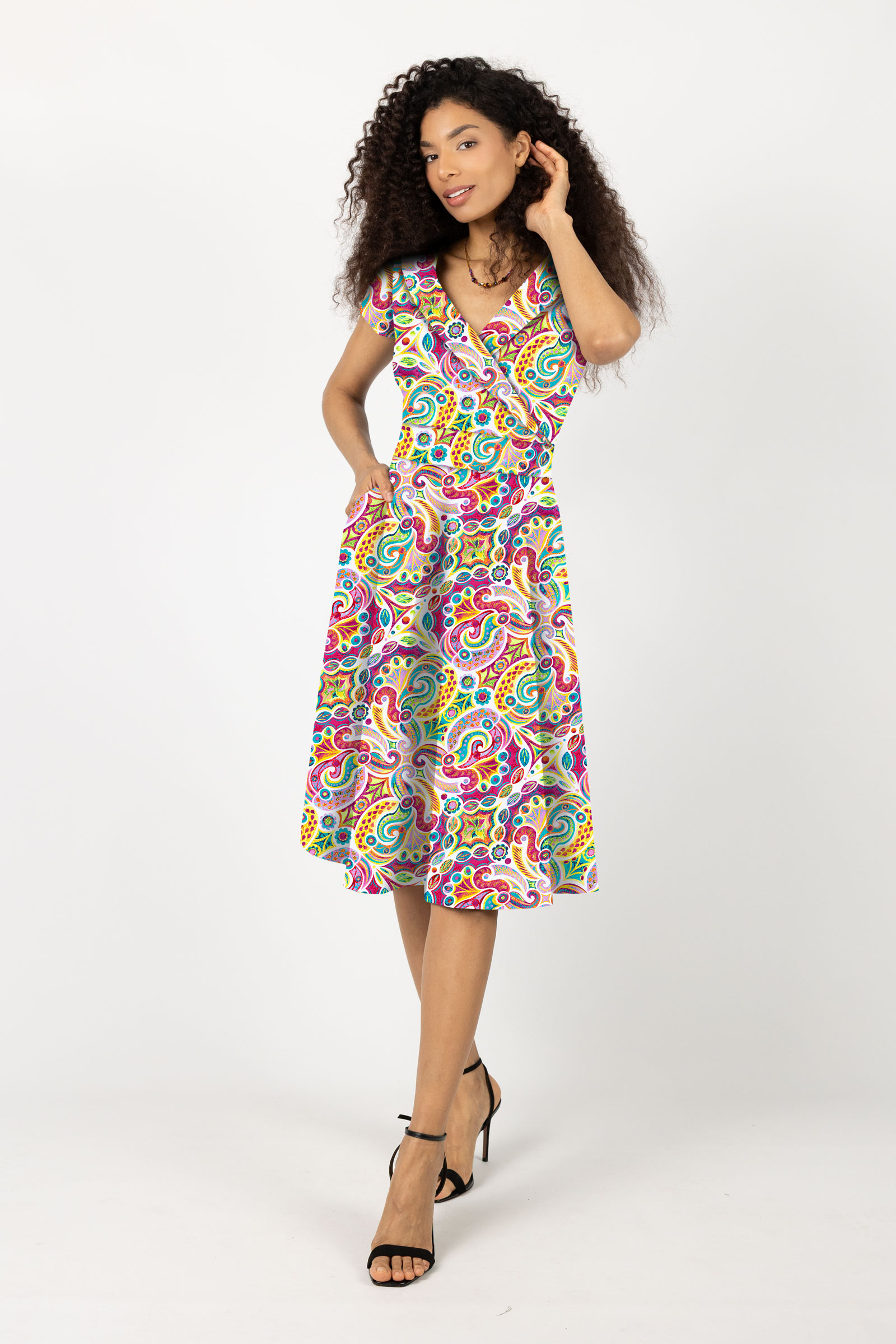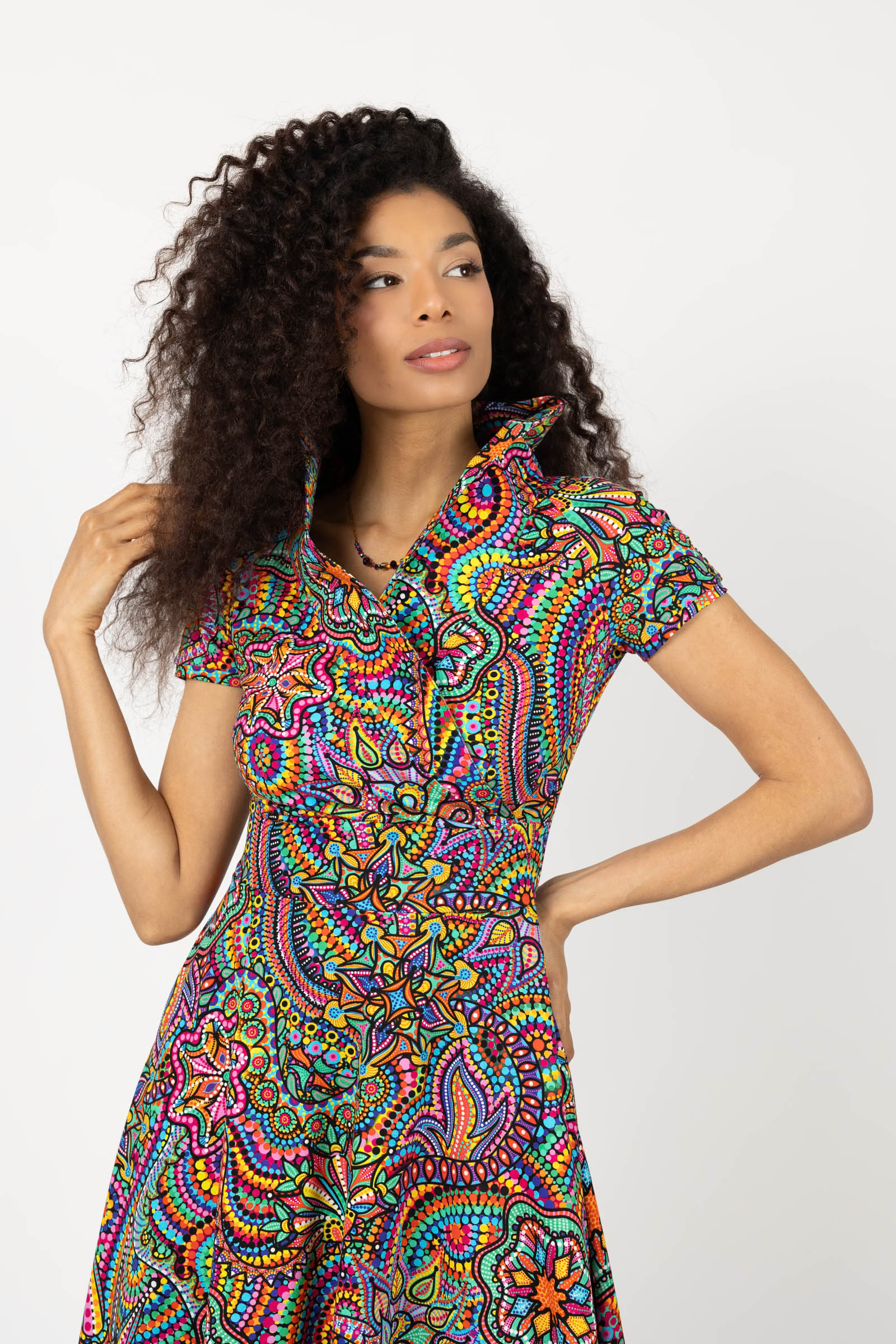 Sukienka midi z kołnierzem, krótki rękaw "CONFETTI" i inne wzory