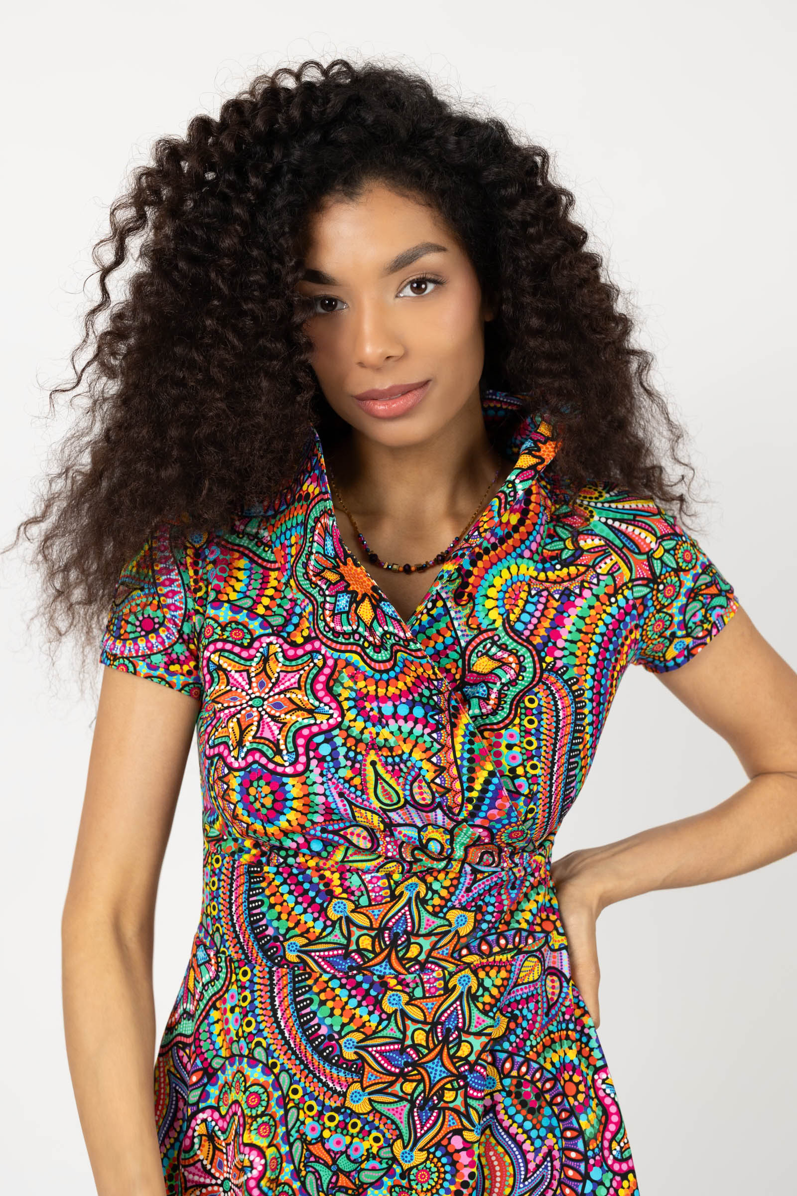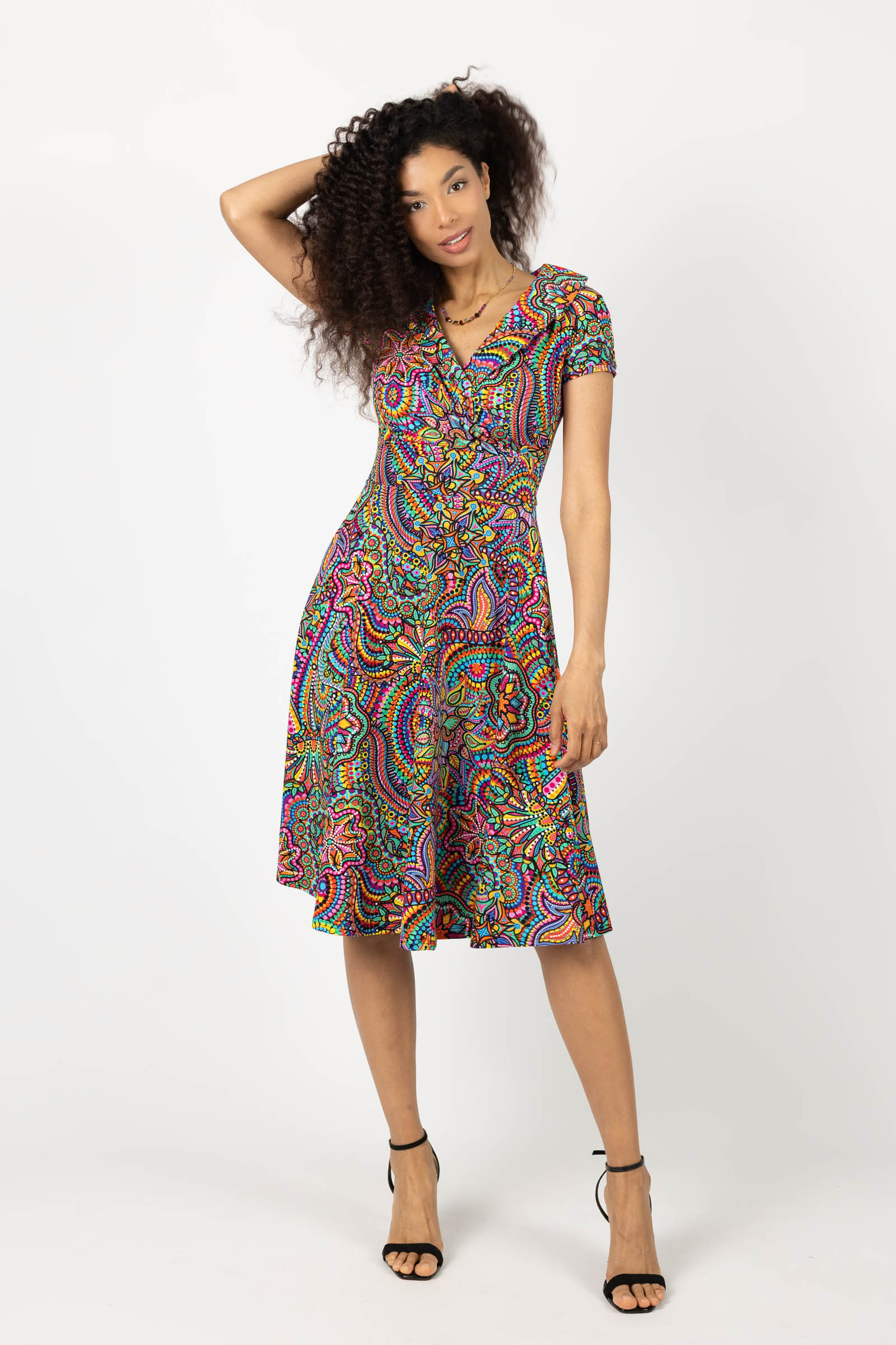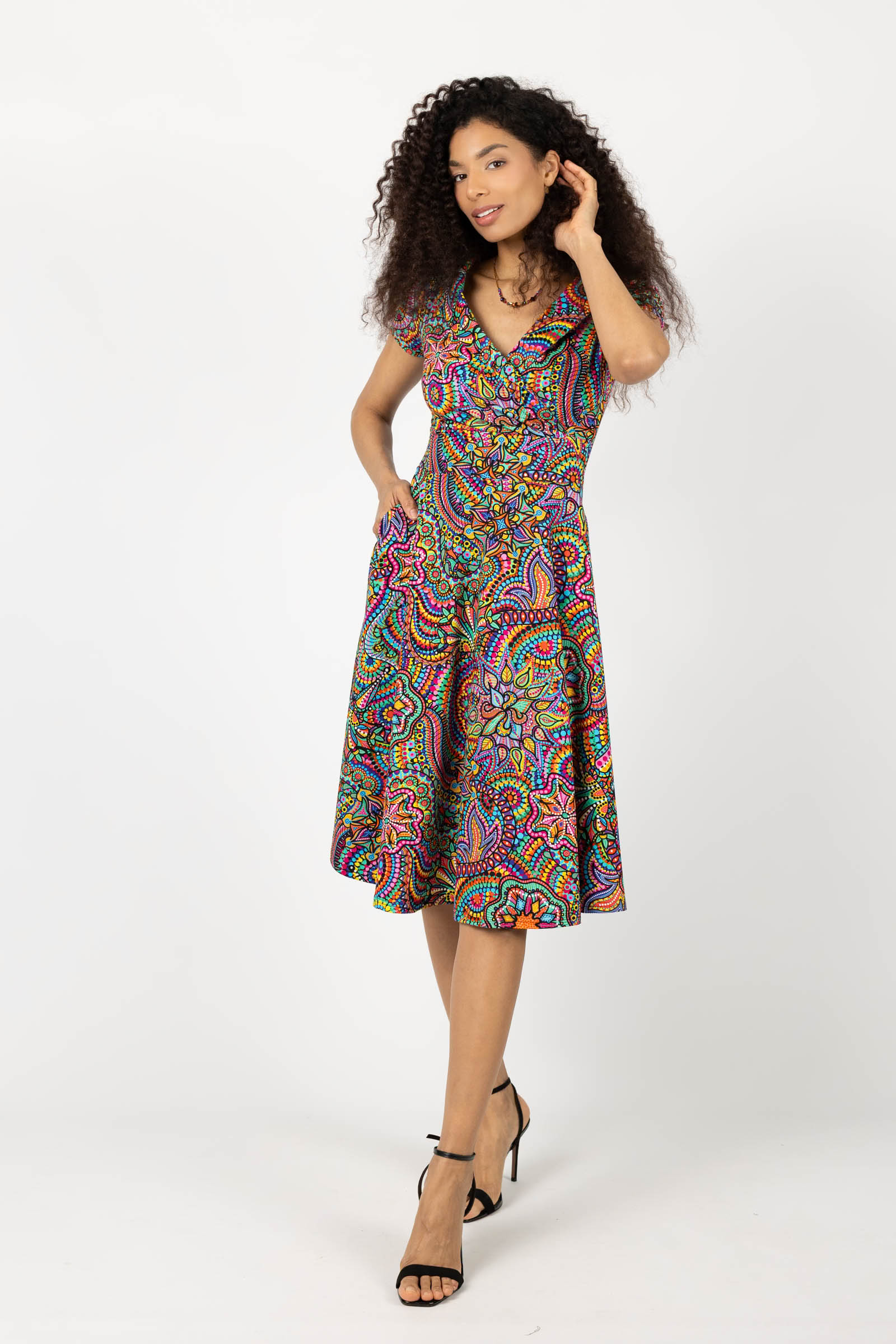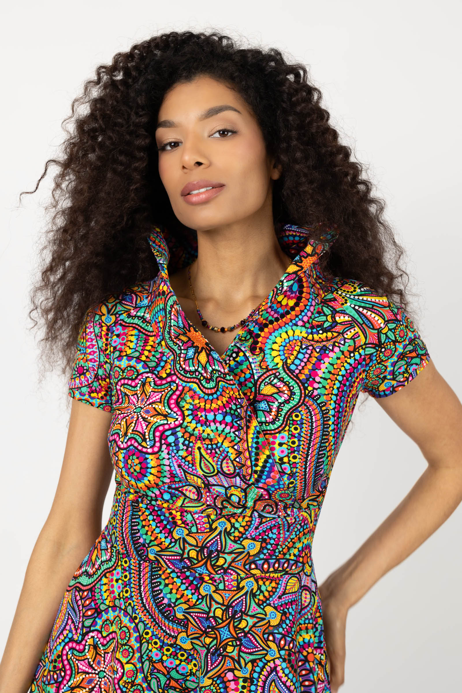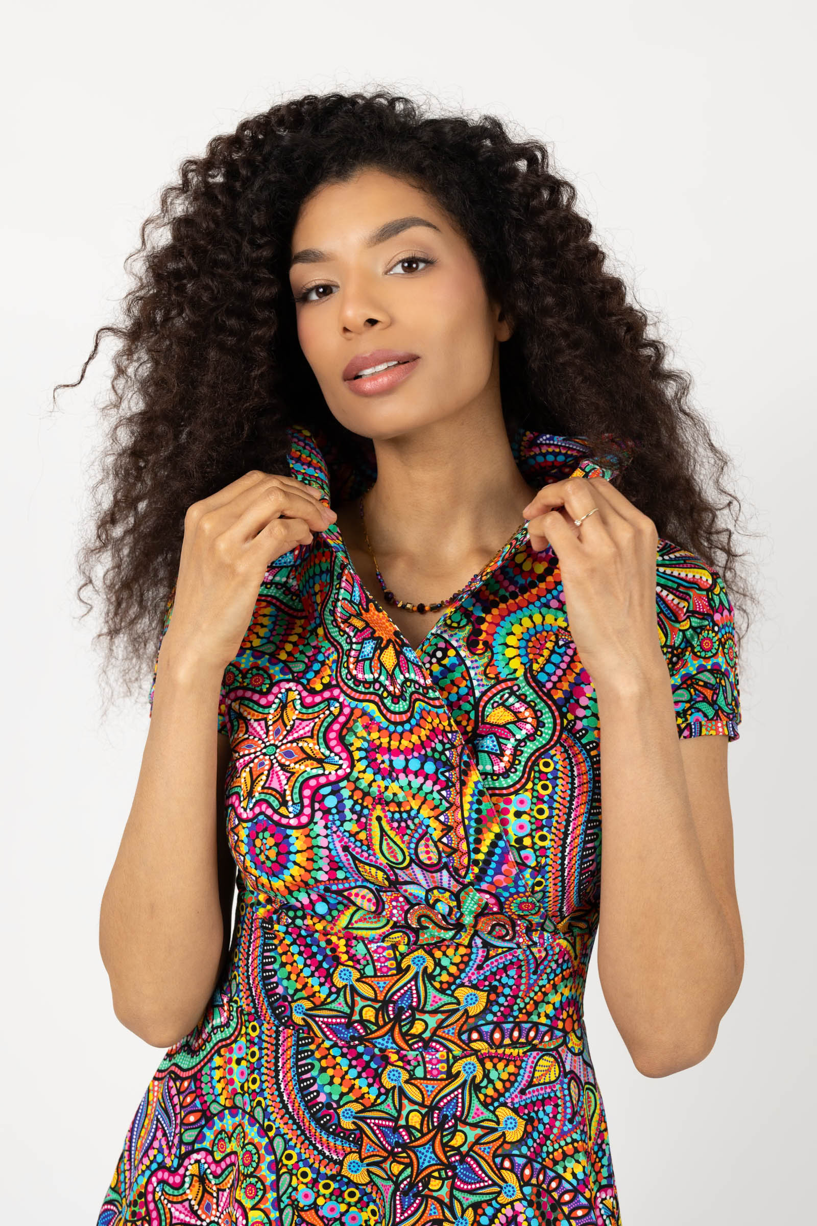 Sukienka midi z kołnierzem, krótki rękaw "CONFETTI" i inne wzory