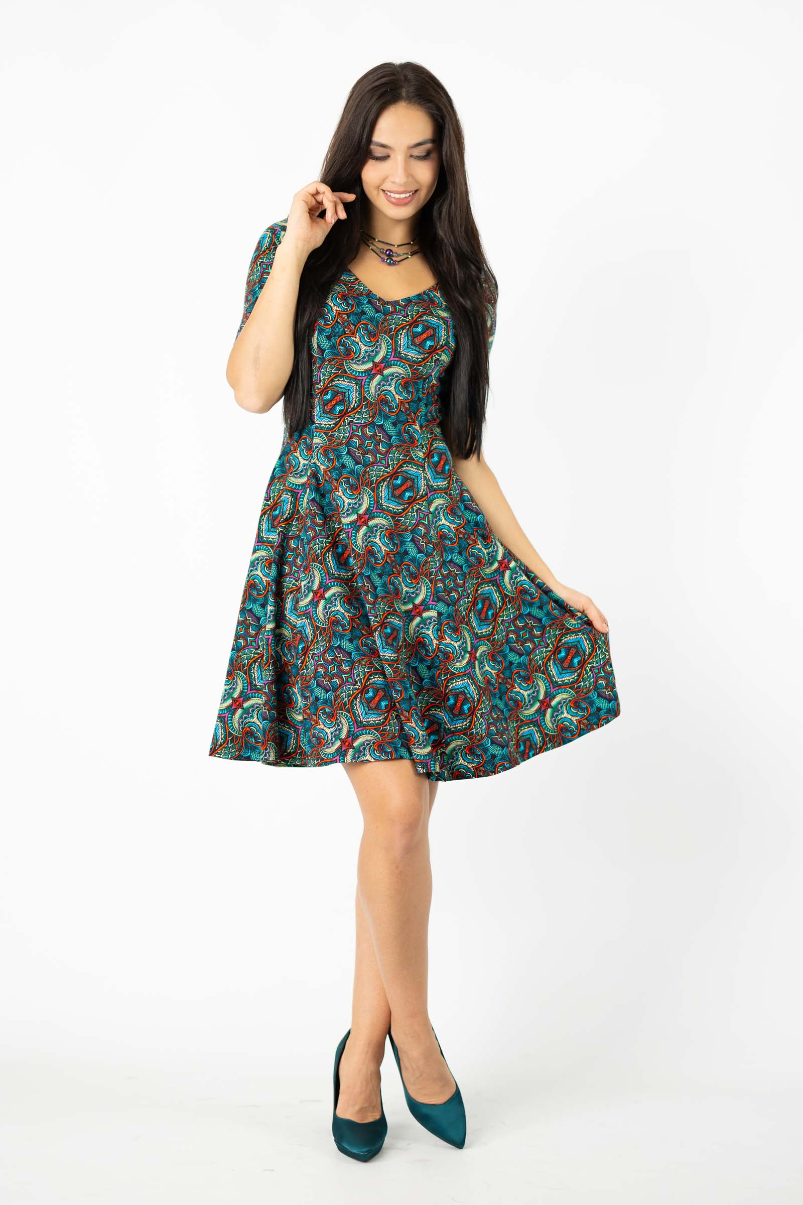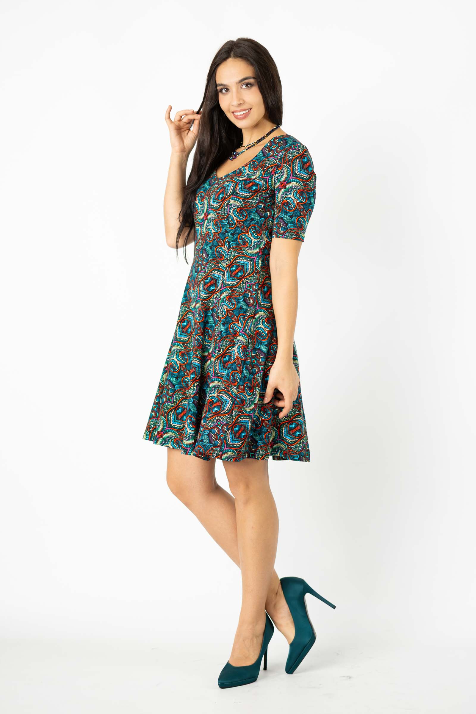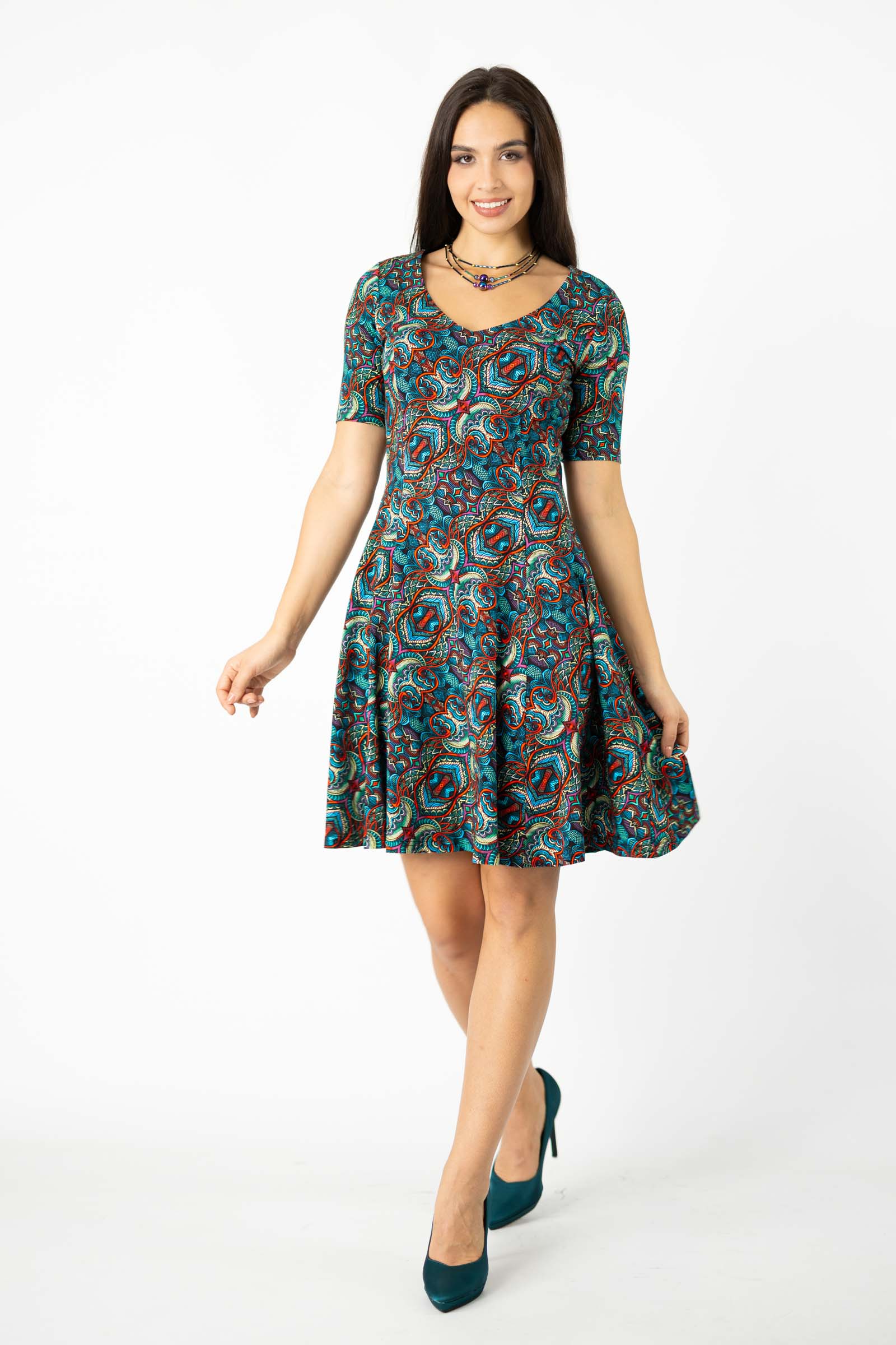 Rozkloszowana sukienka to propozycja dla kobiet ceniących sobie elegancję i wygodę. Ta została uszyta z klinów, co dodaje jej efektownego kroju i zapewnia wygodę podczas noszenia.