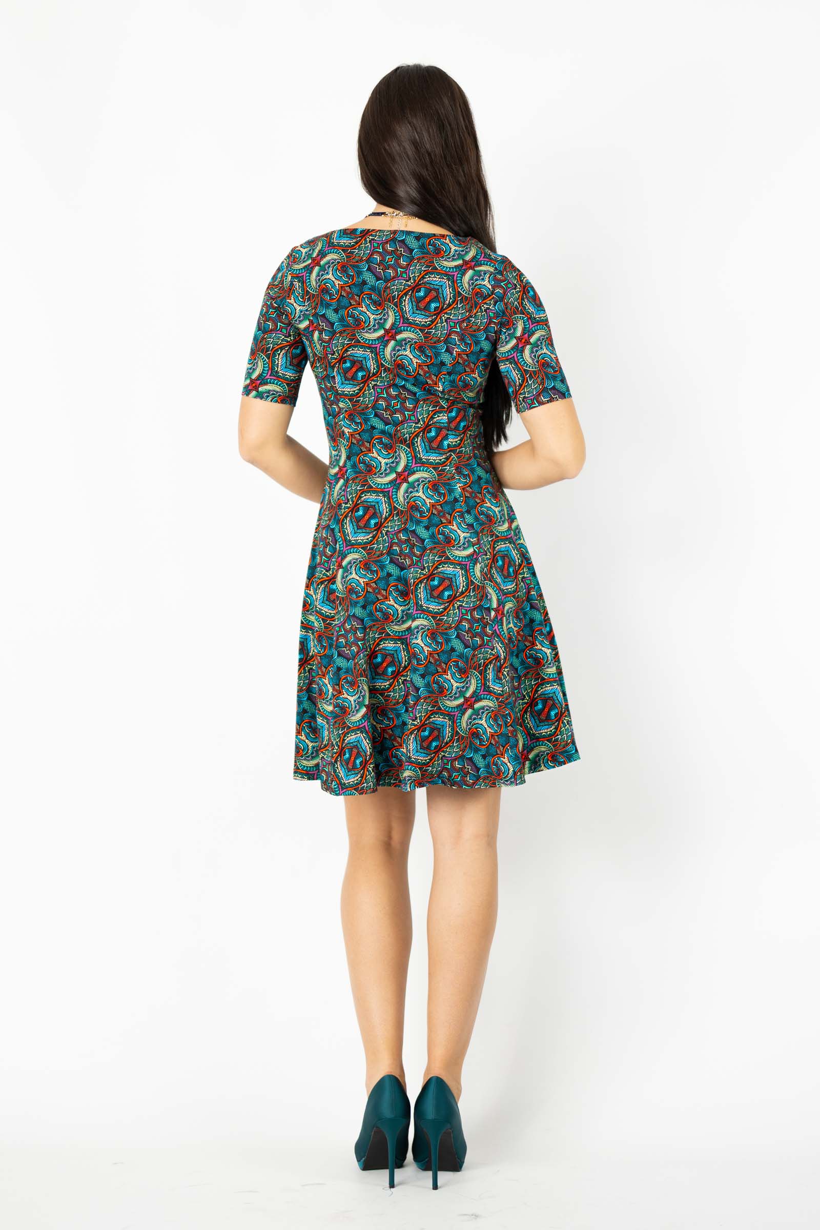 Warto również zwrócić uwagę na autorski wzór materiału, zaprojektowany przez twórczynię marki Katarzynę Gałaj. Sukienka jest dostępna tylko u nas i wyróżnia się spośród innych propozycji dostępnych na rynku.