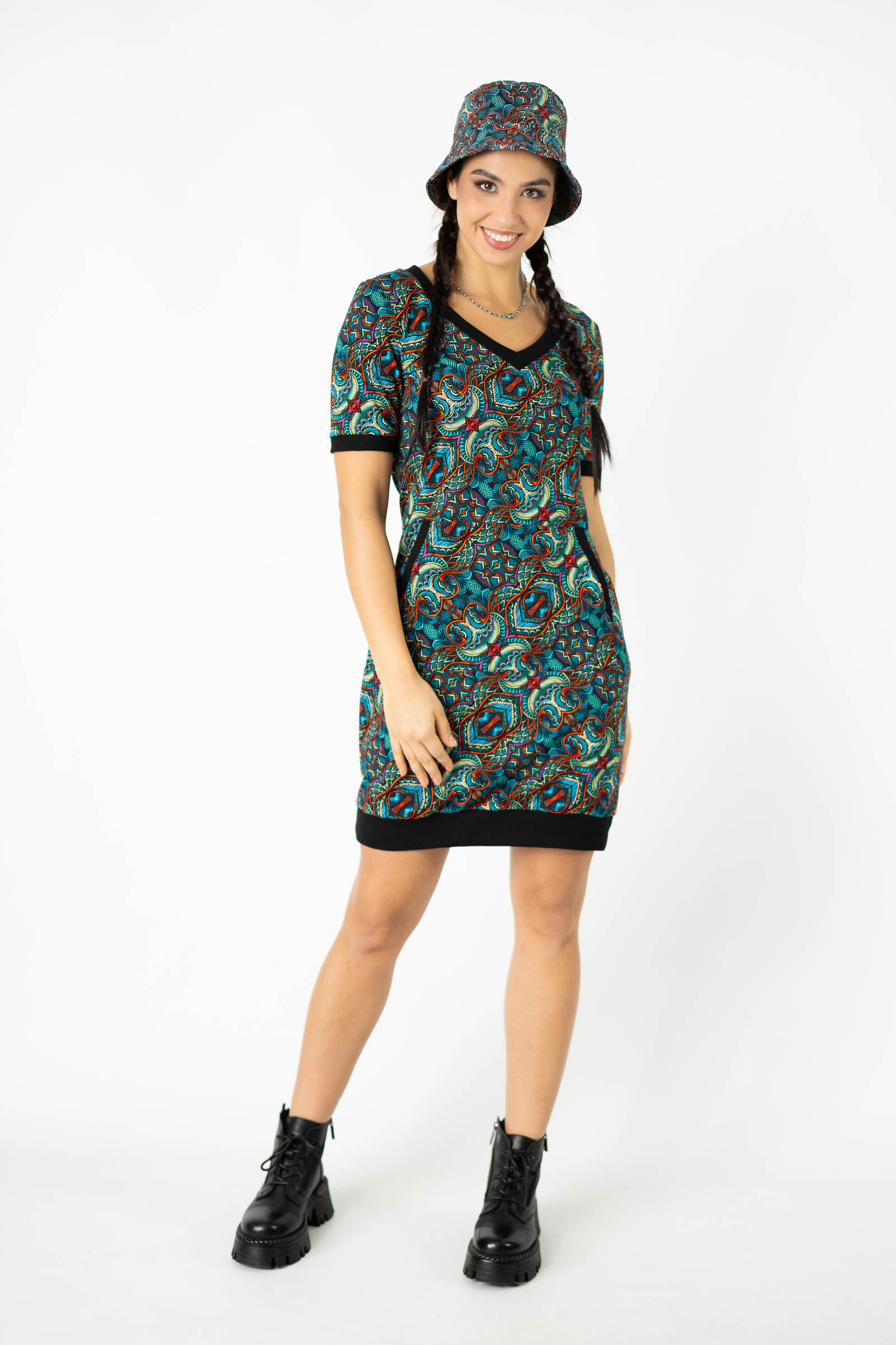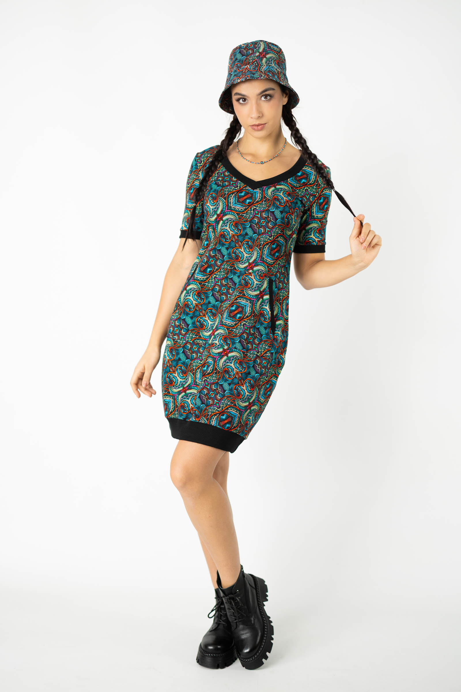 Uszyta z elastycznej, bawełnianej dzianiny, która gwarantuje komfort i swobodę ruchu. Dzianina pozwala sukience idealnie dopasować się do sylwetki, jednocześnie zapewniając wygodę przez cały dzień.